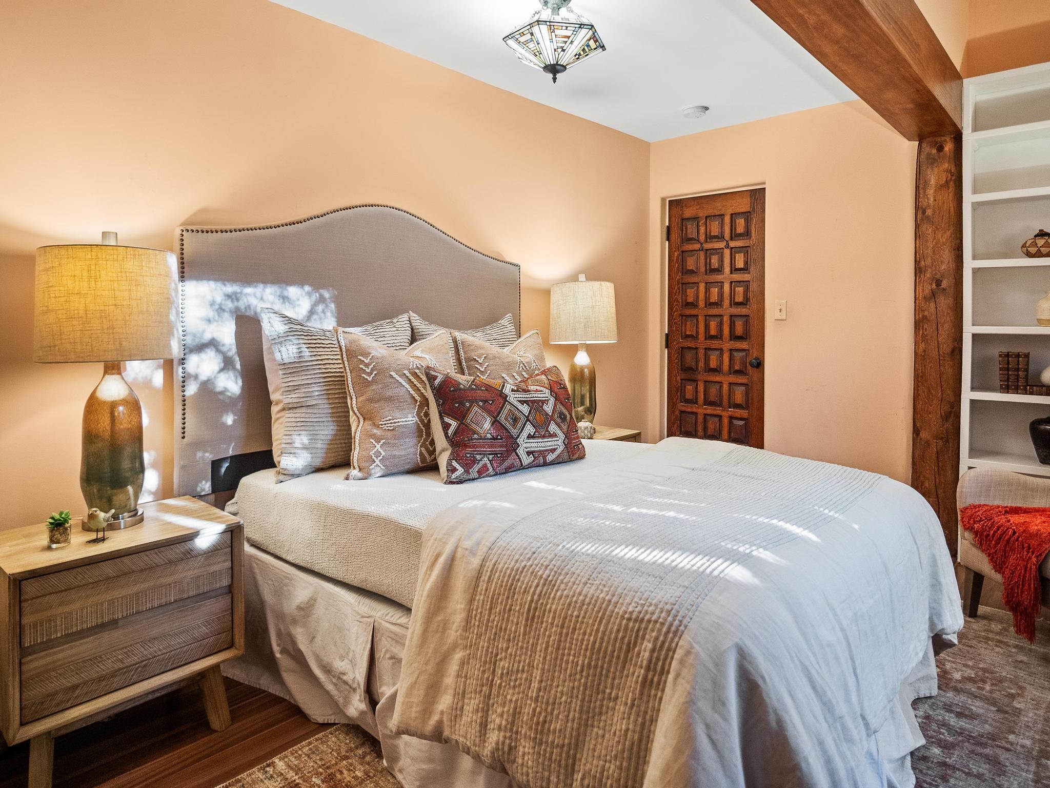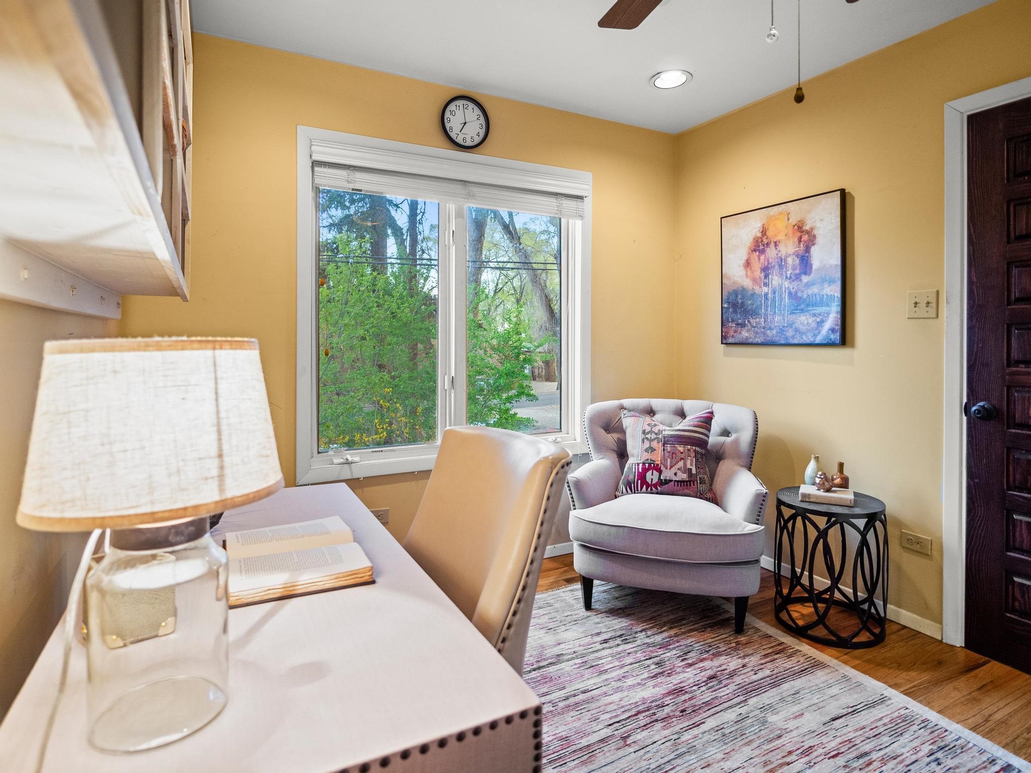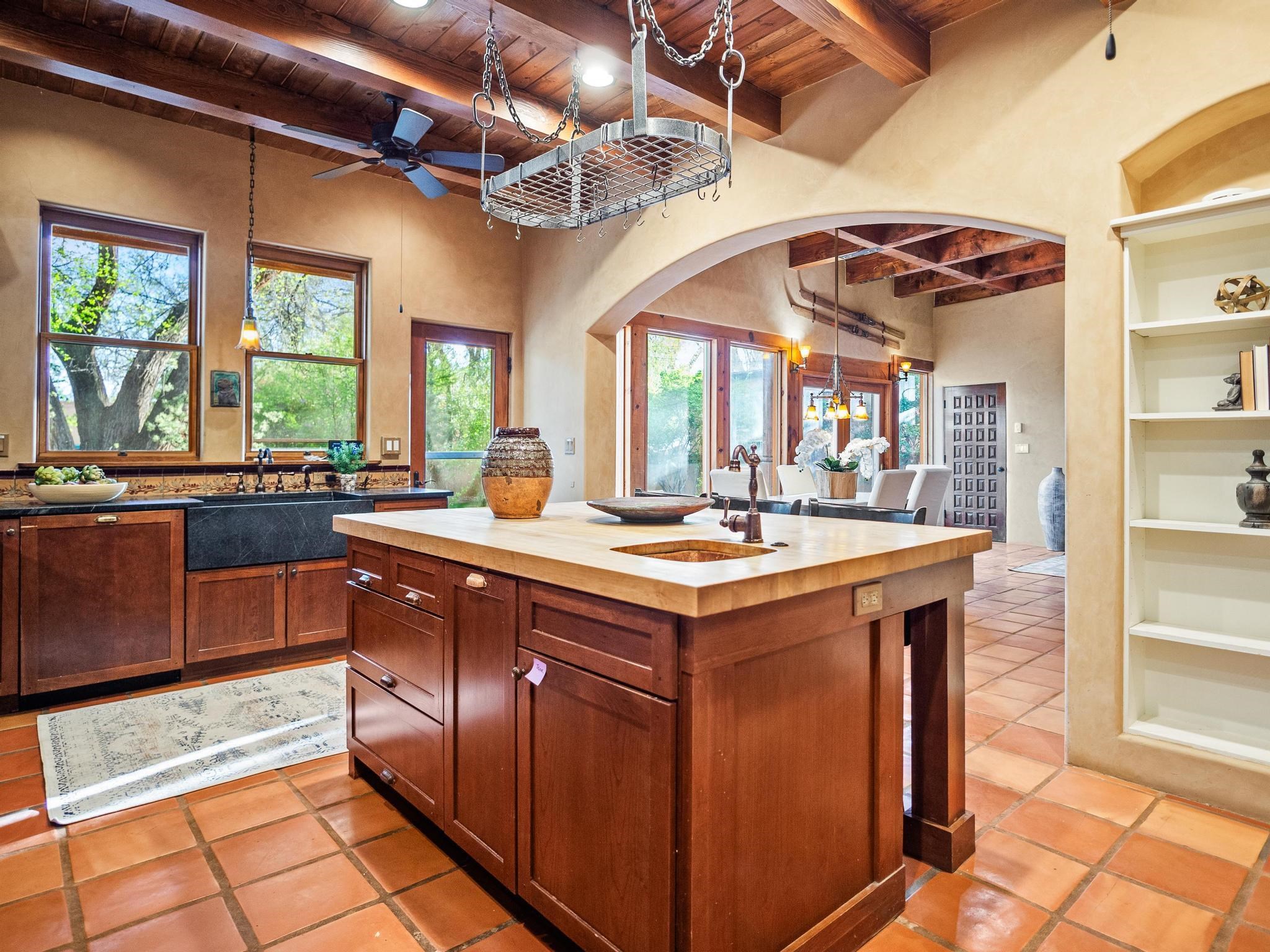 Elegant retreat with Guest Quarters on a quiet, leafy cul-de-sac just a five minute walk from the shops and restaurants of Taos plaza and Kit Carson Park, 310 Ortiz Lane is a stunning, versatile property, blending traditional charm with modern comforts – as a primary home, ski lodge, art studio, retirement haven and family getaway. With well over 4,000 square feet of living space across a main house, a lock-off “second home” – the original house – and a separate guest casita – also perfect for a studio/workshop – this unique home offers exceptional flexibility for multi-generational living, rental income, or live-work needs. MAIN RESIDENCE (Approx. 3,600 SF) Step into a warm, adobe-toned interior great room featuring high ceilings, custom woodwork, arched doorways, and classic Southwest design details throughout. The living and dining areas flow seamlessly, anchored by a cozy double fireplace, built-in shelving, wood floors, and Saltillo tile. To the side, a wide, fan-cooled patio opens onto a flowered adobe-walled Eden shaded by a glorious towering Siberian elm – visible and accessible from the great room interior. The recently added gourmet kitchen is a cook’s (and host’s) dream – with custom cabinetry, a spacious island with bar-stool seating, ample storage– including a separate multi-shelved pantry room and a coveted AGA stove. Large windows invite morning light and offer garden views. Upstairs, the primary suite includes a private sitting area, walk-in closet, fully remodelled bath with tub and walk-in shower, plus an adjacent office, bedroom or bonus space. The LOCK-OFF IN-LAW DWELLING remains connected to the main home—but has its own private entrance and patio. It features a second kitchen, full bath, open-concept living and dining areas, fireplace, one bedroom with French doors leading to a covered patio and wall fountain. This space offers an ideal setup for extended family, guests, or even rental use. CASITA (Approx. 400 SF) across the front courtyard is a charming detached guest suite with vaulted ceilings, wood floors, built-in shelving, and a ¾ bath—also perfect as an art studio, short-term rental, or private retreat. And a 100-square-foot workshop has its own separate entrance. OUTDOORS & AMENITIES • Fully enclosed and beautifully xeriscaped yard with russet gravel, brick pavers, mature landscaping, and adobe privacy walls • Multiple patios, both covered and open, offering outdoor living in every season • 4 off-street parking spaces, including 2 under attached carports • Whether you're looking for a hidden gem to call home or a flexible compound with income potential, 310 Ortiz Lane delivers exceptional style, thoughtful design, and an unbeatable in-town location.
