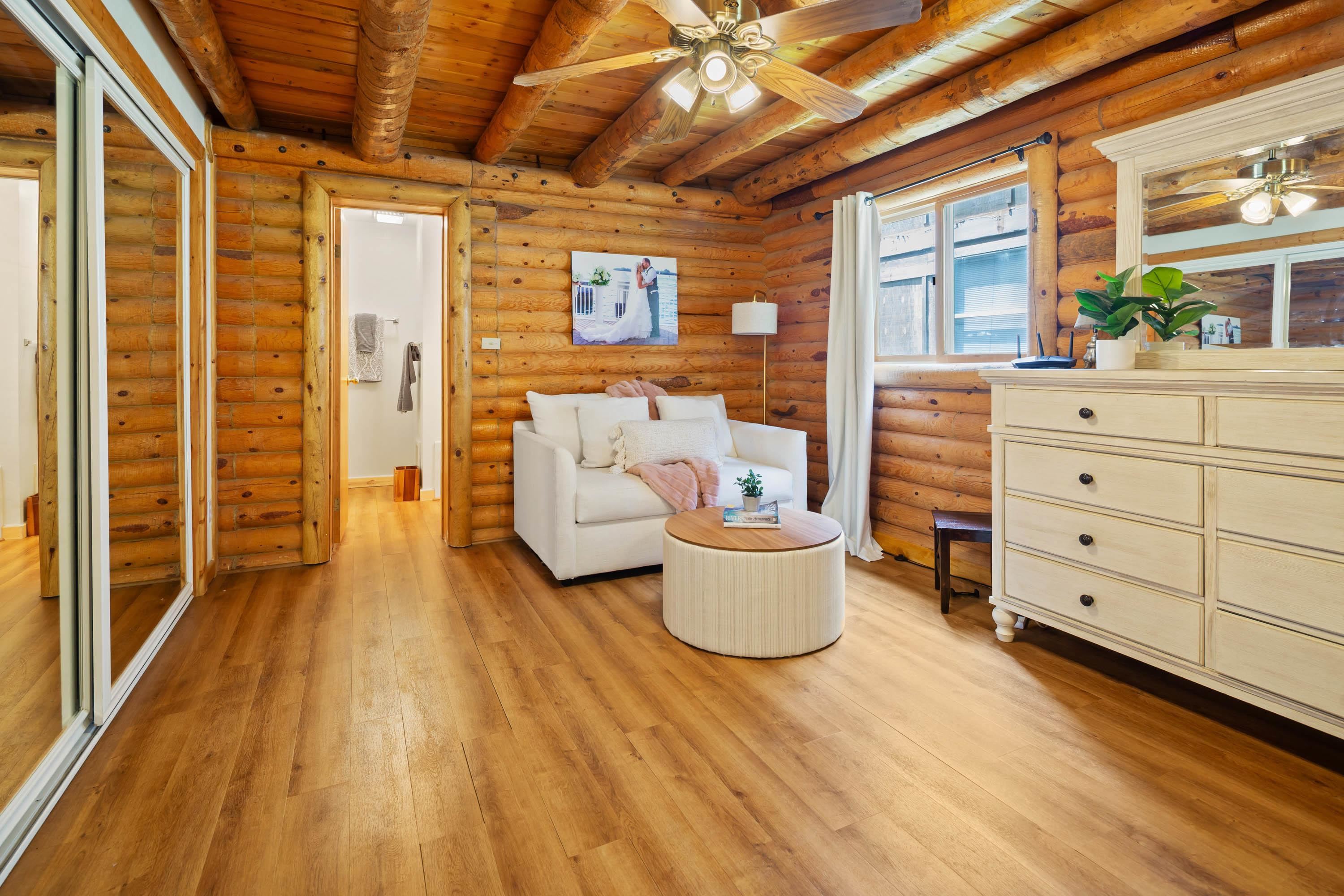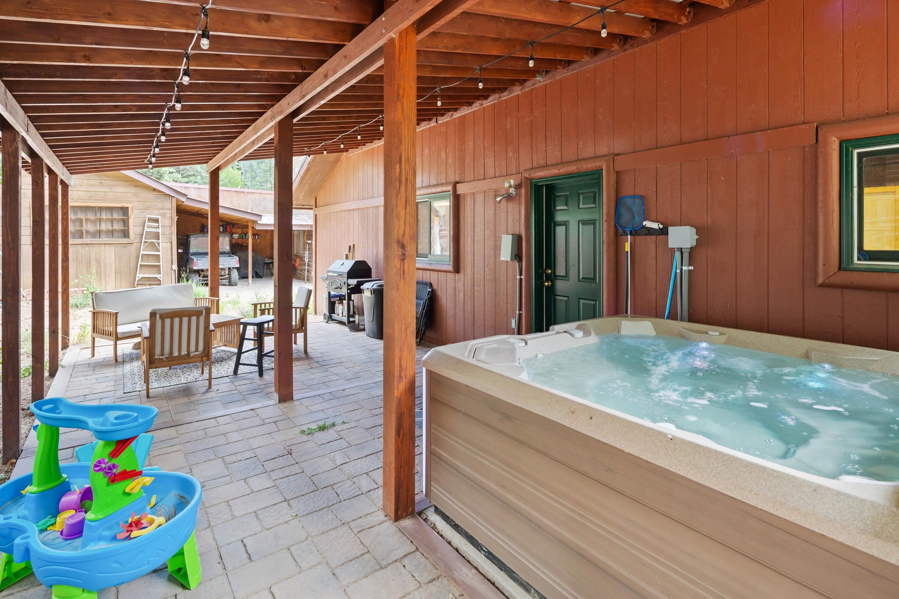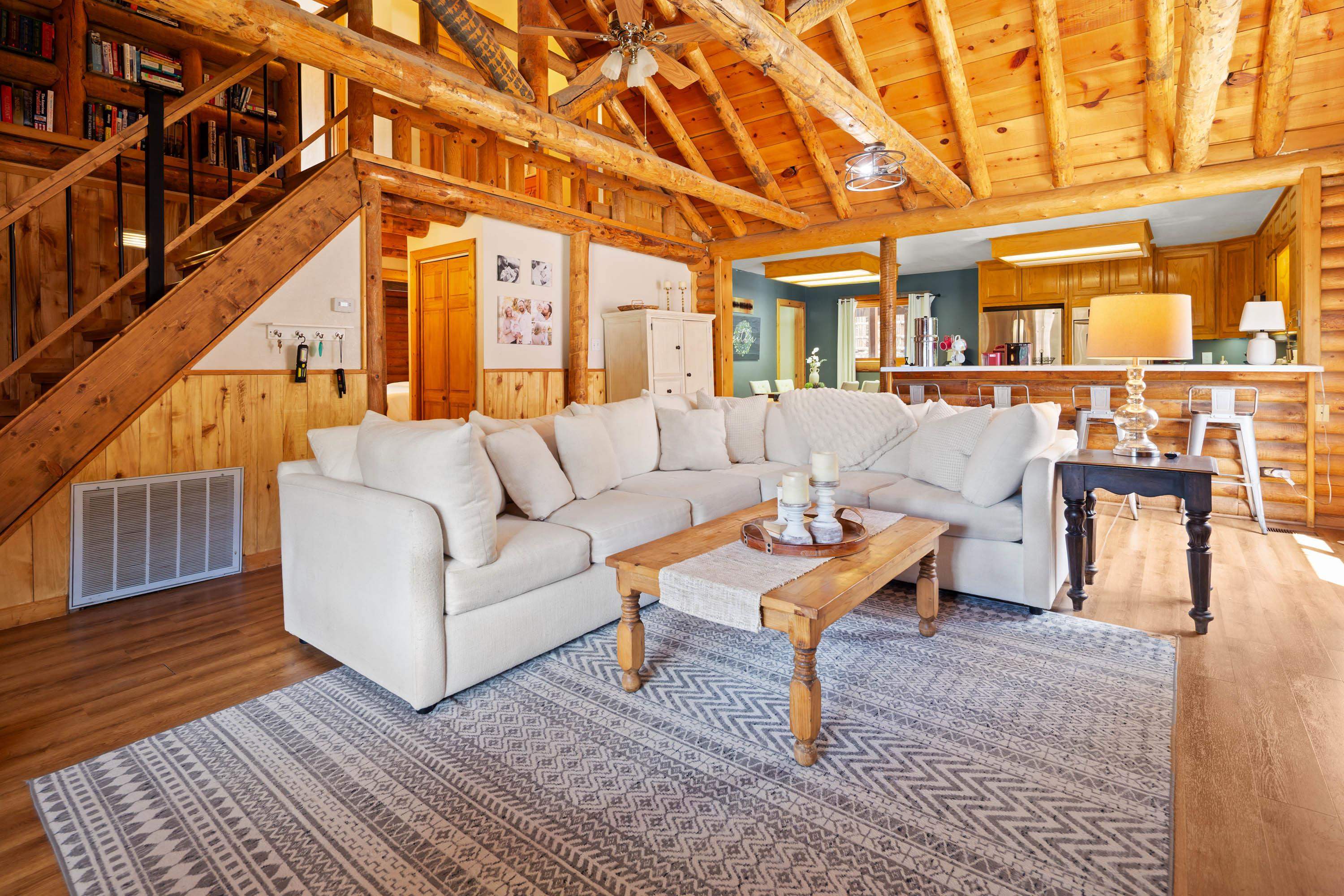 Discover the perfect blend of rustic charm and modern comfort in this 3-bedroom, 3-bath log home located just minutes from the heart of Red River. Set on a level, open lot, this property offers the rare combination of peaceful seclusion and walkable convenience. Close enough to stroll to the shops, restaurants, and events of Main Street, yet far enough to unwind in quiet comfort away from the crowds. The main living area welcomes you with a vaulted wood ceiling, exposed log beams, and a beautiful stone fireplace that anchors the space with warmth and character. Classic log construction adds timeless appeal throughout, complemented by thoughtful updates that make everyday living easy. The main-floor primary suite offers comfort and privacy, with two additional bedrooms and bathrooms to accommodate family and guests. A bonus room off the laundry area, currently used as an exercise space, adds flexibility for a home office, studio, or additional living area. Enjoy mountain mornings or peaceful evenings from the sprawling covered front porch, and relax year-round in the private hot tub on the back porch, surrounded by cool alpine air and wide-open skies. With year-round access and minimal maintenance required, 313 Bitter Creek Rd offers the perfect mountain lifestyle in a location that balances comfort, quiet, and proximity to everything Red River has to offer.This property conveys partially furnished. Ask for the inclusion list when scheduling your showing.