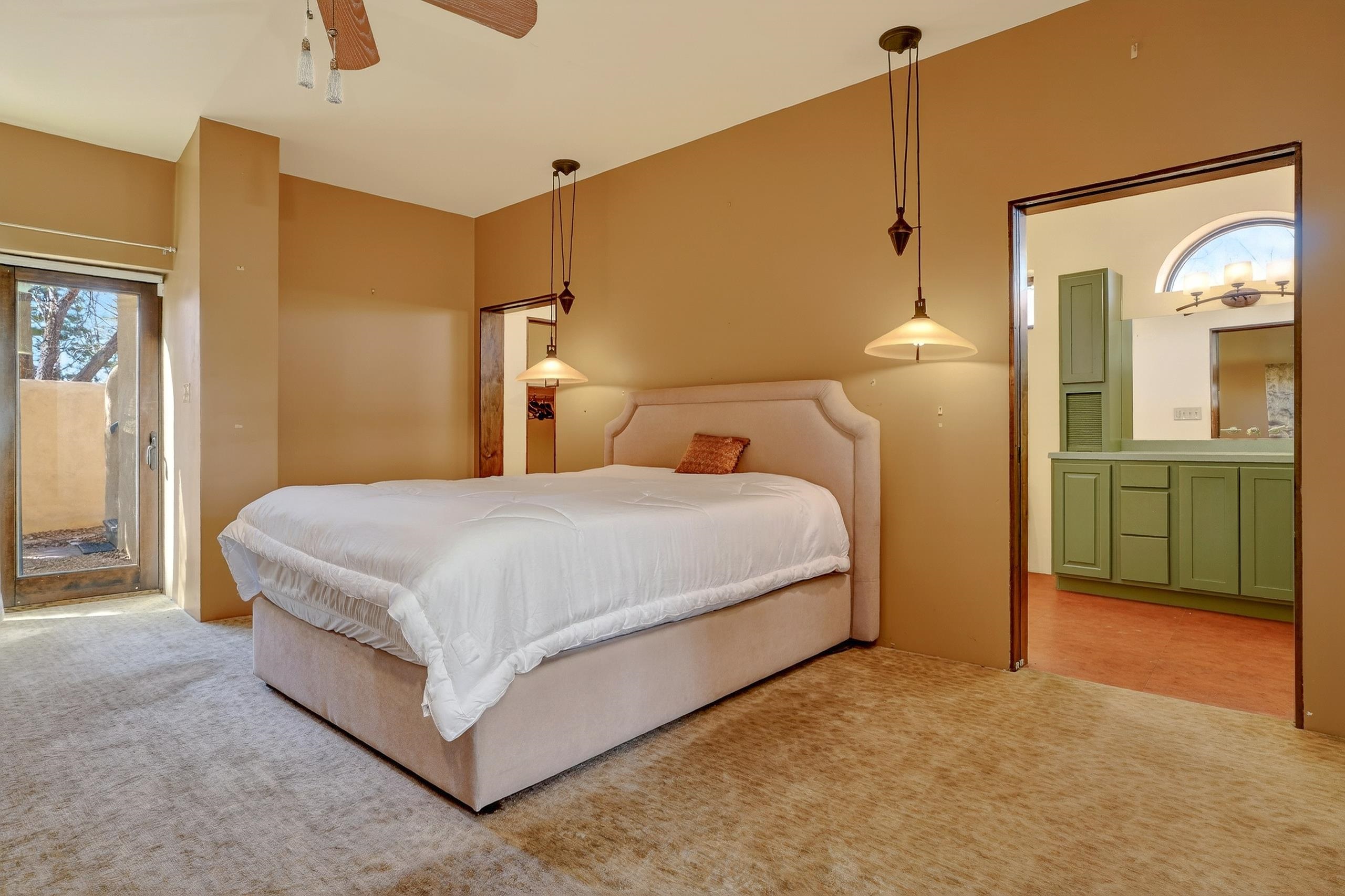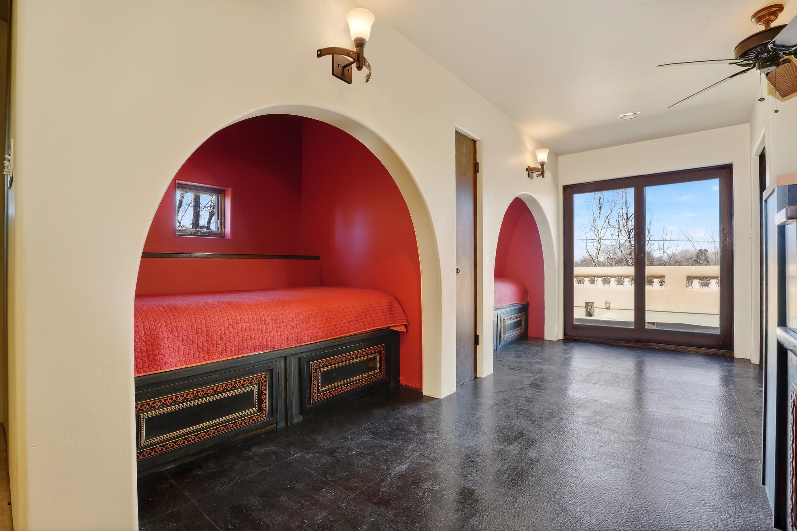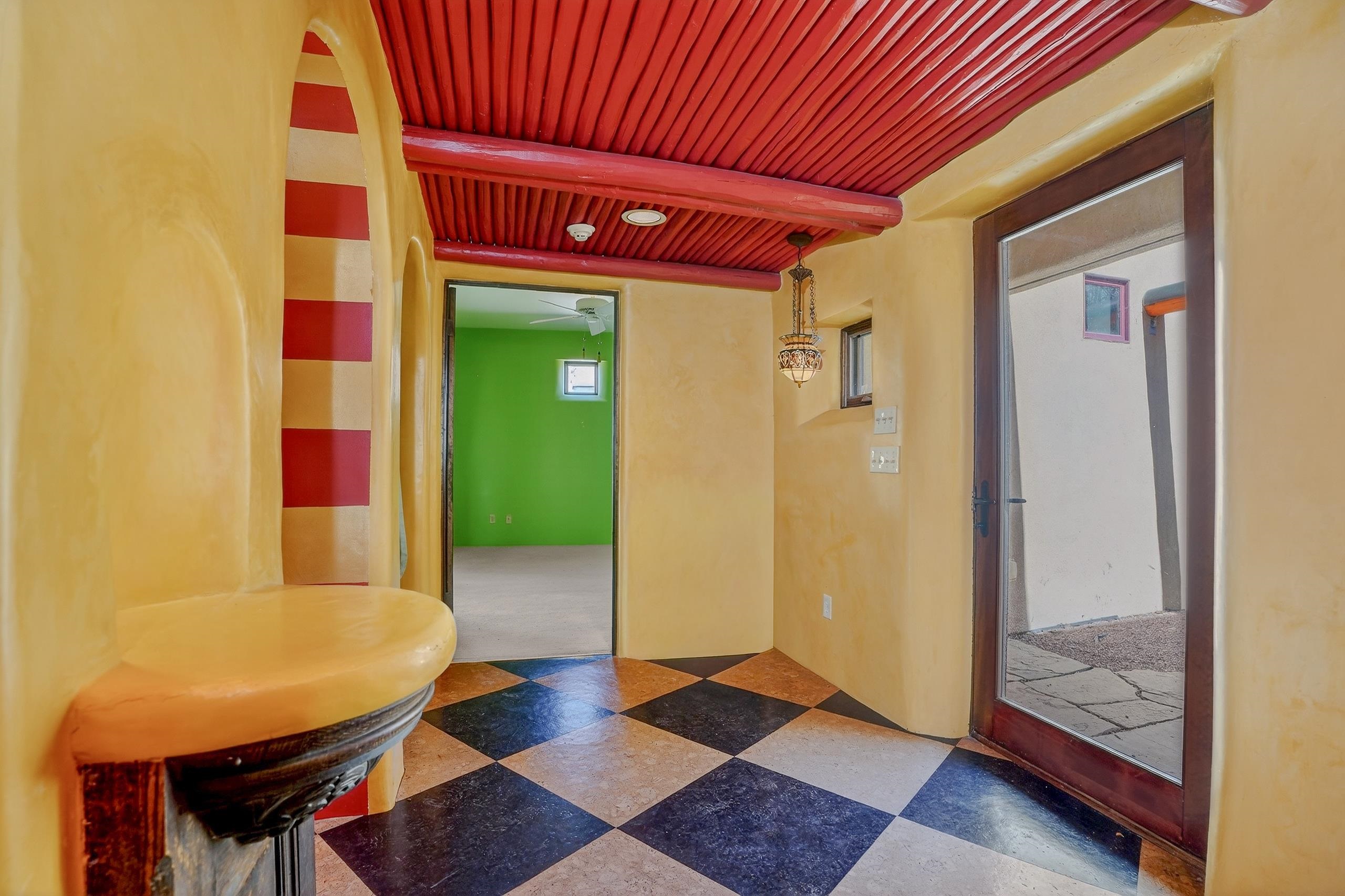 Artful. Inviting. Unexpected. This 3 bedroom, 3.5 bath ensuite residence offers rare privacy in an ideal in-town setting with breathtaking Taos Mountain views. Designed for gathering, the home features a gourmet kitchen, expansive entertaining spaces, and a dramatic enclosed bonus room with fireplace ideal for dining or serene retreat. Whimsical color palettes celebrate the home’s creative spirit, while available architectural plans demonstrate an easy transition to a more traditional floorplan if desired. Moorish-inspired details add texture and warmth throughout. A private single-person elevator connects levels — a distinctive and practical amenity rarely found in Taos homes. Quiet location. Mountain views. Endless potential.