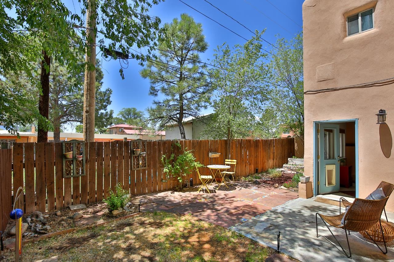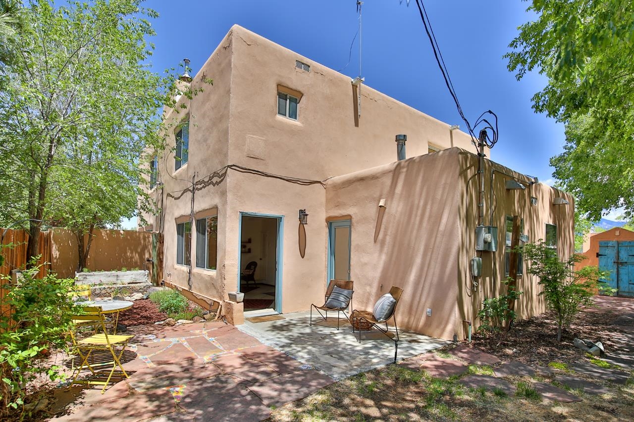 This recently renovated 1560 sq ft, 2 bedroom/2 bath town house at the corner of La Lomita and Don Fernando in the heart of the Historic District is a short stroll to the wonderful amenities of Taos: galleries, music, restaurants, and parks. With views of Taos Mountain directly from your primary bedroom this two story town house offers you a prime location, an updated kitchen (new appliances, new kitchen cabinets and new granite countertops) and updated baths (new vanities and lighting). Shaded and spacious outdoor spaces both in front and back with drip irrigation installed mean you can plant your garden of flowers and veggies this year. The bonus studio room can be a heated workshop or office or even an overflow sleep space for your guests. With ample off-street parking this town house is set to be your easy care home, or practical pied-a-terre in the heart of Taos.