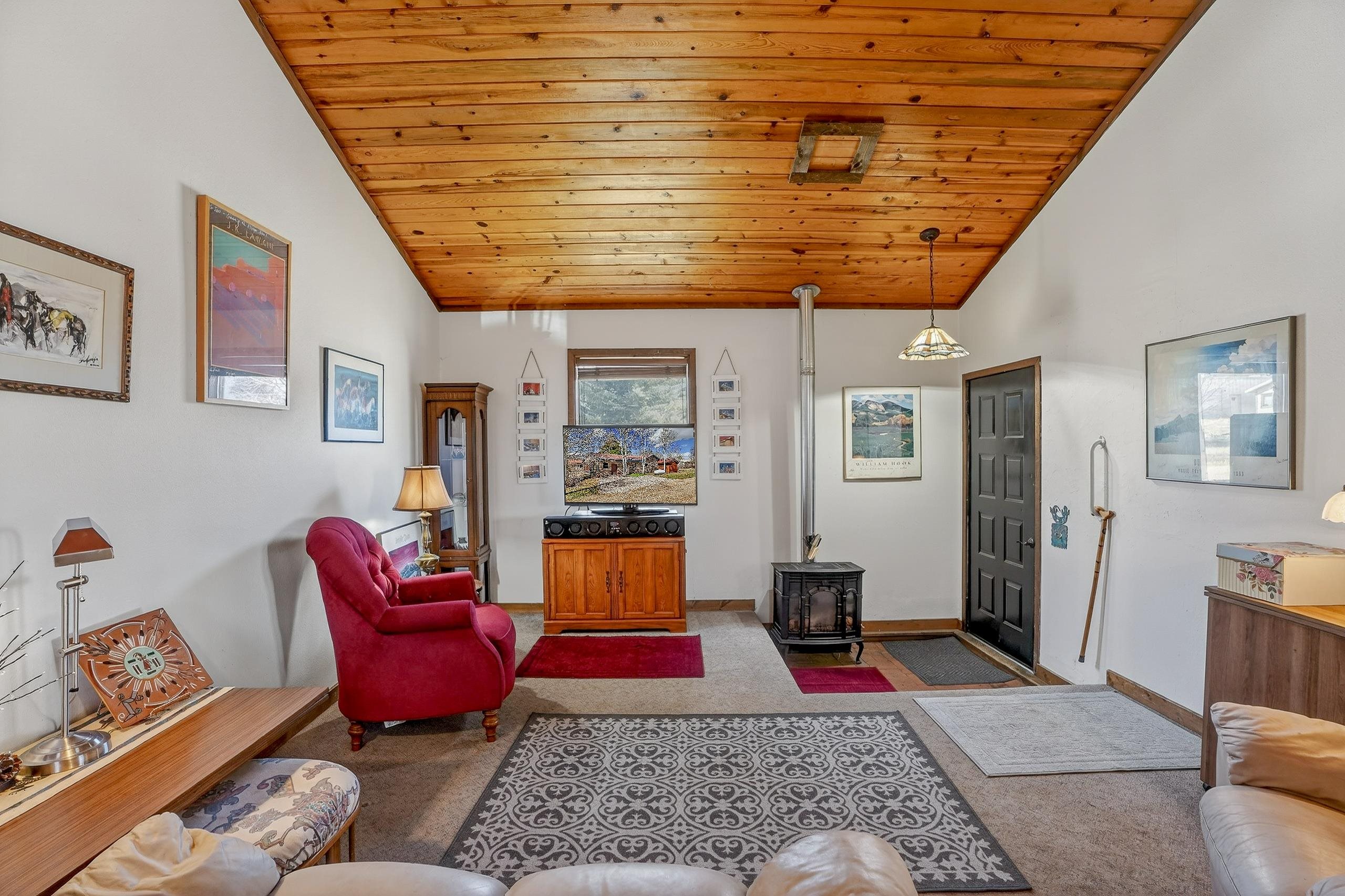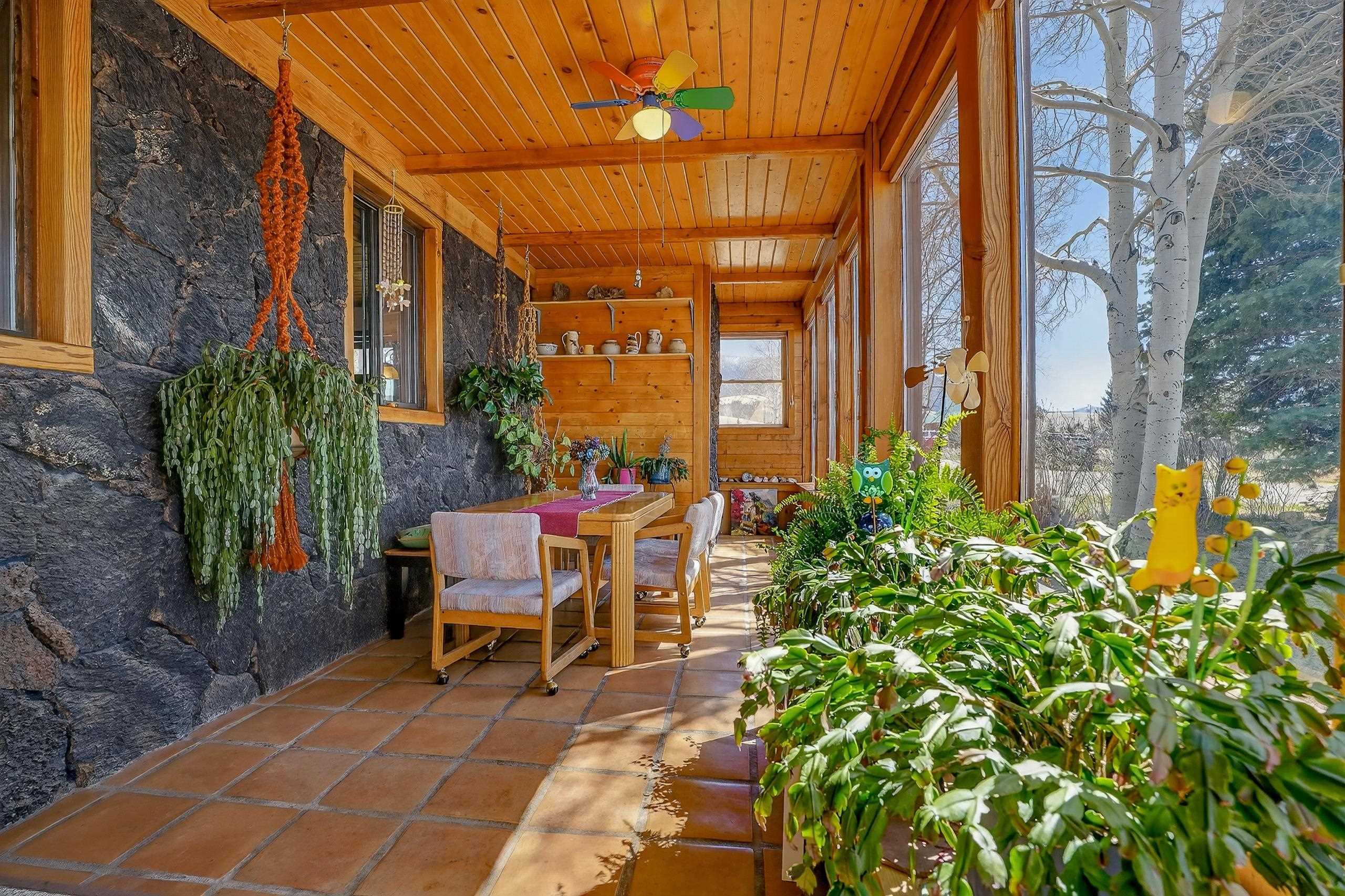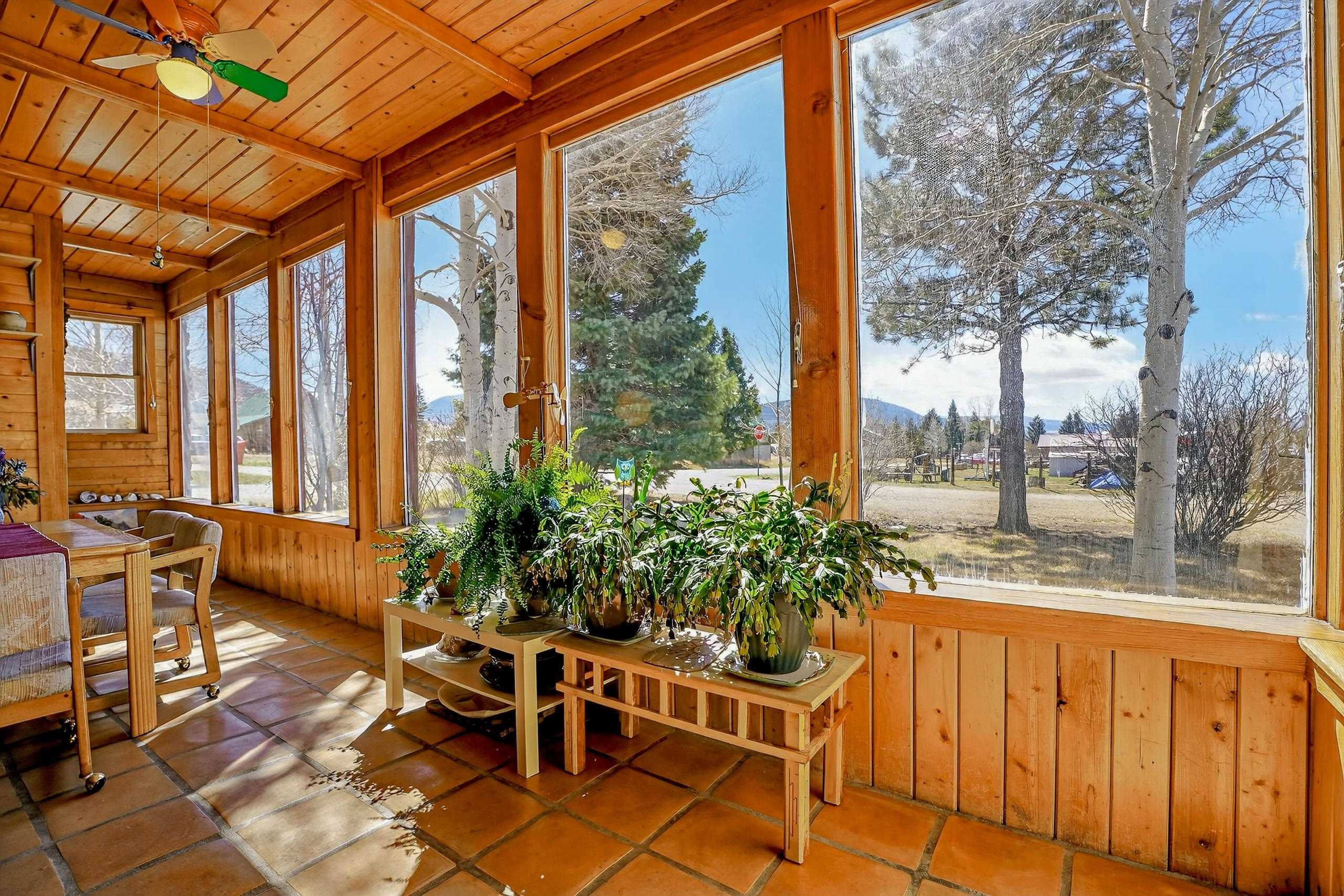 Nestled near the scenic beauty of Eagle Nest Lake, this cozy single-level home offers breathtaking views and peaceful mountain living. The home features three spacious bedrooms. Inside, you’ll find a warm and inviting living room with a convenient gas stove, a kitchen complete with real wood cabinets and countertops. A large sunroom with natural light which provides the ideal spot to relax while enjoying the surrounding landscape. Outside you'll find a thoughtfully maintained yard including a lawn, garden space, and mature aspen trees that add both shade and charm. The property also includes a covered patio, a designated laundry room, and a storage shed for added functionality. With its distinctive custom rock exterior and serene setting, this home blends rustic character with modern comfort. Just minutes to Eagle Nest Lake and not to far from the historic town of Cimarron, Red River and Angel Fire Ski Resort.