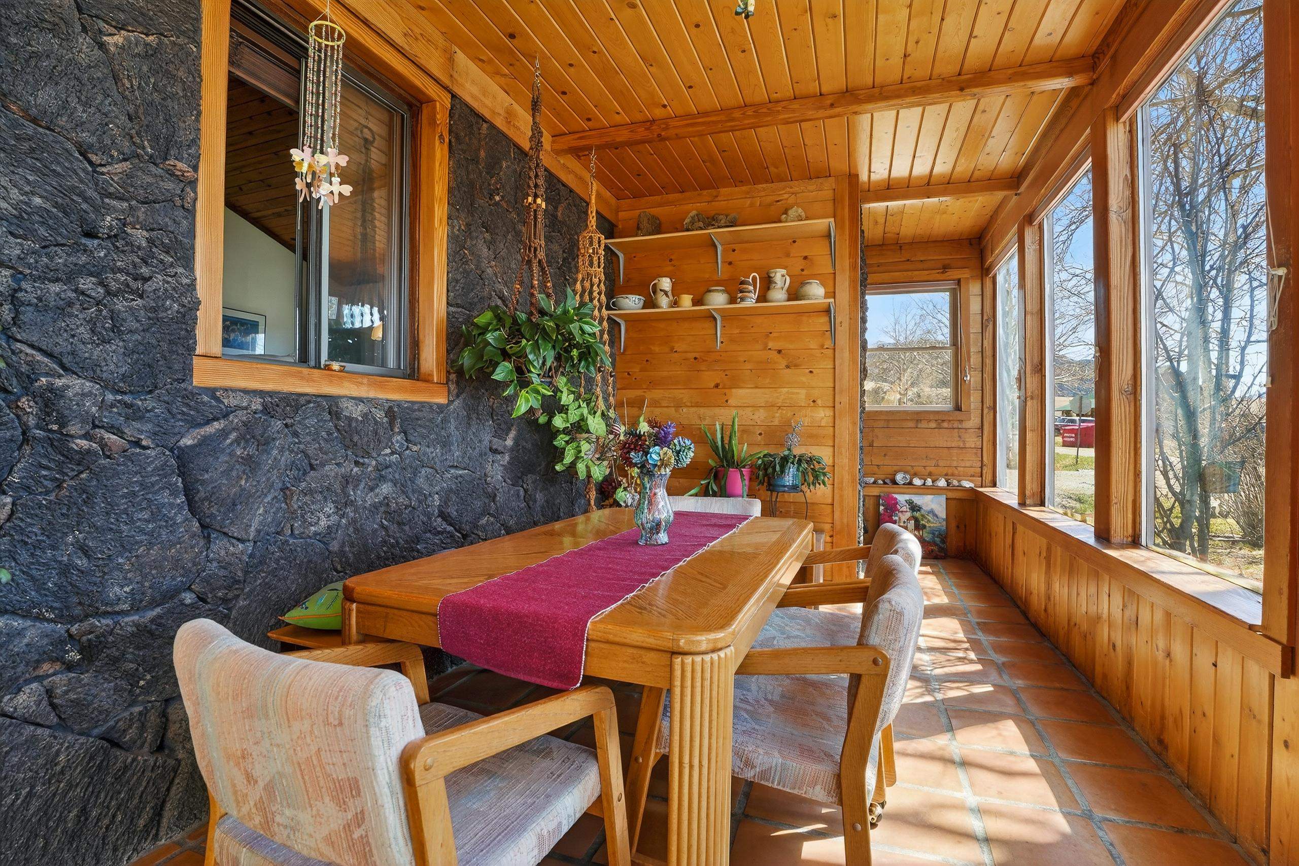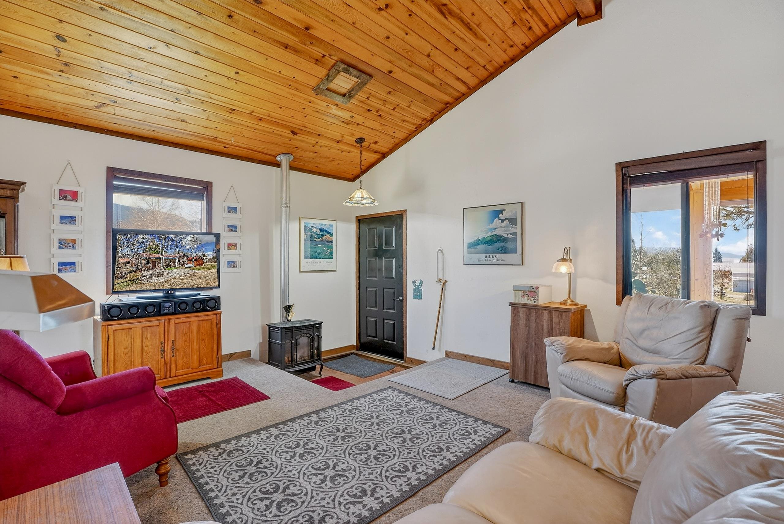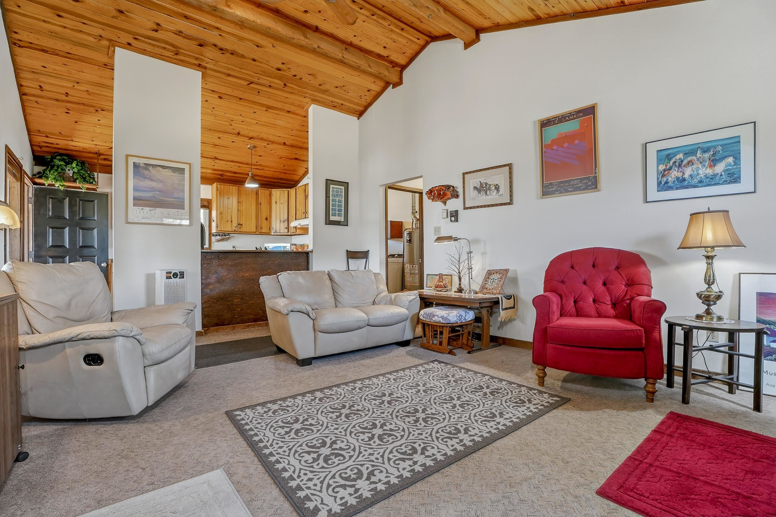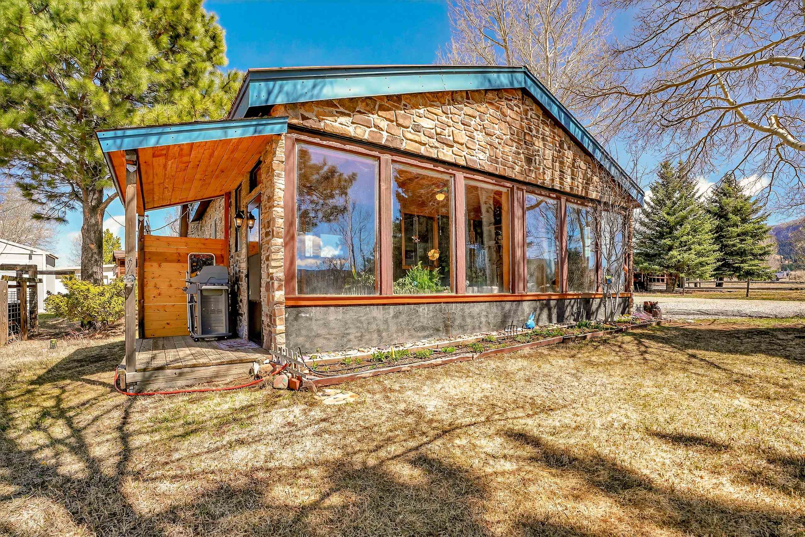 Nestled near the scenic beauty of Eagle Nest Lake, this cozy single-level home offers breathtaking views and peaceful mountain living. The home features three spacious bedrooms. Inside, you’ll find a warm and inviting living room with a convenient gas stove, a kitchen complete with real wood cabinets and countertops. A large sunroom with natural light which provides the ideal spot to relax while enjoying the surrounding landscape. Outside you'll find a thoughtfully maintained yard including a lawn, garden space, and mature aspen trees that add both shade and charm. The property also includes a covered patio, a designated laundry room, and a storage shed for added functionality. With its distinctive custom rock exterior and serene setting, this home blends rustic character with modern comfort. Just minutes to Eagle Nest Lake and not to far from the historic town of Cimarron, Red River and Angel Fire Ski Resort.