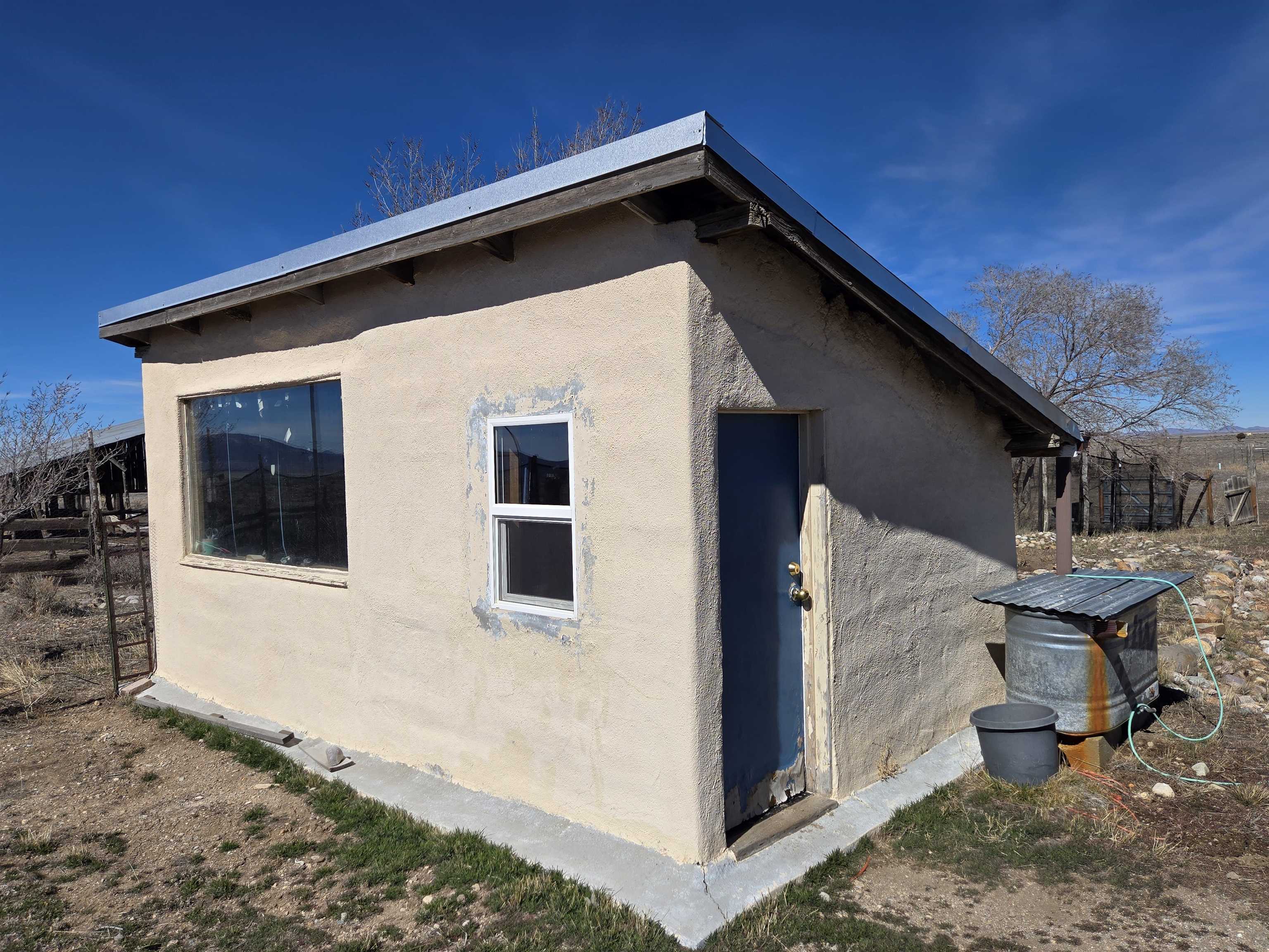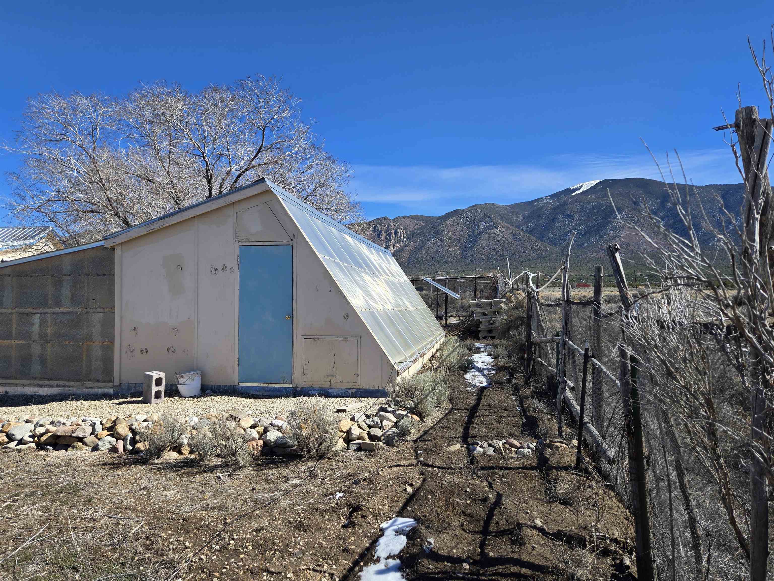 Just north of Questa sits a home and guest house, once an herb and essence farm. There is a studio for the artist, a green house for your chickens, a bocce court for your family and neighborhood gatherings. Guest house studio/bath/kitchen/700 sq. ft Main house has sun room, two bedrooms, large kitchen and living room. 1700 sq.. ft. Property is 1.34 acres. There are several water catchment cisterns to collect precious rainwater for the gardens. Main house has passive solar gain green house area. Mature landscaping. Views to the east of the Sangre de Cristos and then Ute Mountain to the west.