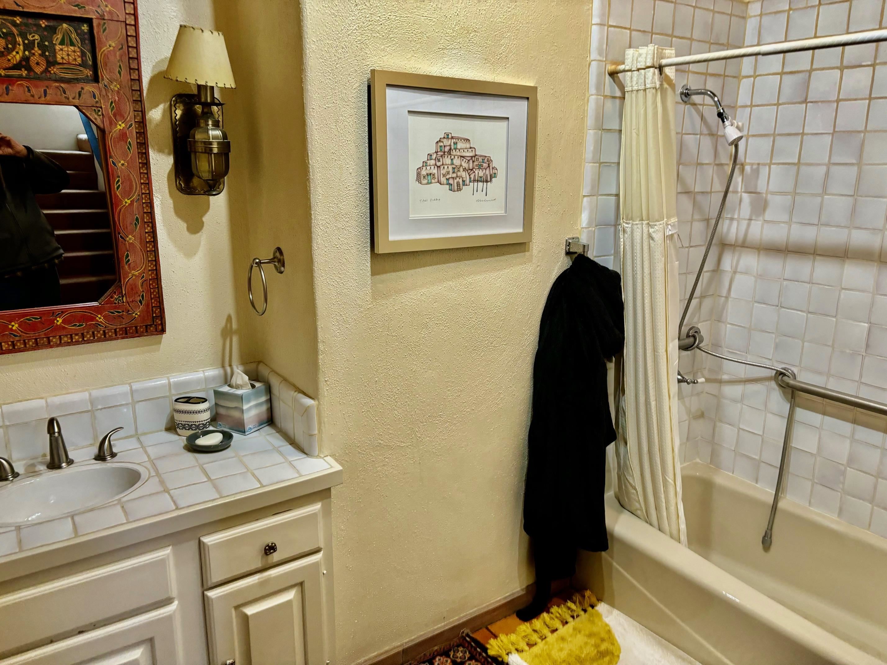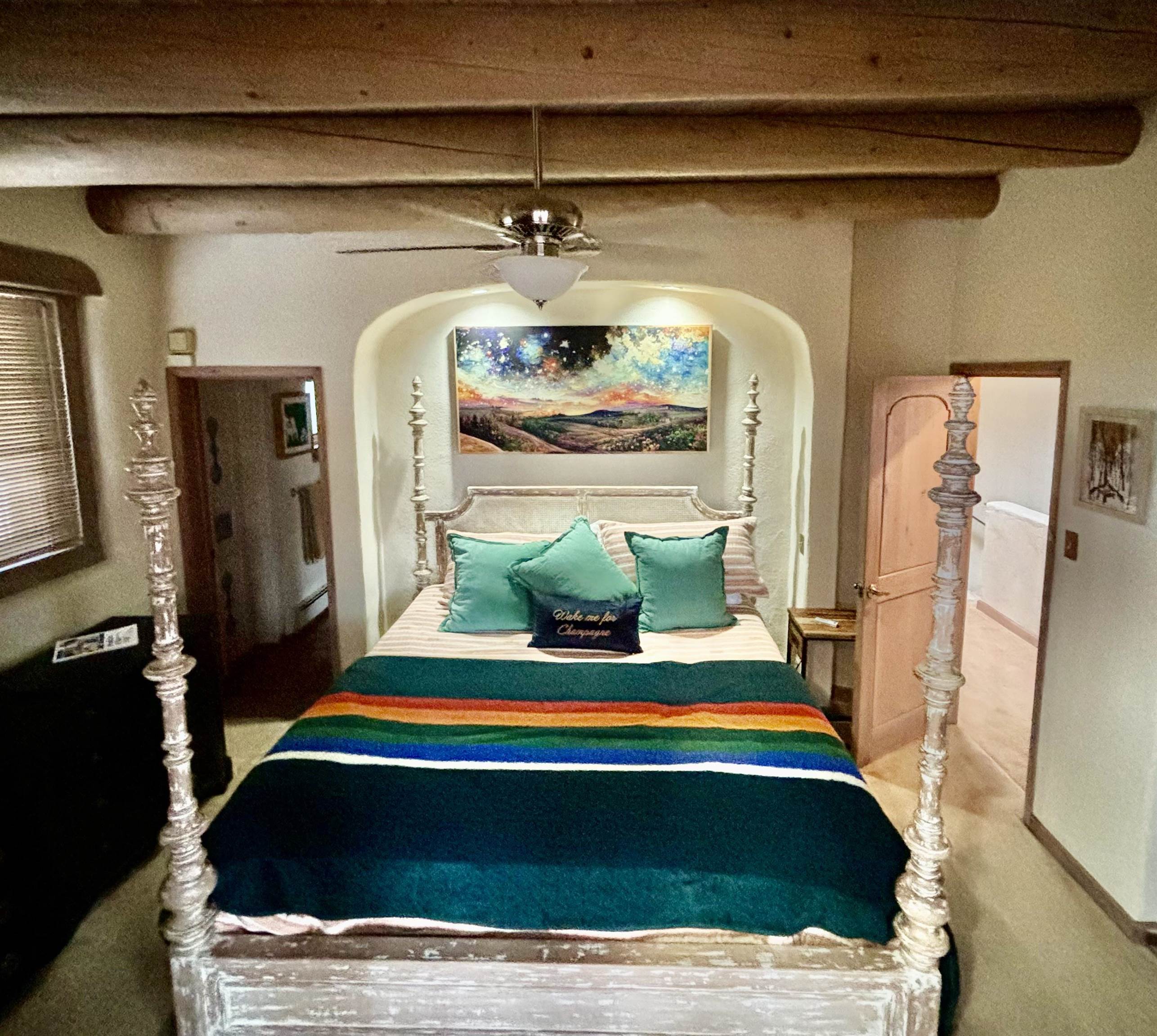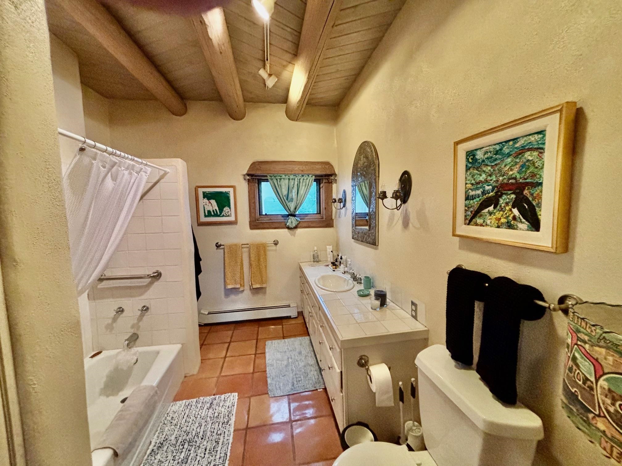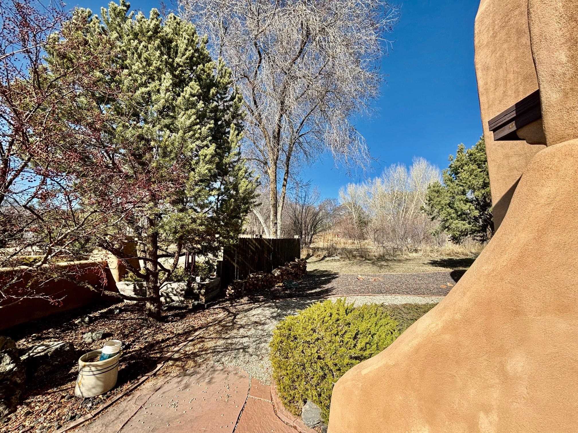 Authentic adobe house located near the historic Taos Plaza and Monte Sagrado. Located at the back end of Spruce Lane, a very quiet and secluded area. The adobe walls are thick. Features three bedrooms and two bathrooms. Two-story house. Features vigas throughout the house with tongue and grove wood. Floors feature wood and tile downstairs and carpet upstairs. The kitchen is large and features stainless steel appliances, built-in wine rack and white cabinets. The house has a formal dining room, and living room. One bedroom is downstairs and two bedrooms are upstairs. Washer and dryer are included. The house also features three fireplaces located in the living room, downstairs bedroom, and primary bedroom upstairs. The primary bedroom is cozy and double doors lead to a gorgeous sun room; plenty of windows and natural light. This room can be used in many different ways. The primary bedroom has a mini-split system for instant heating and air conditioning. The house has several multiple, large skylights. All this house is spread out over 2,188 square feet. The outside has superb landscaping including many trees, grass, flagstone patios and of course a free standing hot tub. This house is indeed a rare find. Come and see it. The square footage is not guaranteed by the seller or the broker so if this is of importance to the buyer then the buyer shall have the house measured by an expert.