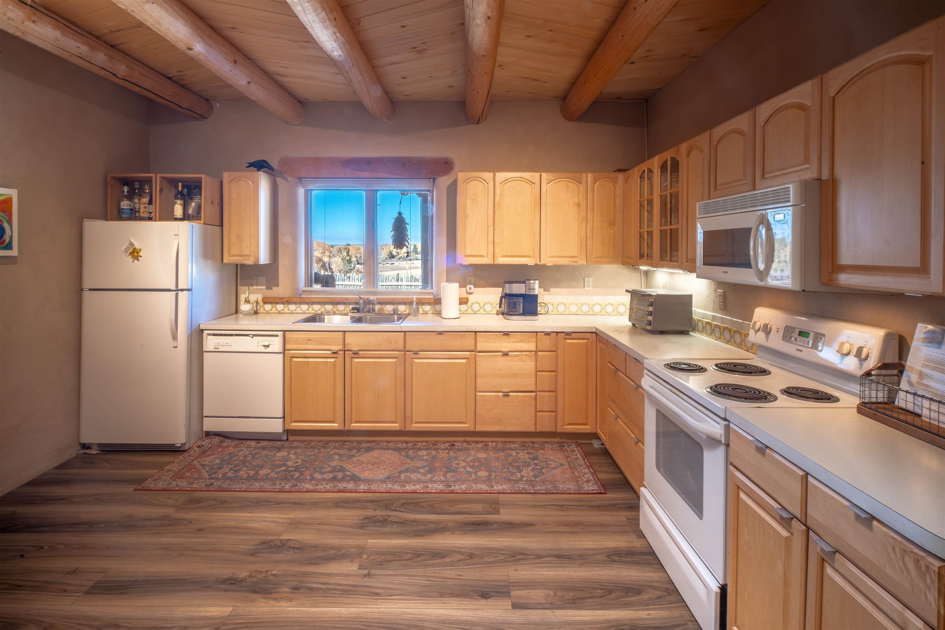 In-Town Living with Views, Privacy, and Timeless Southwestern Charm Opportunities like this don’t come along often. Nestled in the heart of Taos yet tucked within the quiet charm of a small private community, Pond Village Subdivision offers the perfect balance of convenience and tranquility. Located within easy walking distance of the historic Taos Plaza, this established neighborhood features a thoughtful mix of charming homes and newly developed homesites. This beautifully maintained 2-bedroom, 2-bath home fronts Valverde Street and enjoys sweeping views across open western lands—where breathtaking sunsets paint the evening sky in brilliant color. The inviting front portal is sure to become a favorite gathering spot, perfect for savoring morning coffee as the day begins or unwinding in the evening while nature puts on its nightly show. Inside, the spacious living area is anchored by a traditional kiva fireplace, creating a warm and welcoming space for relaxing or entertaining. The open floor plan flows effortlessly into the well-appointed kitchen, featuring generous counter space, ample cabinetry, and a layout designed for both everyday living and hosting friends and family. Two comfortable bedrooms and two bathrooms showcase thoughtful Southwestern details throughout—from soft plaster walls and exposed vigas to radiant heated floors that provide comfort and luxury year-round. The second bedroom offers flexibility as a guest room, home office, or creative retreat. Outdoors, the private fenced yard to the east provides shade and serenity, with a charming pergola offering the perfect place to relax, garden, or enjoy time with pets. An oversized storage room and separate laundry area add practicality and convenience. As part of the Pond Village community, homeowners benefit from the ease of an established HOA while enjoying a peaceful setting just moments from Taos’ renowned restaurants, galleries, schools, and shops. If you’ve been searching for the perfect blend of in-town convenience, Southwestern character, and low-maintenance living, this inviting Taos home is ready to welcome you.