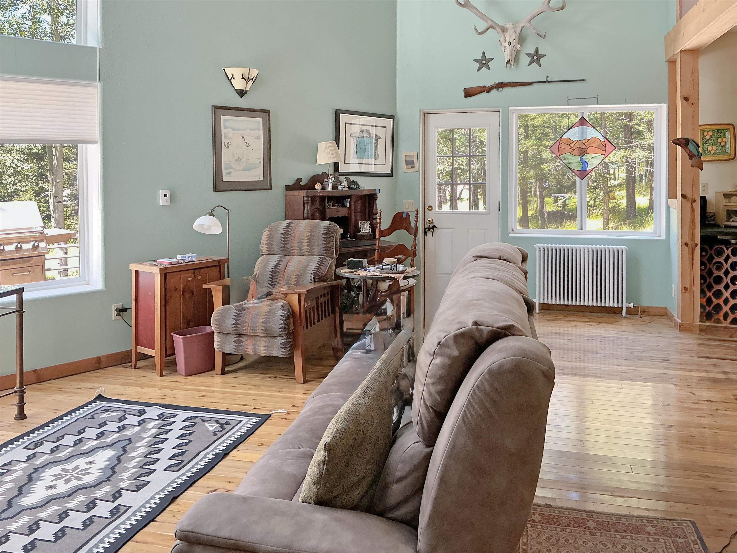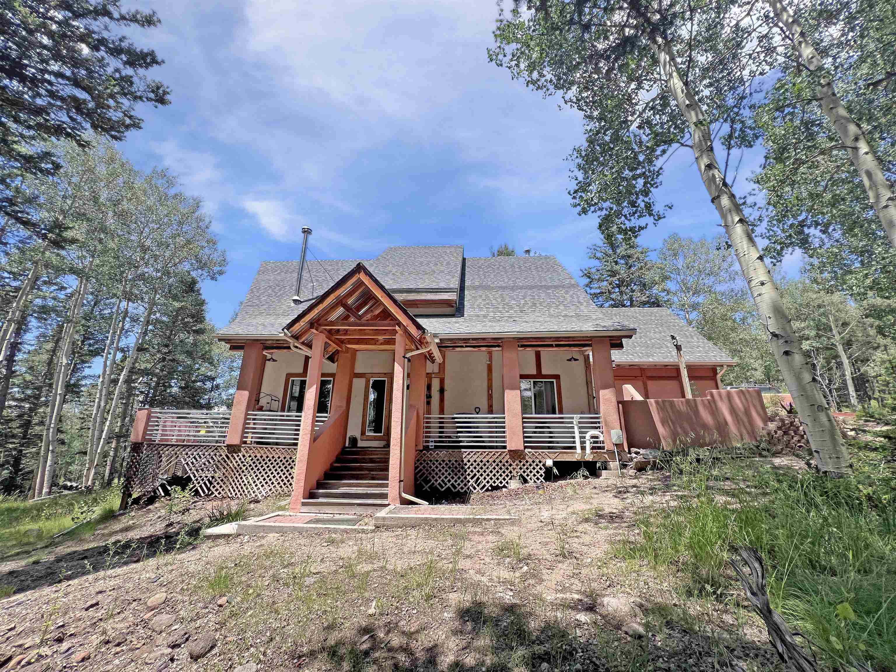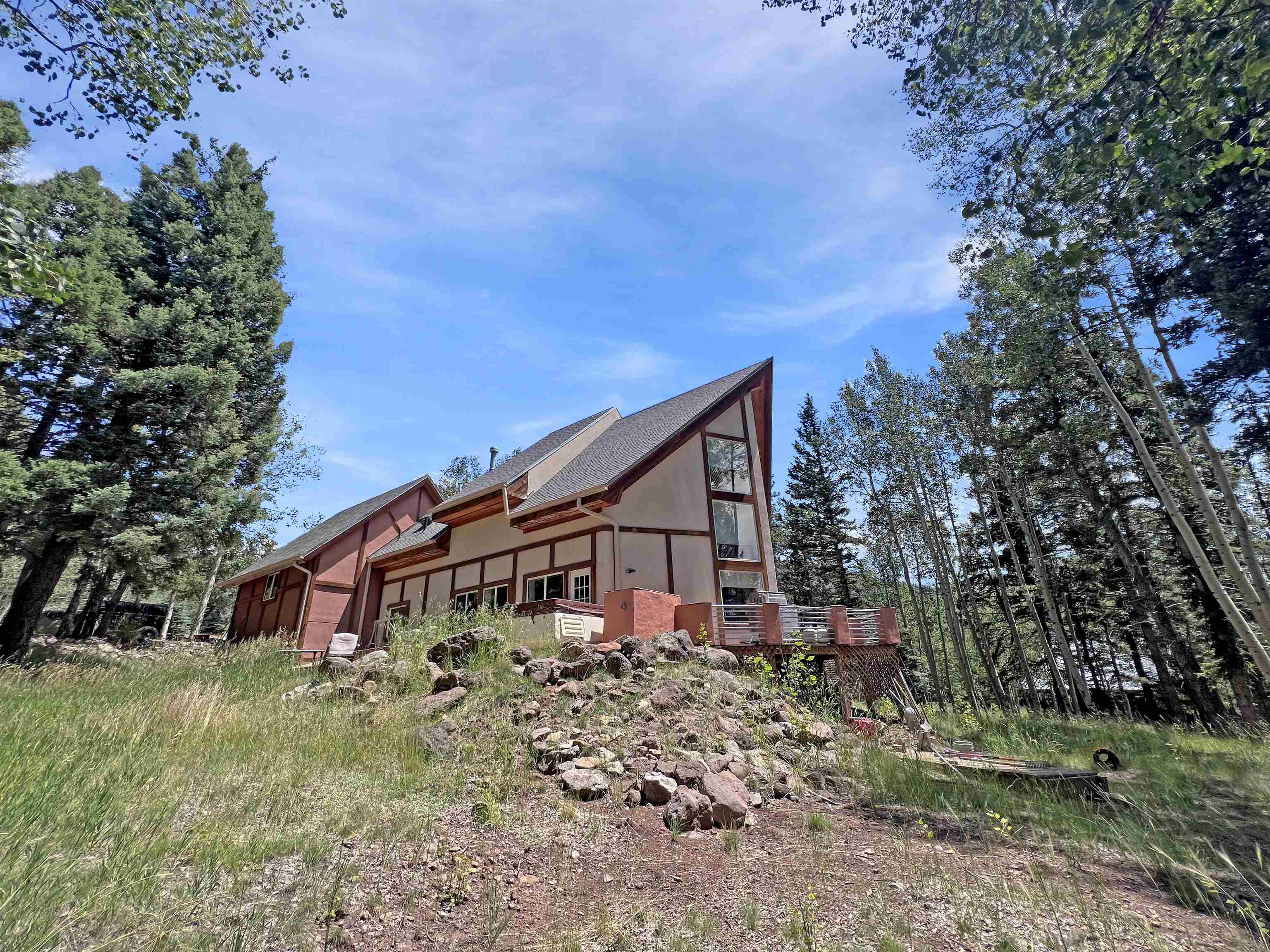 Welcome to your private mountain retreat! This beautiful and unique 2-bedroom, 2-bath home, tucked away on 0.75-acres and with a greenbelt below the house, offers the perfect blend of natural light and rustic charm. Inside, you'll find vaulted ceilings and expansive windows that frame the tall pines outside. Custom finishes throughout the home add character, and the open loft provides flexible space for an office or bunk area. The basement features a large workshop, and a bonus half-bath is conveniently located in the workshop area. Per the owner, construction is Double Wall Framing exterior 2x6 exterior -1"air gap - 2x4 interior. Also note a new boiler was recently installed. Head down the mountain to enjoy Angel Fire's winter and summer activities such as skiing, snowboarding, snowshoeing, cross country skiing, as well as hiking, fishing, golf on AF's PGA rated 18-hole course, and mountain biking on the premier AF Bike Park. You'll love being just minutes from amenities and activities while enjoying the privacy of your own woodland haven! Call us today to schedule a showing!