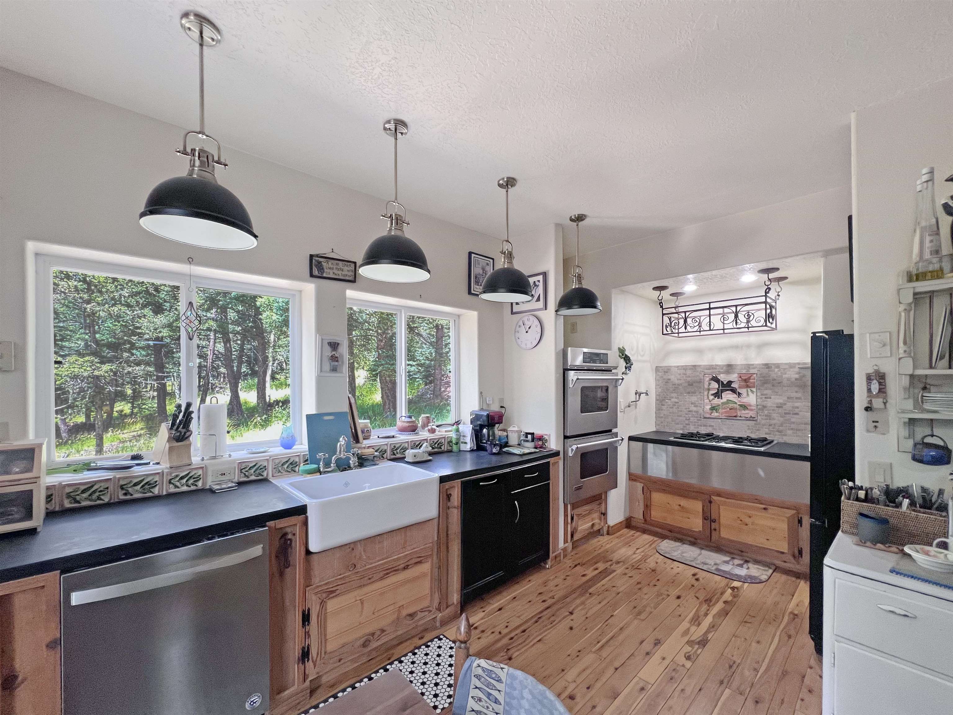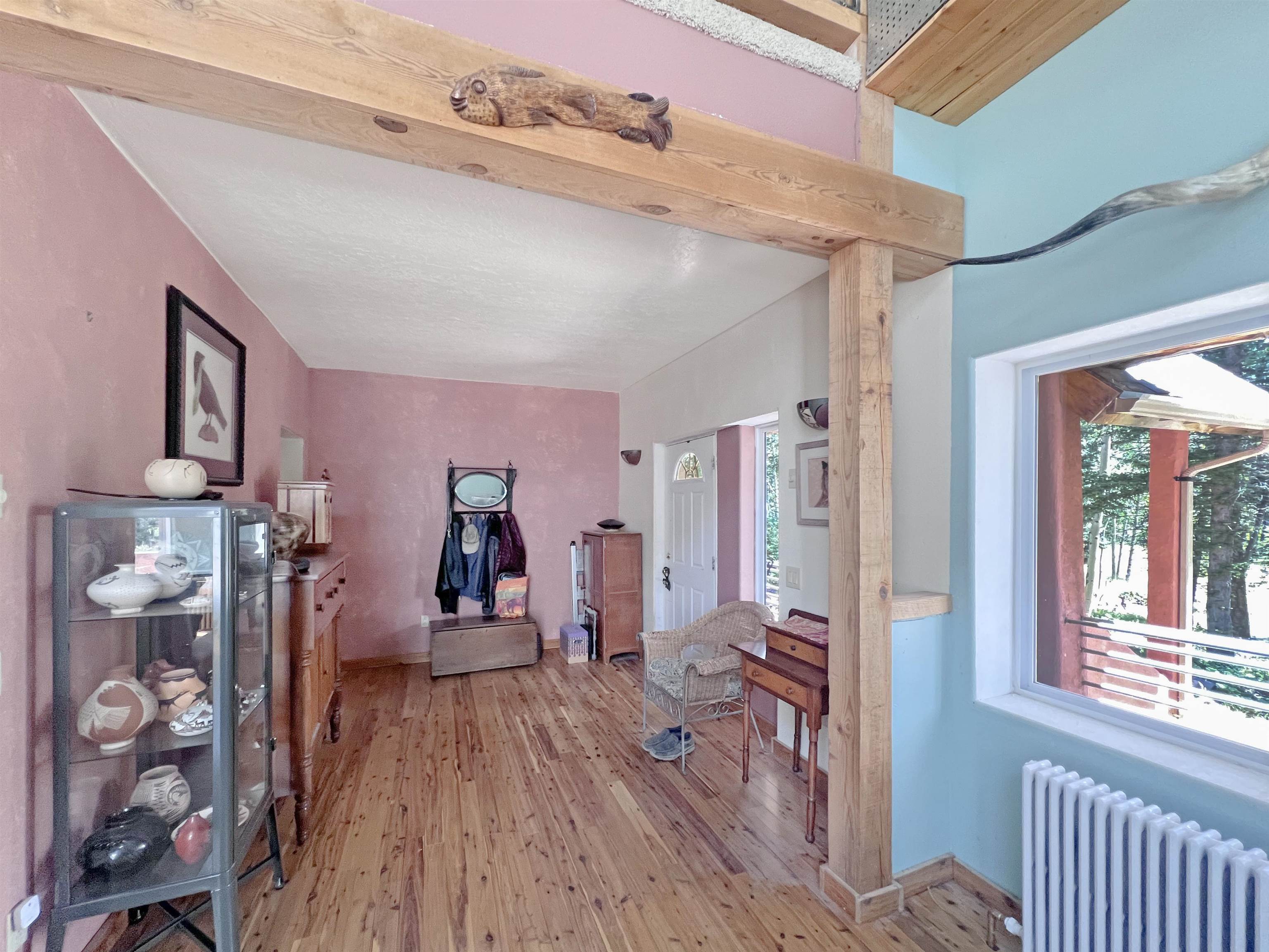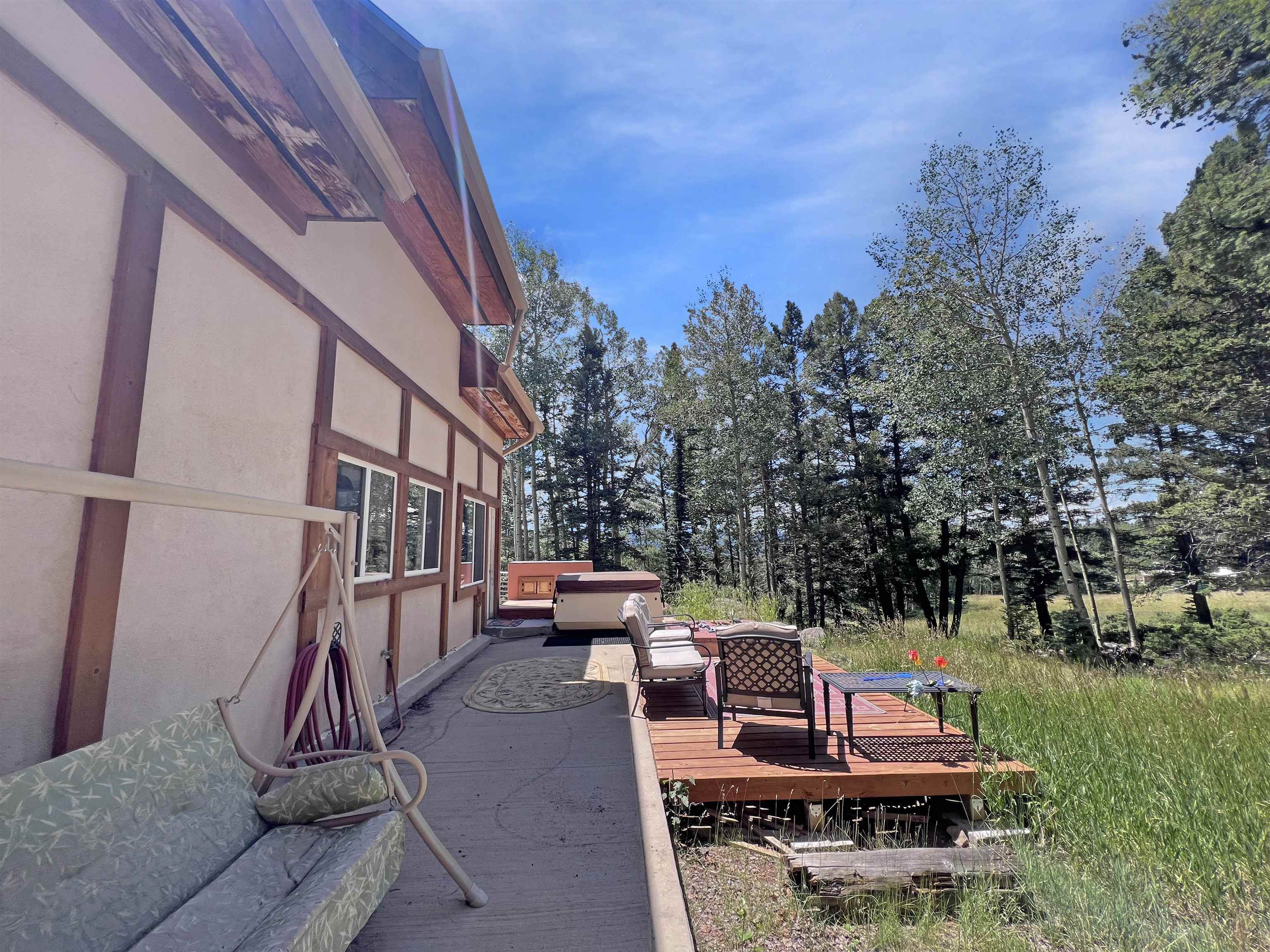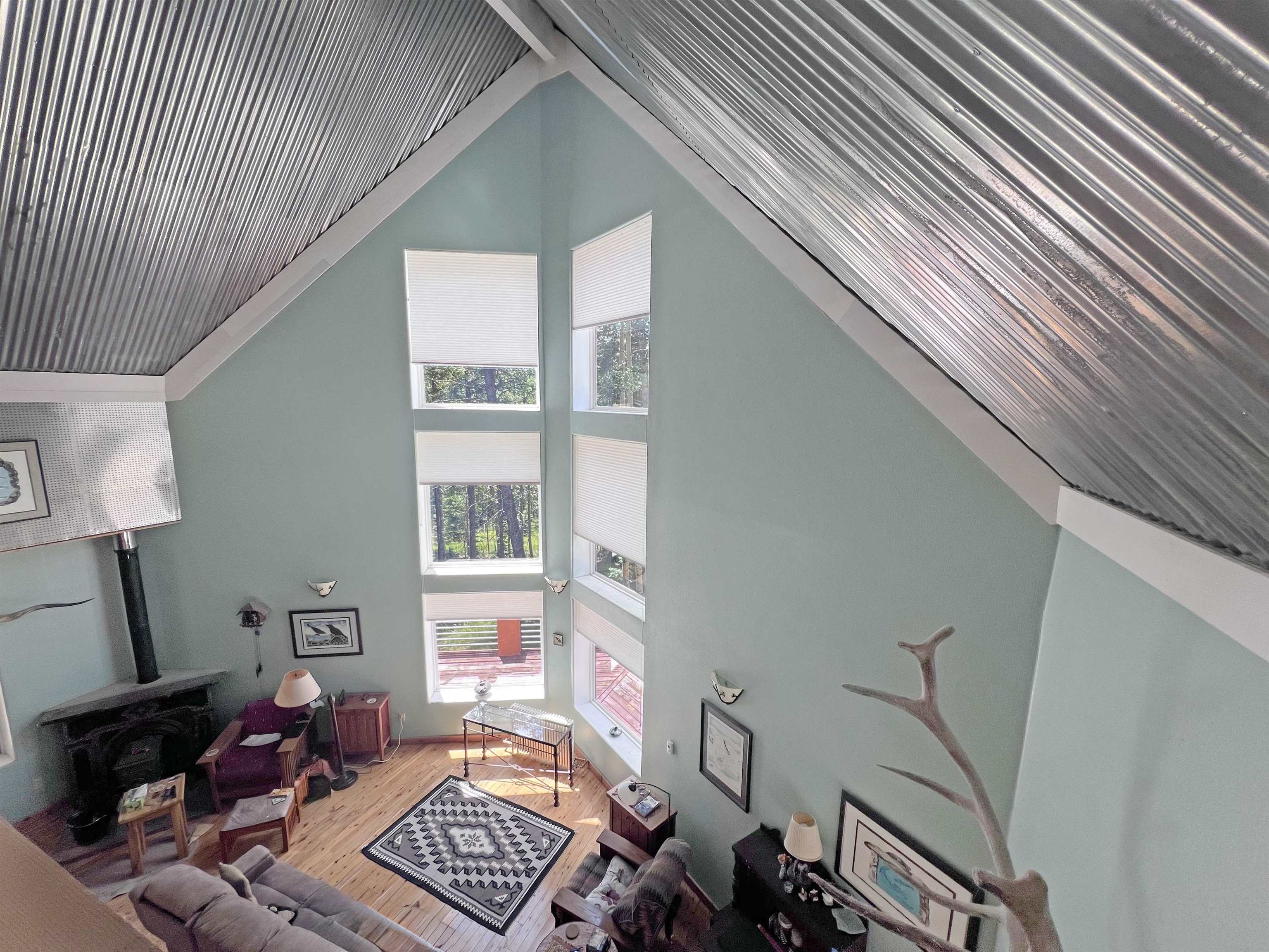 Welcome to your private mountain retreat! This beautiful and unique 2-bedroom, 2-bath home, tucked away on 0.75-acres and with a greenbelt below the house, offers the perfect blend of natural light and rustic charm. Inside, you'll find vaulted ceilings and expansive windows that frame the tall pines outside. Custom finishes throughout the home add character, and the open loft provides flexible space for an office or bunk area. The basement features a large workshop, and a bonus half-bath is conveniently located in the workshop area. Per the owner, construction is Double Wall Framing exterior 2x6 exterior -1"air gap - 2x4 interior. Also note a new boiler was recently installed. Head down the mountain to enjoy Angel Fire's winter and summer activities such as skiing, snowboarding, snowshoeing, cross country skiing, as well as hiking, fishing, golf on AF's PGA rated 18-hole course, and mountain biking on the premier AF Bike Park. You'll love being just minutes from amenities and activities while enjoying the privacy of your own woodland haven! Call us today to schedule a showing!