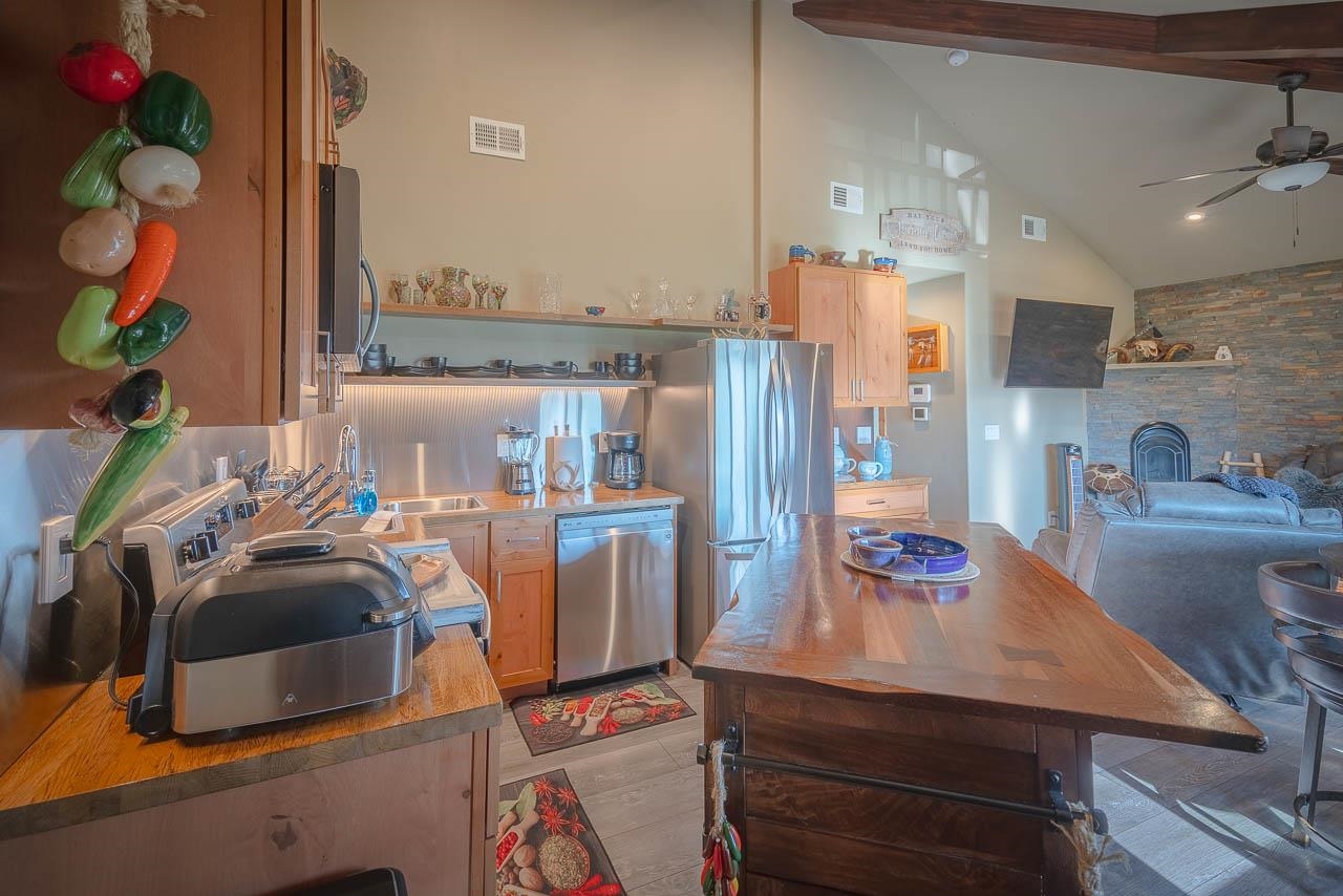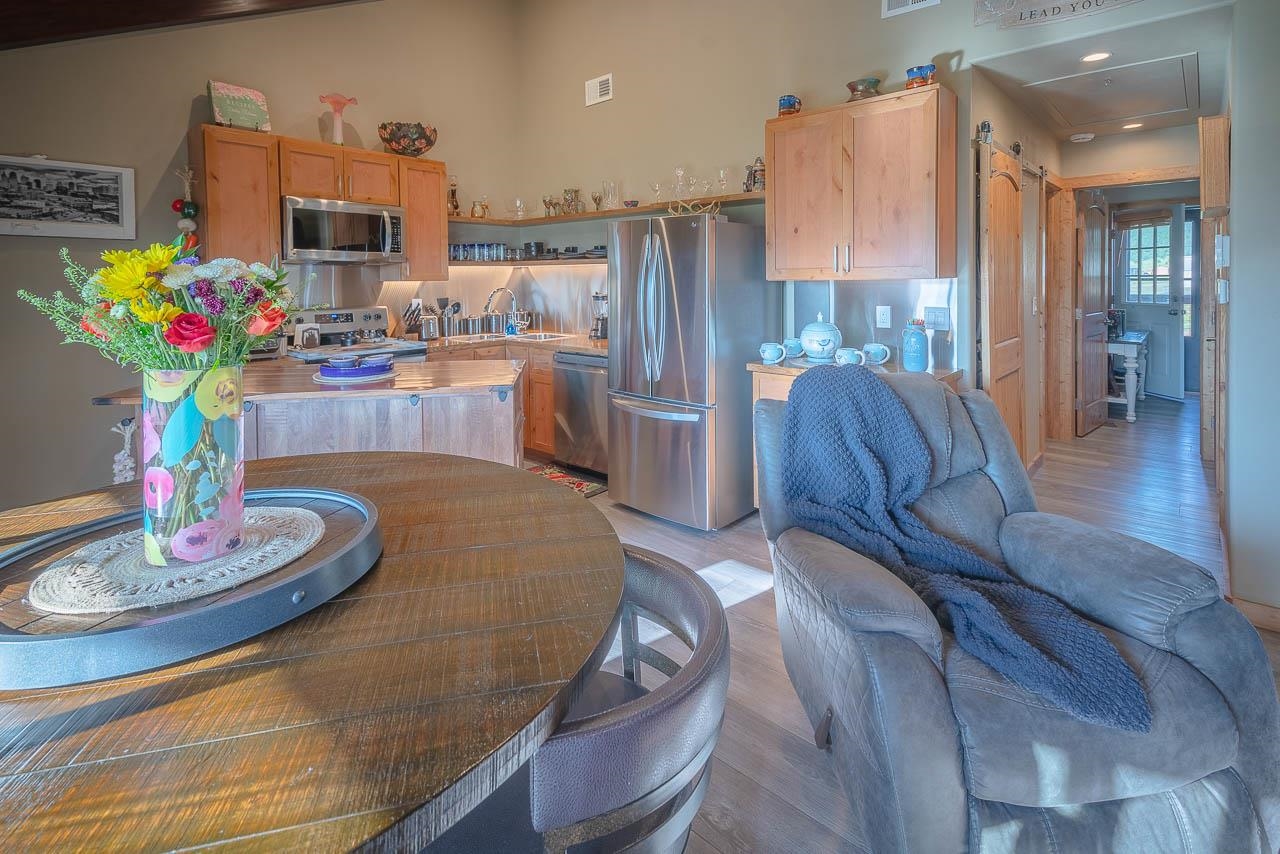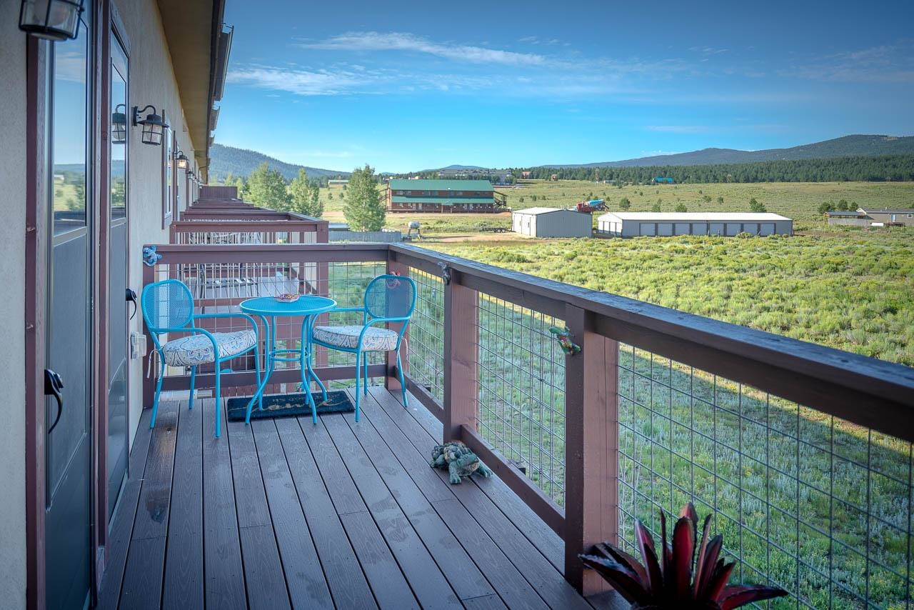 PRICE IMPROVEMENT! Welcome to Mountain View Villas, one of Angel Fire’s most desirable condominium communities! These are the newest two-bedroom, two-bathroom condos in the area, with no future developments planned in the Village, making this an exclusive opportunity to own in a prime location, which is easily accessible in the winter months. Perched on the second level, this stunning condo offers the perfect blend of cozy retreat and high-end comfort. Take the elevator, or covered stairwell, up to a beautifully remodeled unit, fully furnished and thoughtfully upgraded with luxury finishes. The open-concept living, dining and kitchen area is bathed in natural light, featuring soaring high ceilings, a striking rock-accented gas fireplace, and modern stainless-steel appliances, including a stylish backsplash and a full-size front-loading washer and dryer. The primary en-suite is a private oasis with double sinks and exquisite soaking tub, while both bedrooms provide direct access to a private oversized deck, perfect for soaking in the breathtaking, southwest-facing mountain views. The second bathroom has a tiled walk-in shower and upgraded finishes. This is a CORNER UNIT, which means only ONE shared interior wall, and this also affords an OVERSIZED balcony space that is also partially covered, with views of Wheeler Peak. With just 19 exclusive units, Mountain View Villas offers conveniences like an exterior 3x3 owner’s storage closet that is covered, and an elevator for easy access. Each unit also has a reserved parking space. There is NO RESORT MEMBERSHIP REQUIRED with Mountain View Villas. This important detail ALLOWS FOR CONVENTIONAL FINANCING, instead of the non-warrantable condo financing required on the other resort condo communities. NO INSURANCE ISSUES with this condo community because of its fire rating and defensible space. You can enjoy everything the Enchanted Circle has to offer, from world-class skiing, mountain biking, horseback riding, tons of hiking options, to vibrant local dining and entertainment. This mostly furnished, turn-key condo is ready for your mountain escape or a lucrative short-term rental investment. Don’t miss this rare opportunity!