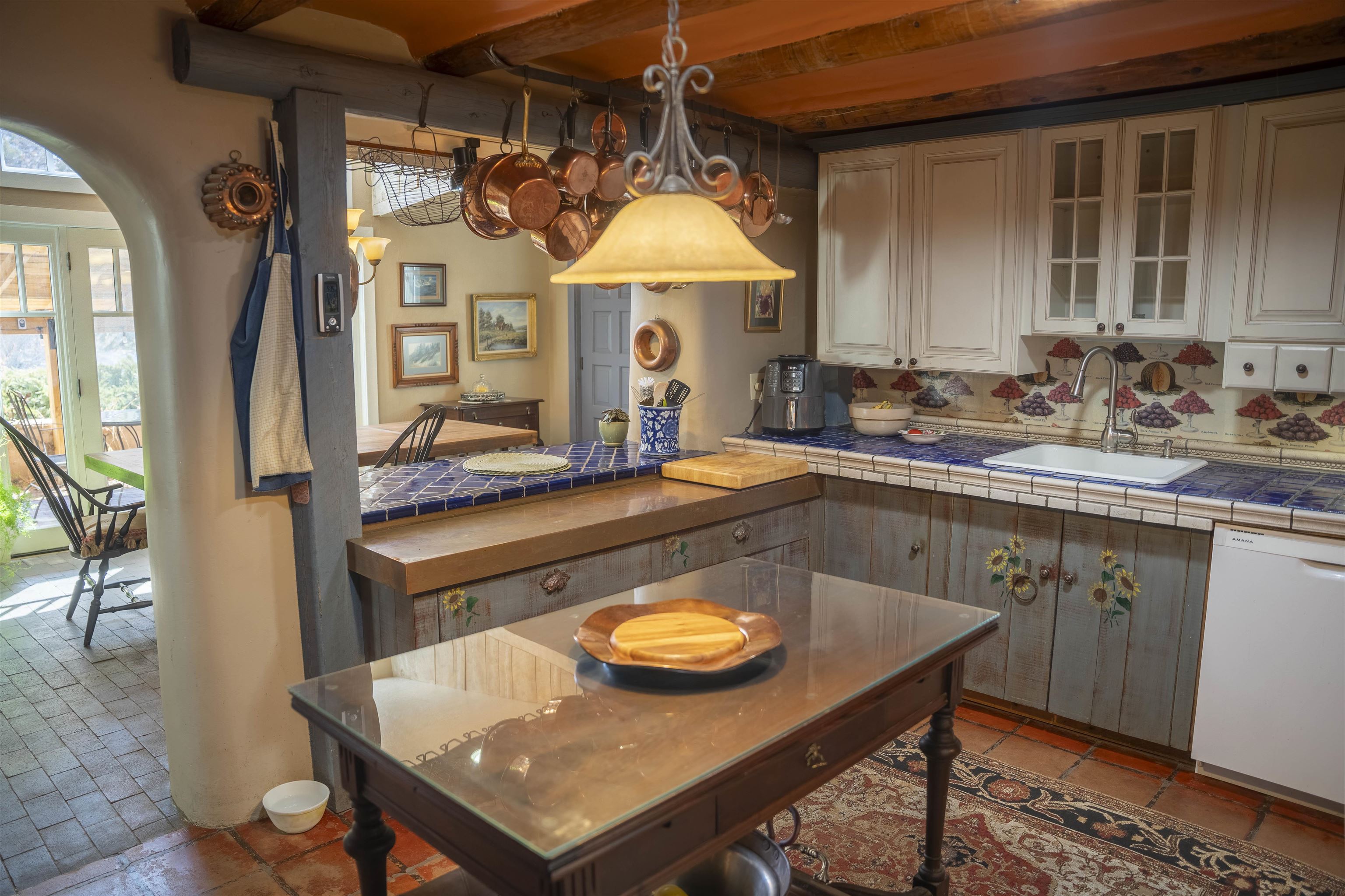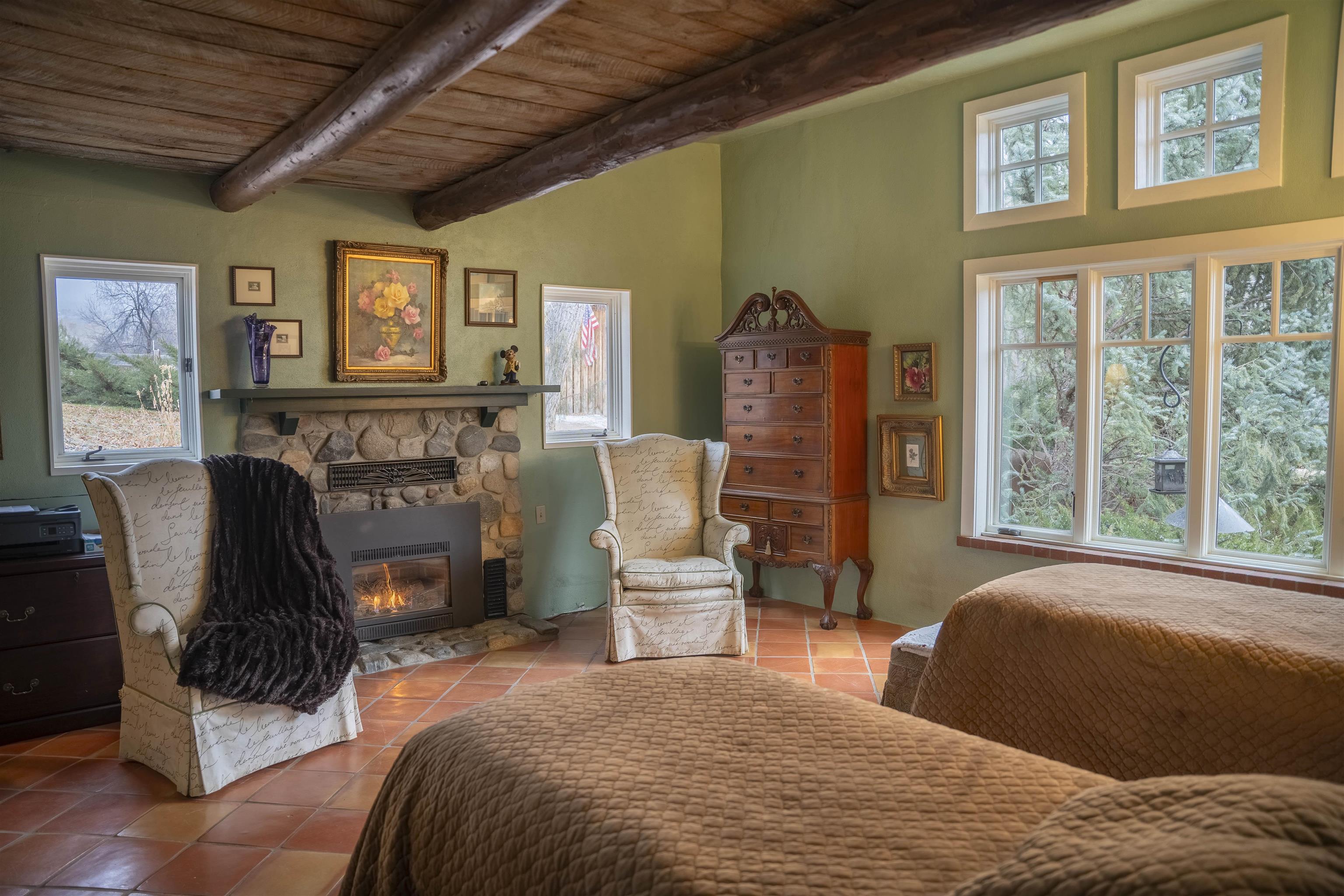 Riverfront Retreat with a Thriving Pond and Water Rights - A Rare Oasis in Taos! This magical 4.59 acre private estate has everything you could want - the Rio Hondo flowing through, water rights, and a tranquil pond that sets the scene for peaceful mountain living. The main house is warm and inviting, while the charming guest house offers space for family and friends. And for a touch of whimsy, there is a tree house just waiting for unforgettable moments. The enclosed greenhouse, once a swimming pool, sparks endless possibilities -think vibrant gardens, an artists studio, or a cozy gathering space. The warm colorful 2796 square foot 2 bedroom, 2 full and a half bath main house with mountain views of El Salto to the east and windows bringing the outside views in. Originally a gristmill in the 1930s, this property is rich in local history! The home features a country kitchen and dining room with access to a covered portal, plus an office or study. The sloping porch Casita (Guest House) 704 square foot 1 bedroom and full bath casita is perfect for family and friends. An additional 877 square foot loft bedroom and full bath guest house aka the Tree House is a fairy-tale cottage, hand built by the owner, who is a Taos artist and metal sculptor and furnished with handmade furniture and antiques. There is peace and quiet except for the rustling of the giant 200 year old cottonwoods and the rushing of the Rio Hondo River as it makes its way to the Rio Grande. The Tree House has a balcony that overlooks an active pond. The Valdez valley is a lush oasis in the high desert and its riparian environment is visited by abundant wildlife and migratory birds making the location one of the rarest of the county’s many ecosystem that bloom from spring to fall. The sweeping lawn spans between the houses, pond and the river. Nestled among cottonwood trees and all but invisible this compound is exceptionally private and quiet (other than the sound of the river). Nestled between Taos Ski Valley and the lively village of Arroyo Seco, and only minutes from Taos Plaza, this property balances seclusion and convenience. Whether you are craving days on the slopes, exploring local art galleries, or just soaking up the views, you are perfectly positioned. Embrace the spirit of Northern New Mexico and make this stunning Valdez escape your own. The mountain air, flowing water, and endless skies are calling — are you ready to answer? Discover your dream retreat in the verdant Valdez Valley! Adjoining 9.5 acres are available for purchase.