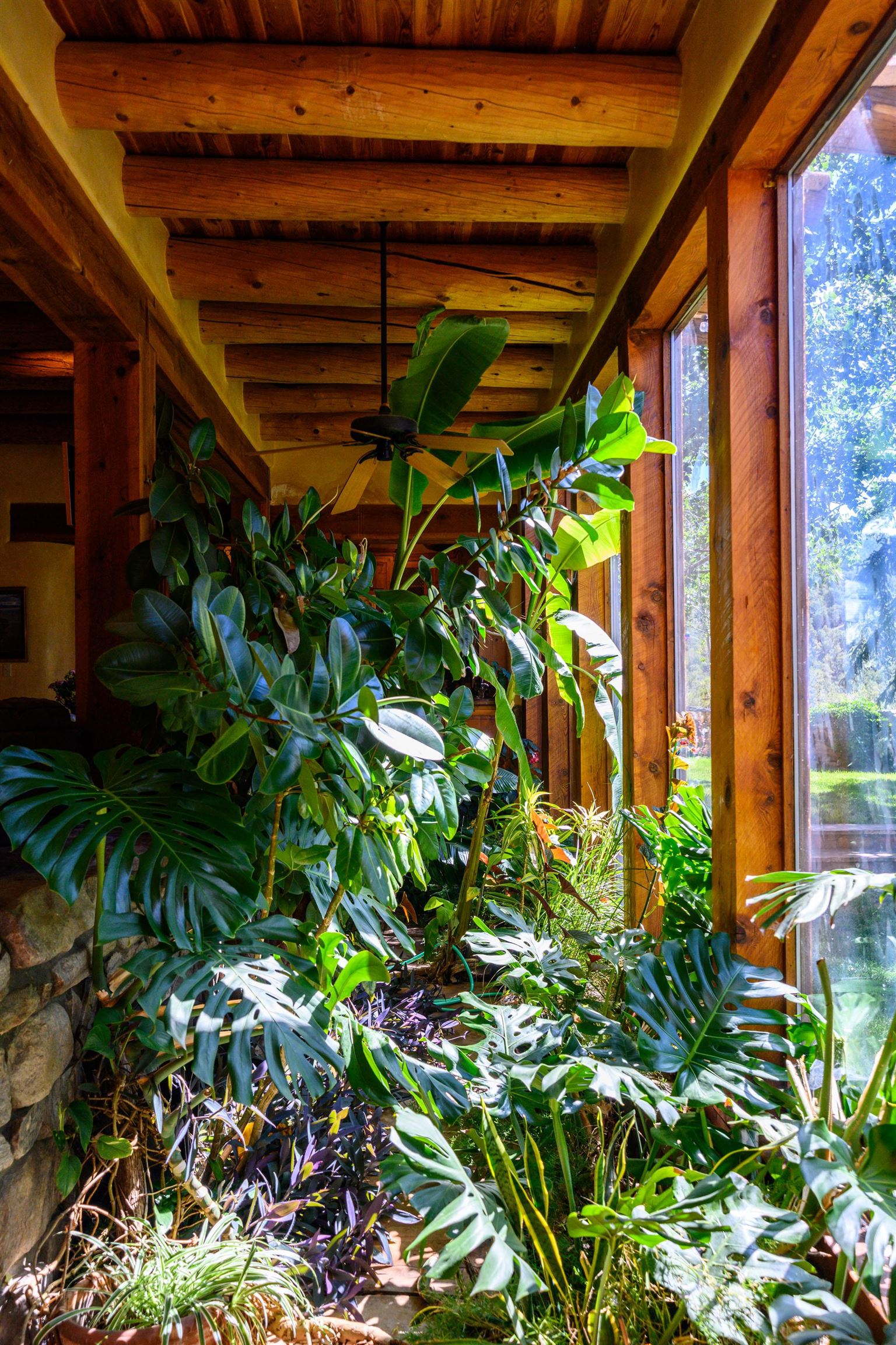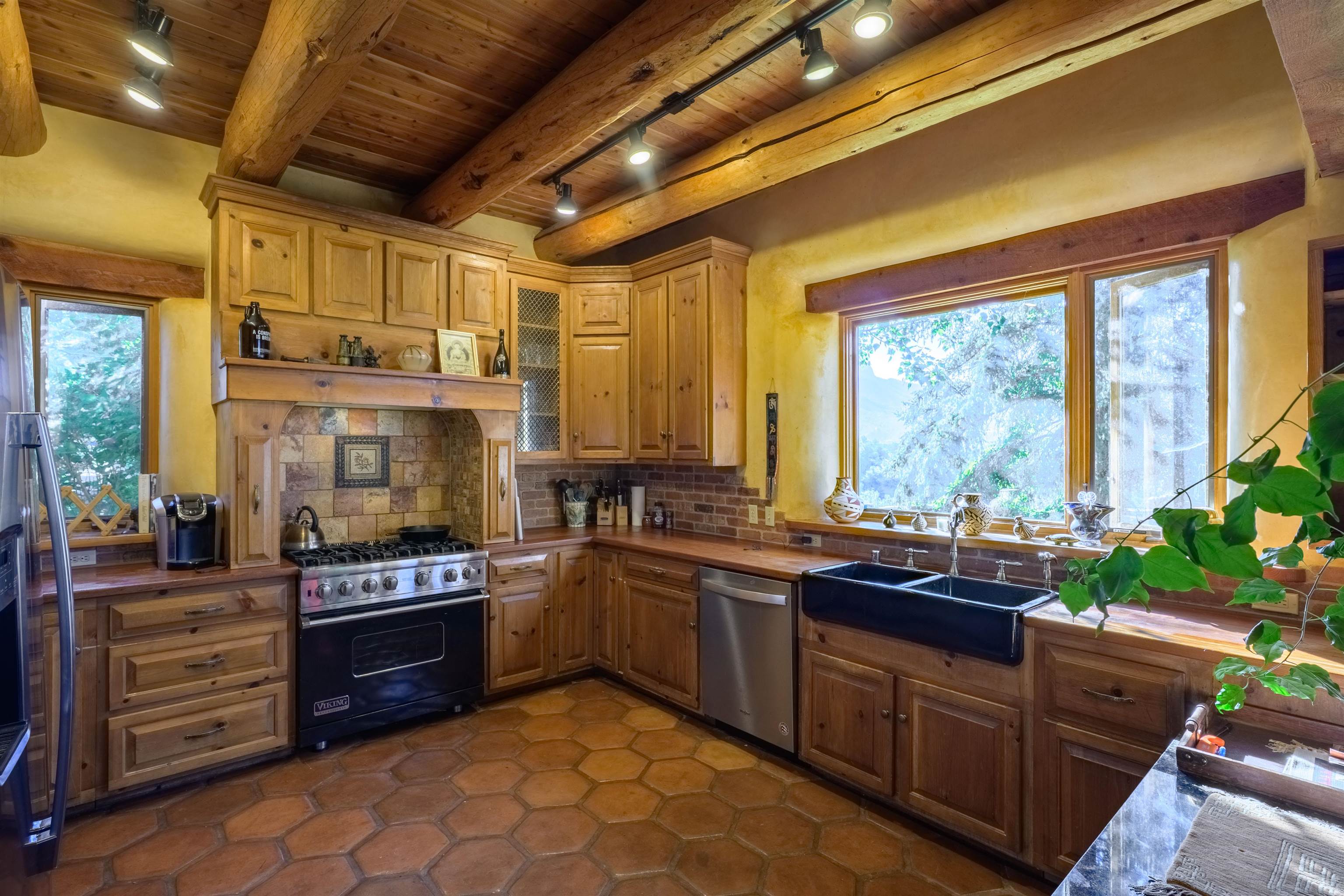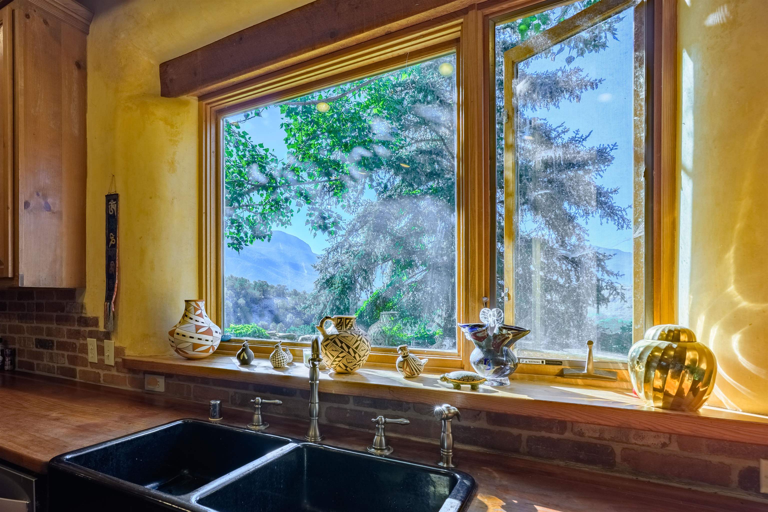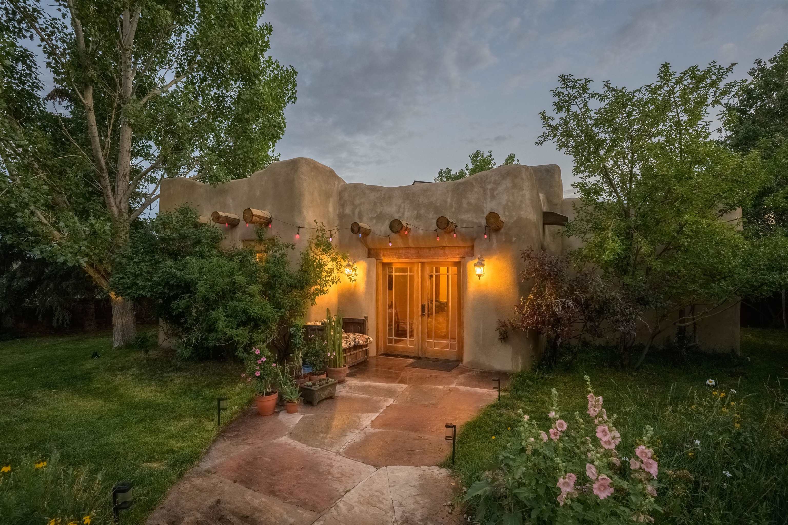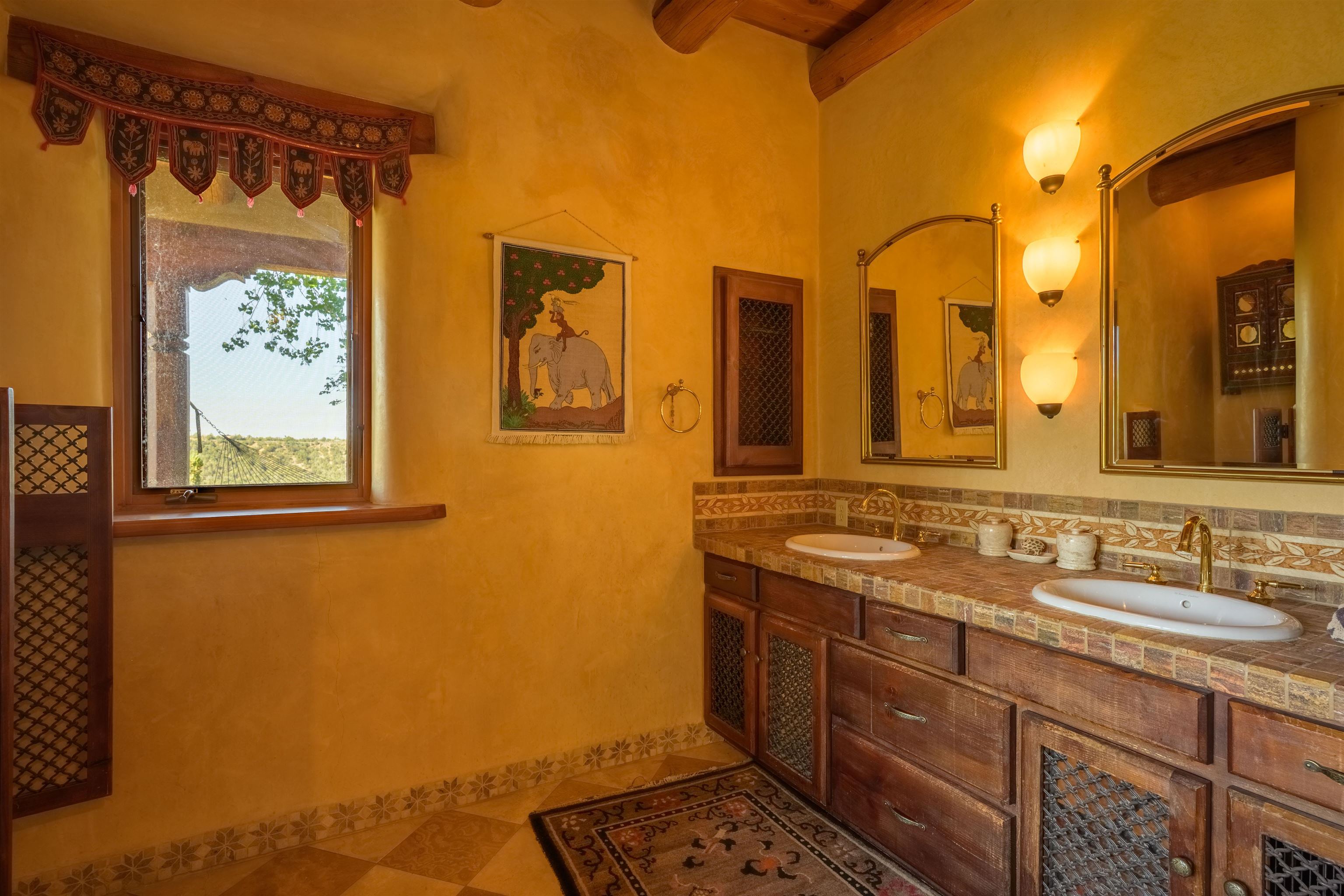 Luxurious & Sustainable High Desert Castle on the Valdez Hillside ~ Welcome to Winsor Castle, 3,300 sqft of pure magnificence pleasantly situated near Taos Ski Valley, just a short distance to Central Taos, with some of the most remarkable views in New Mexico. This exquisite and overbuilt residence inspired by the Mabel Dodge Luhan House is set on over one acre of lush piñon & juniper forest. To put it bluntly, the entire residence was overbuilt by the current and only owner, to his personal taste. Upon stepping into the solar passive residence powered by a net-metered solar system, you will encounter endless meticulousness amongst several hand-crafted and traditional custom features. High ceilings with impressive 10x10 Douglas fir vigas and tongue-and-groove accents that create an open, airy, and well lit atmosphere, complemented by recessed lighting. Special 6-sided Mexican Saltillo tile floors above radiant heated floors throughout the home, and travertine tile archways evoke a special Southwest feeling. Extending from the kitchen and living room into the primary bedroom you will encounter perhaps the home's most notable feature; a spectacular tropical greenhouse with 16' ceilings, surrounded by hand harvested quartzite grey stone walls. The primary ensuite is a true sanctuary, offering mountain views directly from the soaking tub through the banana trees in the greenhouse. With 4 spacious bedrooms, 2 bathrooms, and generous living areas, this residence offers a unique blend of comfort and eco-consciousness. Emser travertine tile and white marble floors grace the primary bathroom with a steam shower. At the heart of the home is a chef's kitchen with a Viking gas range, featuring stunning 2" teak and marble countertops, a New Orleans brick backsplash and a Tuscany-inspired mosaic behind the flame. As for the impressive R-Value of the home, these 16'' poured pumice-crete walls and double-studded interior walls, ensure complete climate control, along with no sound interruptions room-to-room. Furthermore, the 4'ft thick roof, insulated with blown cellulose bales, significantly enhances energy efficiency, and incredibly low utility bills. Outside, the property is an oasis. Terraced organic vegetable and flower gardens, and a variety of fruit and shade trees like apple and apricot, seasonal perennials such as echinacea, daisies, and sunflowers, all of which create a vibrant landscape, perfectly maintained by an 8-zone Rainbird irrigation system. Classic brick and flagstone portals around the home offer unbelievable views of the Valdez Valley, El Salto cliffs & majestic Taos Mountain, and especially so from the infrared or sauna during evening soaks in the hot tub overlooking these majestic vistas. Beyond the home's many special features, the location and convenience is equally impressive as it provides easy access to outdoor adventures, including hiking, biking, and trout fishing in the Arroyo Hondo River. The quaint village of Arroyo Seco is a mere 3 miles away, and offers delightful restaurants, shops, and entertainment. This luxurious, overbuilt, and truly special residence offers a unique and sustainable lifestyle amidst the unparalleled beauty of Northern New Mexico.