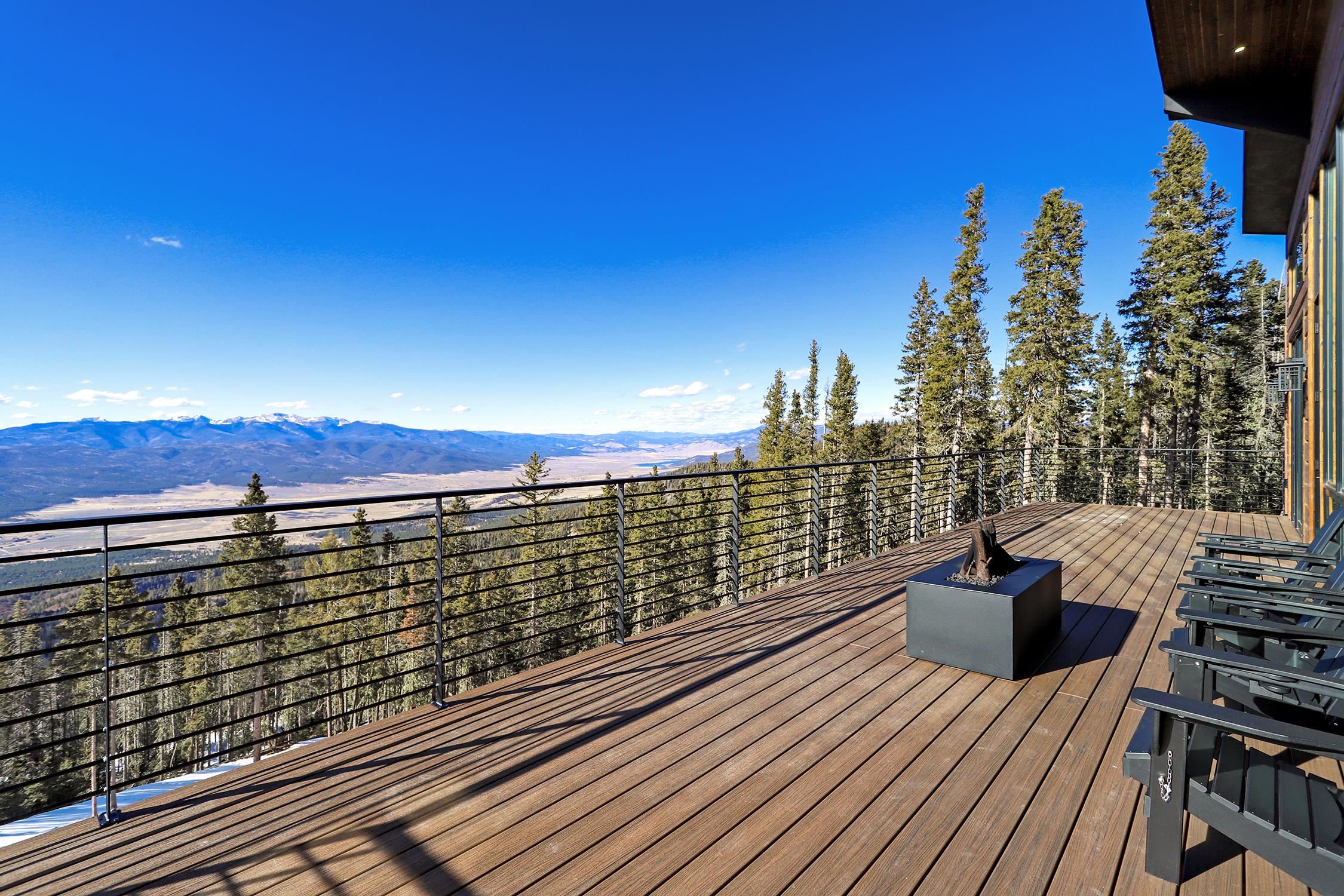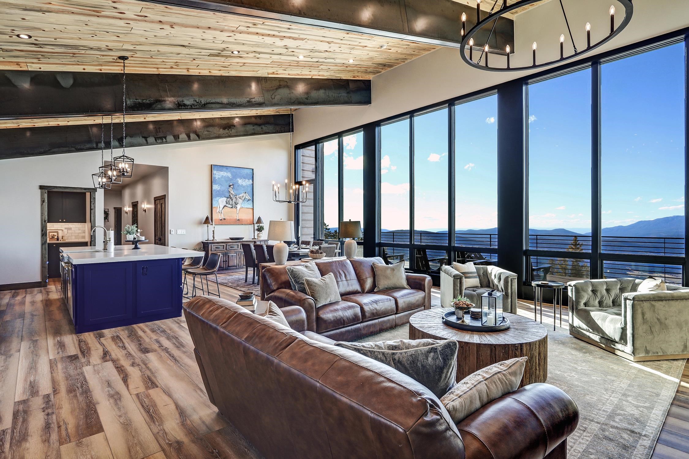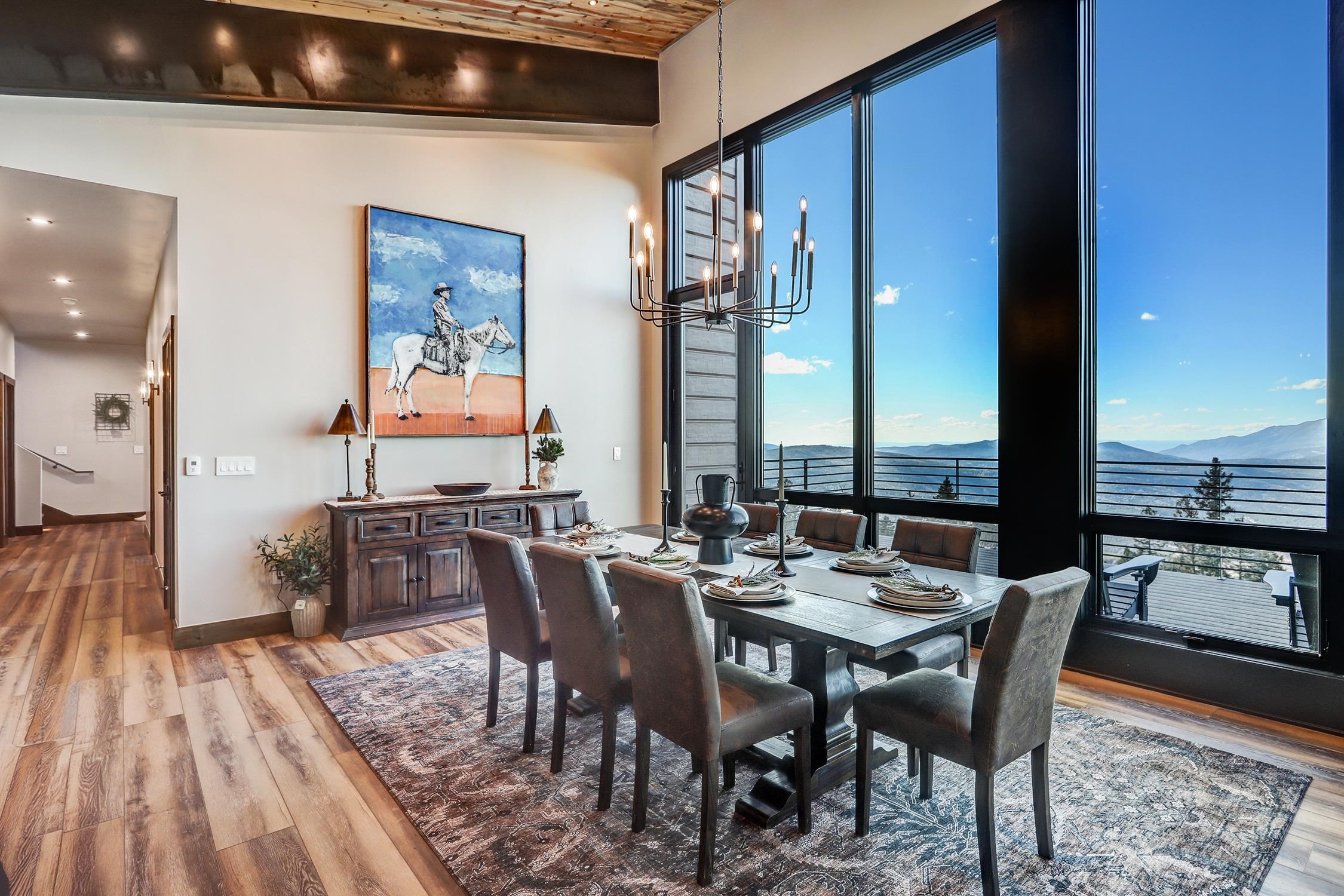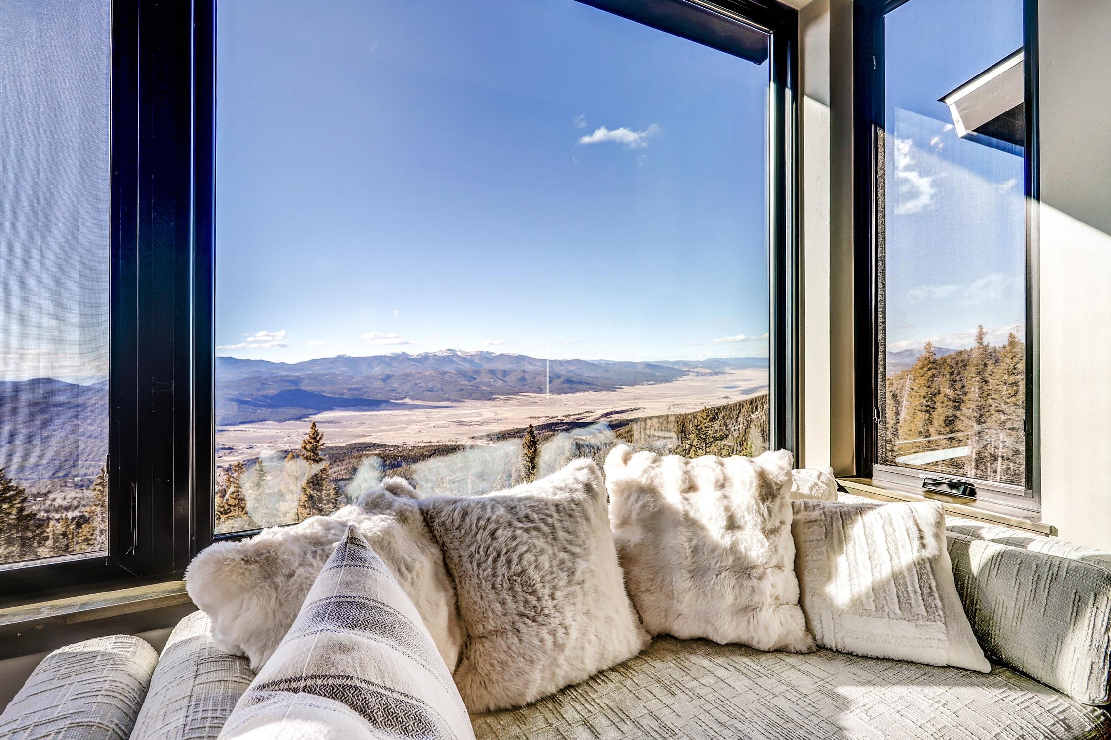 Ski-Out Luxury Retreat with Unmatched Wheeler Peak & Eagle Nest Lake Views: Welcome to a rare mountain retreat offering unparalleled panoramic views and direct ski access in the mountains of Angel Fire. New construction, built by Lindsey Custom Builders and Perfectly positioned on 2 acres, this beautifully furnished home captures breathtaking vistas from Wheeler Peak to Eagle Nest Lake—arguably the most spectacular view in the entire valley. Designed for both comfort and entertaining, the home features 4 spacious bedrooms and 4.5 bathrooms, with every bedroom offering its own ensuite bath and stunning window-framed mountain views. The thoughtfully designed layout includes two bedrooms on the main level, making main-floor living effortless. A dramatic wall of windows fills the living spaces and bedrooms with natural light while showcasing the surrounding mountains. The main living area centers around a wood-burning fireplace surrounded by beautiful stone, creating the perfect cozy gathering space after a day on the slopes. Upstairs, a second living area provides additional room for relaxation or entertainment and includes custom built-in bunk beds, ideal for hosting family and guests. The home is designed with entertaining in mind, featuring a separate bar area for cocktail hour, a spacious walk-in pantry, and inviting gathering spaces throughout. Most of the beautiful furnishings and décor convey, making this property move-in ready and perfect as a luxury mountain getaway or income-producing vacation home. Step outside and ski directly out onto Angel Fire Resort’s “Top of Headin’ Home” ski slope, giving you effortless access to the mountain.