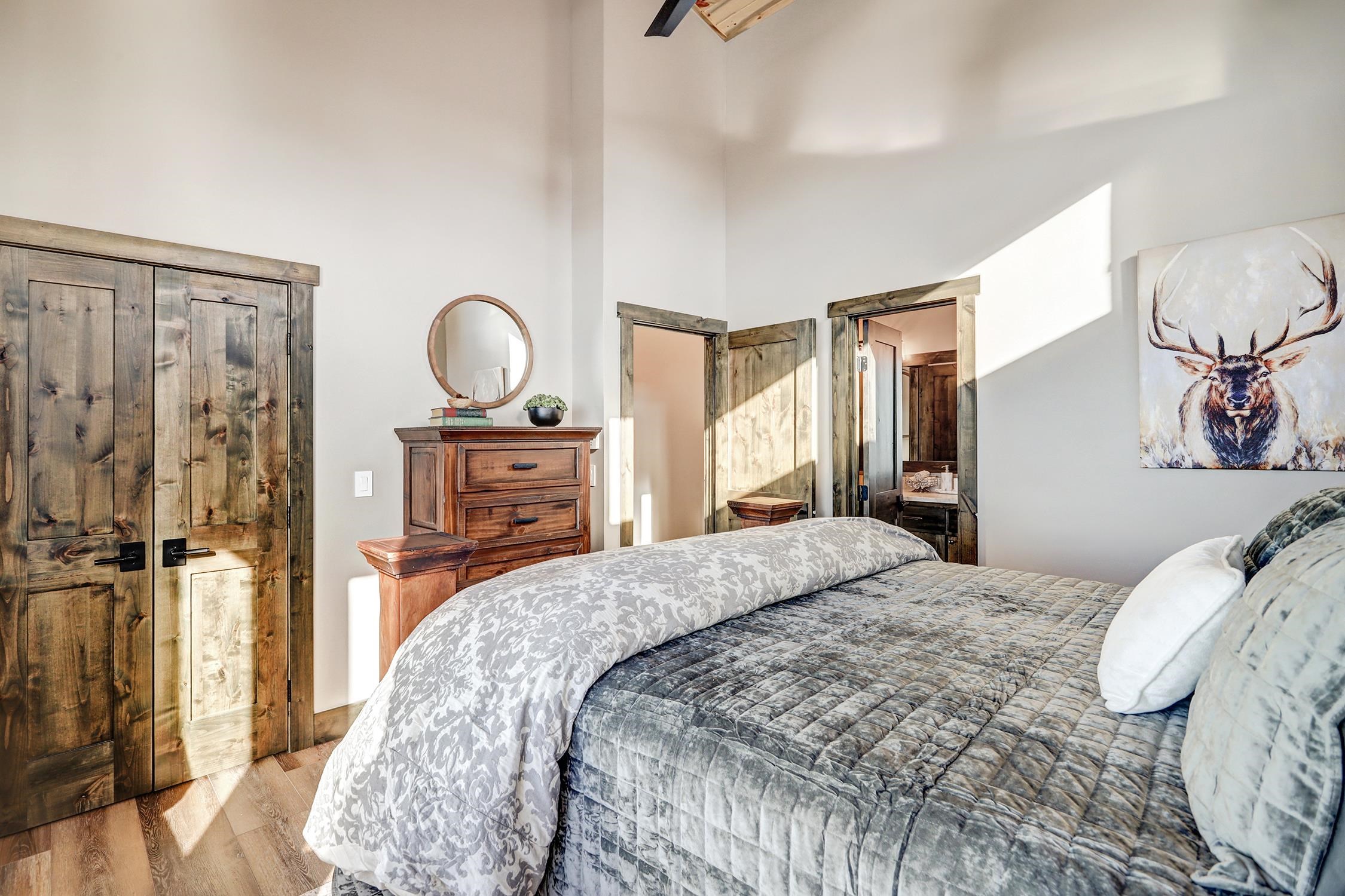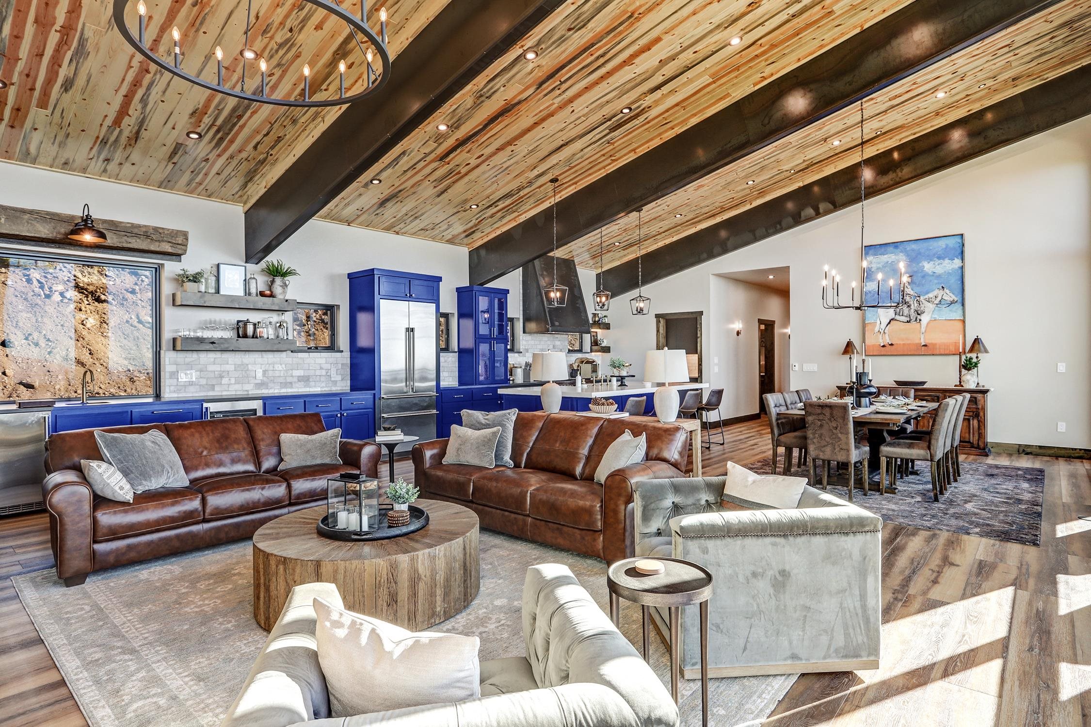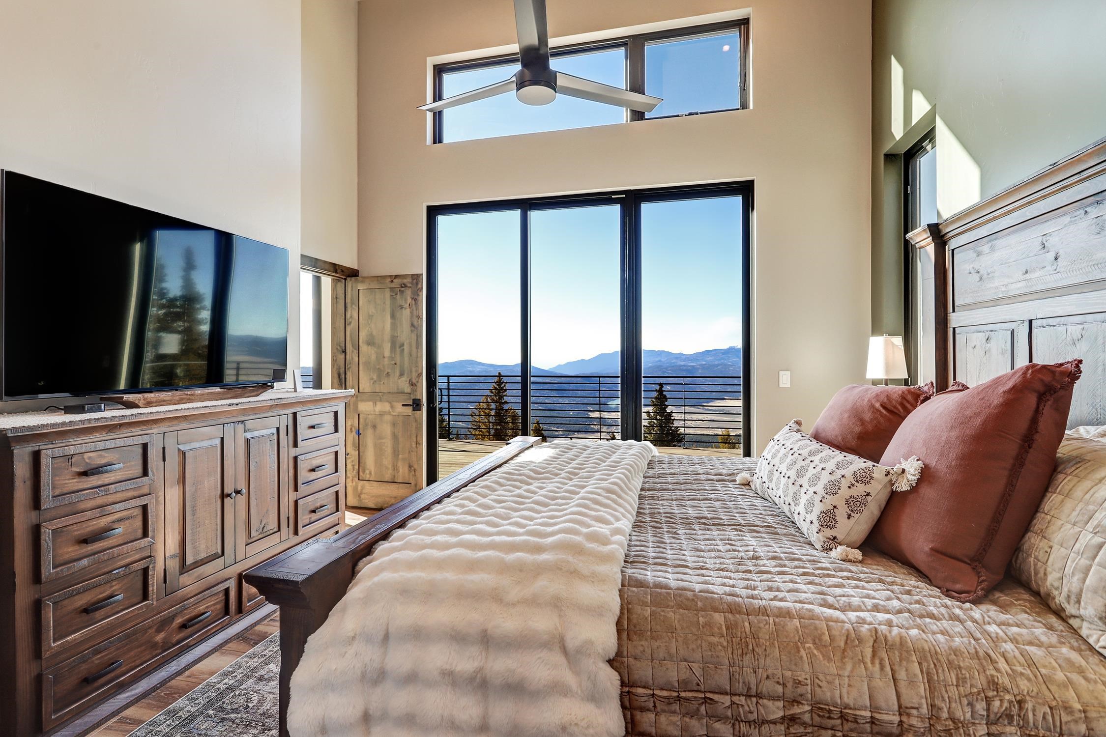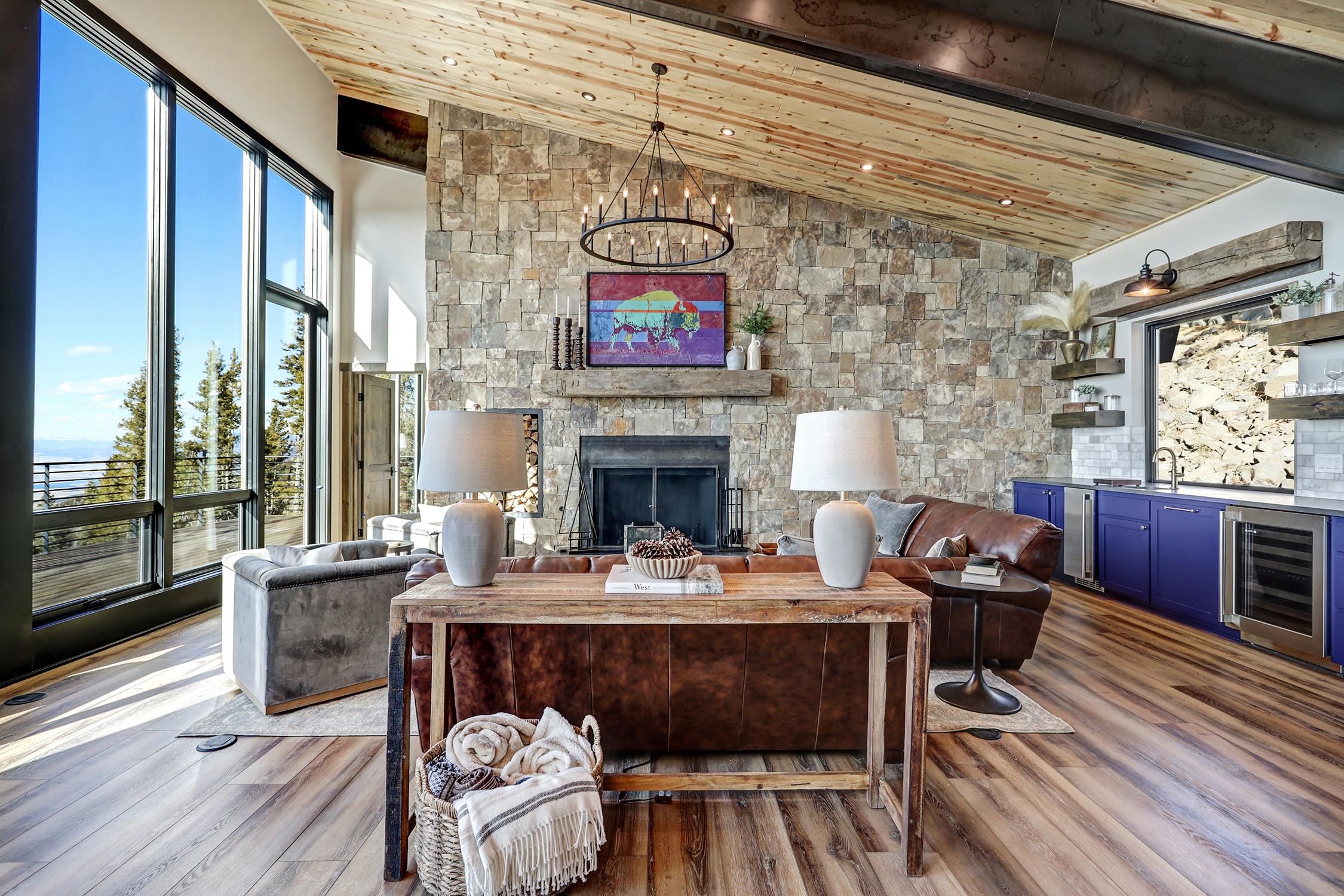 Ski-Out Luxury Retreat with Unmatched Wheeler Peak & Eagle Nest Lake Views: Welcome to a rare mountain retreat offering unparalleled panoramic views and direct ski access in the mountains of Angel Fire. New construction, built by Lindsey Custom Builders and Perfectly positioned on 2 acres, this beautifully furnished home captures breathtaking vistas from Wheeler Peak to Eagle Nest Lake—arguably the most spectacular view in the entire valley. Designed for both comfort and entertaining, the home features 4 spacious bedrooms and 4.5 bathrooms, with every bedroom offering its own ensuite bath and stunning window-framed mountain views. The thoughtfully designed layout includes two bedrooms on the main level, making main-floor living effortless. A dramatic wall of windows fills the living spaces and bedrooms with natural light while showcasing the surrounding mountains. The main living area centers around a wood-burning fireplace surrounded by beautiful stone, creating the perfect cozy gathering space after a day on the slopes. Upstairs, a second living area provides additional room for relaxation or entertainment and includes custom built-in bunk beds, ideal for hosting family and guests. The home is designed with entertaining in mind, featuring a separate bar area for cocktail hour, a spacious walk-in pantry, and inviting gathering spaces throughout. Most of the beautiful furnishings and décor convey, making this property move-in ready and perfect as a luxury mountain getaway or income-producing vacation home. Step outside and ski directly out onto Angel Fire Resort’s “Top of Headin’ Home” ski slope, giving you effortless access to the mountain.