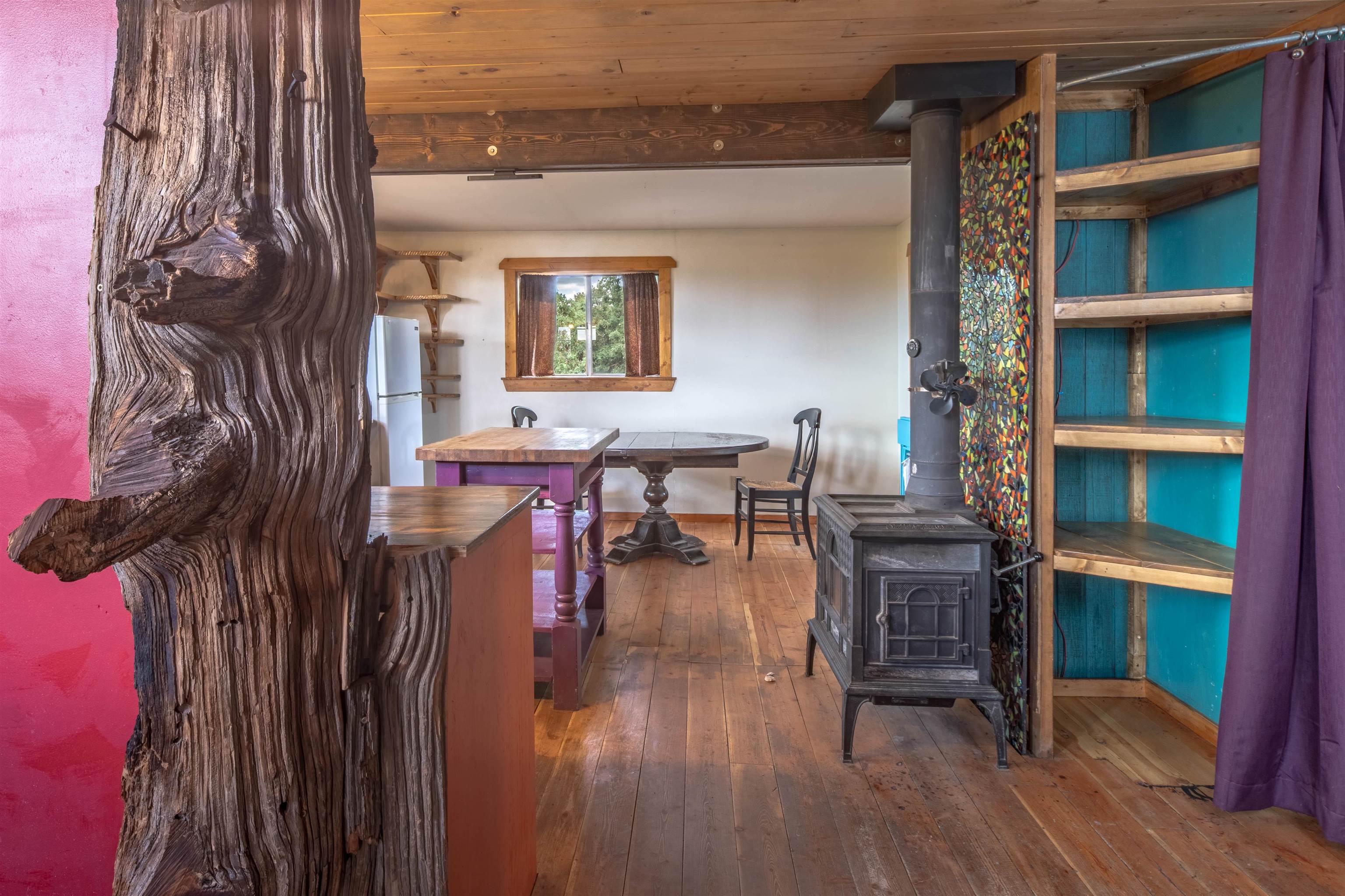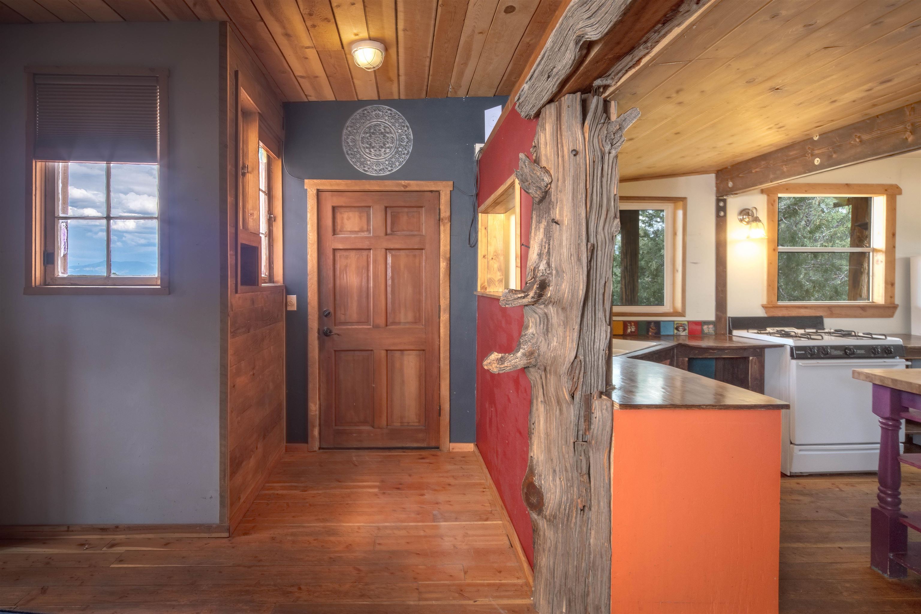 THIS PROPERTY IS ONLY AVAILABLE FOR SELLER FINANCING, AND AT INCREDIBLE TERMS! Please call for more details. Welcome to Raven’s Rock! This is a truly magical 28.9 acre retreat nestled into the stunning beauty of Northern New Mexico. Perched among ancient Ponderosa pines, Piñon and cedar trees, and sculptural rock formations, this one-of-a-kind, off-grid sanctuary includes a charming two-bedroom, one-bathroom cabin, an awe-inspiring guest treehouse, and a retro Airstream for additional space or creative use. Thoughtfully designed to blend into the hillside, the main home, approximately 1,800 square feet, offers stunning forest and mountain views from its expansive front deck. Inside, you’re greeted by a hand-crafted front door and rich wood floors that carry a sense of warmth and craftsmanship throughout. The eat-in kitchen features abundant storage, a walk-in pantry, and a gas range that is perfect for off-grid culinary adventures. The main house has a beautiful soapstone woodstove, and there is even a brand new one, that is still in its shipping container, ready to go into the treehouse. Both bedrooms are outfitted with custom-built beds offering generous under-bed storage, and the bathroom features a freestanding soaking tub with shower, brand-new composting toilet for added ecological sustainability, and access to a large closet/storage area. The home's impressive off-grid infrastructure includes a powerful solar system backed by eight supercharged batteries, discreetly housed in a rear utility room, along with a 1,600-gallon water catchment tank integrated into the home. This back room was built as an indoor green house with large South-facing windows, and it has an office area with built-in desk and shelves. The home’s plumbing is fully pressurized, and while the catchment system has proven more than sufficient, a well is believed to be feasible with water expected between 150–190 feet below the surface. The home is being sold partially furnished. Tucked into the trees, the spectacular guest treehouse is a destination, and it is completely solar-powered and filled with forest charm. This treehouse is nestled literally into an 80-foot Ponderosa tree and is a must-see build. Nearby, the 1963 Avion travel trailer adds a dash of nostalgic flair and versatility to the property, perfect for guests, studio space, or a quiet retreat. Can outhouses be magical? At Raven’s Rock, we believe they can. The property features two uniquely designed outhouses, each with its own unexpected charm. In addition to the main home and guest spaces, you'll find a thoughtfully designed workshop and storage building, with extra firewood and building materials neatly stashed behind, ready for your next creative project or homesteading task. A composting area behind the home supports your gardening ambitions, while thoughtfully placed benches throughout the property offer quiet spots for outdoor reflection, morning coffee, or sunset views. If all of this isn’t enough, there are wild horses seen roaming through the property regularly. The property offers many other opportunities for wildlife watching and hunting and affords incredible mountain views. Whether you’re seeking a sustainable homestead, an inspiring creative retreat, or simply a place to breathe deeply and reconnect with nature, Raven’s Rock is a rare and beautiful offering!!
