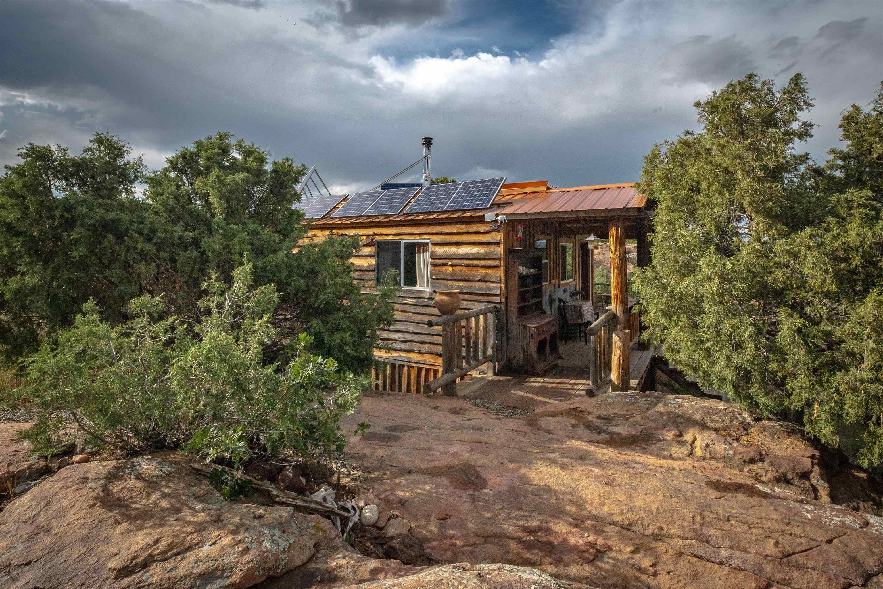 PRICE IMPROVEMENT! Welcome to Raven’s Rock. This is a truly magical 28.9-acre retreat nestled into the stunning beauty of Northern New Mexico. Perched among ancient Ponderosa Pines, Piñon and Cedar trees, and sculptural rock formations, this one-of-a-kind, off-grid sanctuary includes a charming two-bedroom main house, an amazing guest treehouse, and a retro Airstream for additional space or creative use. You'll be 30-40 min from downtown Taos, 30 min from the Rio Grande River, one hour from Angel Fire, and 30 minutes from Ojo Caliente Hot Springs Resort. Santa Fe and the Colorado border are also nearby. Easy access to the property from Highway 285. There's a reason Taos is one of New Mexico's most visited places. Let your imagination wander with this one – cattle farm, horse ranch, elk and deer hunting, potential for multi-generational homes, writers and artist retreat, neighboring Carson National Forest and BLM lands. No restrictions! Use the land as you wish – tiny homes, RVs, recreational concepts, lots of room for many opportunities and expansion. The main house has hand-crafted doors, rich wood floors, eat-in kitchen with abundant storage, walk-in pantry, a gas range, beautiful soapstone woodstove, custom-build beds with under-bed storage, stunning forest and mountain views from the expansive front deck, and an impressive off-grid infrastructure includes a powerful solar system backed by eight supercharged batteries, along with a 1,600-water catchment tank integrated into the home. Electric is available at the road, if one wanted to connect to the public grid. The catchment system has proven more than sufficient; however, a well is believed to be feasible with water expected between 150-190 feet below the surface. The property is being sold partially furnished. Tucked into the trees, the spectacular guest treehouse is a destination, and it is completely solar-powered and filled with forest charm. This treehouse is nestled literally into an 80-foot Ponderosa tree, upstairs balcony affording incredible views, and is a must-see build. Nearby, the 1963 Avion travel trailer adds a dash of nostalgic flair and versatility to the property, perfect for guests, studio space, or a quiet retreat. The property offers many other opportunities for wildlife watching and hunting and affords incredible mountain views. Whether you’re seeking a sustainable homestead, an inspiring creative retreat, or simply a place to breathe deeply and reconnect with nature, Raven’s Rock is a rare and beautiful offering. THE PROPERTY IS AVAILABLE FOR SELLER FINANCING, AND AT INCREDIBLE TERMS. This property has its own website with more photos, videos, property documents, etc. Please contact the broker for the property website and more details.