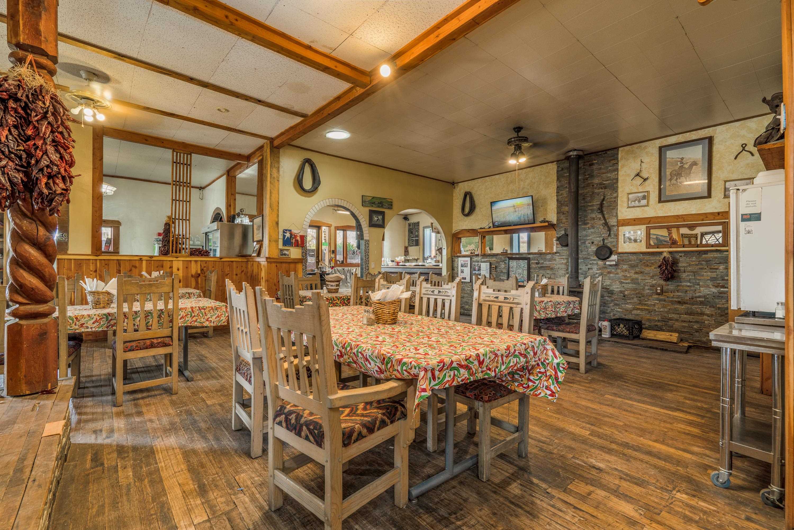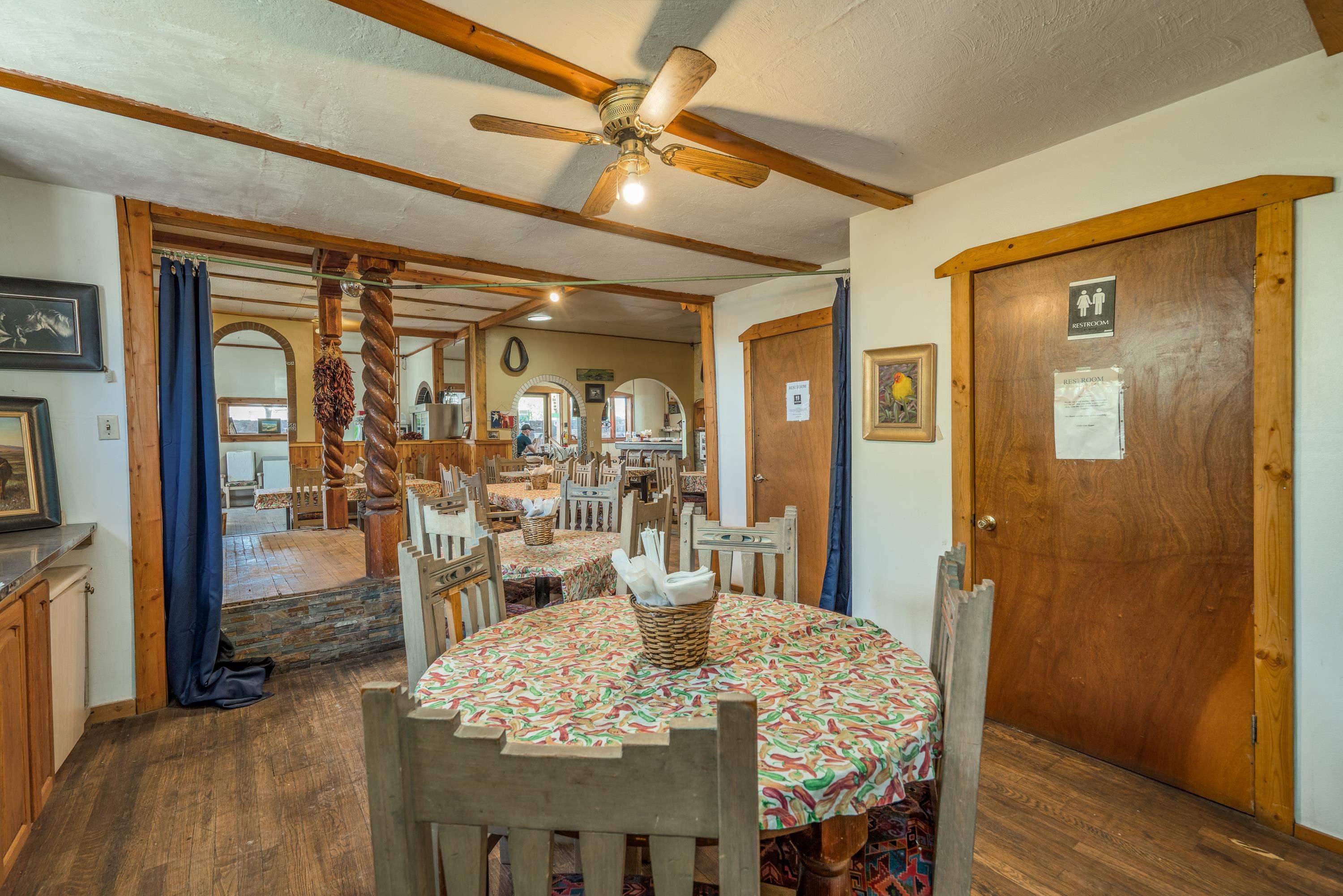Welcome to the Chili Line Depot—named in honor of the historic D&RG narrow gauge railway that once connected Antonito, Colorado to Santa Fe, New Mexico from 1887 to 1941. Located in the heart of Tres Piedras, this unique property blends commercial and residential use and is currently home to a well-known restaurant and B&B. The building includes two guest rooms with private baths that are rented regularly, a two-bedroom, one-bath apartment with its own balcony, a spacious upstairs caretaker’s unit with a private deck and sweeping views of the Sangre de Cristo Mountains, and a upstairs two-room office with generous storage space. If you choose to continue operating the restaurant, it’s ready to go. The sale includes everything needed to hit the ground running: a full commercial kitchen, walk-in storage, stainless prep tables, dishwashing station, freezers, ovens, mixers, beer tap, linens, display cases, cutlery, dishware, and a fully furnished dining room. There’s also a stage in the main dining area that host's live music throughout the year. Outside, the charm continues with a covered flagstone patio for outdoor dining, a private hot tub surrounded by vine-covered fencing, mature trees, rock landscaping and walls, and a large greenhouse that supplies fresh vegetables during the summer. The property spans 1.19 acres, is connected to community water, and operates on its own septic system. The roof and stucco have both been recently redone. With over 6,400 square feet of heated space, this property offers plenty of options: continue the restaurant and B&B, convert it into a private home, or explore other uses entirely. A large parking area right of Highway 285 is perfect for motorhomes, bikers, and motorists to stop by and visit! The adobe structure itself is over 100 years old and full of history—it once served as a lively bar and dancehall, even hosting a young Glen Campbell, who played here with The Dick Bills Band and The Sandia Mountain Boys. The property is being sold without financials, and no value has been placed on the business itself in the listing price. All furnishing and equipment is included in the sale other than a small list of exclusions. For more about the Chili Line Depot’s unique past, see the associated documents. Whether you're drawn by the potential or the history, this is a special property well worth a visit.