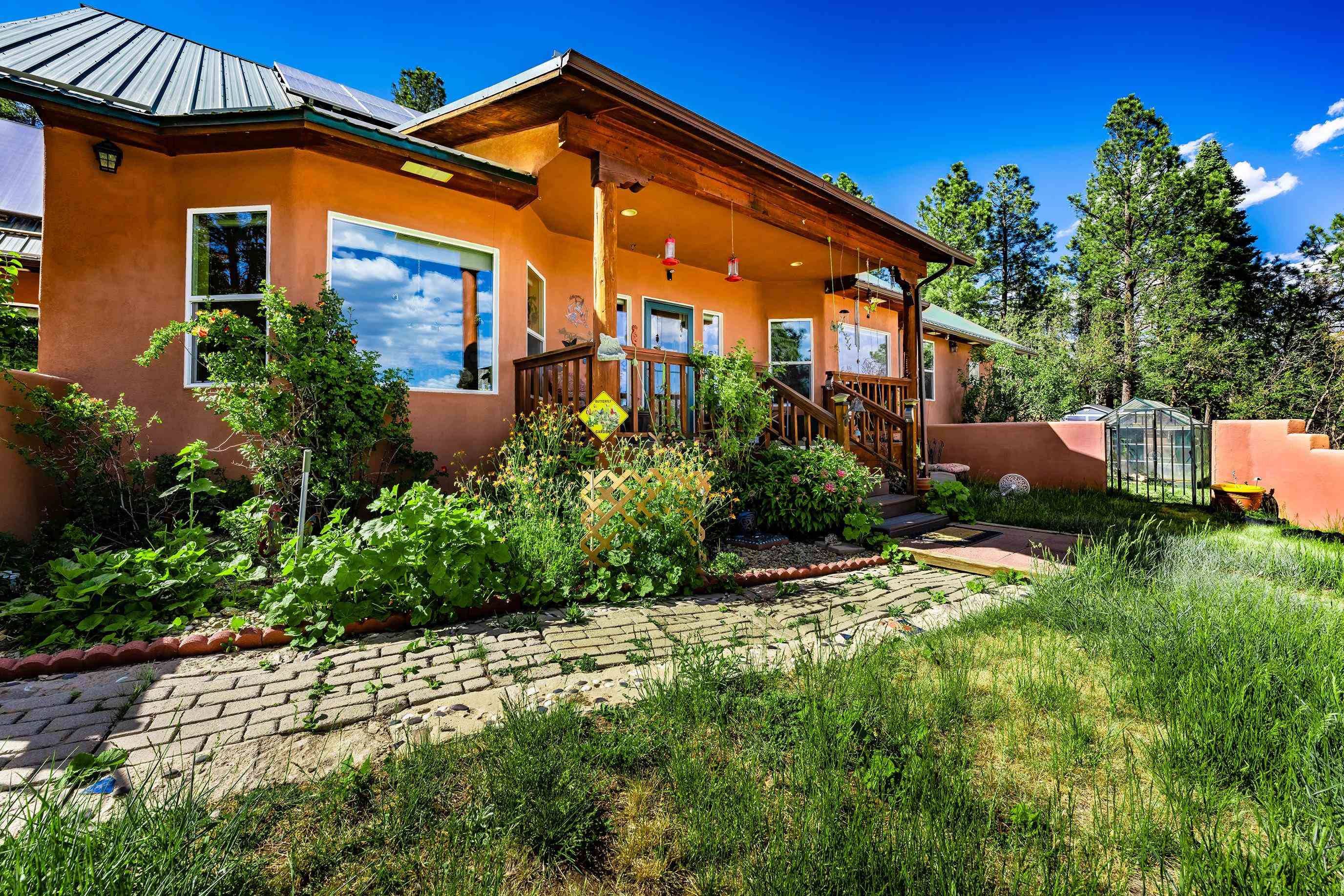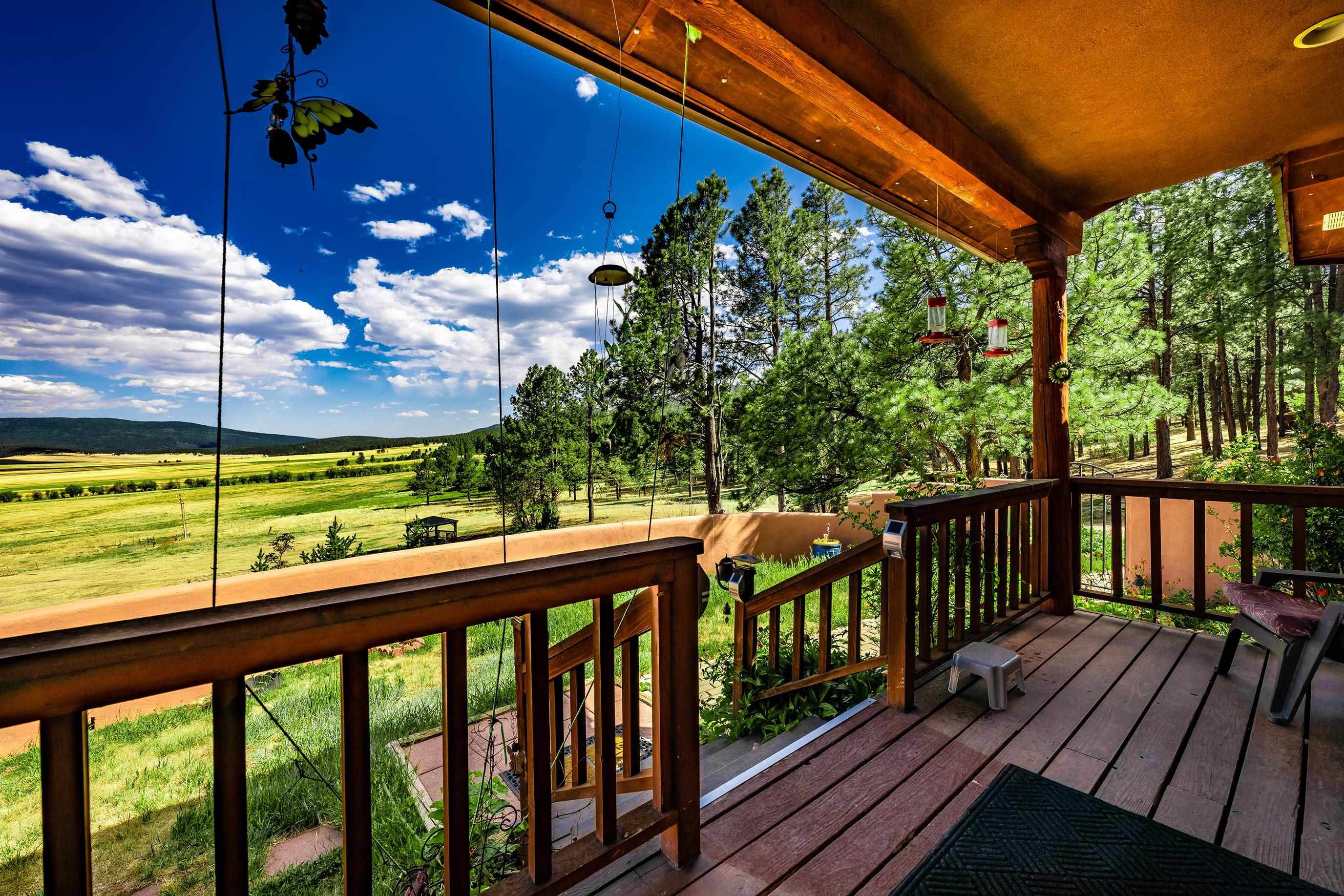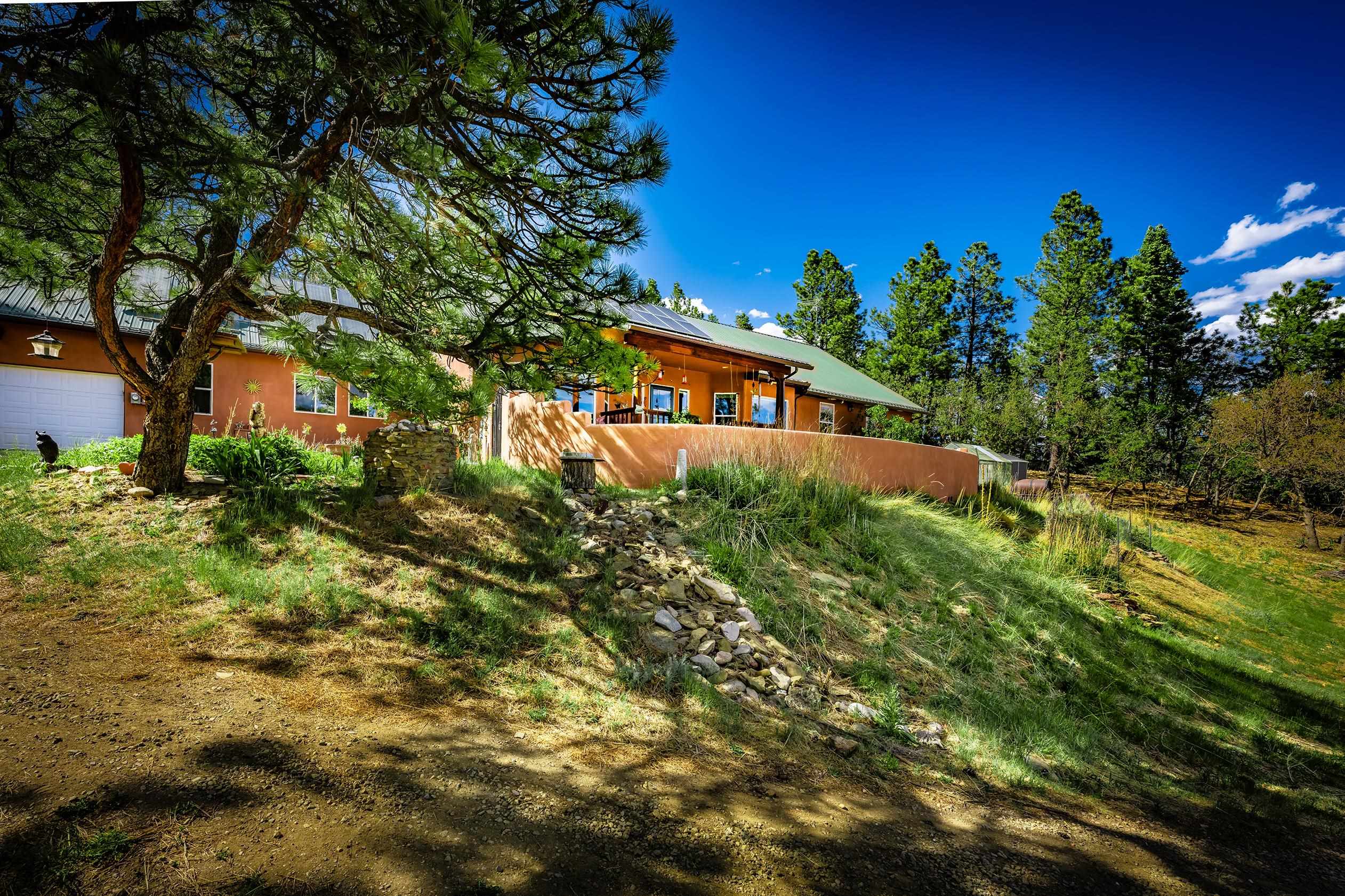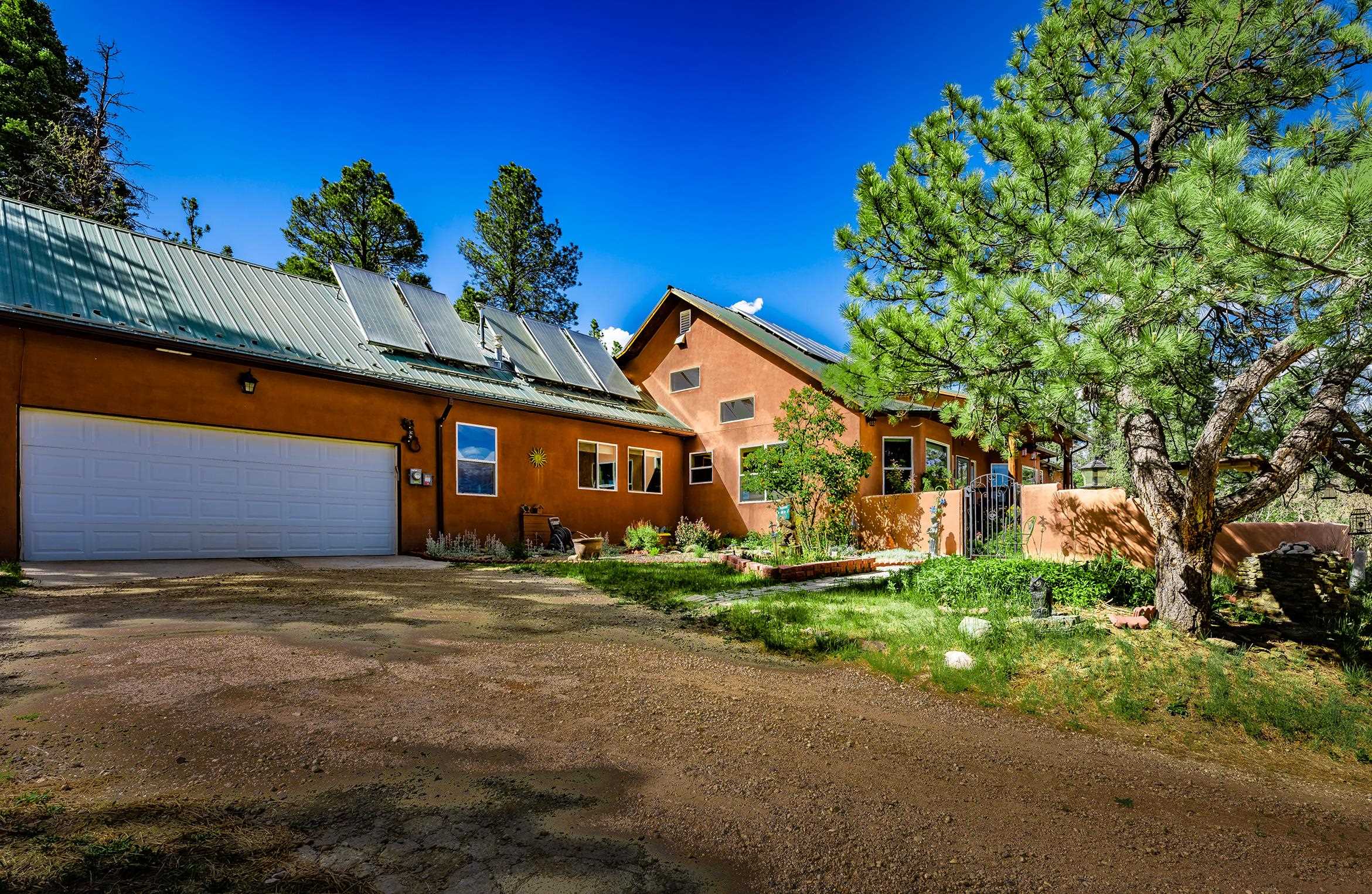 Nestled among the tree line, at the base of Osha mountain peak, sits a stunning and custom built 3,251 square foot ranch style home. On 18.87 acres, enjoy expansive mountain and valley views to your front and useable mountainside to your back. Jump on your four-wheeler, ride your horse or hike up the cut in trails to your own private entrance to Carson National Forest. This one story, 3 bed 3 1/2 bath home offers an attached, over sized two car garage that enters into the hobby/utility room of your dreams. With an open floor plan, soaring ceilings and a covered front and back deck, this property has it all. Even a whole house vacuum system! There is also a 20 panel solar setup to keep your electric bill WAY down low! Drive in for the summer and hook up your RV to the 30 amp outlet and sewer hookup, next to the garage. The Angel Fire Resort ski mountain, nationally renowned mountain bike terrain park, PGA-rated golf course and many more valuable amenities are just 10 miles down the road. Don't miss this opportunity to own a private, yet convenient slice of mountain paradise. The house comes fully furnished and ready for move in!