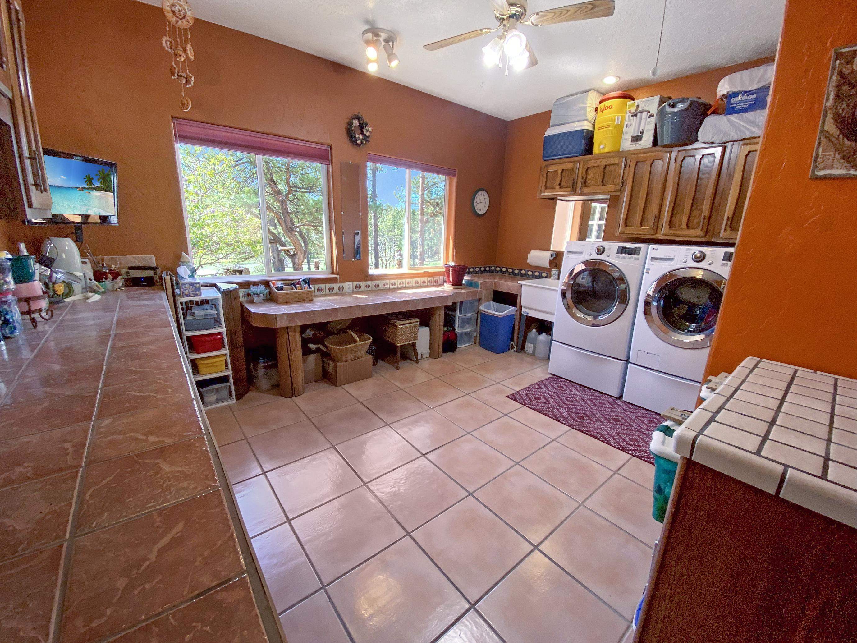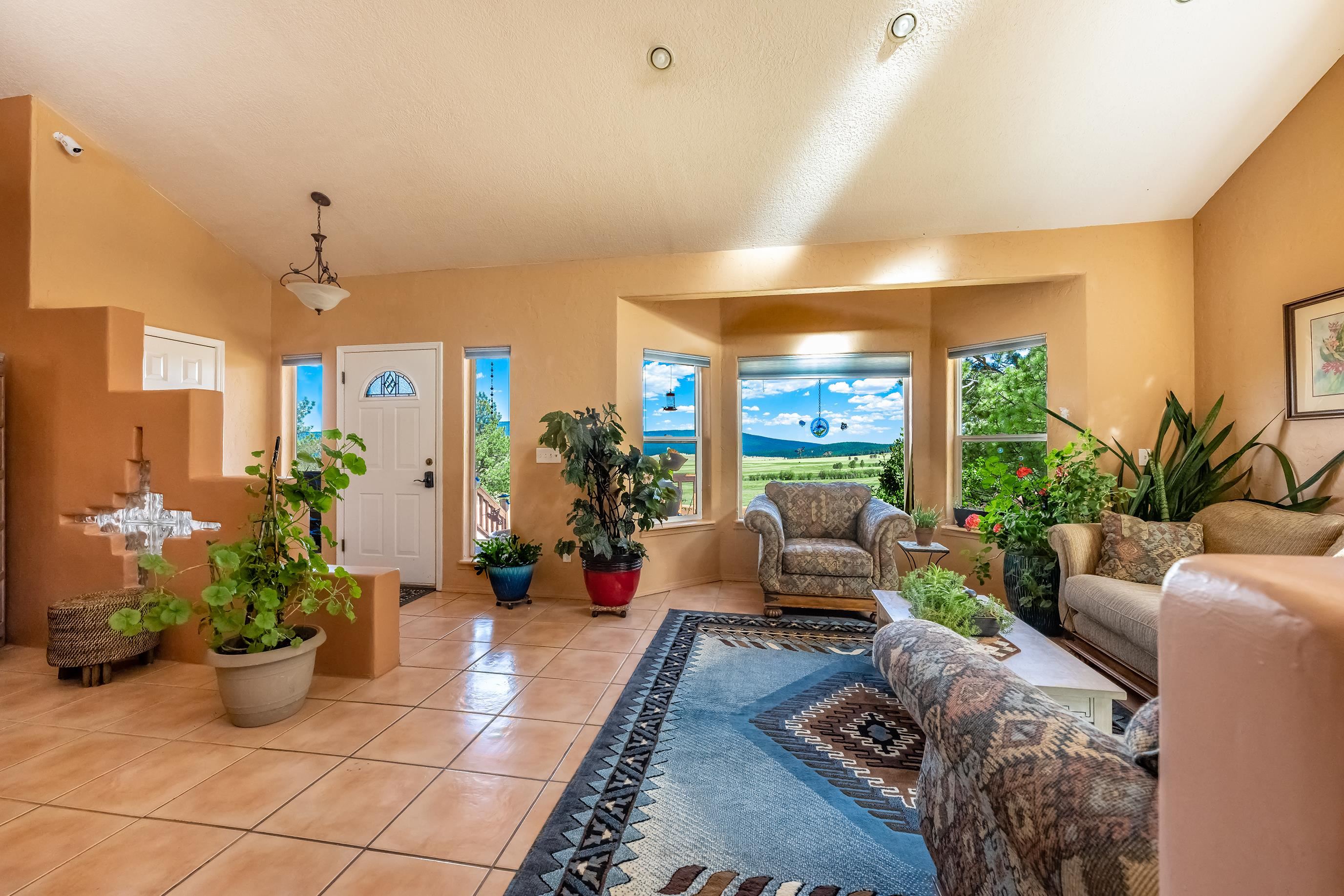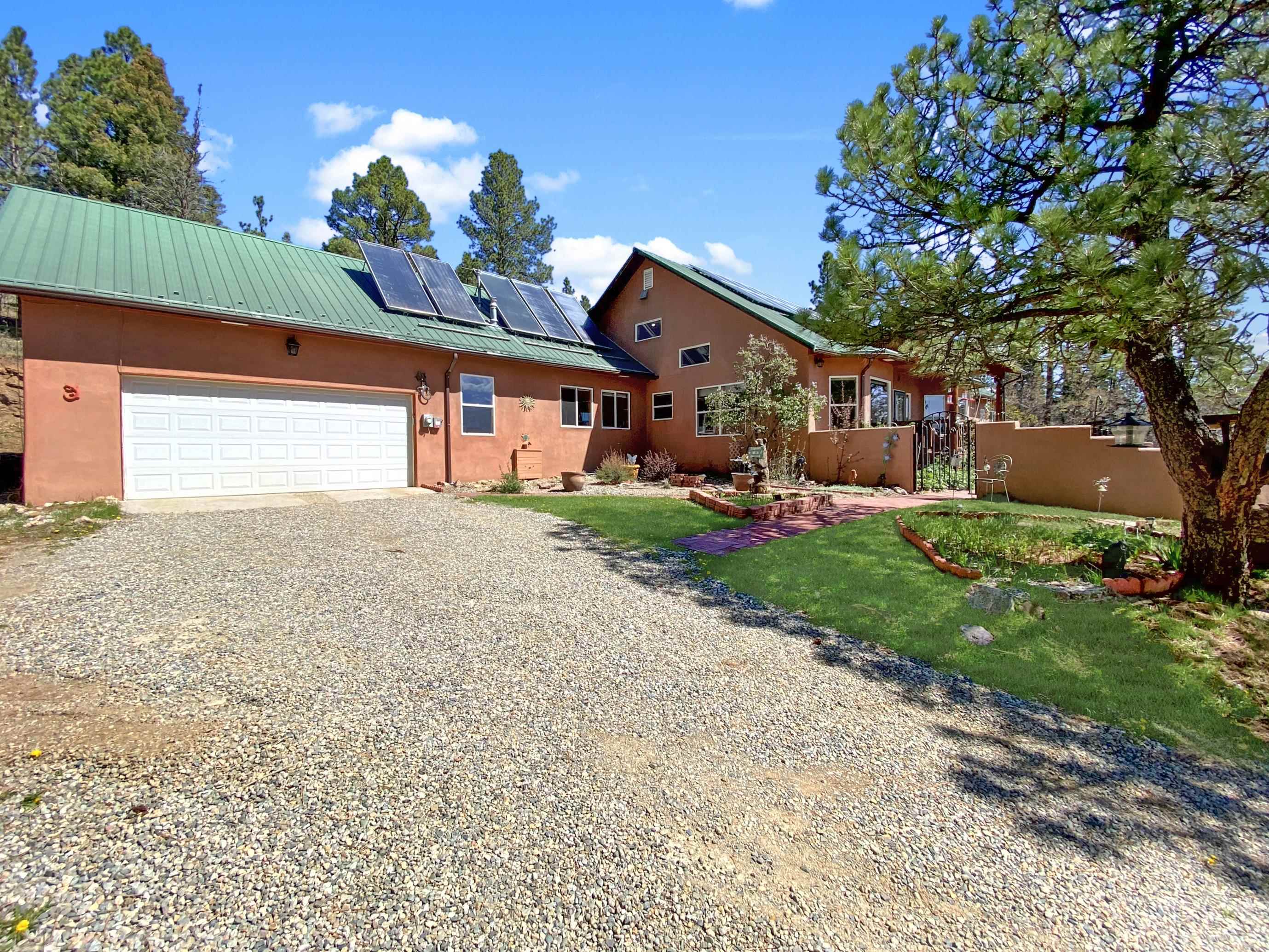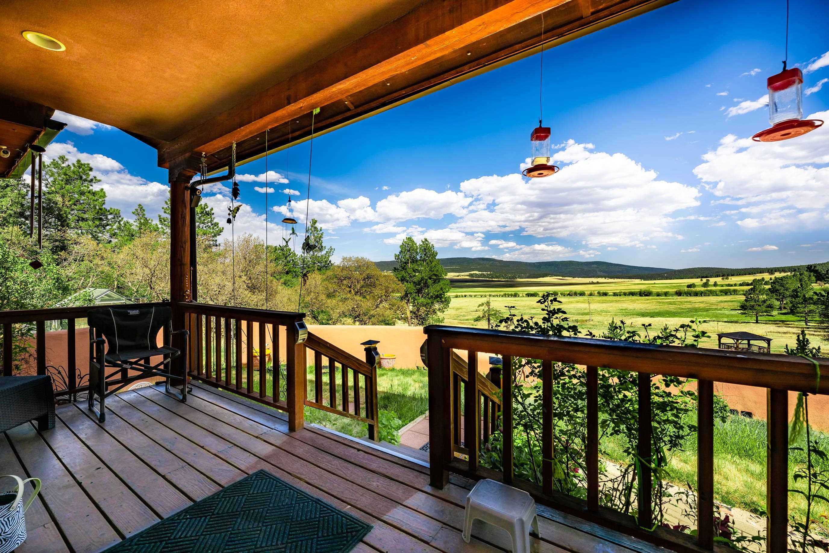 Nestled among the tree line, at the base of Osha mountain peak, sits a stunning and custom built 3,251 square foot ranch style home. On 18.87 acres, enjoy expansive mountain and valley views to your front and useable mountainside to your back. Jump on your four-wheeler, ride your horse or hike up the cut in trails to your own private entrance to Carson National Forest. This one story, 3 bed 3 1/2 bath home offers an attached, over sized two car garage that enters into the hobby/utility room of your dreams. With an open floor plan, soaring ceilings and a covered front and back deck, this property has it all. Even a whole house vacuum system! There is also a 20 panel solar setup to keep your electric bill WAY down low! Drive in for the summer and hook up your RV to the 30 amp outlet and sewer hookup, next to the garage. The Angel Fire Resort ski mountain, nationally renowned mountain bike terrain park, PGA-rated golf course and many more valuable amenities are just 10 miles down the road. Don't miss this opportunity to own a private, yet convenient slice of mountain paradise. The house comes fully furnished and ready for move in!