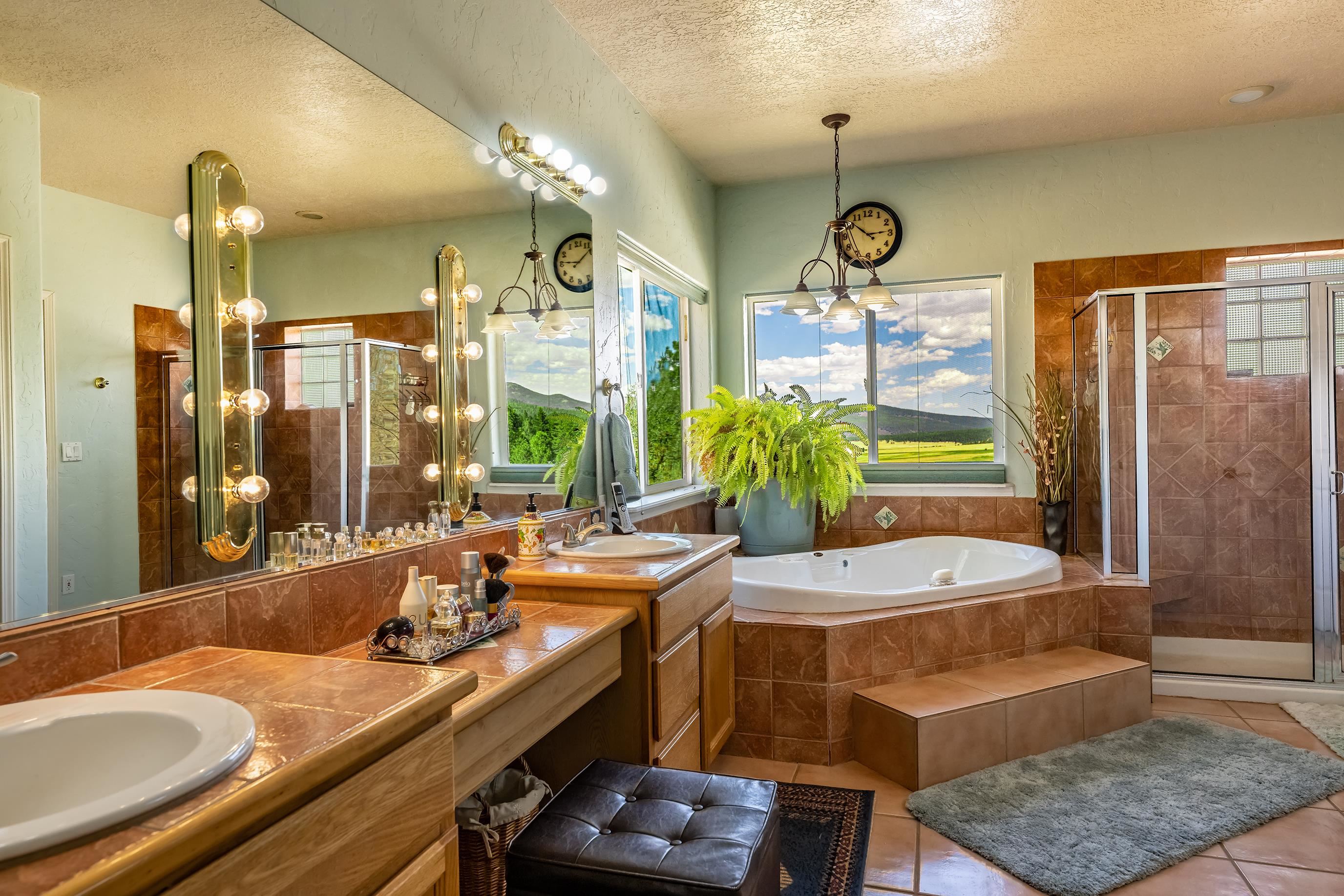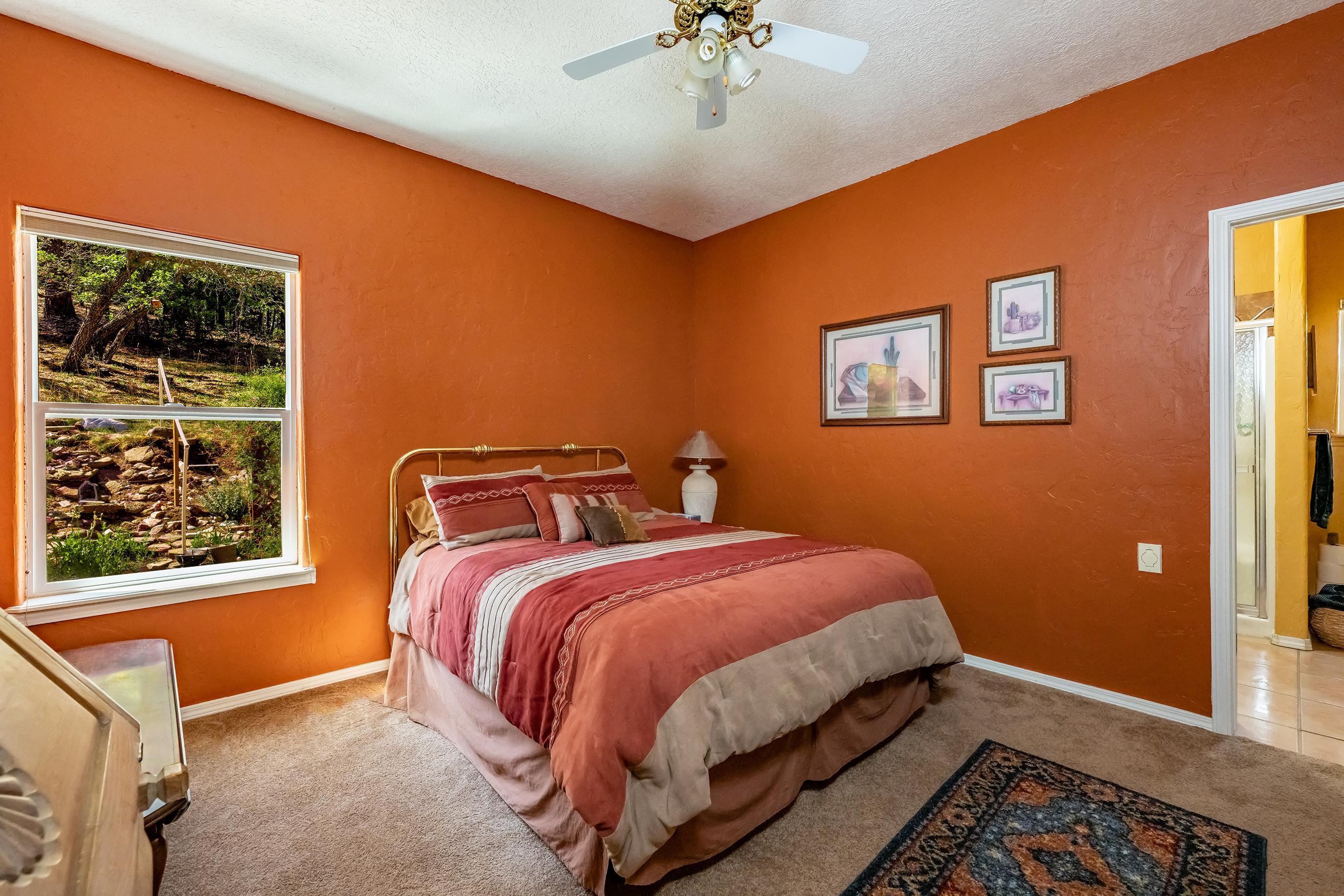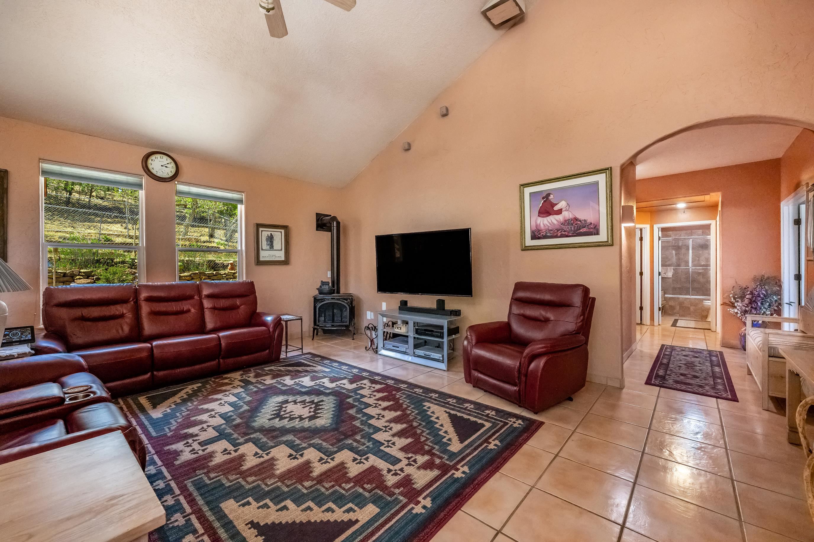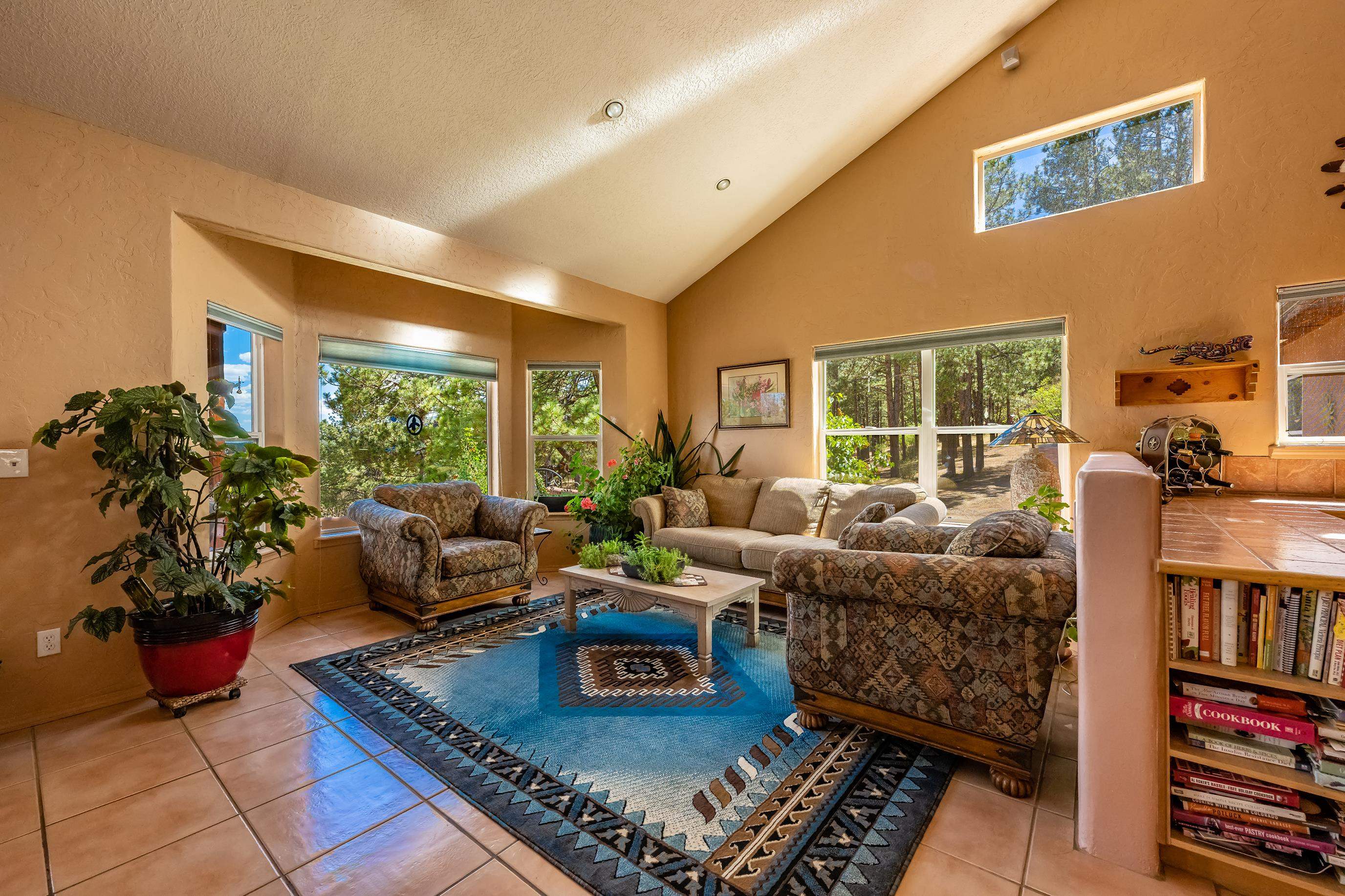 Nestled among the tree line, at the base of Osha mountain peak, sits a stunning and custom built 3,251 square foot ranch style home. On 18.87 acres, enjoy expansive mountain and valley views to your front and useable mountainside to your back. Jump on your four-wheeler, ride your horse or hike up the cut in trails to your own private entrance to Carson National Forest. This one story, 3 bed 3 1/2 bath home offers an attached, over sized two car garage that enters into the hobby/utility room of your dreams. With an open floor plan, soaring ceilings and a covered front and back deck, this property has it all. Even a whole house vacuum system! There is also a 20 panel solar setup to keep your electric bill WAY down low! Drive in for the summer and hook up your RV to the 30 amp outlet and sewer hookup, next to the garage. The Angel Fire Resort ski mountain, nationally renowned mountain bike terrain park, PGA-rated golf course and many more valuable amenities are just 10 miles down the road. Don't miss this opportunity to own a private, yet convenient slice of mountain paradise. The house comes fully furnished and ready for move in!
