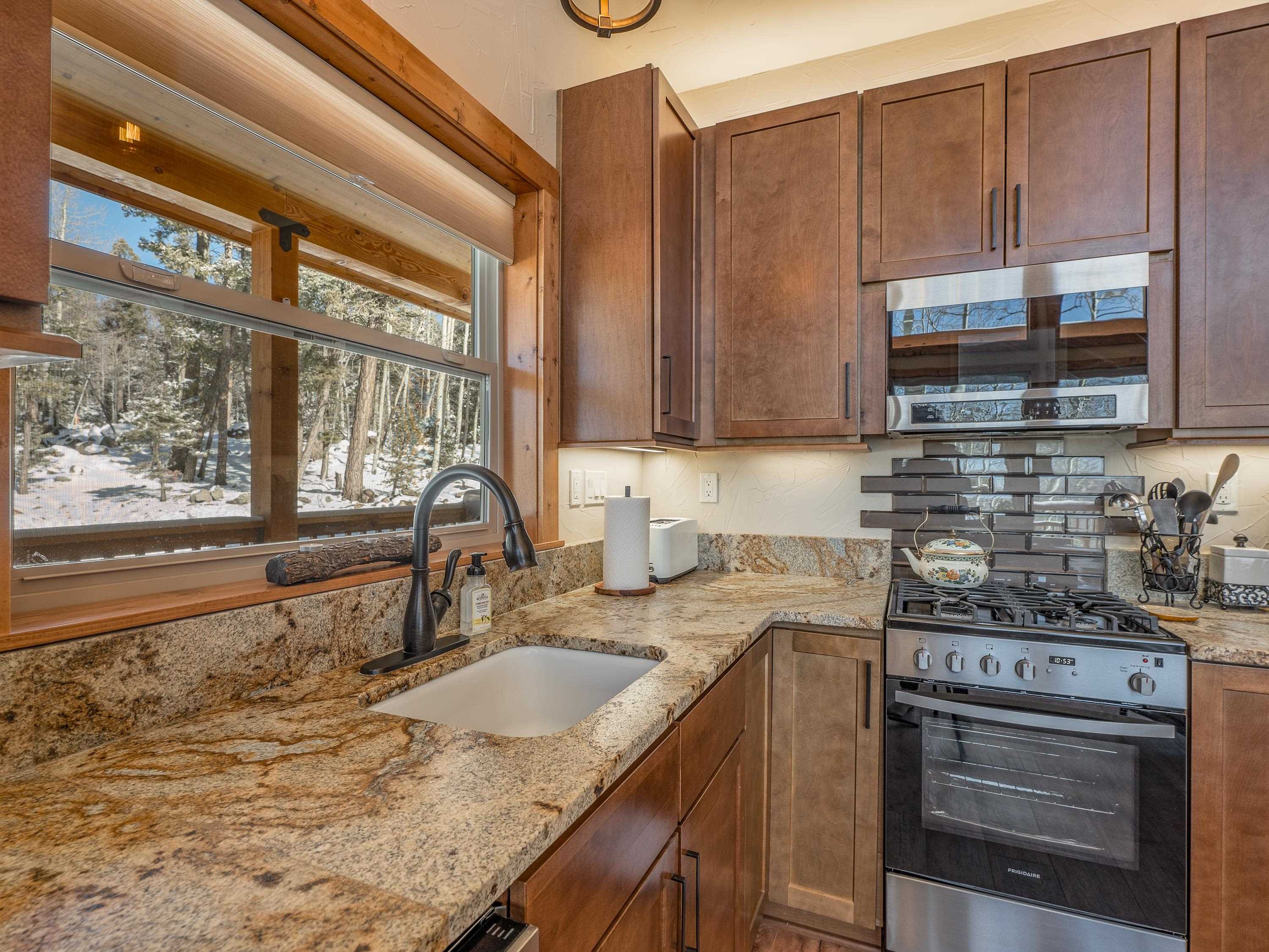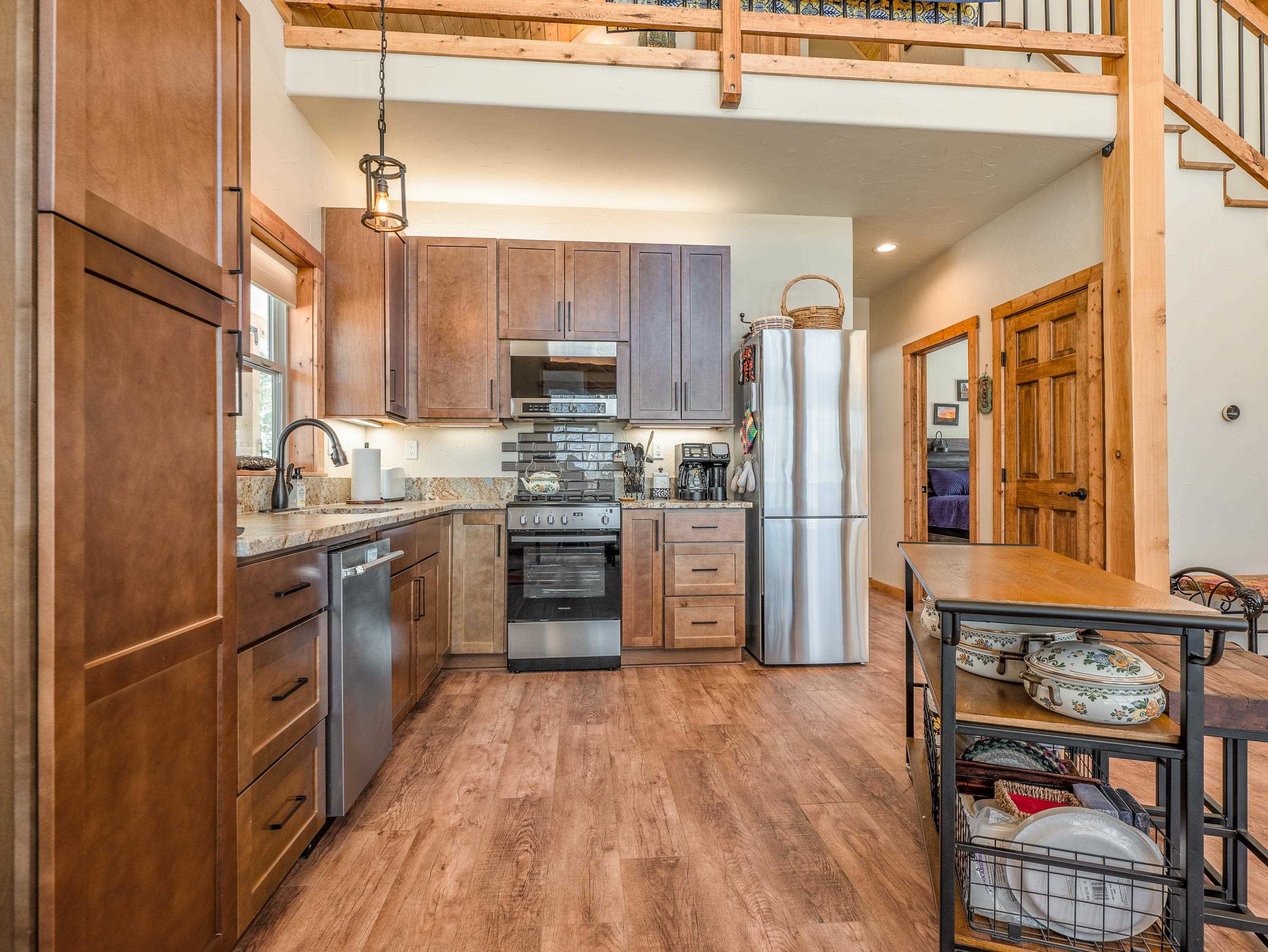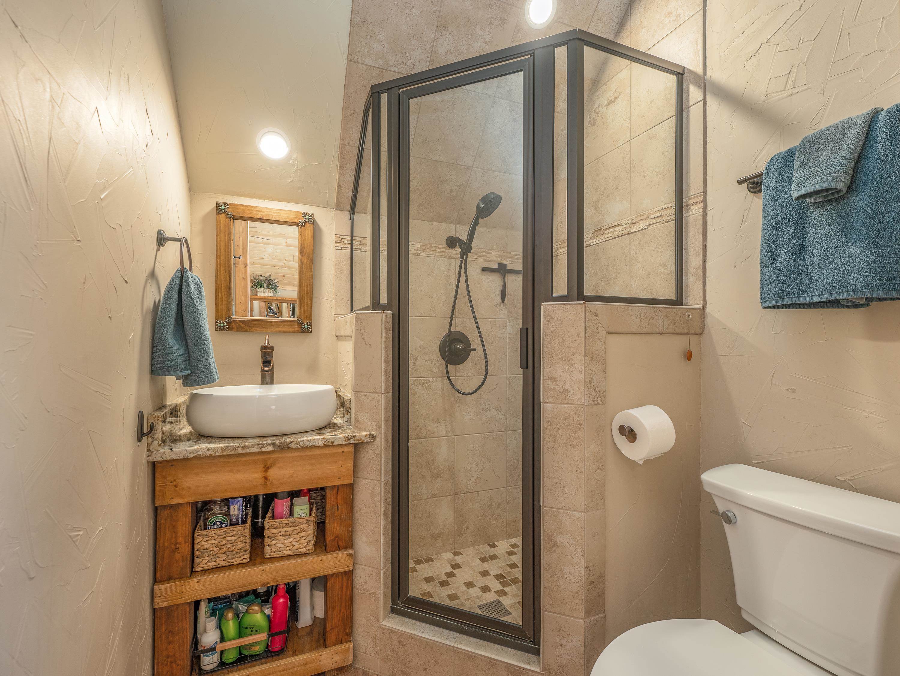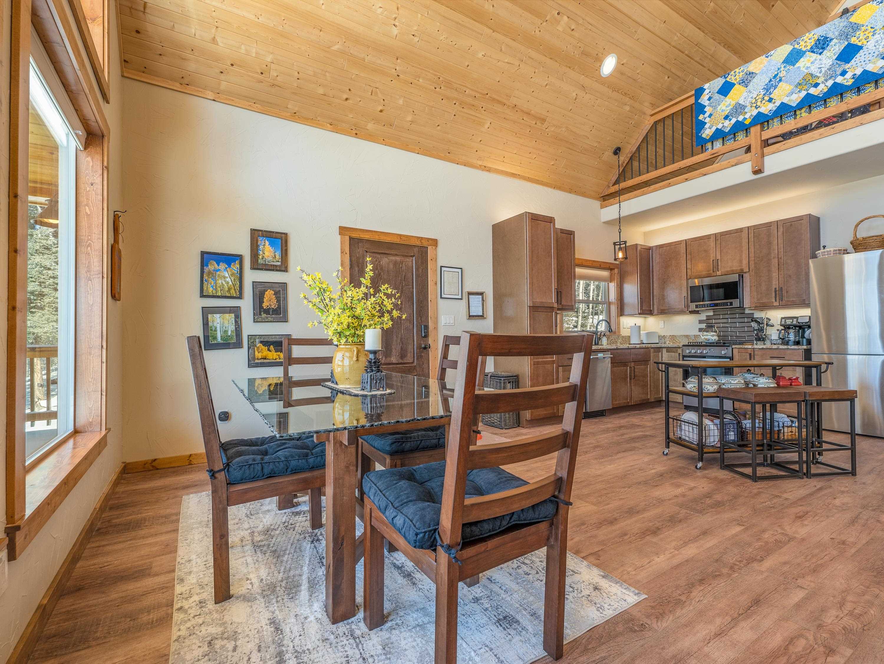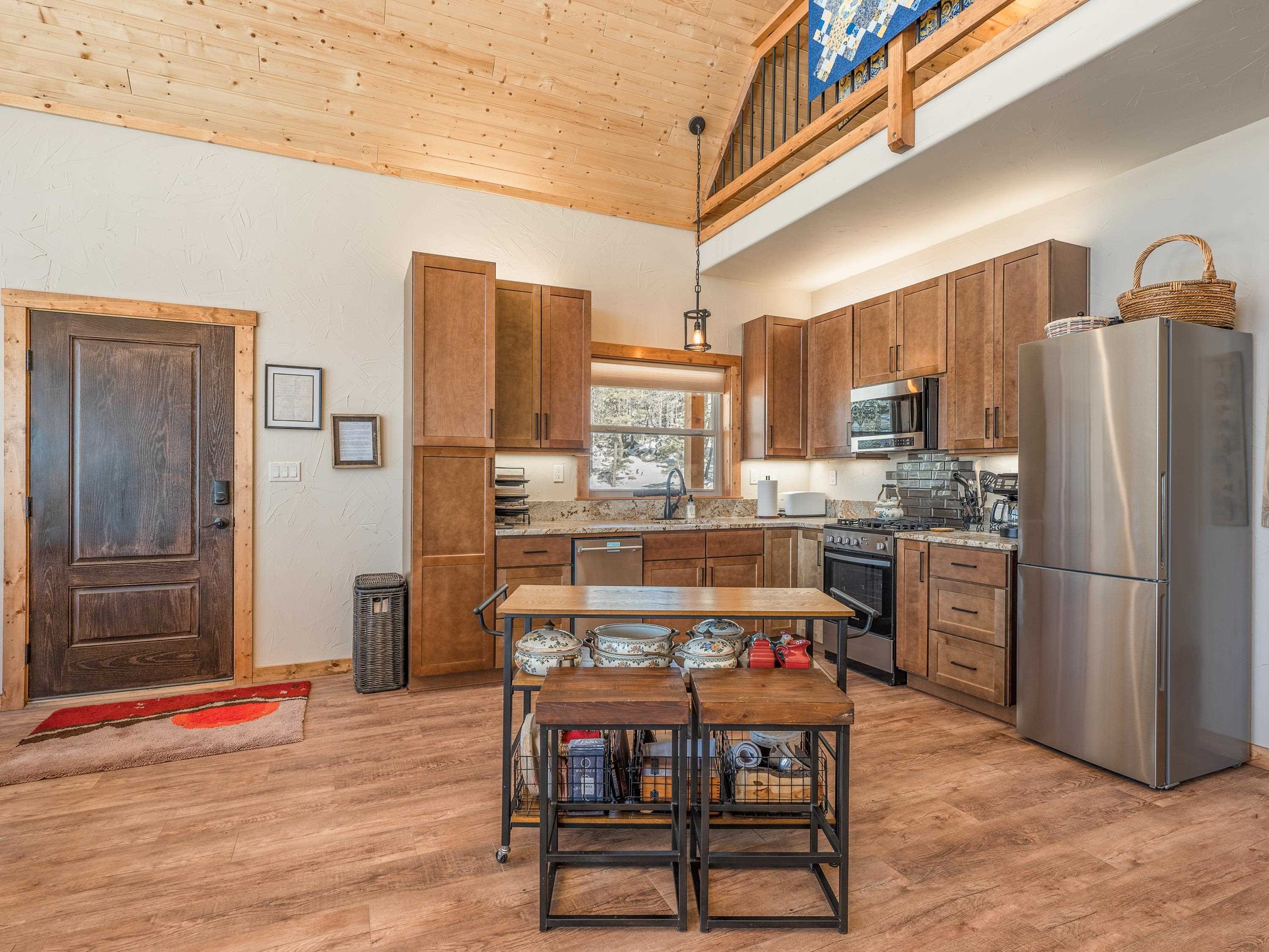 Nestled among a grove of quaking aspens, this charming home is ready to be your haven of tranquility. Built for effortless living, thisrecently completed retreat offers a serene and stylish escape with modern comforts throughout. Be wowed by breathtaking viewsthrough the expansive window wall from the moment you step inside, and let your worries melt away in the inviting atmosphere of thevaulted ceiling and spacious, open layout. Cozy up by the low-maintenance propane fireplace, prepare meals in the well-appointedkitchen—featuring premium, space-conscious appliances designed for smart and efficient living—while friends and family gather aroundthe large dining table. The main-floor primary suite features a lovely walk-in shower and a rustic vanity in the ensuite bathroom. If youseek a bit more privacy, the second bedroom is tucked above the living area, offering its own full bathroom and a cozy lofted sitting areaoverlooking the great room and stunning window wall. A roomy laundry area and a convenient half-bath complete the home’s thoughtfulinterior. Enjoy cool summer nights and sunny winter days from the expansive covered deck, and experience mountain adventures just ashort, scenic drive away at Angel Fire Resort. Leave your troubles behind and embrace mountain living at 395 El Camino Real in AngelFire, NM.