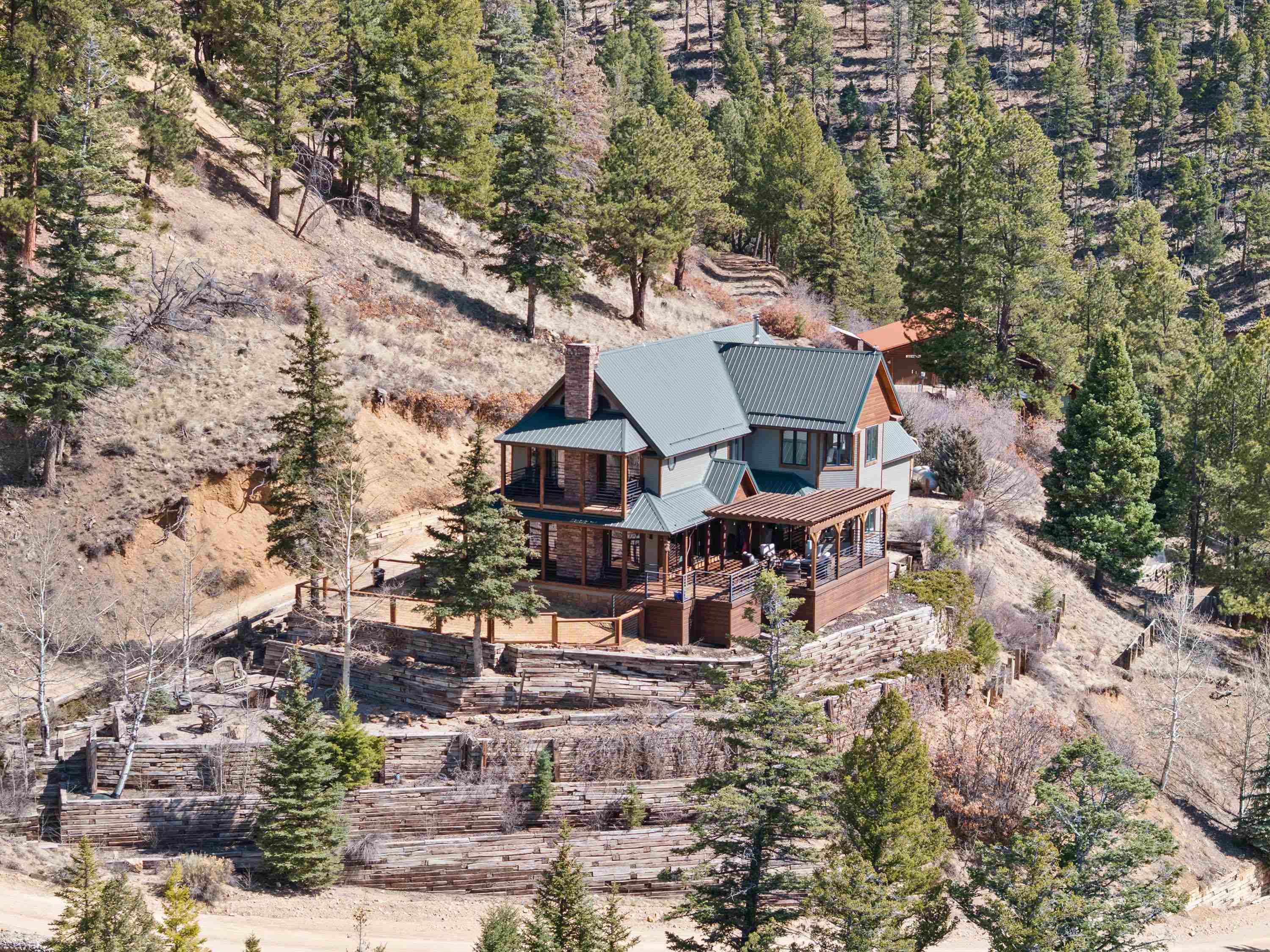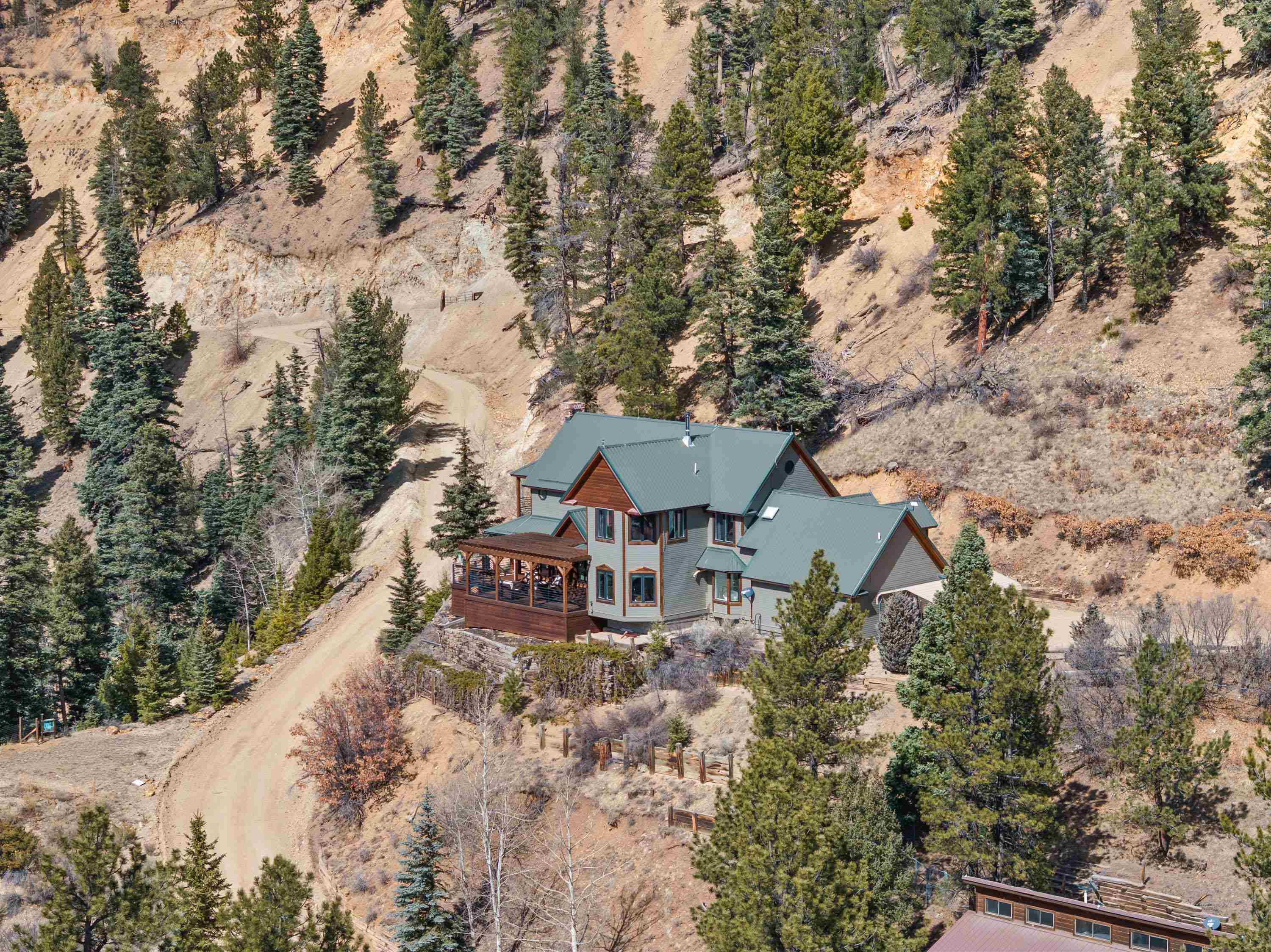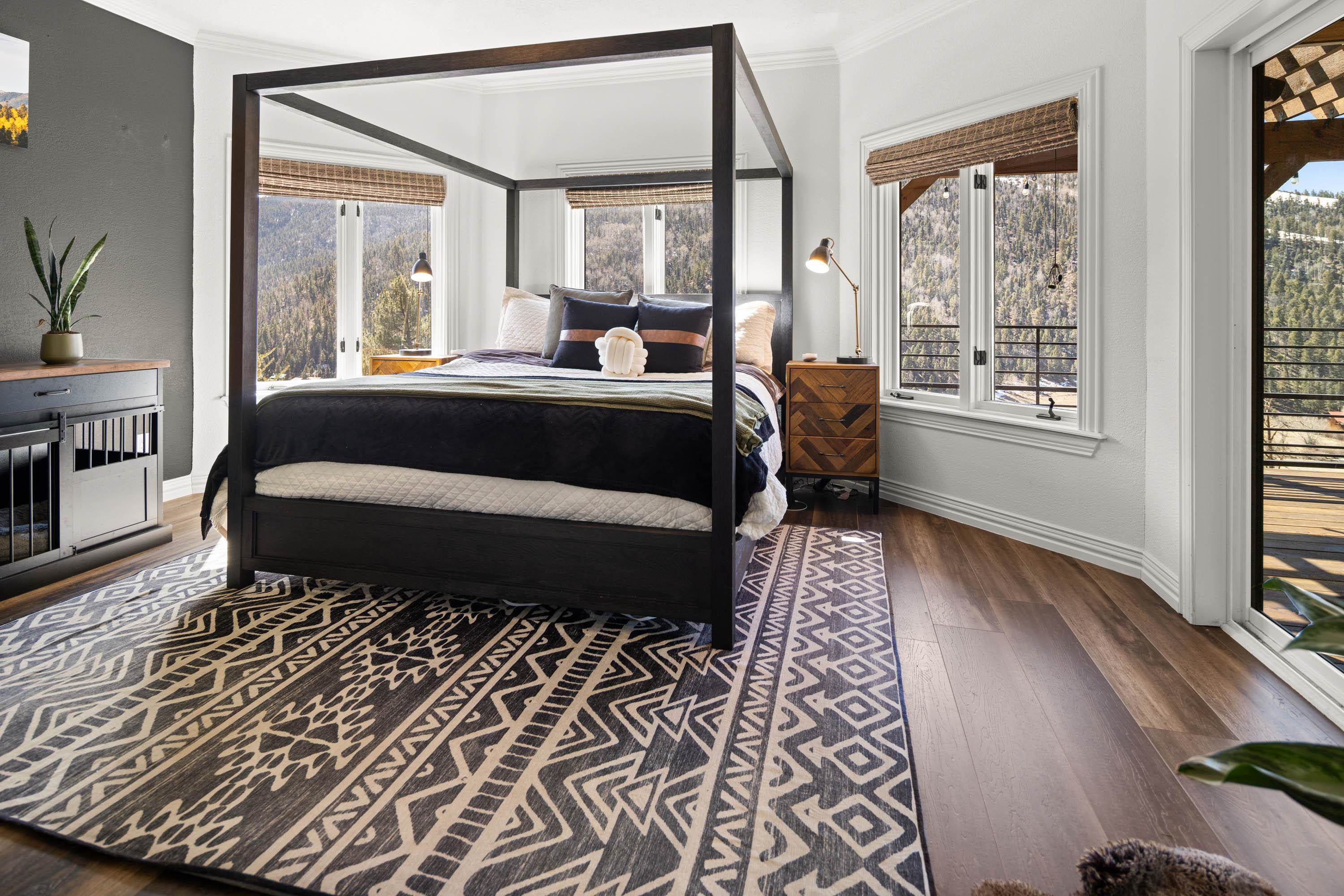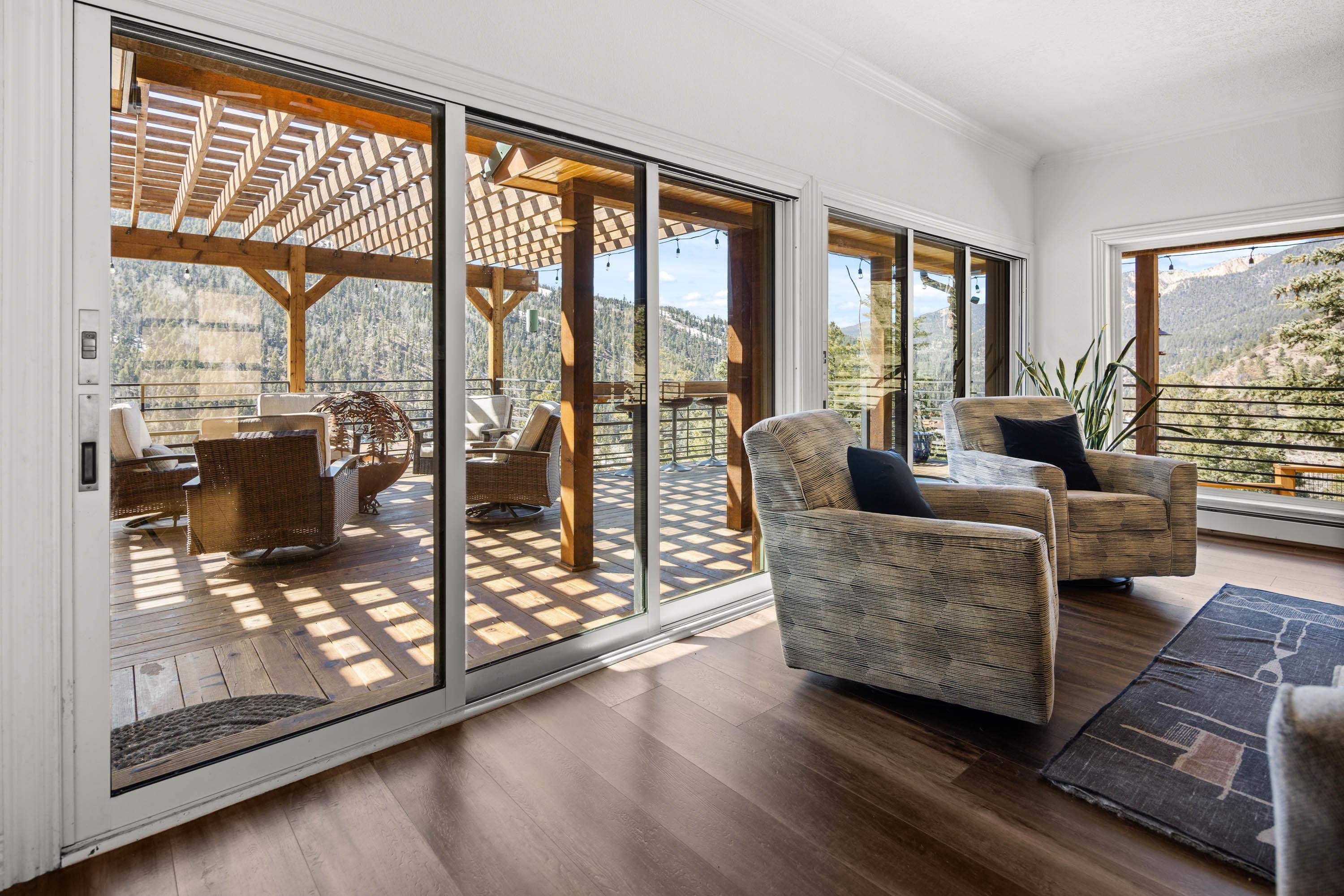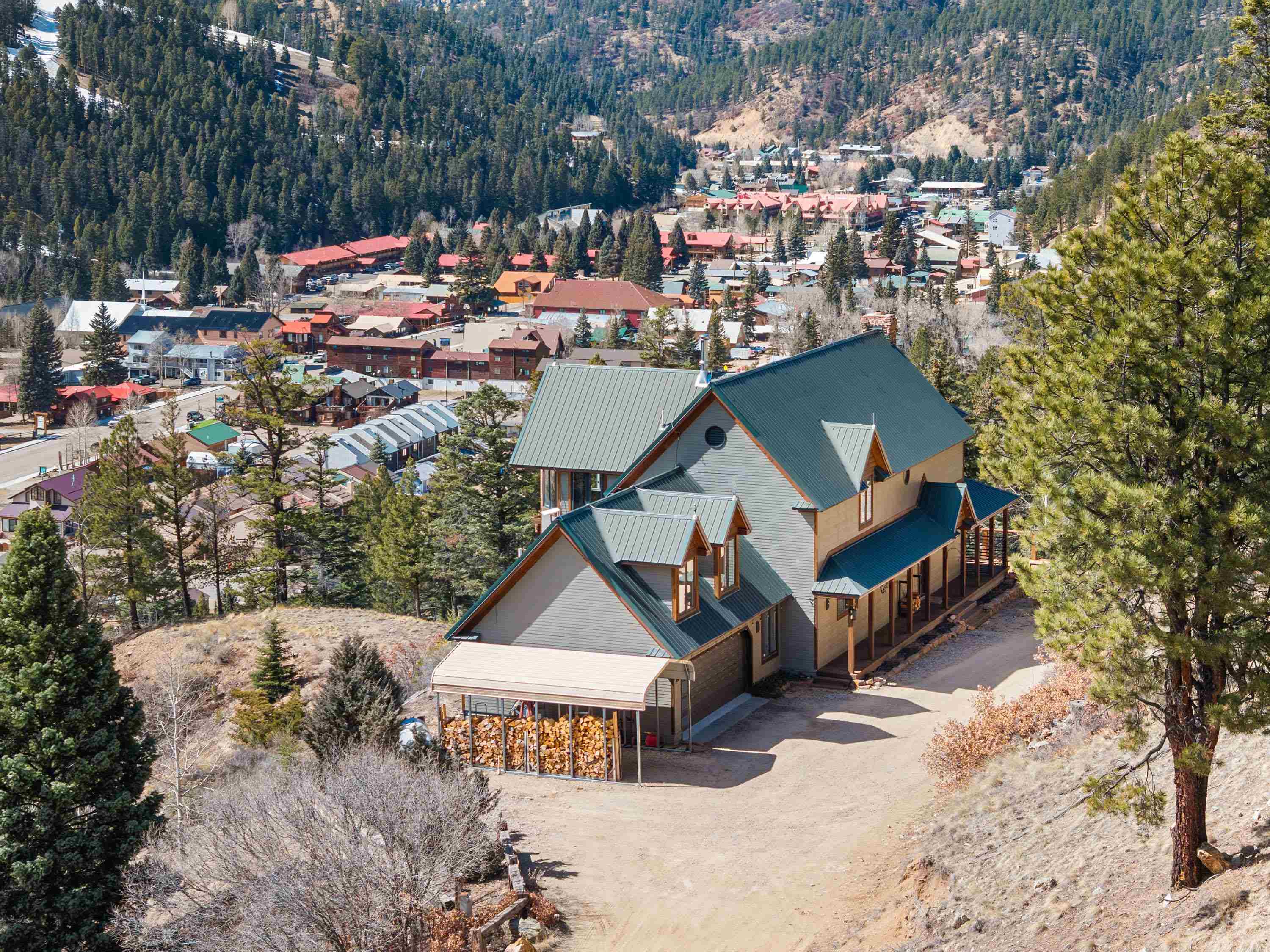 The Biggest and Best View in Red River Awaits! Welcome to 400 Spruce Trail, your fully remodeled and updated mountain retreat perched high above town. This property boasts what is arguably the biggest and best view in all of Red River, offering unparalleled panoramas of the town, mountains, and spectacular sunsets. The home welcomes you into an open living and dining area, surrounded by glass to maximize the stunning vistas. Adjacent to the wood-burning fireplace, two oversized sliders seamlessly extend the living space onto the scenic deck. Here, you can soak in the unbelievable view, gather around the custom globe fire pit, or post up at the outdoor bar overlooking the entire valley. Inside, the main floor features a wet bar complete with a built-in ice maker and beverage cooler, leading into an updated, modern kitchen - a true chef’s dream. The main floor spacious primary suite, also wrapped in windows, provides a private, bedside view over the entire valley. Up the custom floating staircase, you’ll find a second living space and two additional spacious bedrooms, each with their own ensuite bathrooms. A window-wrapped flex space on this level offers potential for an office or a fifth bedroom conversion. For added privacy, a separate fourth bedroom with an ensuite bathroom is located above the oversized two-car garage. The property comes complete with a sodded and fenced side yard and is serviced by town utilities and plowing. Call today to schedule your chance to see this one-of-a-kind property and experience the high-altitude view for yourself!