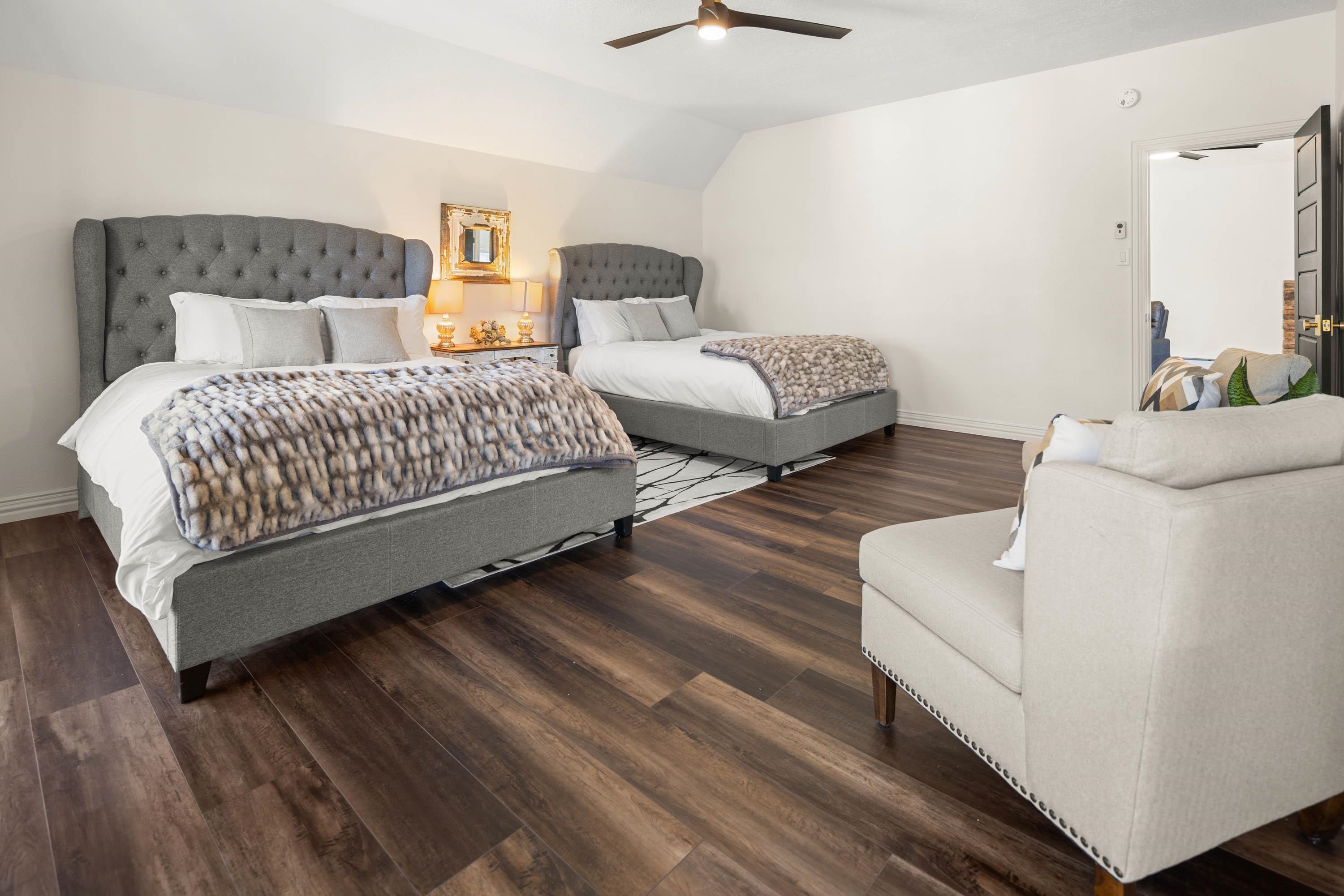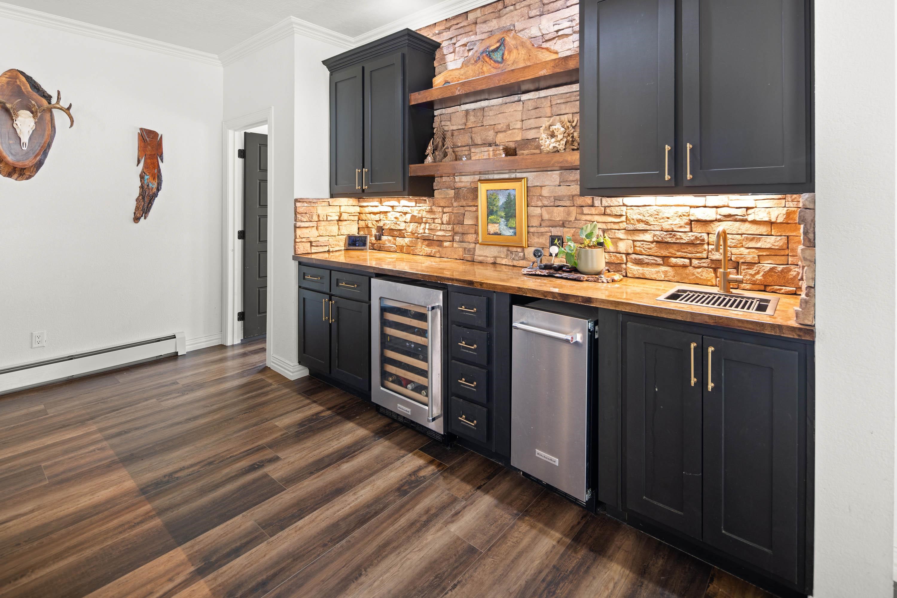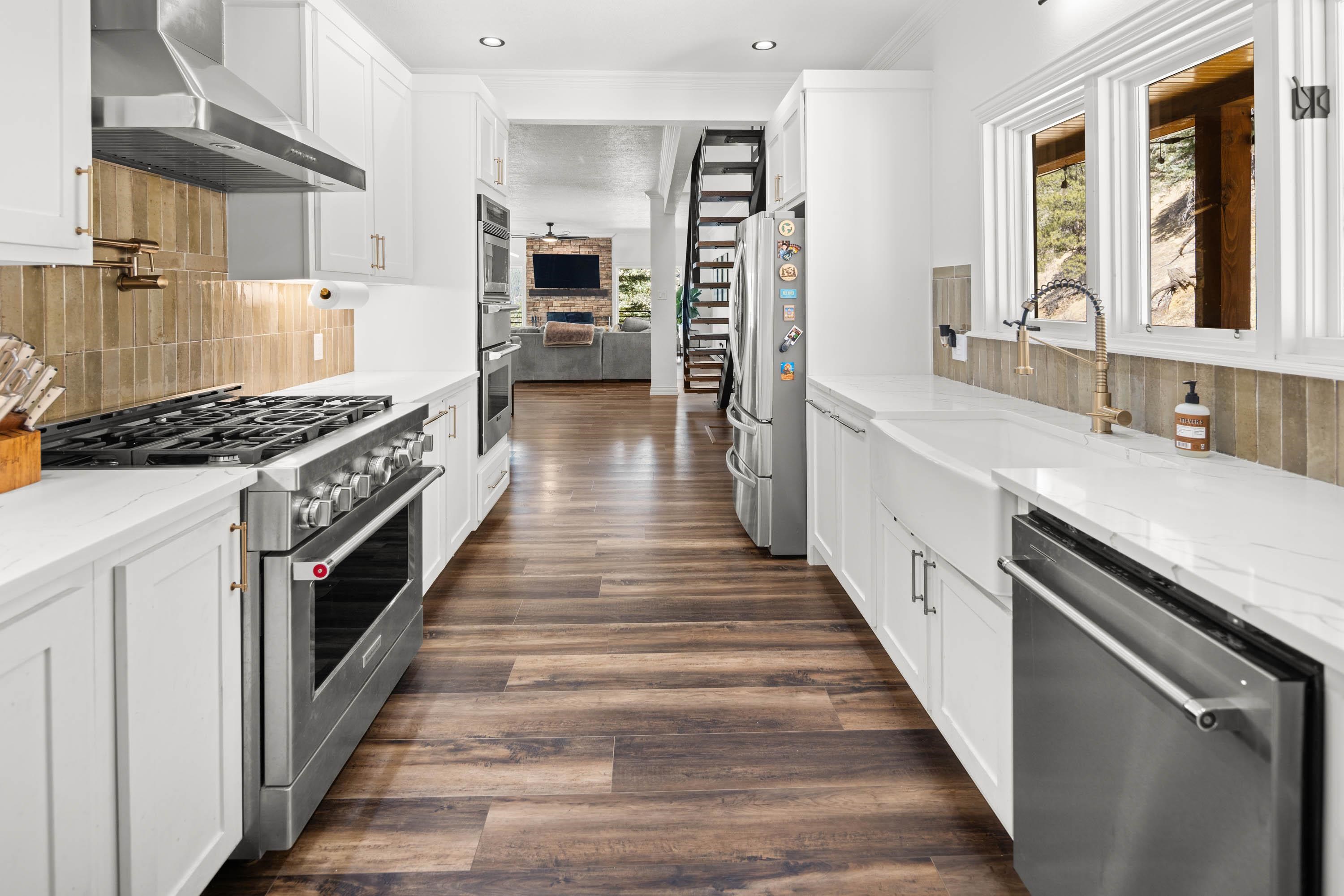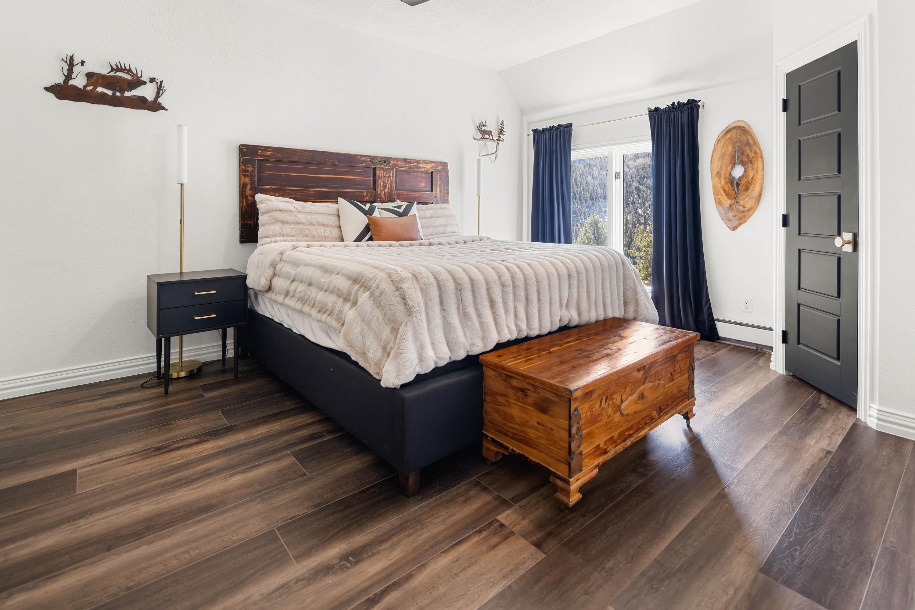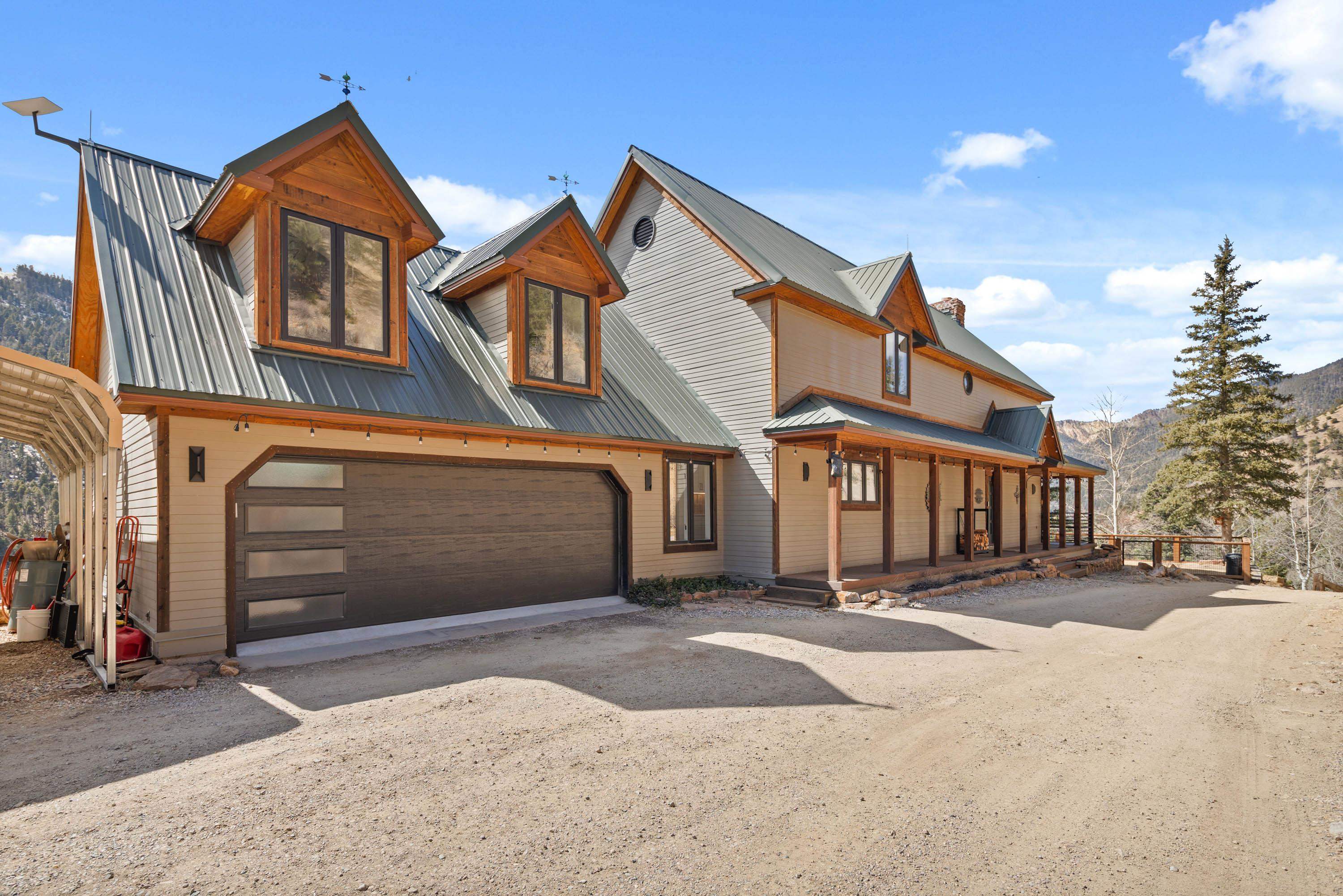 The Biggest and Best View in Red River Awaits! Welcome to 400 Spruce Trail, your fully remodeled and updated mountain retreat perched high above town. This property boasts what is arguably the biggest and best view in all of Red River, offering unparalleled panoramas of the town, mountains, and spectacular sunsets. The home welcomes you into an open living and dining area, surrounded by glass to maximize the stunning vistas. Adjacent to the wood-burning fireplace, two oversized sliders seamlessly extend the living space onto the scenic deck. Here, you can soak in the unbelievable view, gather around the custom globe fire pit, or post up at the outdoor bar overlooking the entire valley. Inside, the main floor features a wet bar complete with a built-in ice maker and beverage cooler, leading into an updated, modern kitchen - a true chef’s dream. The main floor spacious primary suite, also wrapped in windows, provides a private, bedside view over the entire valley. Up the custom floating staircase, you’ll find a second living space and two additional spacious bedrooms, each with their own ensuite bathrooms. A window-wrapped flex space on this level offers potential for an office or a fifth bedroom conversion. For added privacy, a separate fourth bedroom with an ensuite bathroom is located above the oversized two-car garage. The property comes complete with a sodded and fenced side yard and is serviced by town utilities and plowing. Call today to schedule your chance to see this one-of-a-kind property and experience the high-altitude view for yourself!
