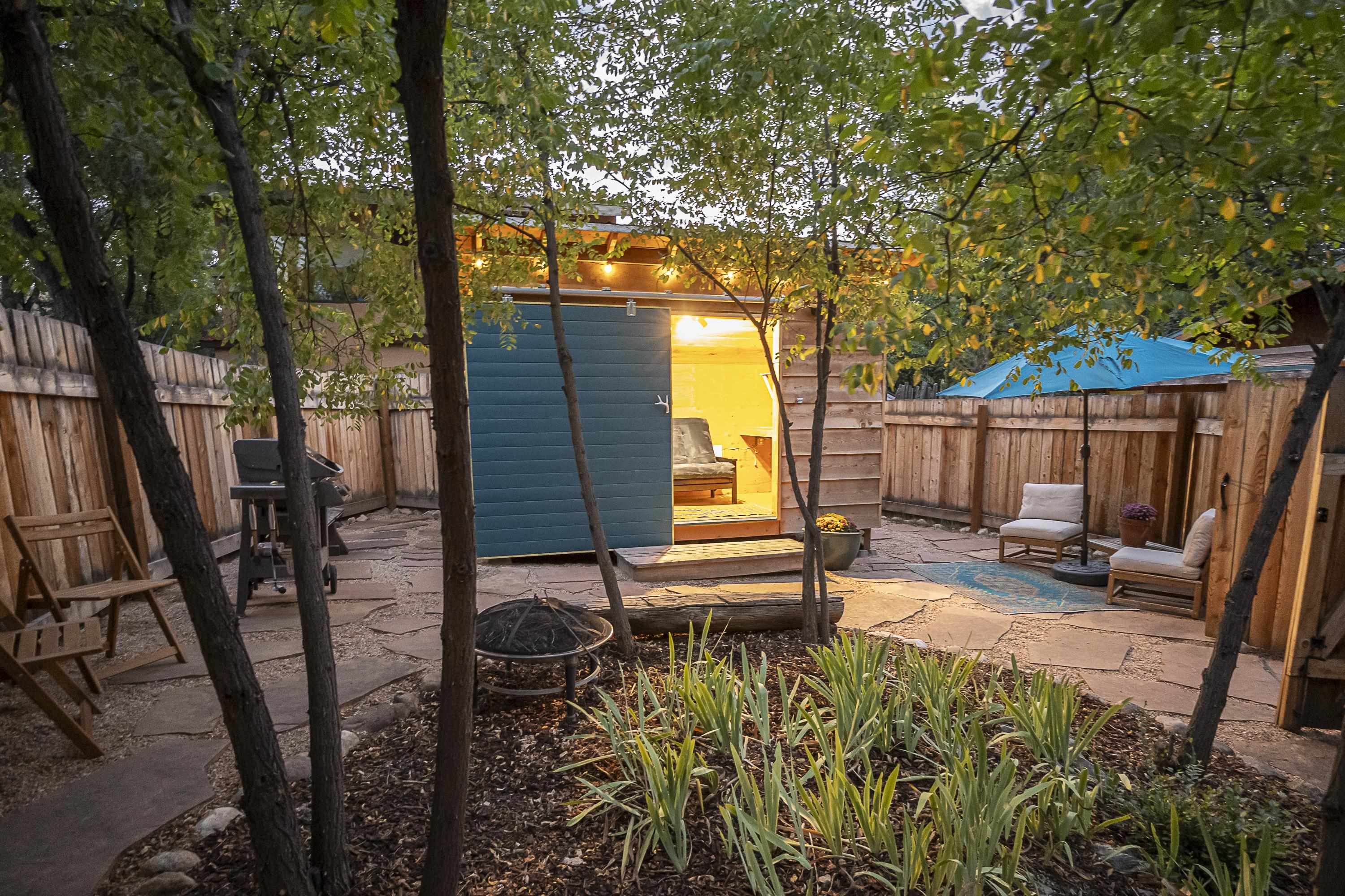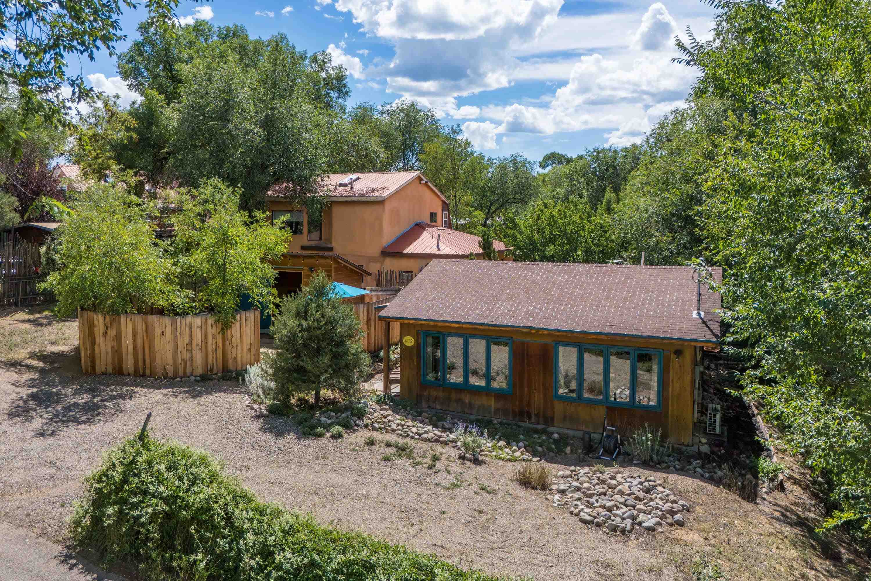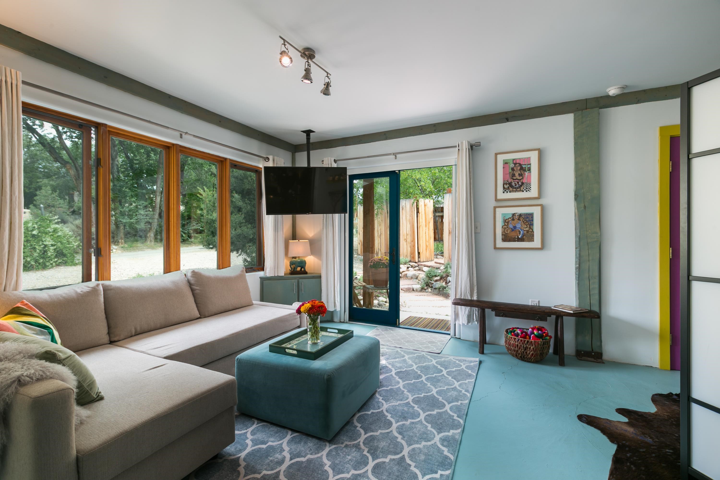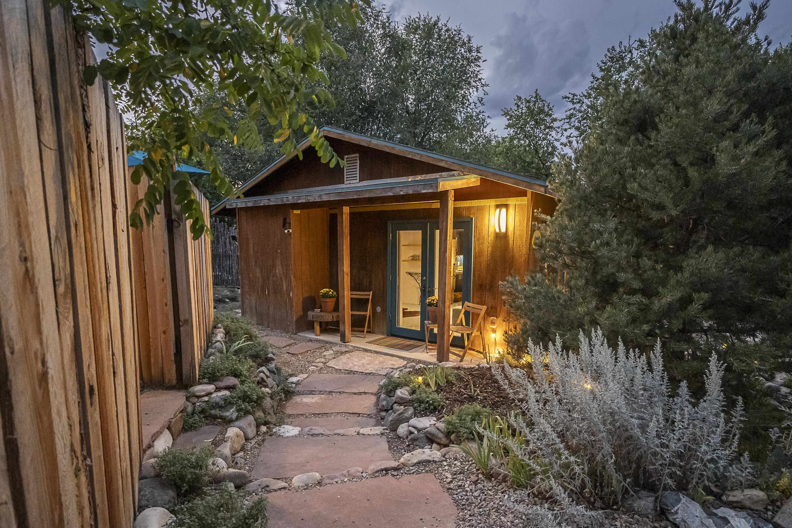 Turnkey 1BR Standalone Casita with a Party Patio- Steps from Taos Plaza! This is more than a home, it's a fully furnished, move-in-ready Taos Experience. A true Unicorn in the heart of town, this private casita is filled with natural light, artistic flair, and Northern New Mexico soul. Thoughtfully renovated and COMPLETELY APPOINTED, the home is being offered fully furnished, featuring a handpicked collection of works by some of Taos' most beloved local artists- no imports, no replicas, just real local talent. This sweet gem has everything you need- a fantastic kitchen with diner bar topped with the coolest countertops, new appliances and loads of storage. The efficient layout and use of space has afforded room for everything- a living room, a dining area, a sleeping nook, THREE closets and a luxurious bath with full sized front-loading washer and dryer. Just outside the house is a fully enclosed private party patio with a deluxe shed equipped with power. Many, many options for what you could do with this space and this new, well-built, weather-proof shed. There is a currently a grill and some lounge-y furniture and this generous outdoor entertaining area is surrounded by a tall privacy fence! Trujillo is a quiet, dead end street and just a short jaunt from the Plaza and all that town has to offer. Close to shops, galleries, restaurants, bars, concerts at Kit Carson park. This property is also moments away from Sunset Park, an urban green-space oasis. Or just down the street you can check out your neighborhood llamas, this location is a fun mix of urban convenience and serene nature bathing. From furniture to fine art, every detail has been chosen with care, creating a turn-key sanctuary that's truly one-of-a-kind. Whether you're seeking a pied-a-terre, a boutique short-term rental, your own creative escape, or a tiny in town home, this is that rare kind of listing in this price range-one that needs nada!!! Artfully Taos. Fully Yours.