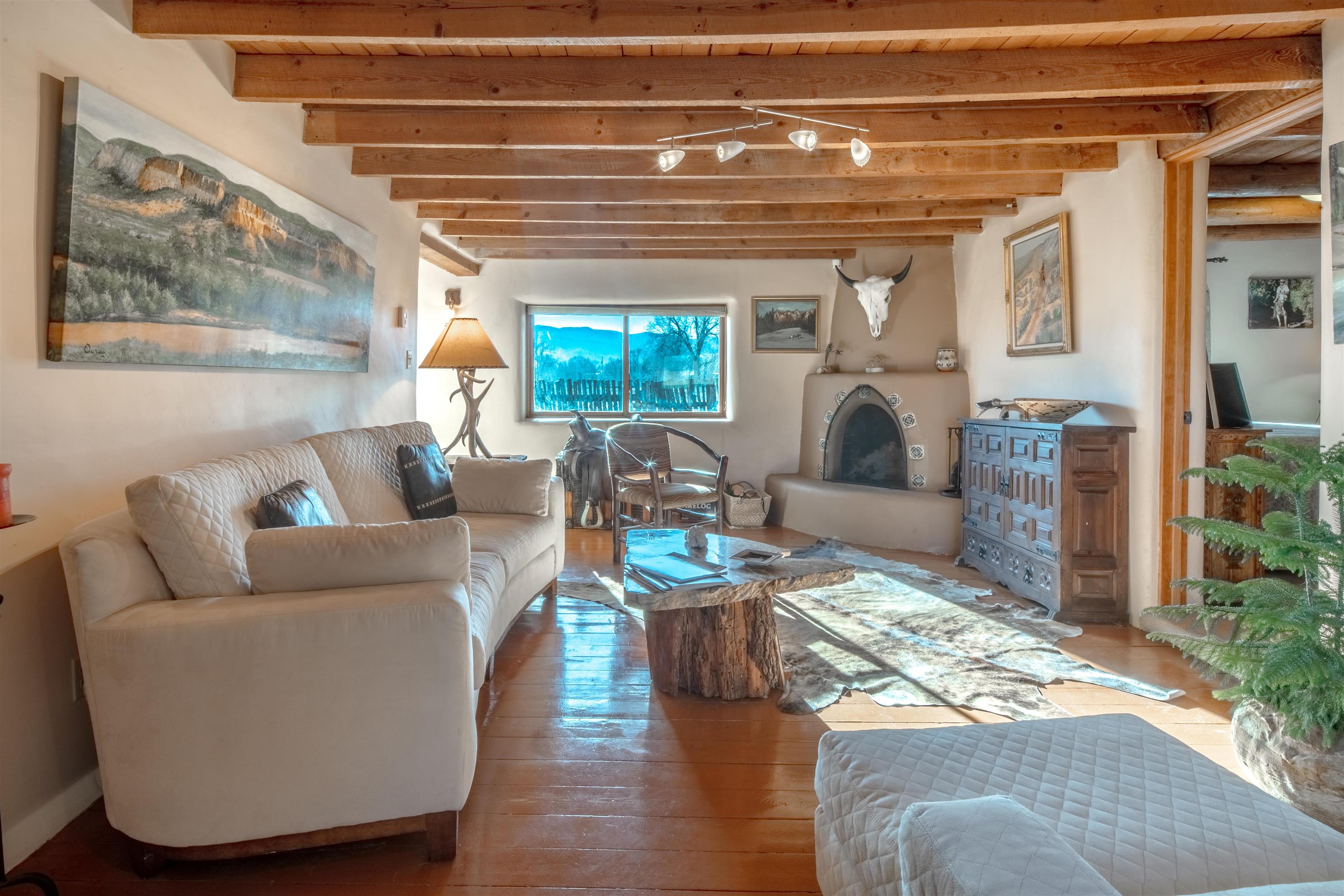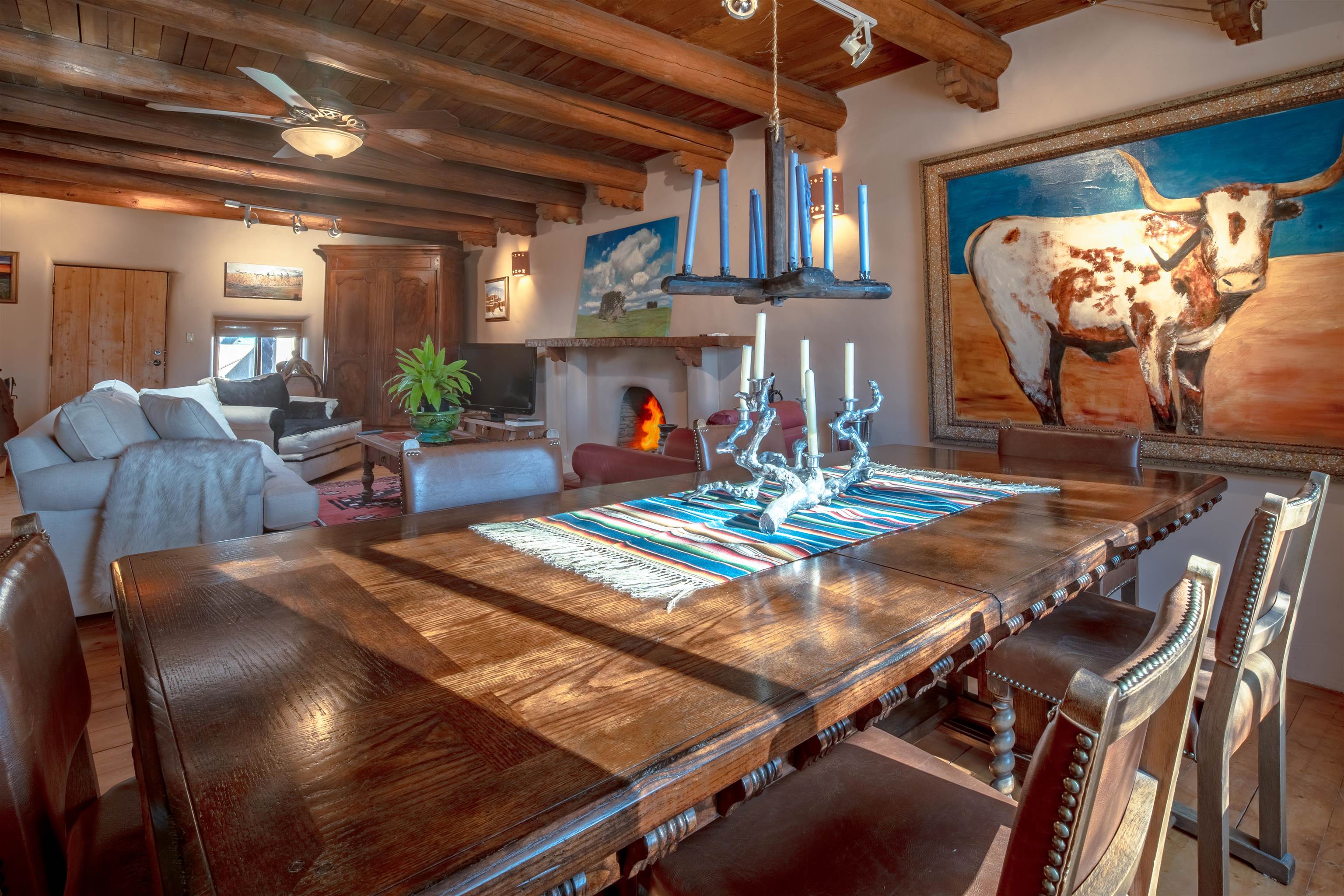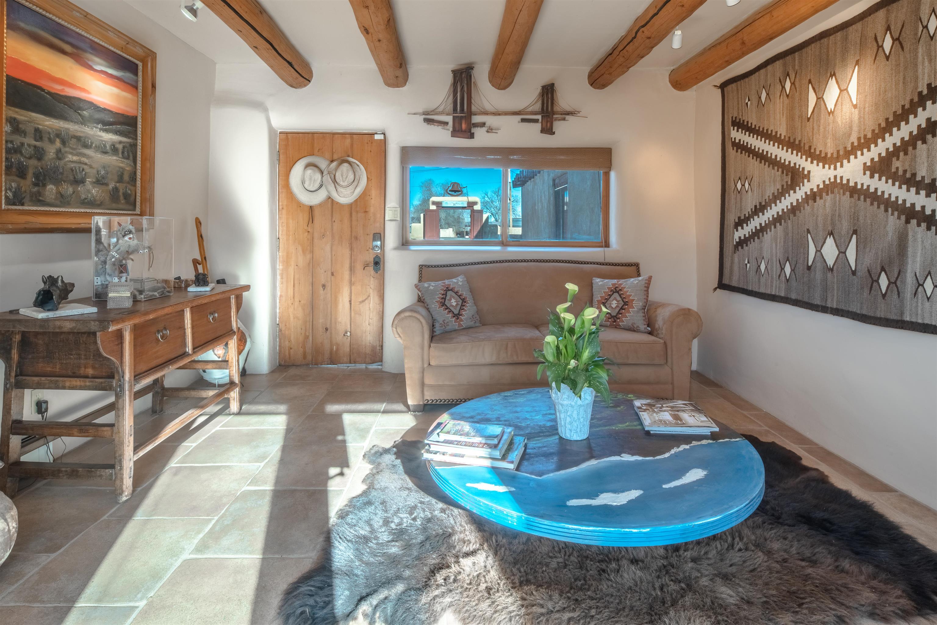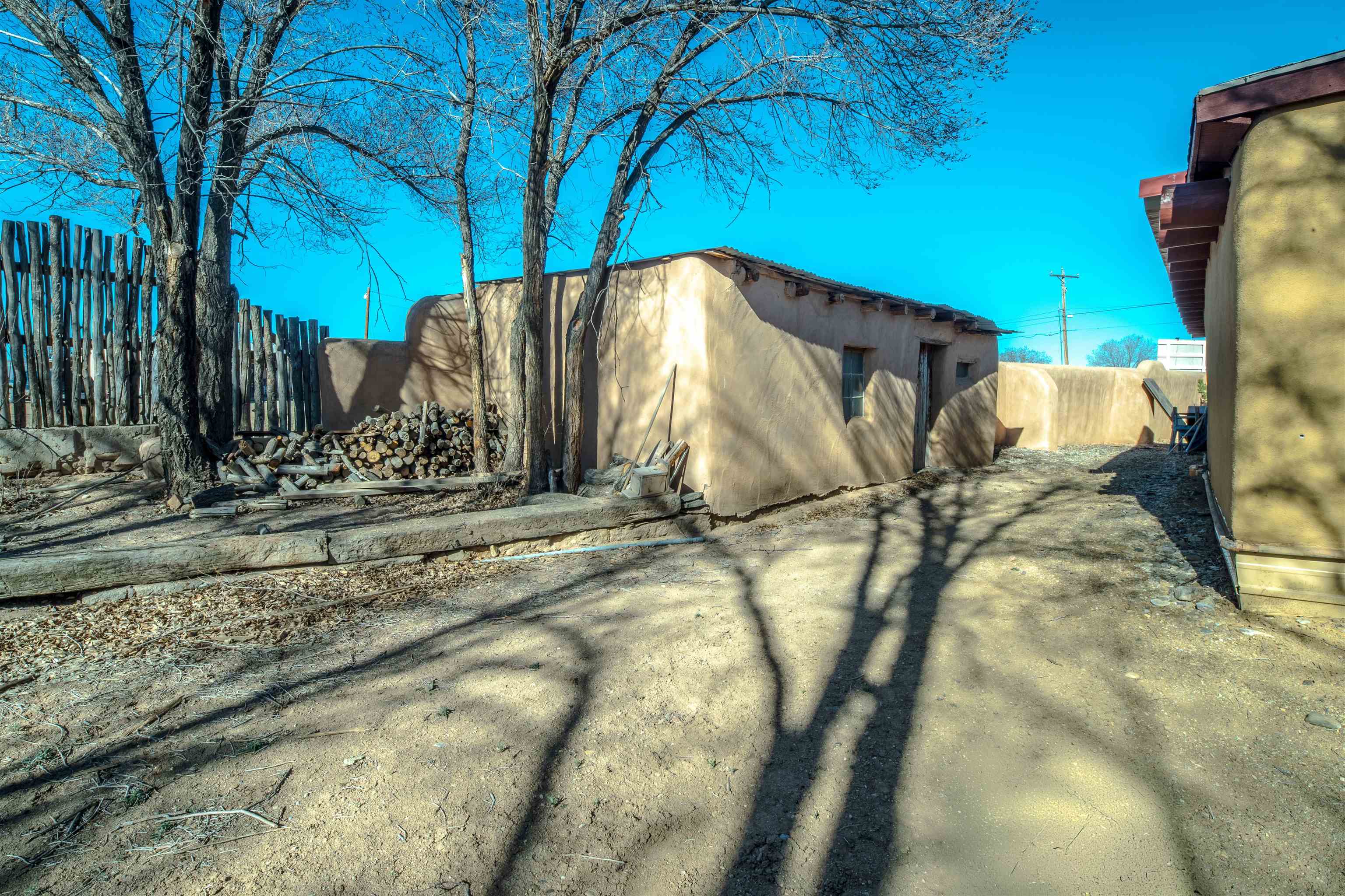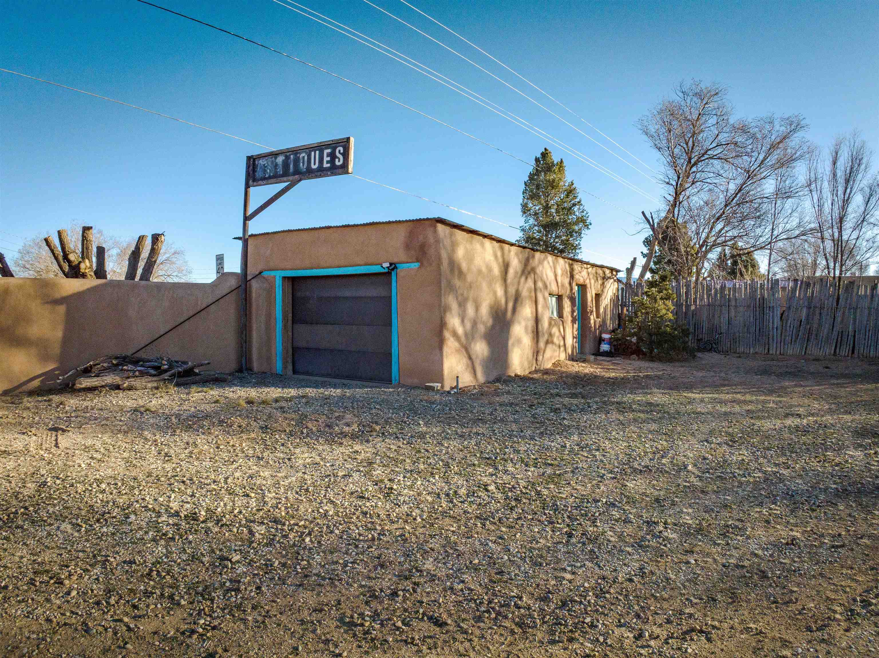 Single-level artistic Southwest home featuring three bedrooms and two baths, designed with charm and character throughout. Multiple living areas offer flexible space for relaxing or entertaining, while cozy bedrooms provide a comfortable retreat. Enjoy open views and authentic Southwest flair, complemented by a bright breakfast area and a dedicated dining room. A welcoming open courtyard entrance creates a beautiful first impression and a peaceful outdoor gathering space. The property also includes a separate artist studio—perfect for creative work or a private office. Additional features include a detached garage with storage space and fully fenced yard.