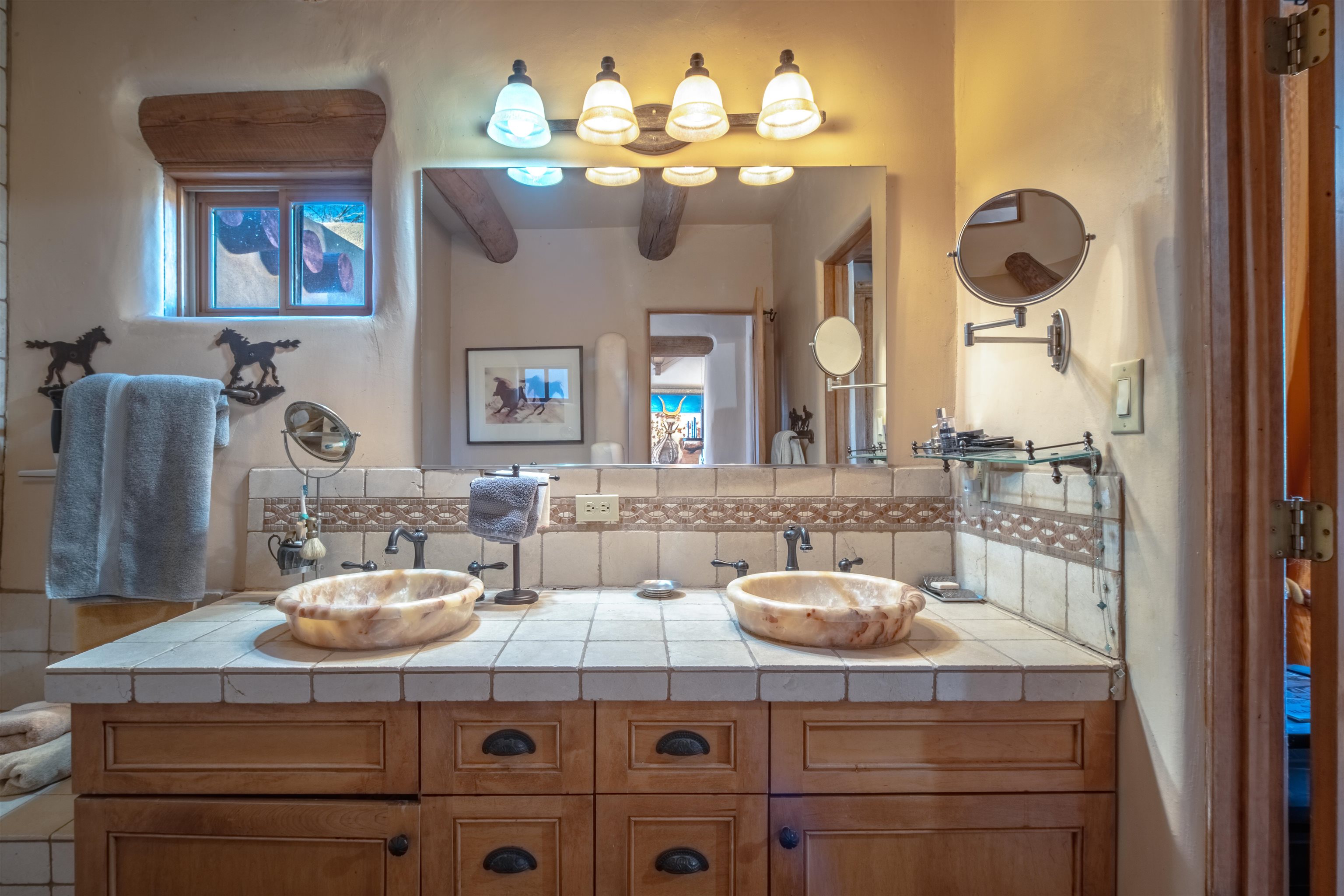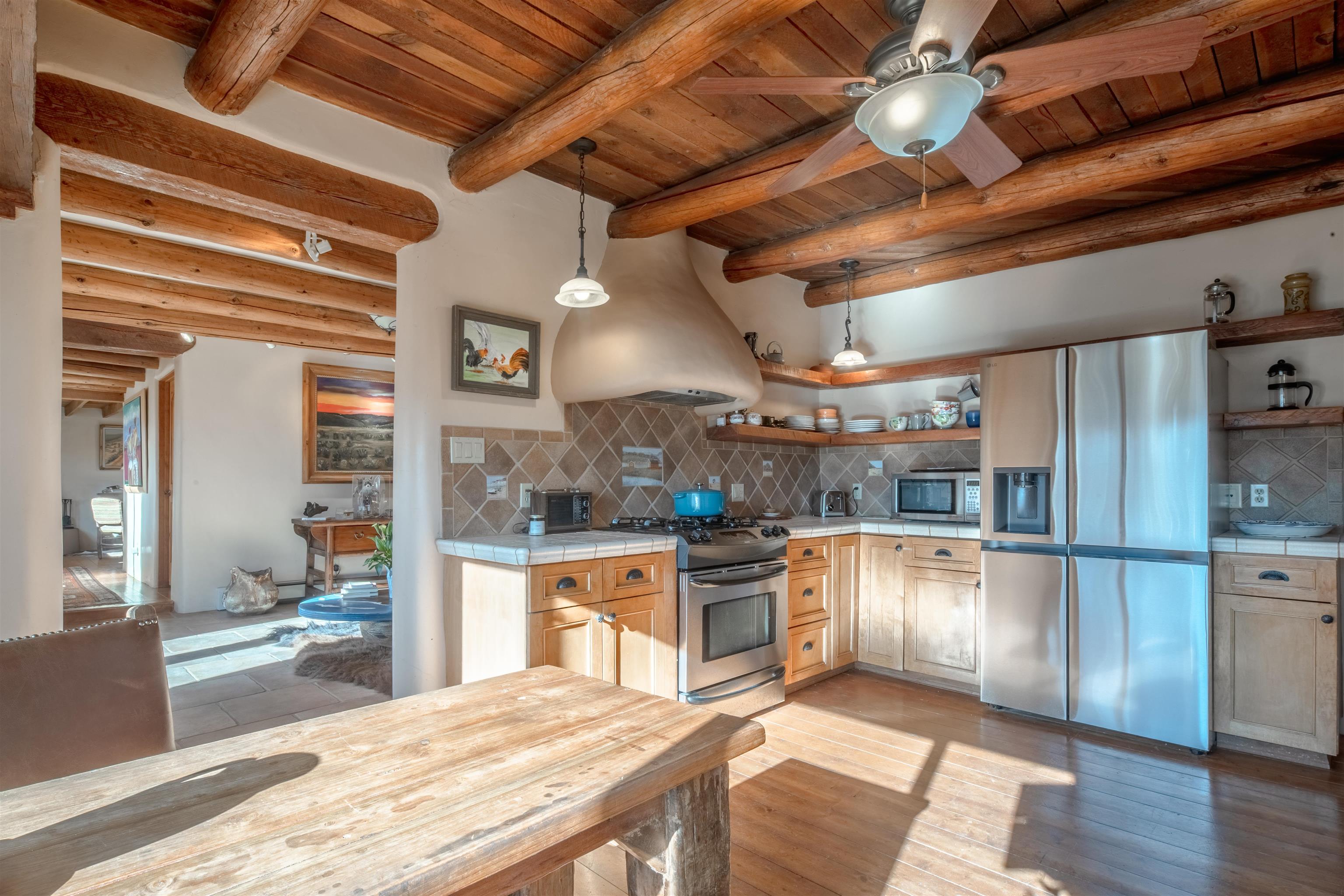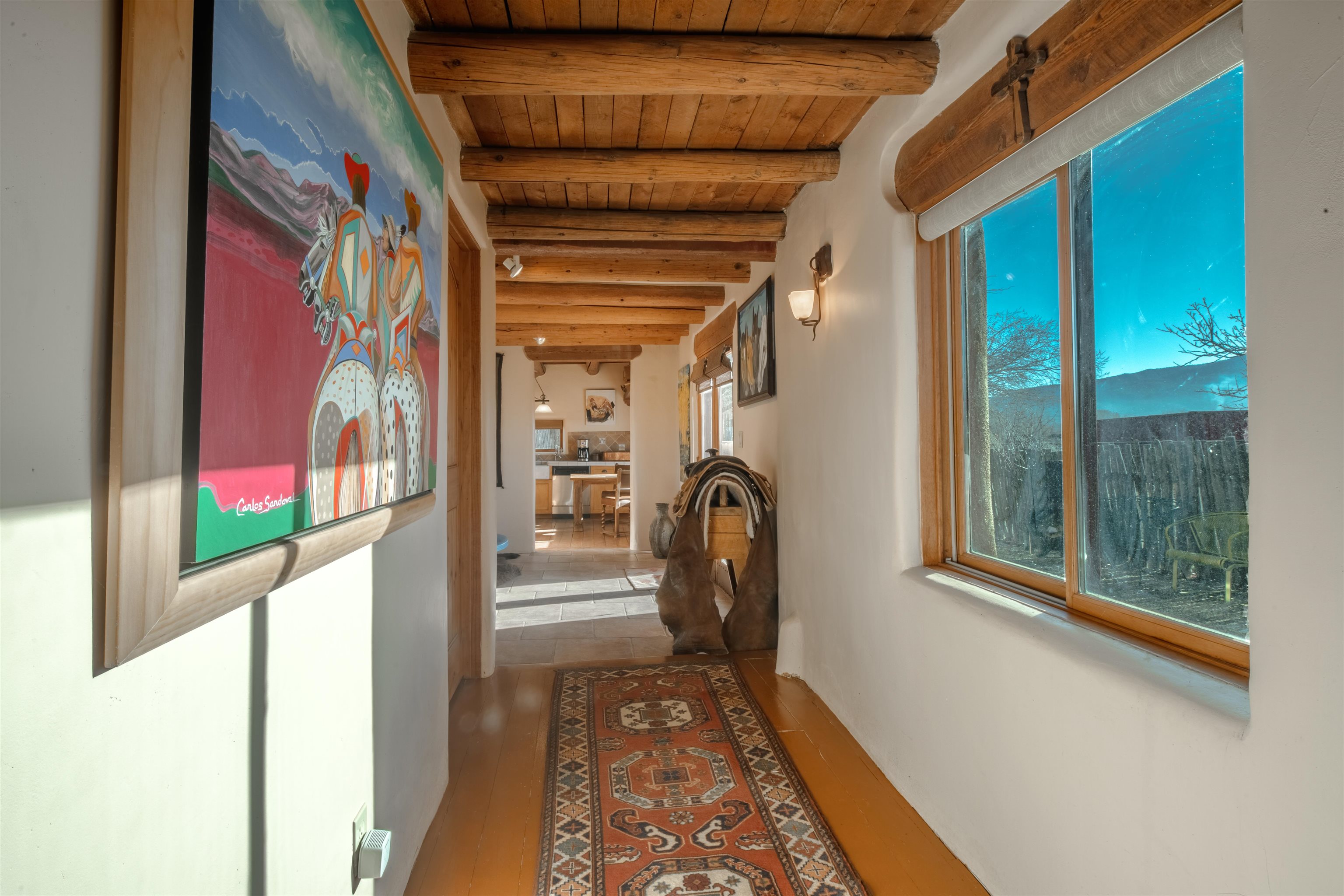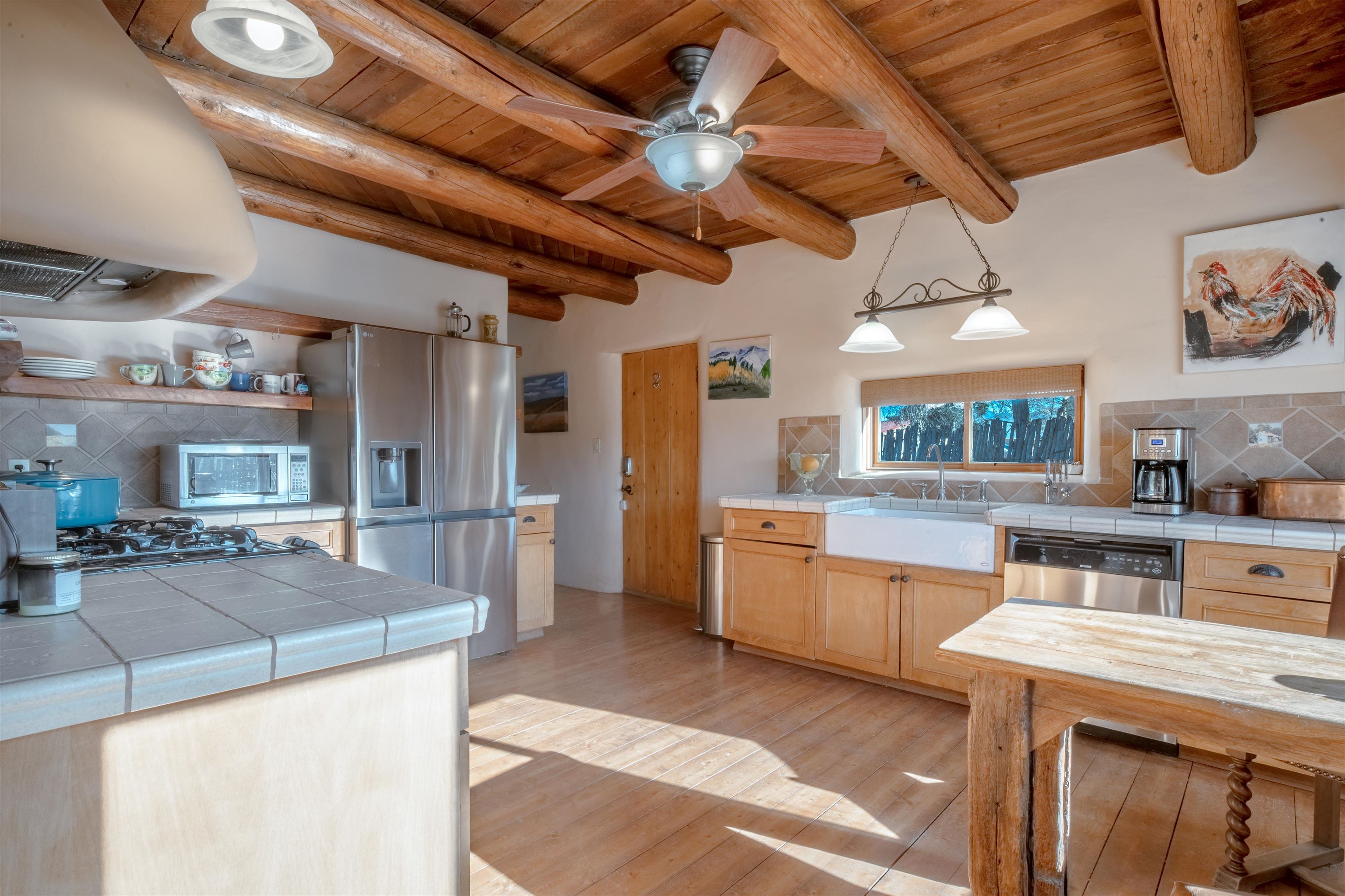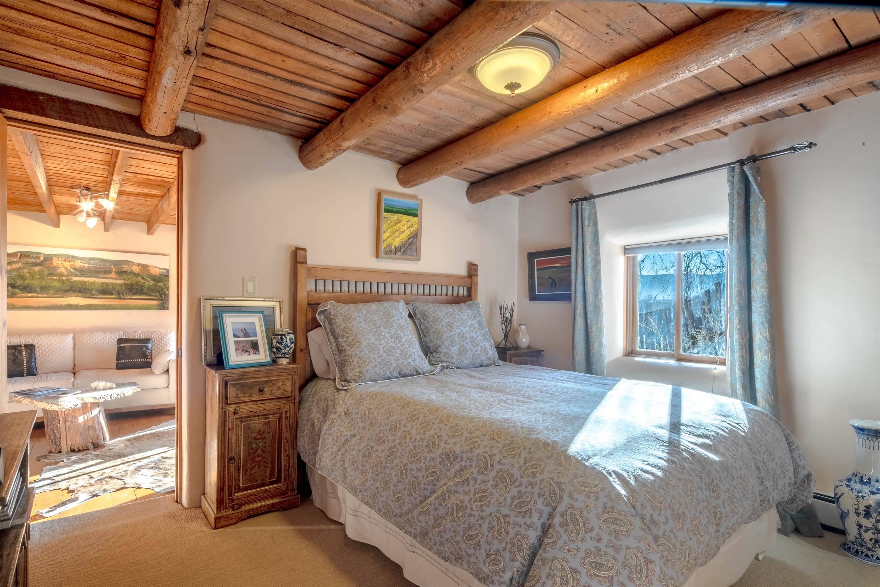 Single-level artistic Southwest home featuring three bedrooms and two baths, designed with charm and character throughout. Multiple living areas offer flexible space for relaxing or entertaining, while cozy bedrooms provide a comfortable retreat. Enjoy open views and authentic Southwest flair, complemented by a bright breakfast area and a dedicated dining room. A welcoming open courtyard entrance creates a beautiful first impression and a peaceful outdoor gathering space. The property also includes a separate artist studio—perfect for creative work or a private office. Additional features include a detached garage with storage space and fully fenced yard.