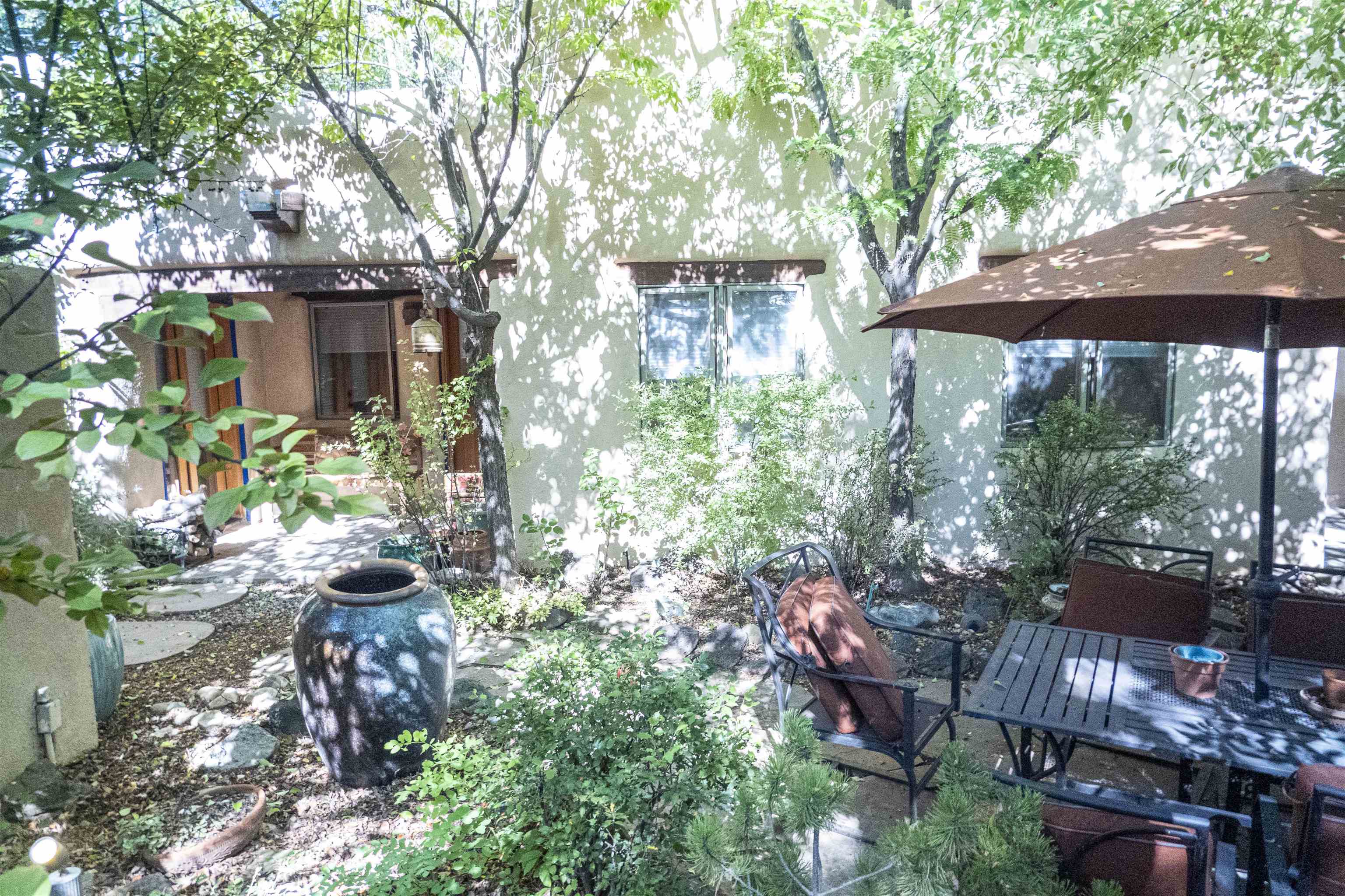 Los Rosales De Taos Condominiums are some of the most sought after residences in Taos. In Walking distance to Taos Plaza and right across the street from El Monte Sagrado Resort and Spa, this unique one story condominium features all the fine finishes of a true adobe home. it has a magnificent private courtyard, and portal for outdoor living. With radiant floor heat and a genuine Carmen Velarde fireplace you will be cozy and warm. This is the first time ever that the Unit has been placed on the market and is still owned by the original developer.