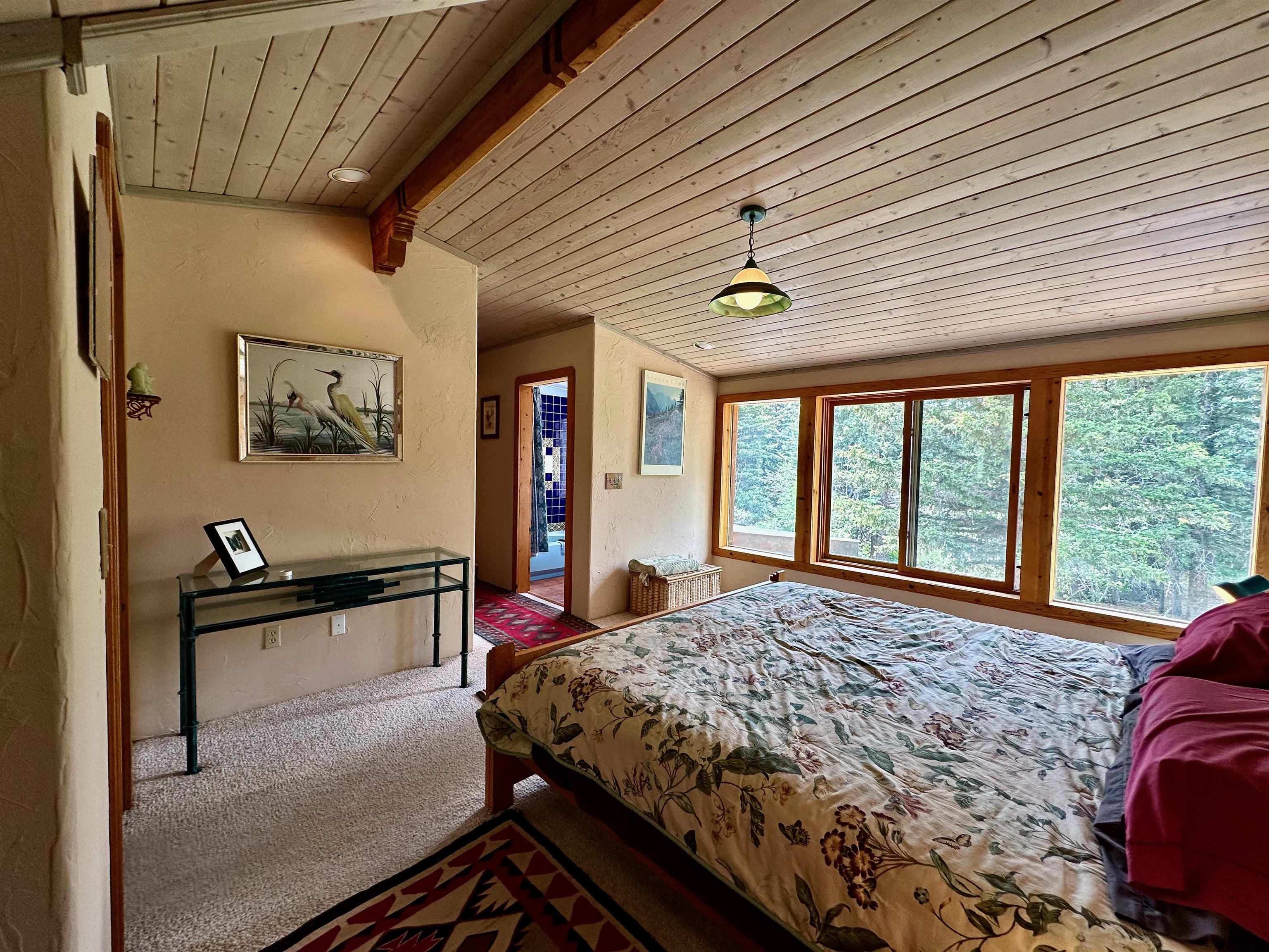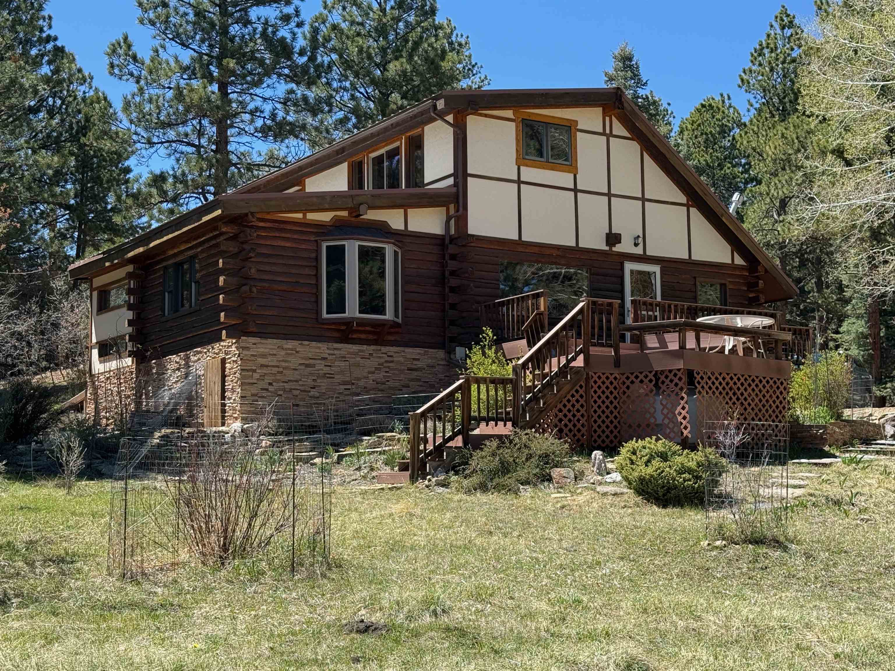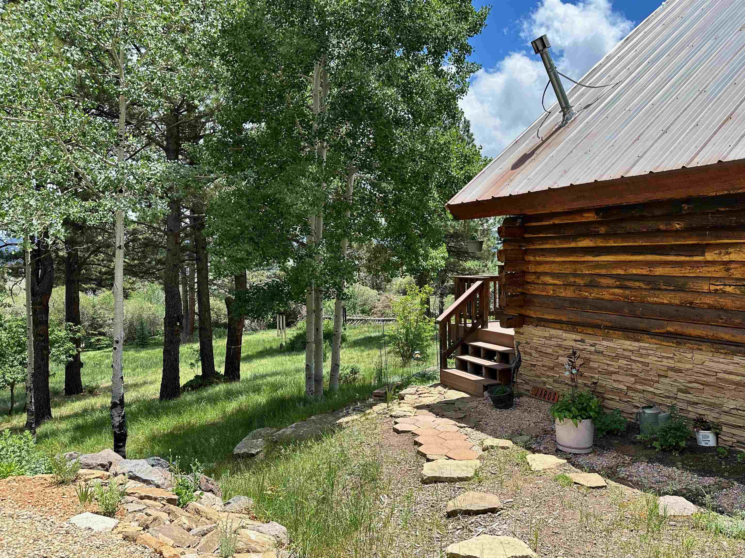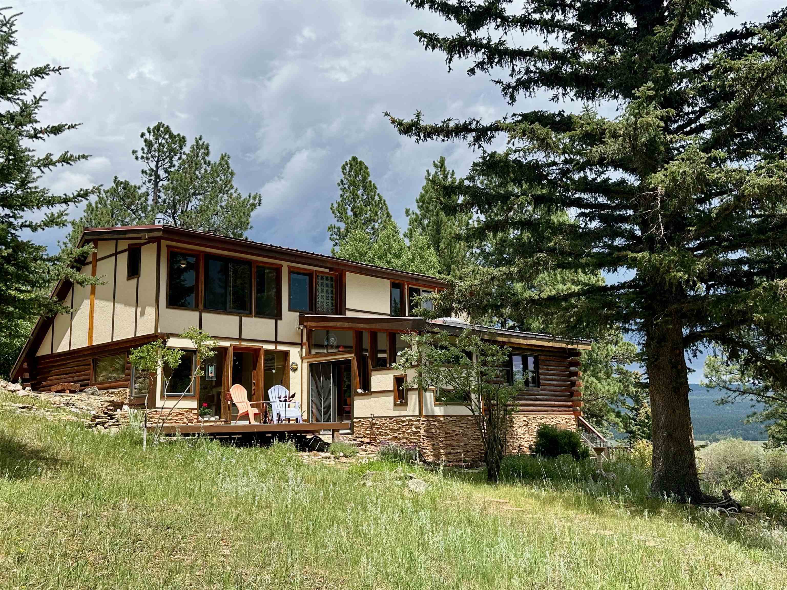 In the Black Lake area of Angel Fire, NM... a rare find. Truly creative, artistic mountain cabin on some of the loveliest land around. 5 acres pf gently sloping all-useable land. Fruit trees, gardens, cool landscaping, a seasonal stream and views of the land where Lonesome Dove was filmed. Wildlife everywhere in this hidden paradise. Beautiful woodwork by local artists/craftsmen. In addition to the two bedrooms is a large loft. There is a second living area off the Guest Bedroom on the first flooor. First floor laundry room. Lots of Trex decks for entertaining. Minutes to the Angel Fire Resort with its ski mountain, nationally recognized mountain bike terrain park, PGA-rated golf-course, $15 mill country club with tennis and pickleball courts, etc. Angel Fire airport with its jet-capable airport for private aircraft is close-by. For those that dream of working remotely in the southern Rocky Mountains, blazing fast and reliable fiber-optic internet is run into the house. Average summer temperature is 76 degrees and mosquitoes, chiggers, no-see-ems, fleas and poisonous snakes choose not to live at our altitude. Angel Fire is on the Enchanted Circle of northern NM, one of the West's best gathering places for outdoor sports and activities. Come visit and see for yourself.