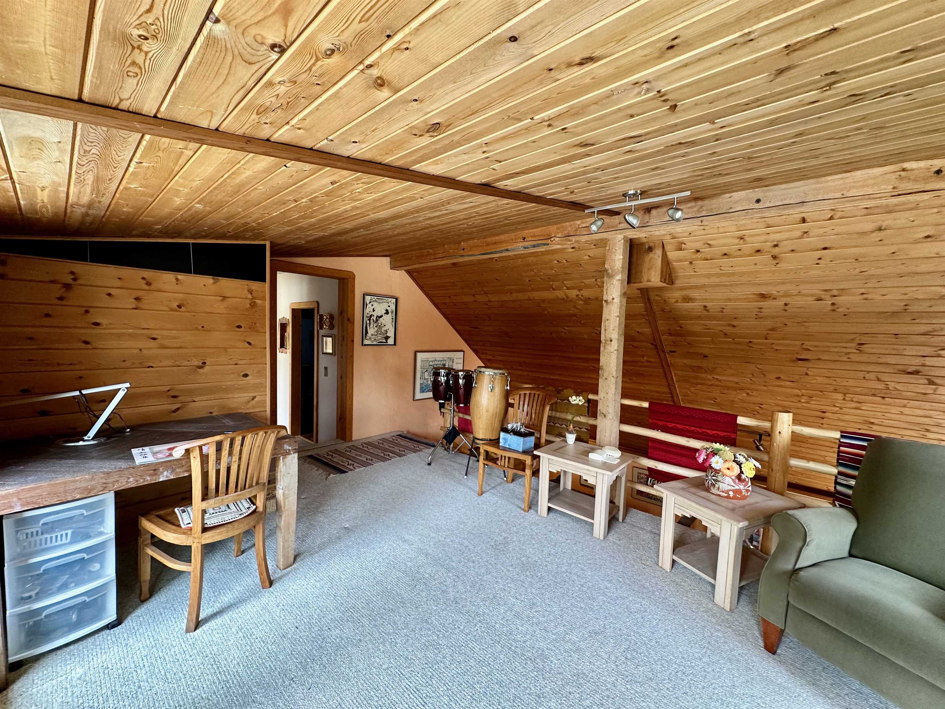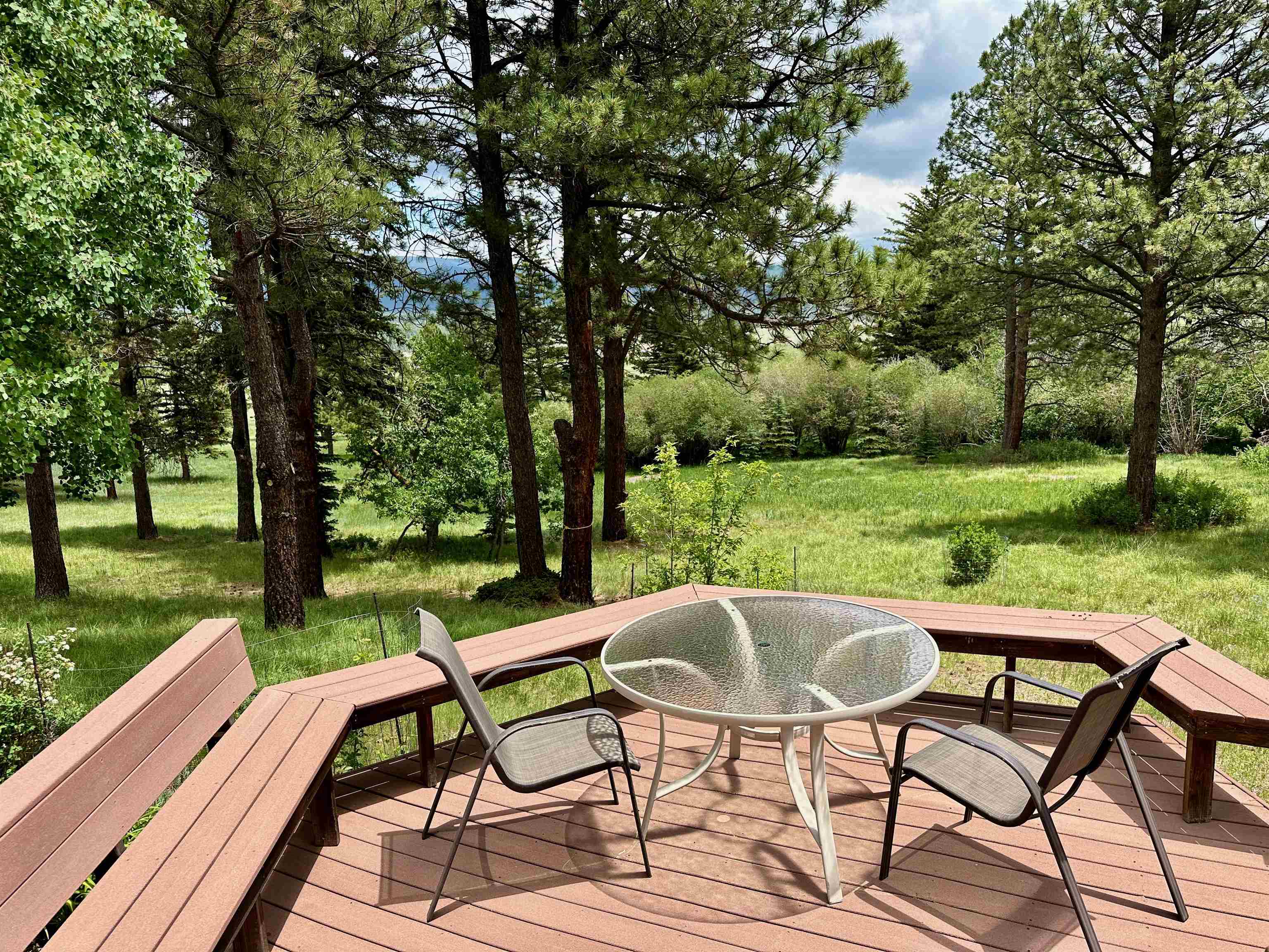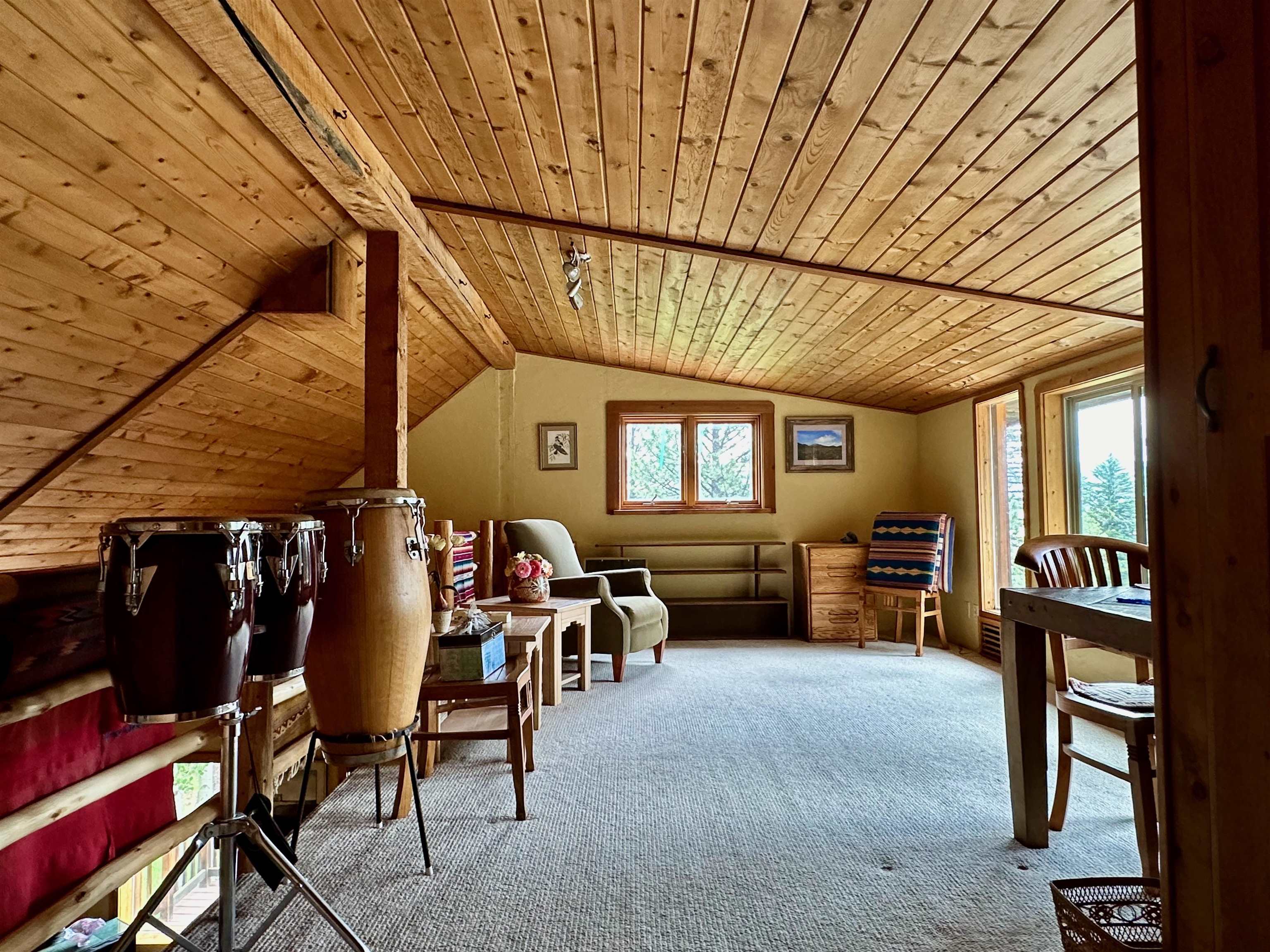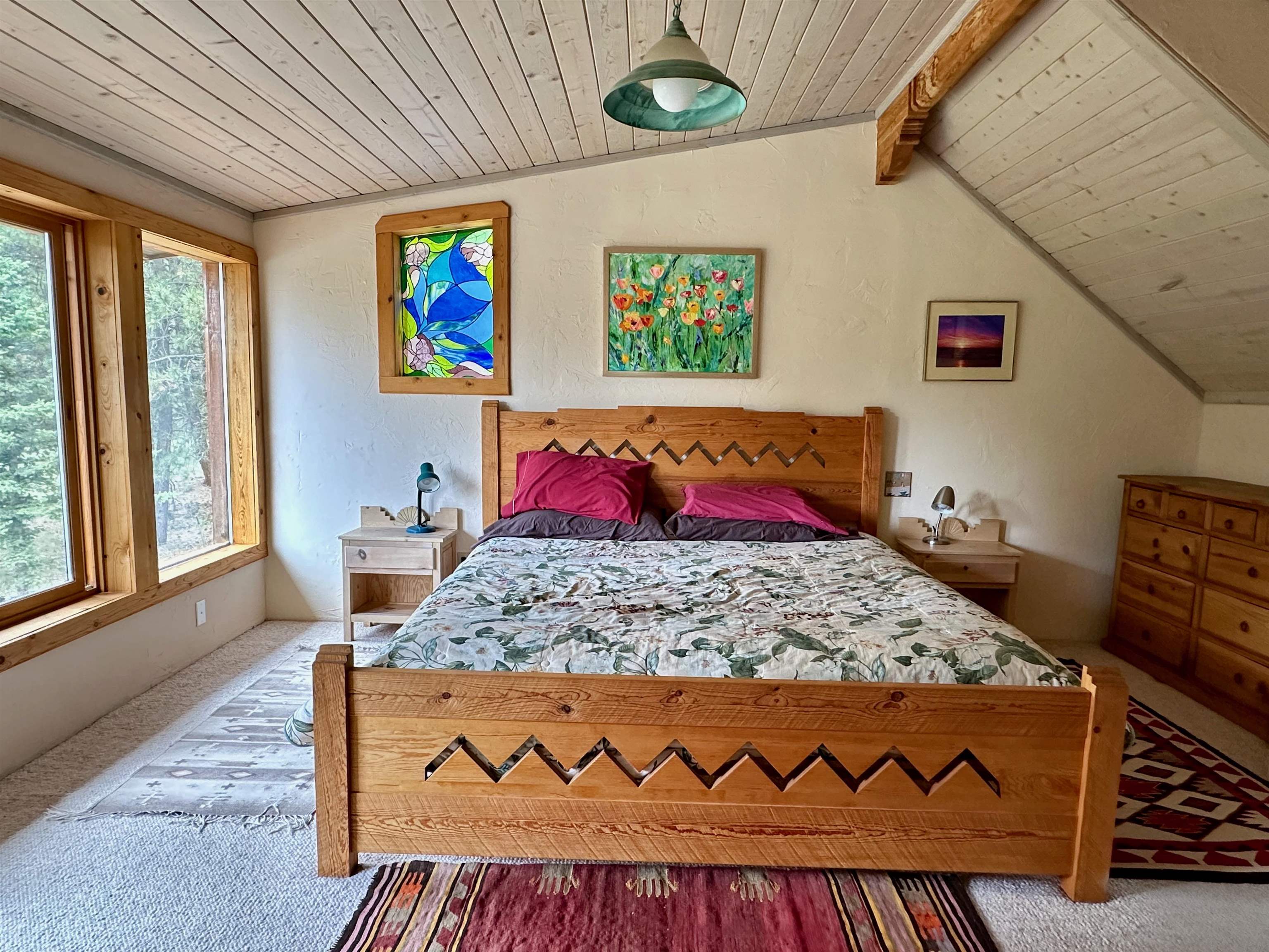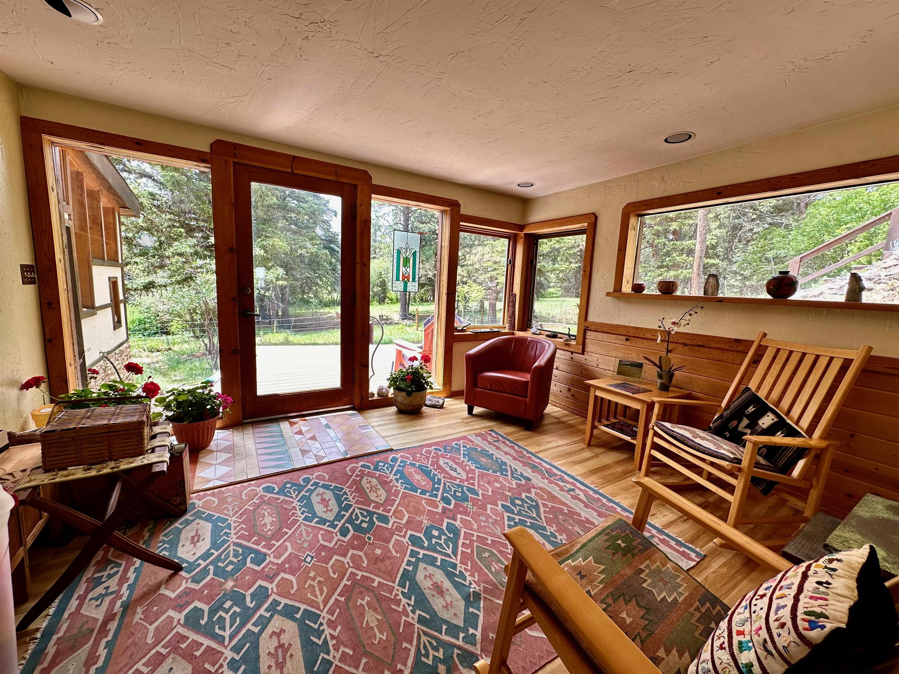 In the Black Lake area of Angel Fire, NM... a rare find. Truly creative, artistic mountain cabin on some of the loveliest land around. 5 acres pf gently sloping all-useable land. Fruit trees, gardens, cool landscaping, a seasonal stream and views of the land where Lonesome Dove was filmed. Wildlife everywhere in this hidden paradise. Beautiful woodwork by local artists/craftsmen. In addition to the two bedrooms is a large loft. There is a second living area off the Guest Bedroom on the first flooor. First floor laundry room. Lots of Trex decks for entertaining. Minutes to the Angel Fire Resort with its ski mountain, nationally recognized mountain bike terrain park, PGA-rated golf-course, $15 mill country club with tennis and pickleball courts, etc. Angel Fire airport with its jet-capable airport for private aircraft is close-by. For those that dream of working remotely in the southern Rocky Mountains, blazing fast and reliable fiber-optic internet is run into the house. Average summer temperature is 76 degrees and mosquitoes, chiggers, no-see-ems, fleas and poisonous snakes choose not to live at our altitude. Angel Fire is on the Enchanted Circle of northern NM, one of the West's best gathering places for outdoor sports and activities. Come visit and see for yourself.