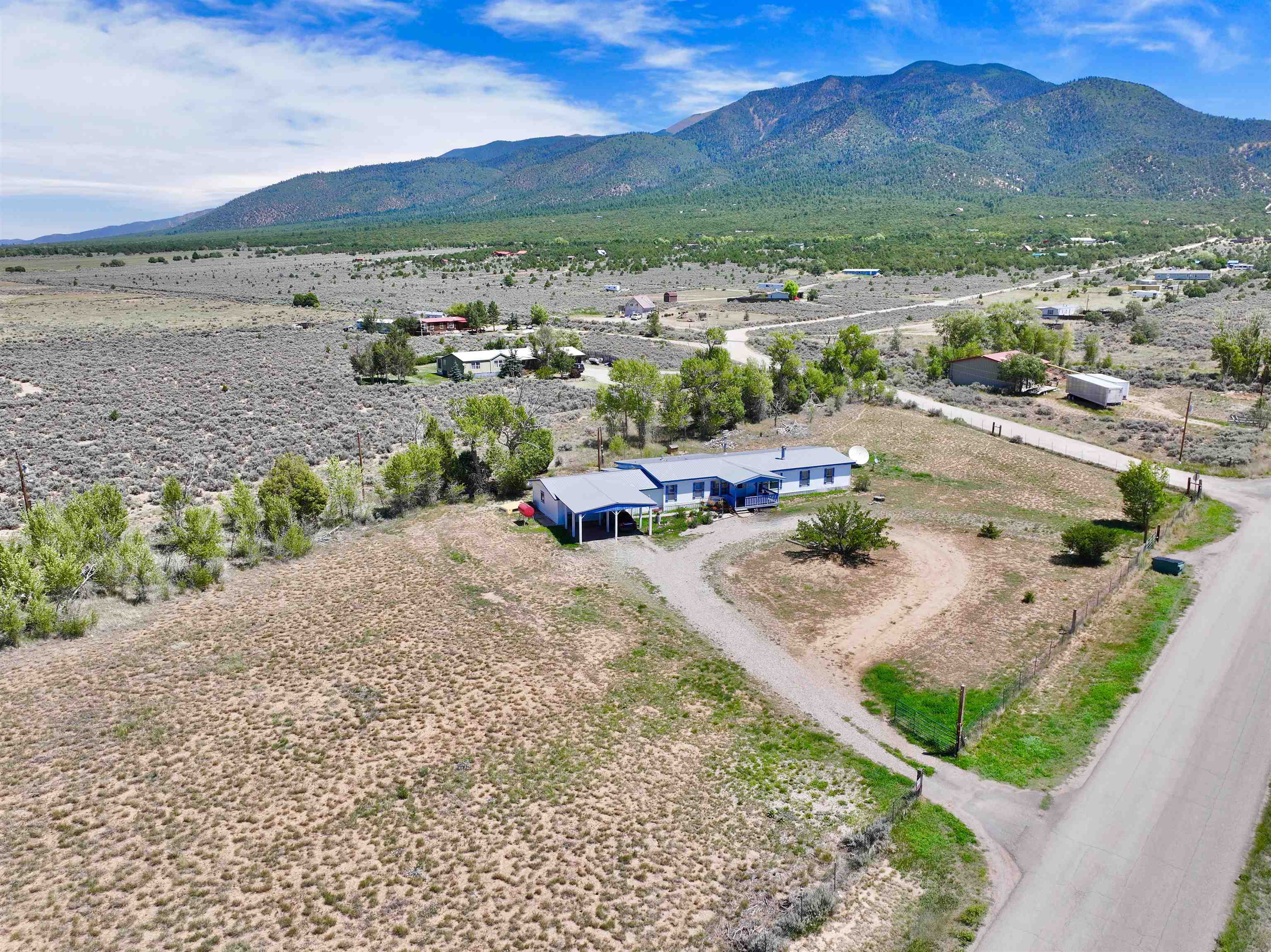A meticulously maintained residence and property situated just below Pinabete Peak, conveniently located near Pinabete Peak Trail 88. This four-bedroom, two-bathroom home boasts well-maintained interior and exterior features. The heated living space spans 2,034 square feet, complemented by a two-car attached garage and a two-car attached carport. The property is situated on 2.00 acres of valley land, which includes an irrigation ditch on the north side and irrigation rights. The interior features carpeted and tiled floors, paneled, beamed, and tiled ceilings, tape and texture walls, a well-equipped kitchen, an open living room with a functional fireplace, spacious bedrooms, and bathrooms. Enjoy quiet evenings or peaceful mornings enjoying the beautiful mountain views and spectacular sunrises and sunsets from the front or back decks which are both covered. The property is conveniently located within a short drive from the village of Questa, approximately 18 minutes from Costilla, 20 minutes from Red River, and 35 minutes to the Taos Plaza. For an in-person tour of this property, schedule your showing today.
