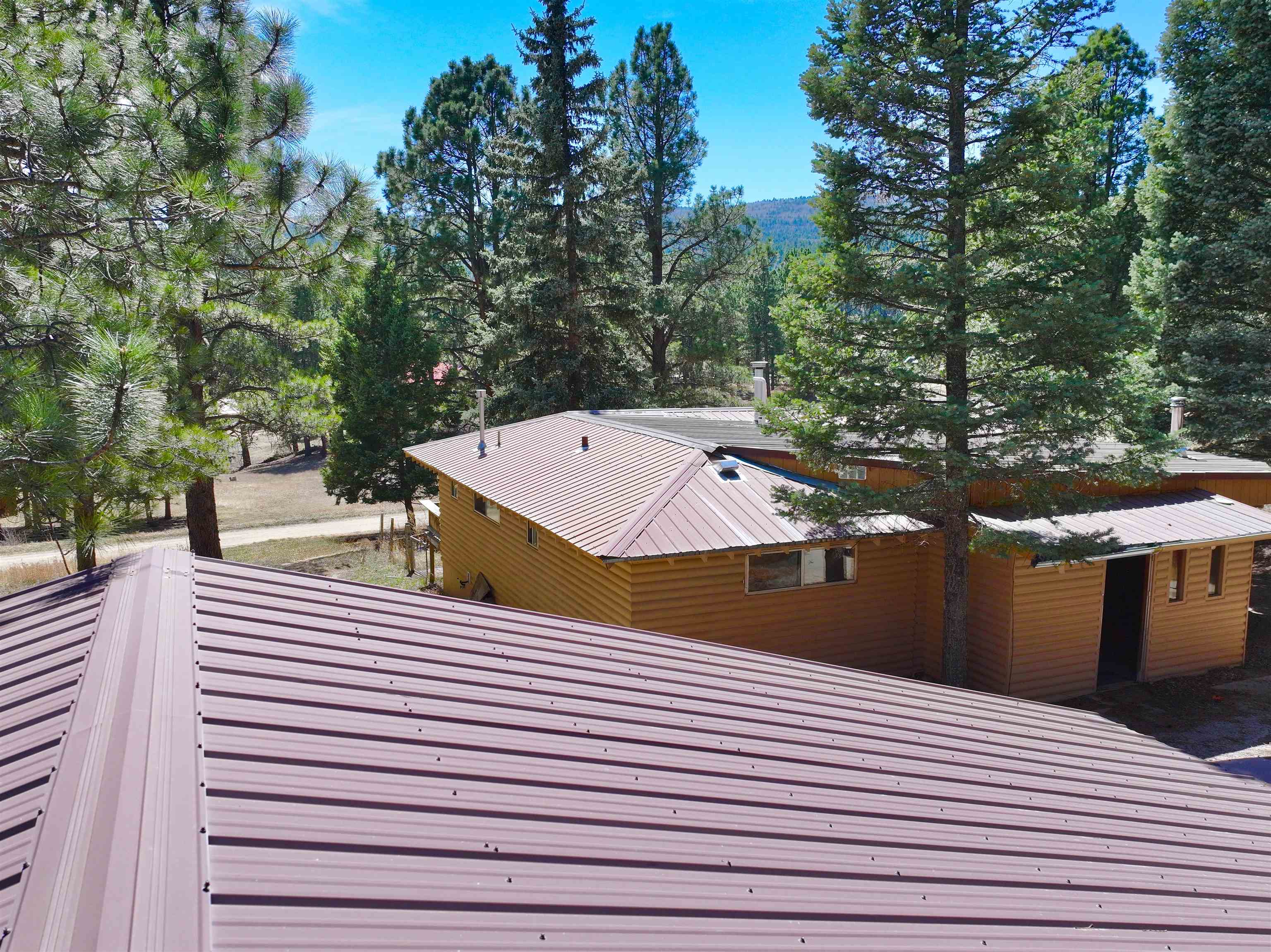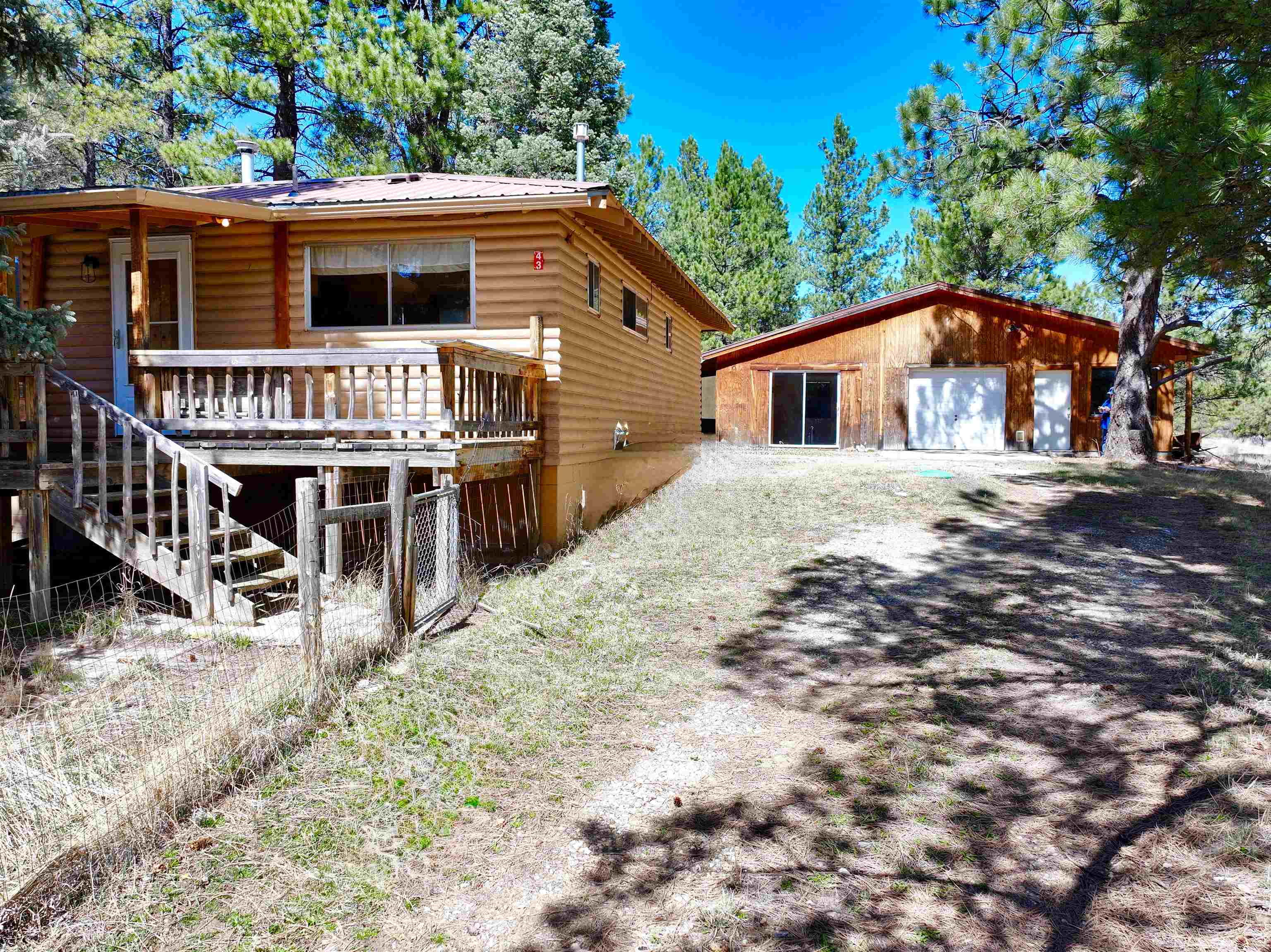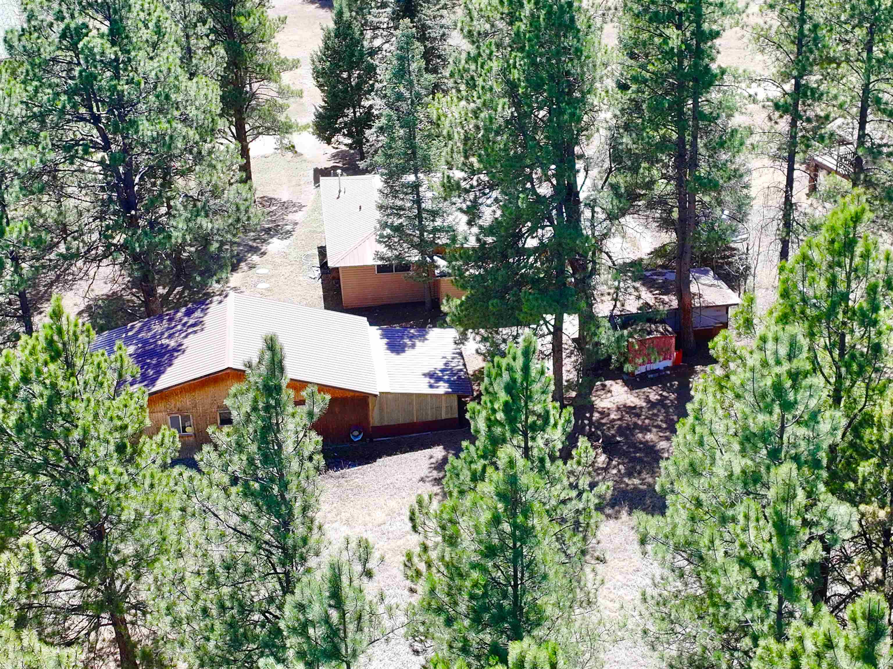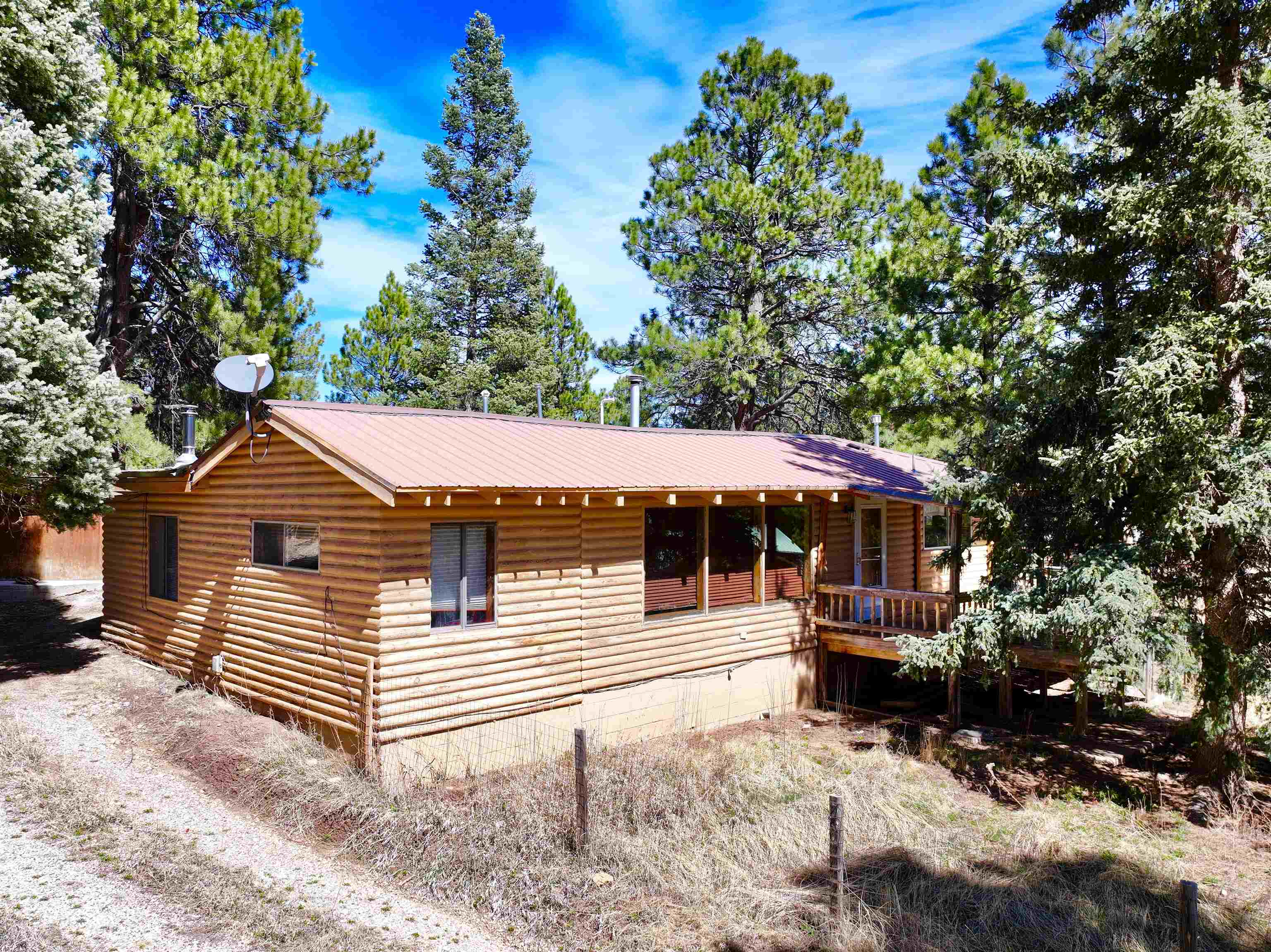 You have discovered your ideal retreat in the Valle Escondido Valley, a tranquil cabin nestled amidst the woods. This exceptional property offers a plethora of amenities, conveniently located near the Valle Escondido Golf Resort. Engage in activities such as fishing, hunting, hiking, sightseeing, mountain biking, ATV riding, and off-roading just to name a few. The home is about 25-30 minutes from Taos, about 20 minutes from Angel Fire and about 45 minutes from Red River. Perched on a gentle hillside, the property features two entry points. Upon entering, you have the option to park outside under the trees, inside a garage or in one of two carports. Upon entering the cabin from the north side, you are greeted by a foyer leading to a spacious living room with beautifully crafted pergo style wood flooring and wood finishes throughout, including a charming wood-burning stove. To your left, you will find a laundry room and a full bathroom equipped with double sinks. Continuing your exploration, you will discover another large living room adjacent to the kitchen, featuring a substantial rock/brick fireplace and another wood burning style gas stove. This area provides ample space for food preparation and entertaining. On the east side of the cabin, two bedrooms and a full bathroom are situated, offering cozy sleeping spaces that evoke the warmth and charm of a cabin setting. The cabin is heated by electric wall heaters, a fireplace, and a wood-burning style gas stove. The front of the cabin boasts a wooden deck that descends to the driveway. The garage also includes an additional heated space that can serve as extra sleeping quarters, a workshop, or storage area. Schedule an appointment today for a personalized tour of this exceptional property to determine if it aligns with your mountain retreat requirements. For more information for the Valle Escondido Homeowners Association, visit https://www.valleescondido.org.