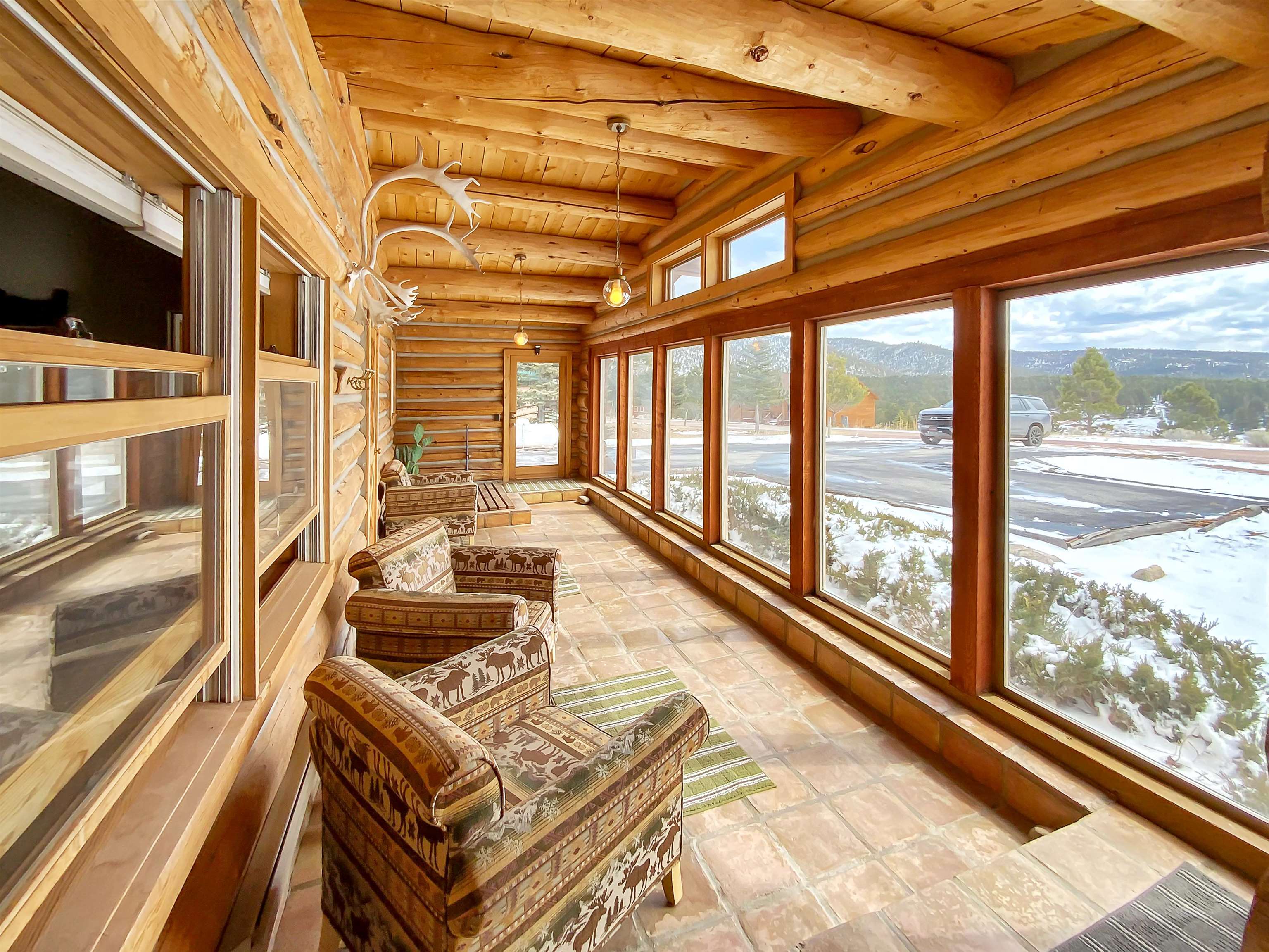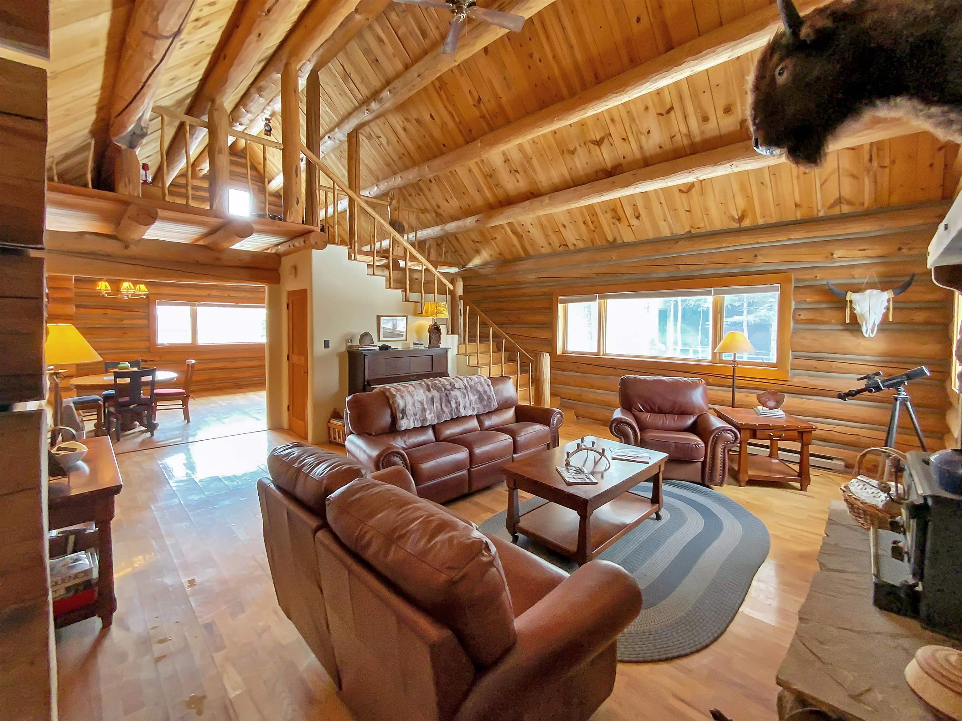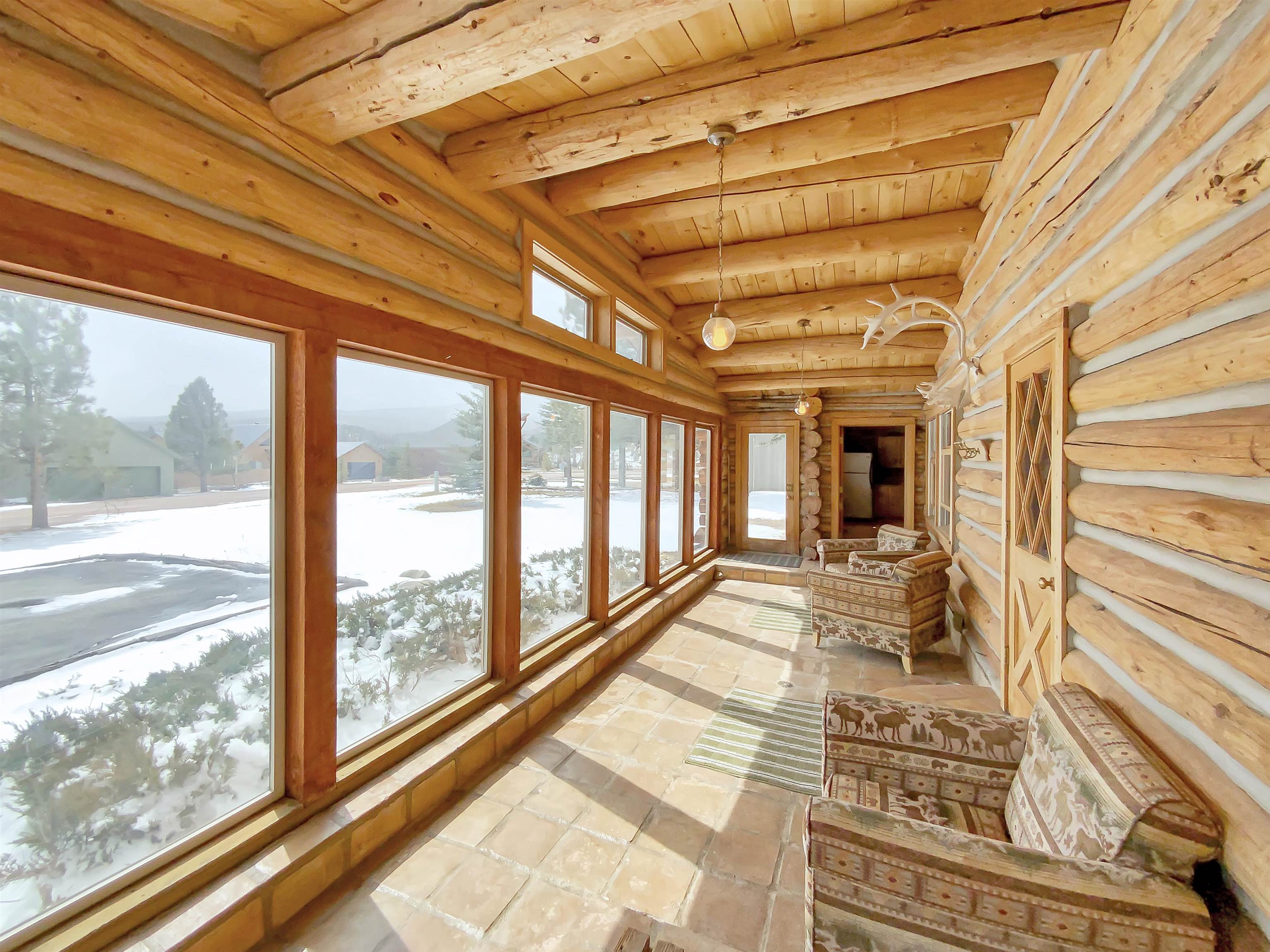 Beautiful and authentic log home right near the golf course! Featuring three bedrooms and two baths, this unique mountain home provides ample space for family and guests. A spacious loft above the living room adds versatility; perfect for a game area or a home office. Enjoy the natural light from the sunroom, an inviting space to savor your morning coffee or unwind after a day of adventure. The bedrooms feature a warm and cozy loft space, accessible by ladder, providing a serene and private area for you to make into your own! This home embodies the best of both worlds - close proximity to the resort's premier golf course and easy access to all other Angel Fire Resort Amenities. This property includes 2 additional lots to protect your surrounding mountain views. Embrace the mountain lifestyle you’ve been dreaming of in this inviting and charming log home!