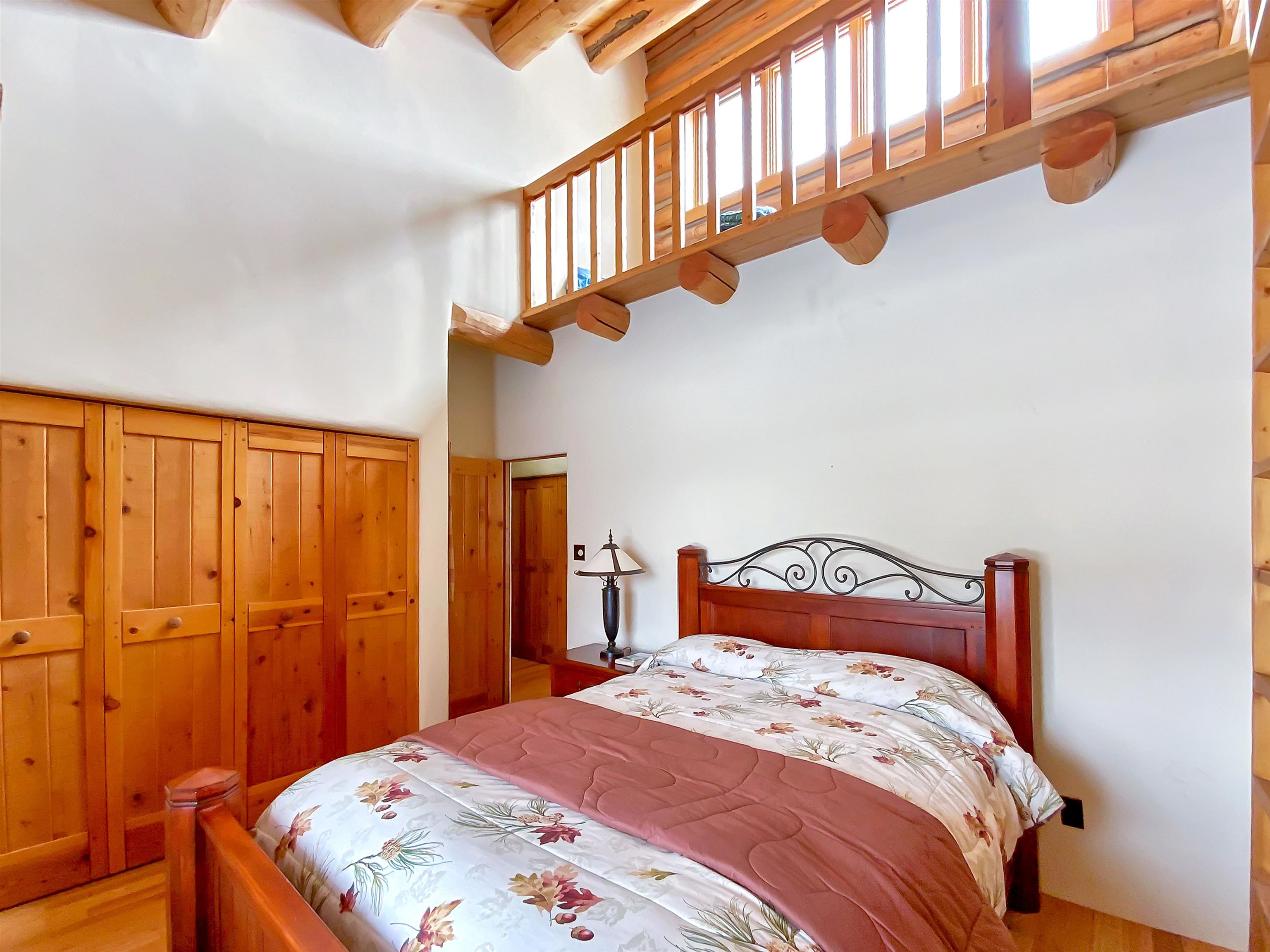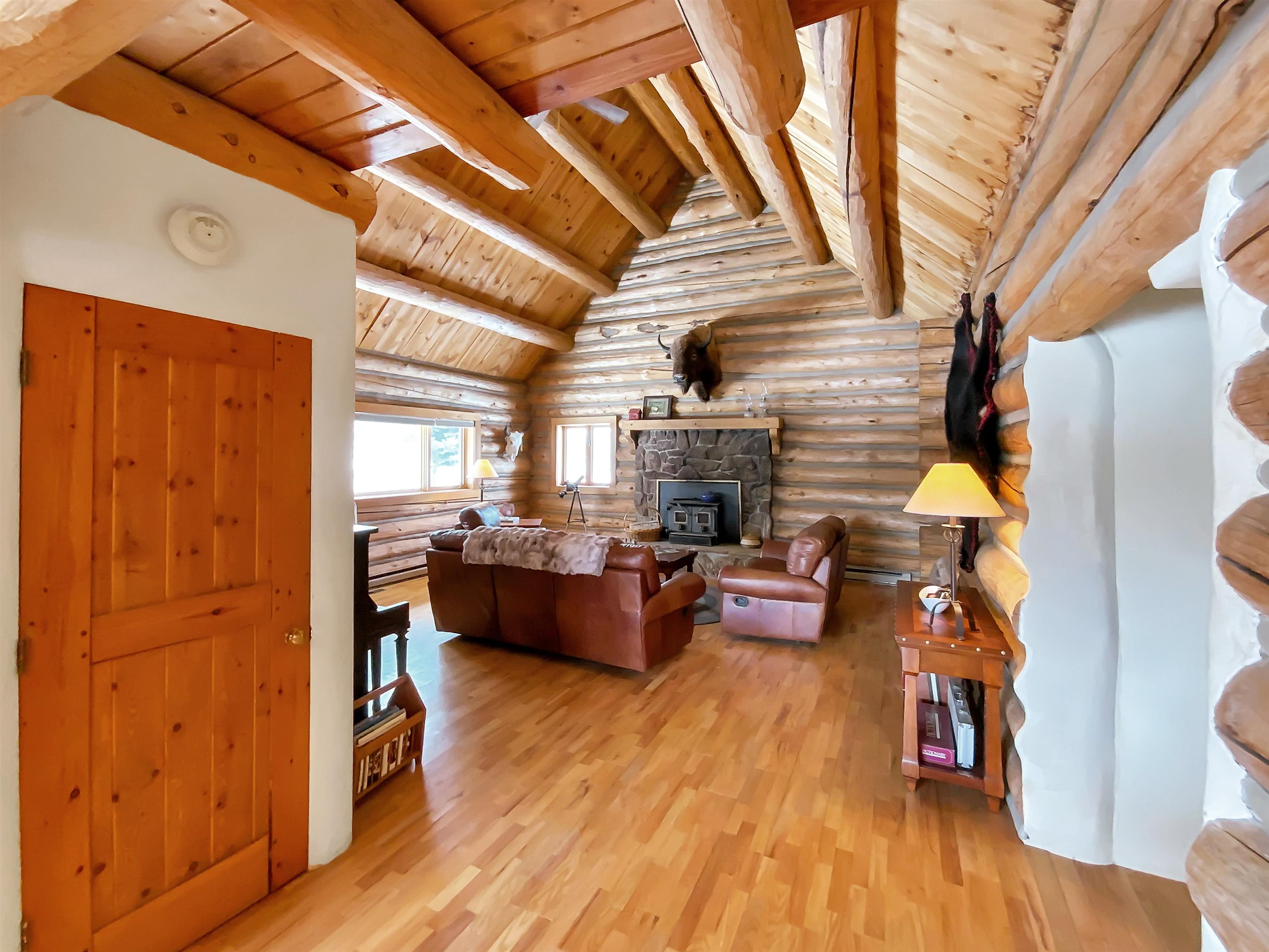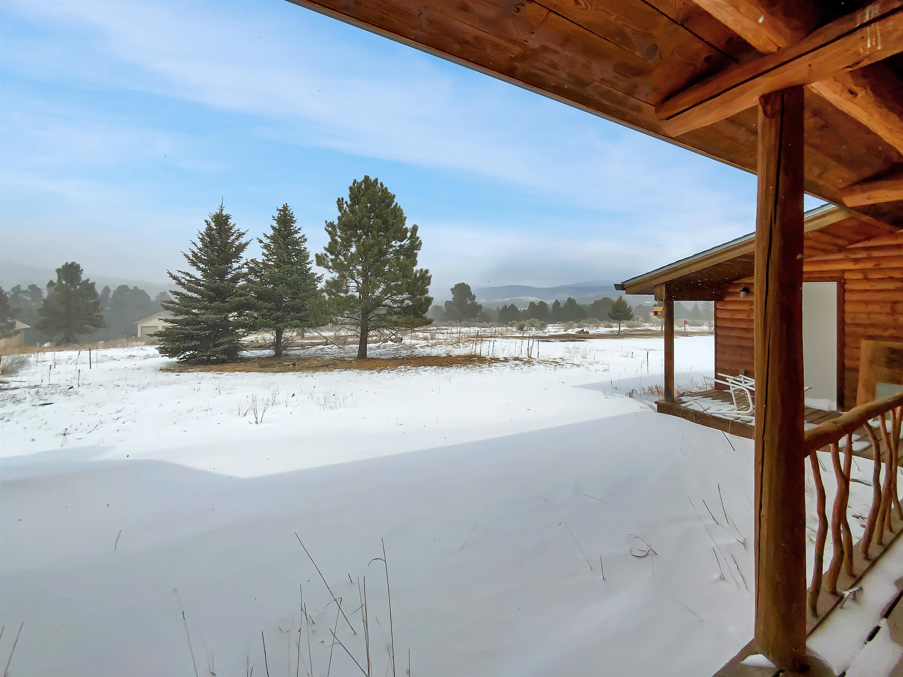 Beautiful and authentic log home right near the golf course! Featuring three bedrooms and two baths, this unique mountain home provides ample space for family and guests. A spacious loft above the living room adds versatility; perfect for a game area or a home office. Enjoy the natural light from the sunroom, an inviting space to savor your morning coffee or unwind after a day of adventure. The bedrooms feature a warm and cozy loft space, accessible by ladder, providing a serene and private area for you to make into your own! This home embodies the best of both worlds - close proximity to the resort's premier golf course and easy access to all other Angel Fire Resort Amenities. This property includes 2 additional lots to protect your surrounding mountain views. Embrace the mountain lifestyle you’ve been dreaming of in this inviting and charming log home!