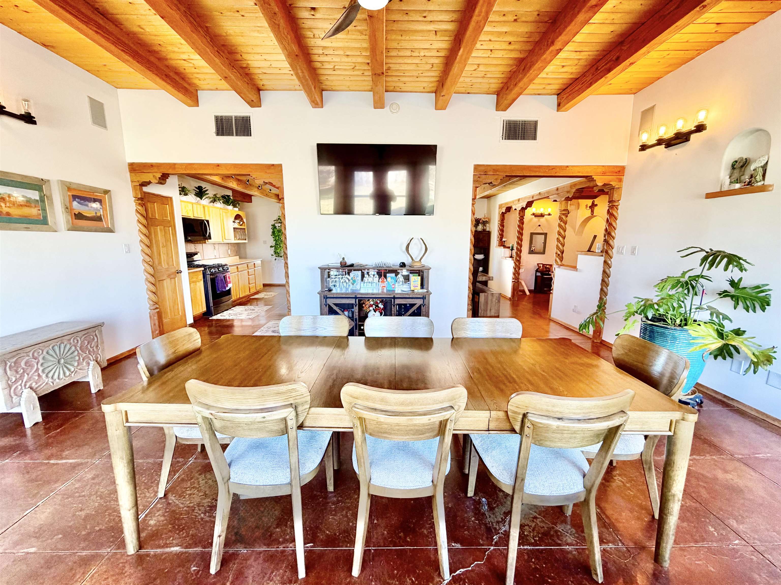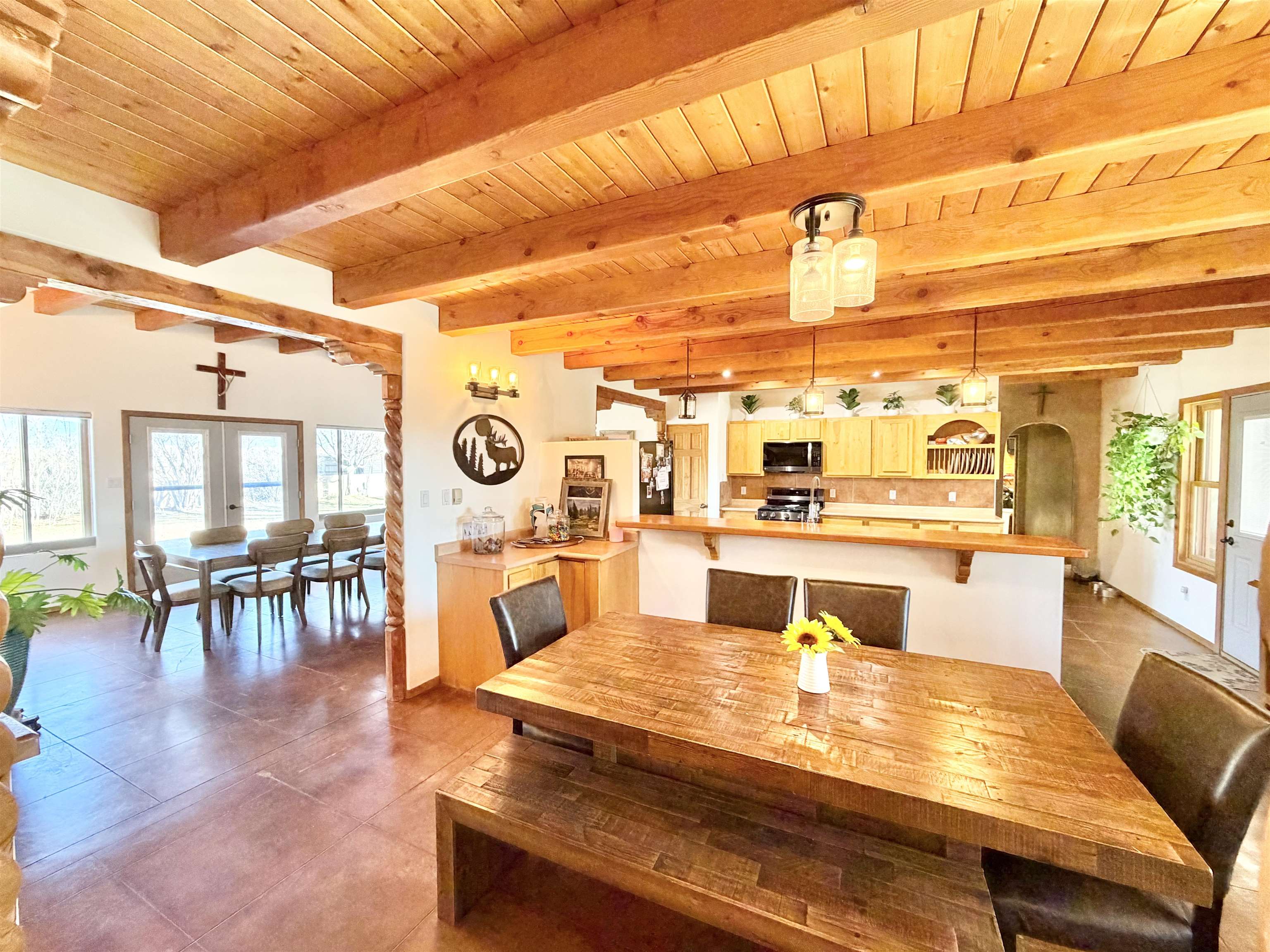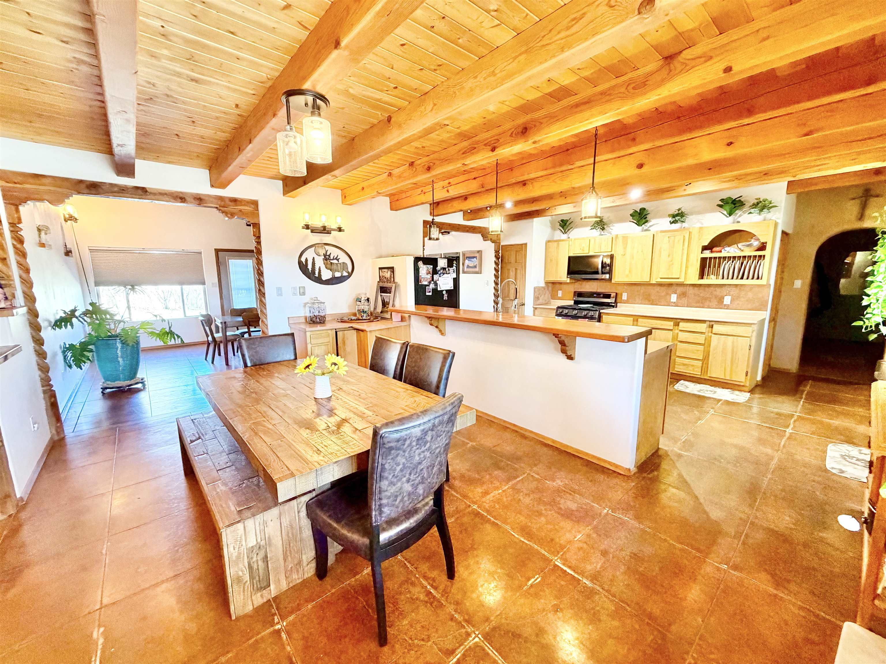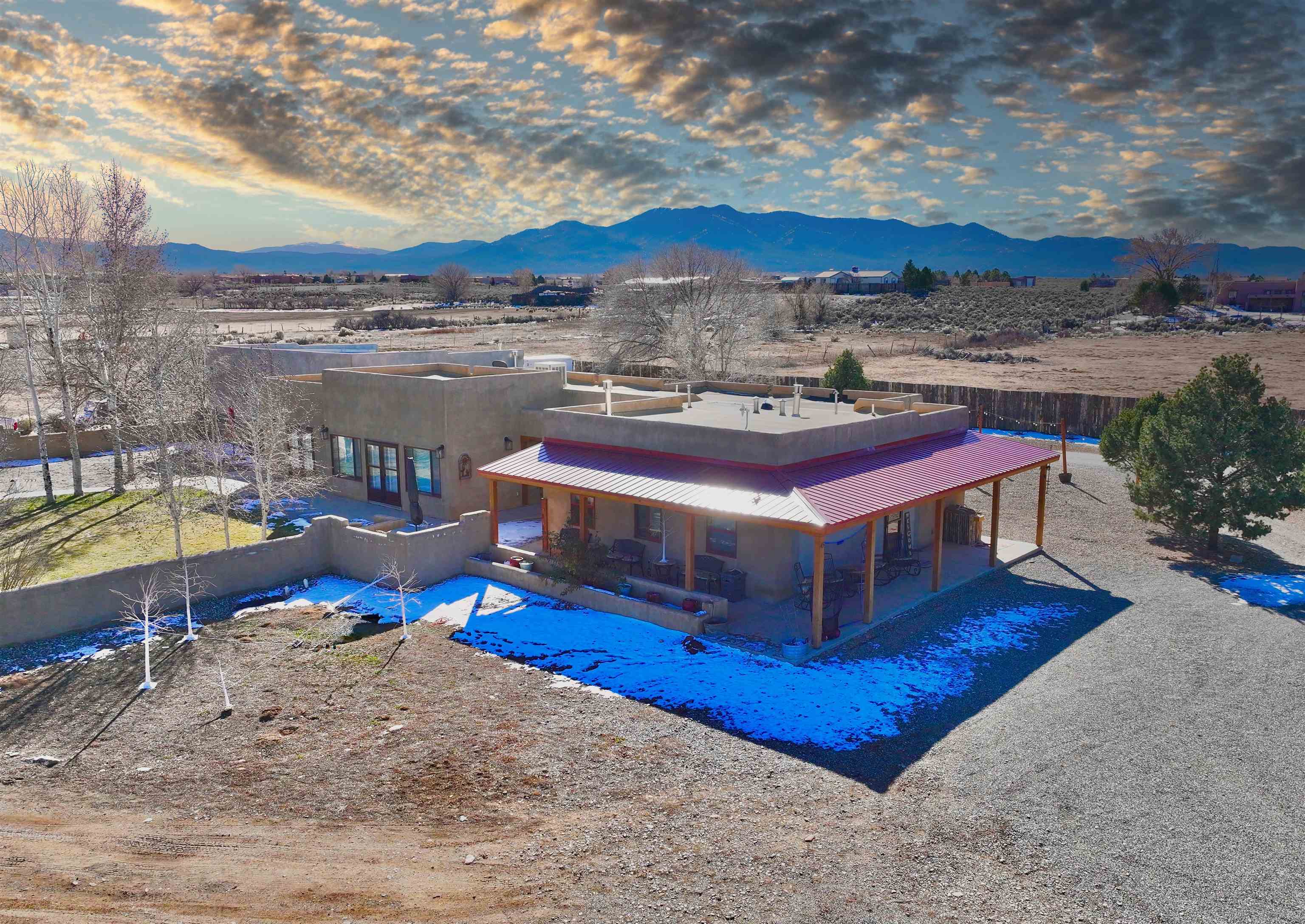 Discover Your Dream Home in the Los Cordovas Valley. Immerse yourself in the epitome of luxury at this exquisite residence nestled in the heart of the Los Cordovas Valley. With an expansive footprint of approximately 2,908 square feet, this four-bedroom, two-bathroom home boasts ample space to accommodate your cherished lifestyle. Encompassing an expansive 1.75 acres of land, the property features an attached three-car garage and a detached two-car garage, providing ample parking for your vehicles. The surrounding landscape is a harmonious blend of beautiful landscaping, enclosed by fencing and stucco walls, creating an unobstructed vista of Taos Mountain and Pueblo Peak. Indulge in moments of tranquility under the covered porches adorning the North, South, and West sides of the home. The property’s entertainment areas are meticulously designed to cater to your discerning tastes, featuring mature trees, lush greenery, a fire pit, and an array of additional amenities. Upon entering the home, you will be enveloped in a luxurious ambiance. Heated radiant cement slab floors, tongue-and-groove wood ceilings, decorated with vigas, plaster walls, and updated appliances contribute to the refined atmosphere. The spacious and well-appointed rooms exude a cozy and inviting atmosphere, perfect for a wide-open yet intimate living experience. Schedule an appointment with us today to experience this magnificent home firsthand, whether through an in-person visit or a virtual tour.