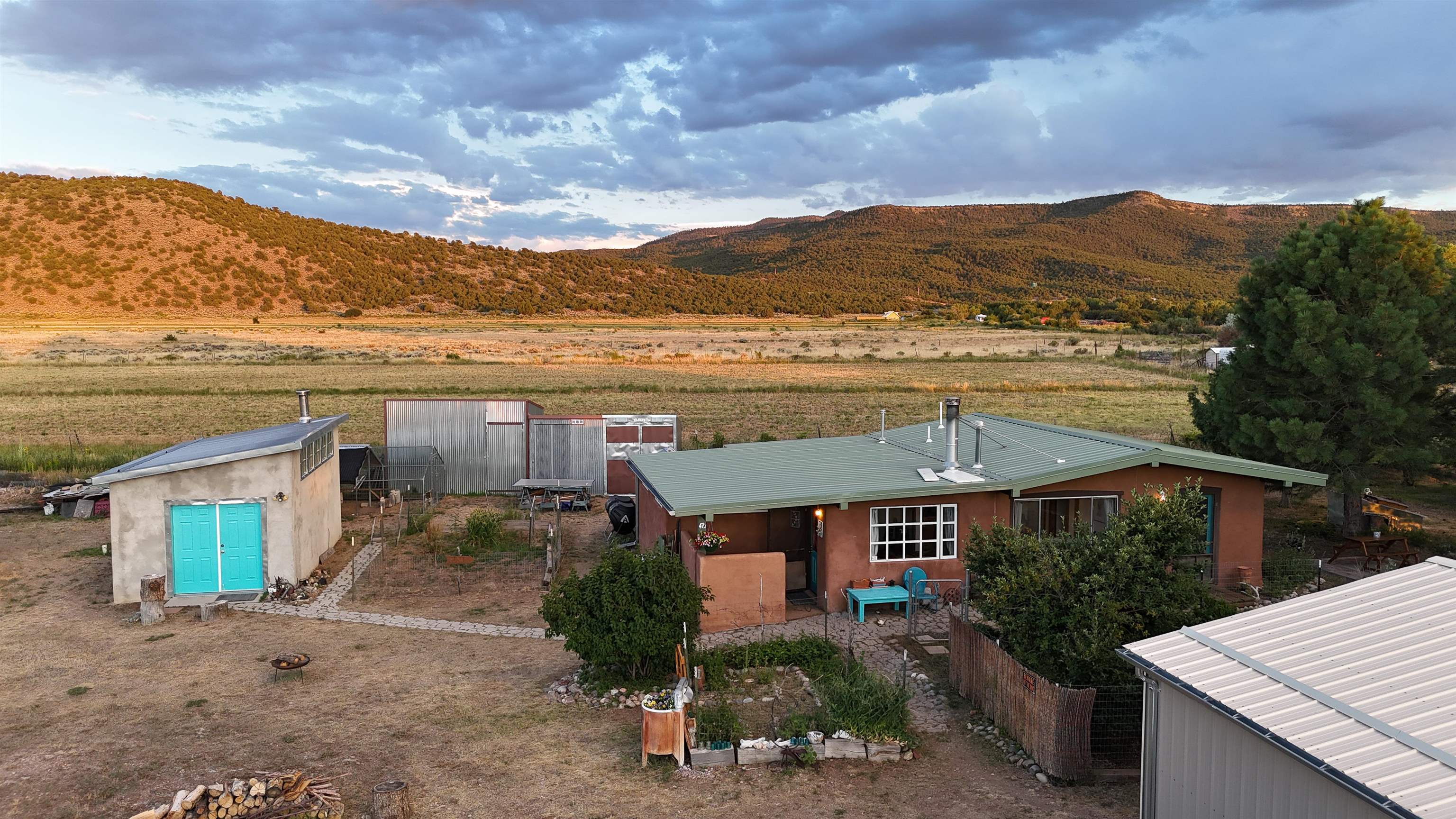This unique home is situated on a quiet dead-end road, Poleo Road, named after the mint that grows along the banks of the acequia madre that flows through the property. This area is a very desirable agricultural zone in the heart of Costilla, with easy and quick access from paved roads. It is adjacent to Rio Costilla Livestock Association land that will remain undeveloped. It has attached water rights, drawing water from the Acequia Madre de Rio Costilla dating back to 1853. Farming and ranching opportunities abound here, as well as elk hunting. In this land, animals are more present than people, so elk, deer and other game are plentiful. This place is a birders' paradise! The home stands in a big open pasture, surrounded by agricultural fields. There is an abundance of mature landscaping including lilacs and garden beds, an aspen grove, plum orchard, as well as apple and pear trees, ponderosas, blue spruce, and more. The views are spectacular! To the north lies 14,000 foot plus Mount Blanca, and to the west sits the ancient volcano Ute Mountain. Sunrises and sunsets are amazing here. The peace, calm, and serenity are hard to beat anywhere in Taos County! This cozy, custom-built, three-bedroom home features exposed posts and beams, over 9 foot tall vaulted ceiling, and custom details like built-in shelving. The home is loaded with natural light, with large north-facing windows revealing the gorgeous scenery right outside. Right next to the home is a 12 by 20 foot workshop with many windows, on a cement slab. It is 2x6" framed and insulated and has electric as well as a wood-burning stove. There is another outbuilding for storage, which includes an insulated space for more climate control. The owners have taken a lot of pride in the maintenance and upkeep of this home and property, and have put a lot of work and time into making this place something special over the course of 3 decades. Take advantage of this! It's move in ready! -Electrical line is hidden, buried in the ground, not aerial. -Custom-made modern steel irrigation headgate. -Deep well, 150 feet deep -New roof, metal propanel put on in 2023 -Newer carport, 24 foot by 35 foot, 2020. Made extra strong, with more than enough room for 4 vehicles. -Workshop, Outbuildings/storage shed(s) -Plenty of space to add additional buildings and features. -Bring your horses! -Fiber Optic Internet -Fenced-in yard This property is also featured in the combined listing of 47B Poleo (MLS# 113794) and combined MLS#113912