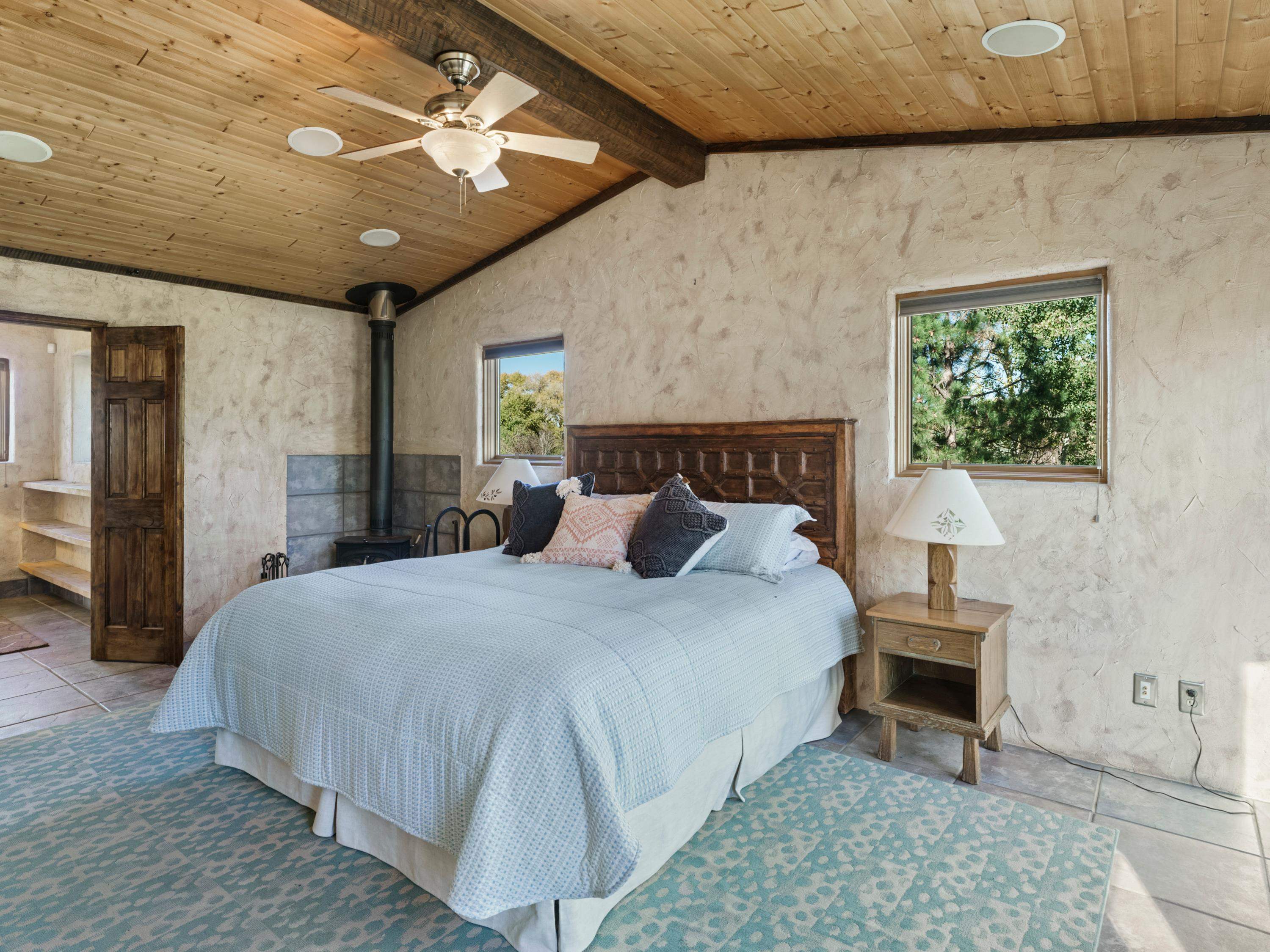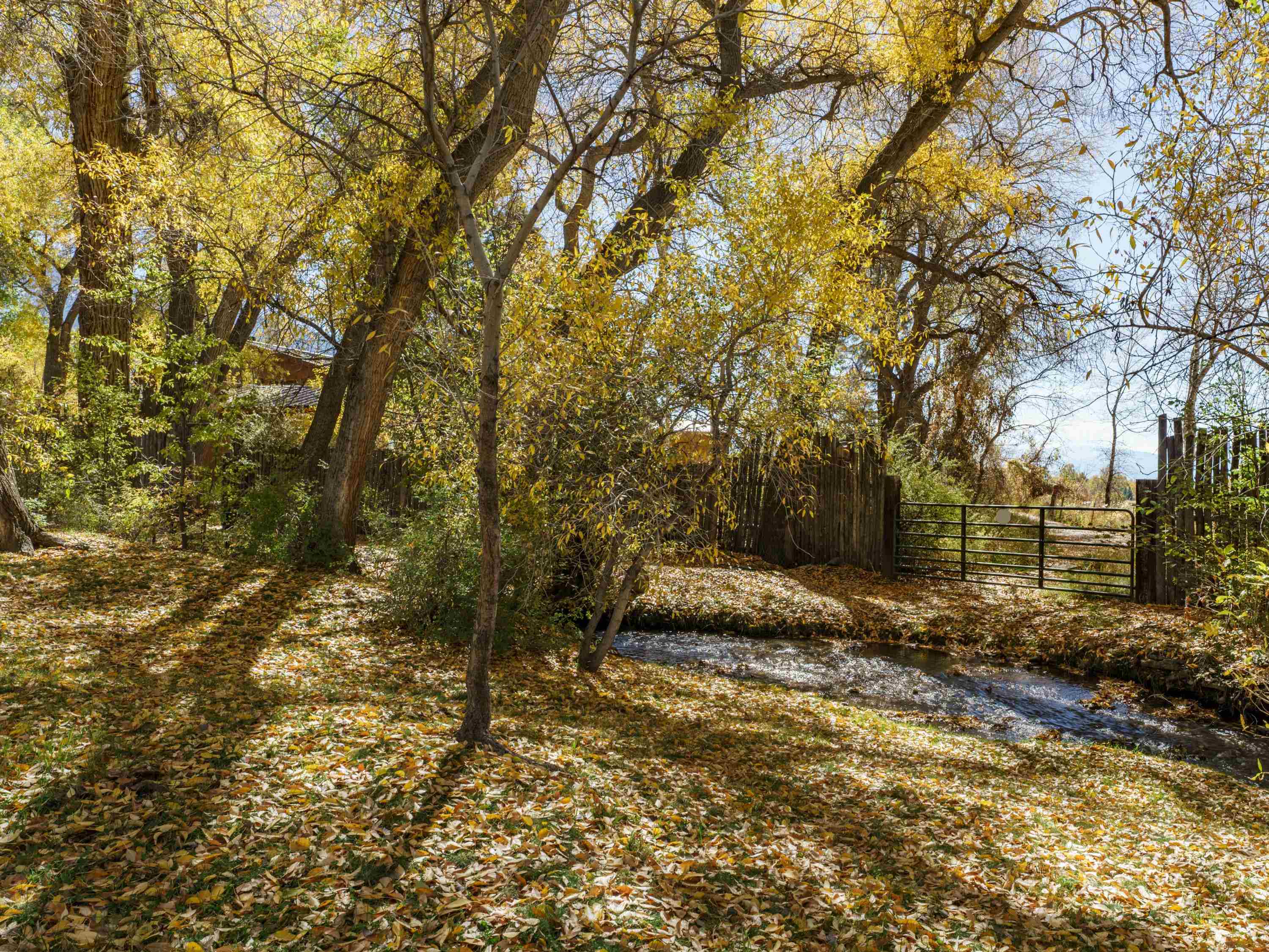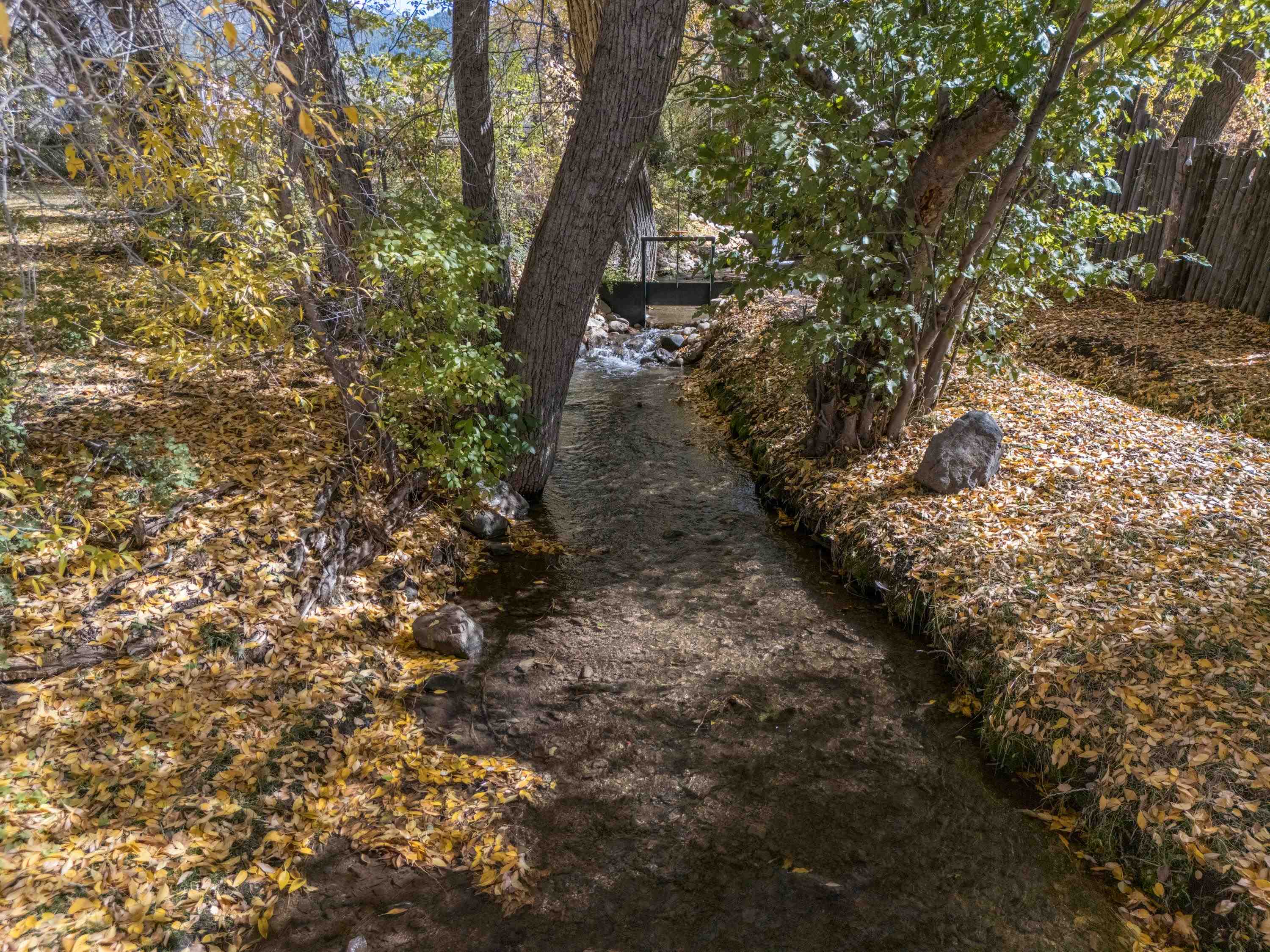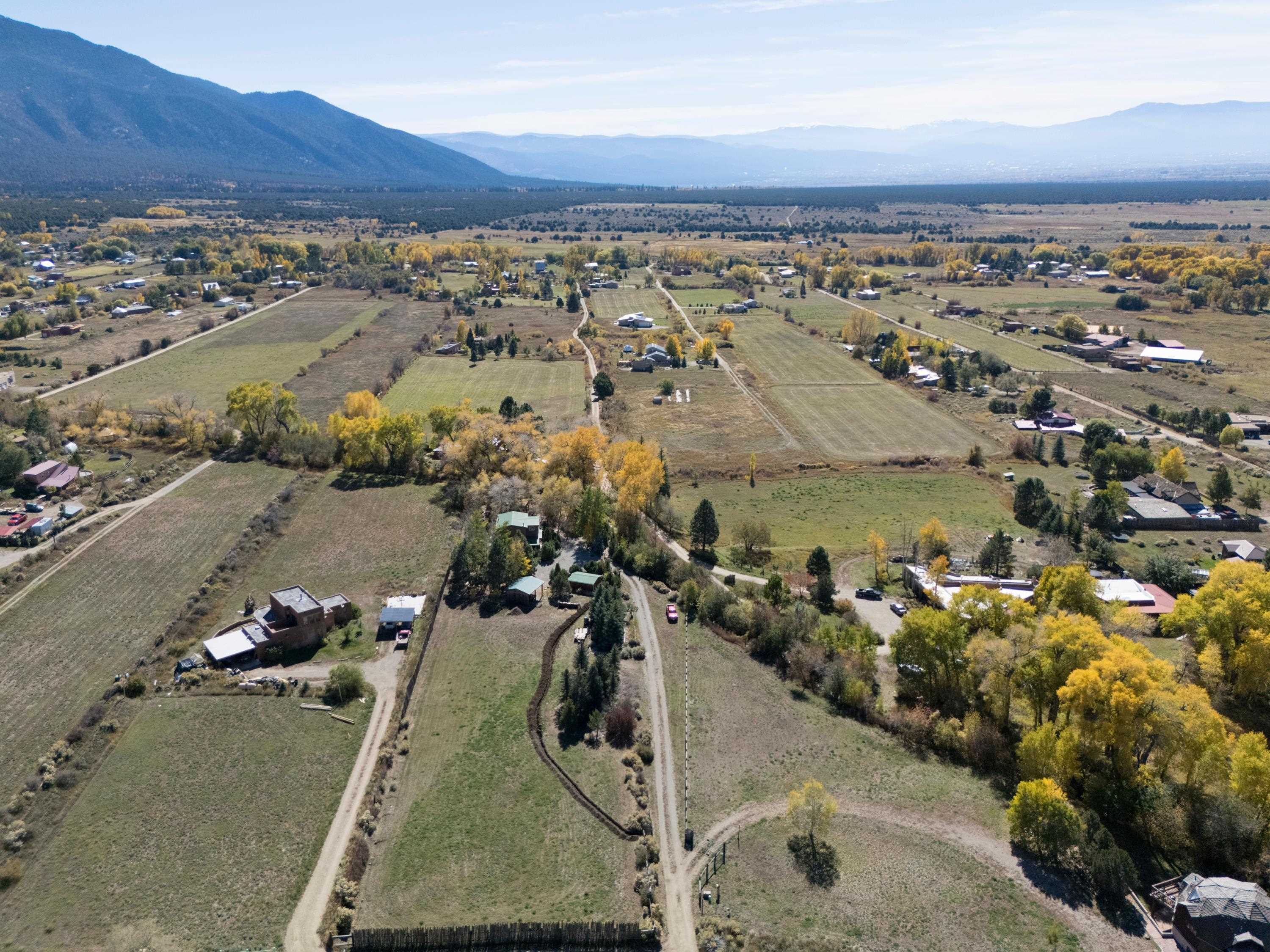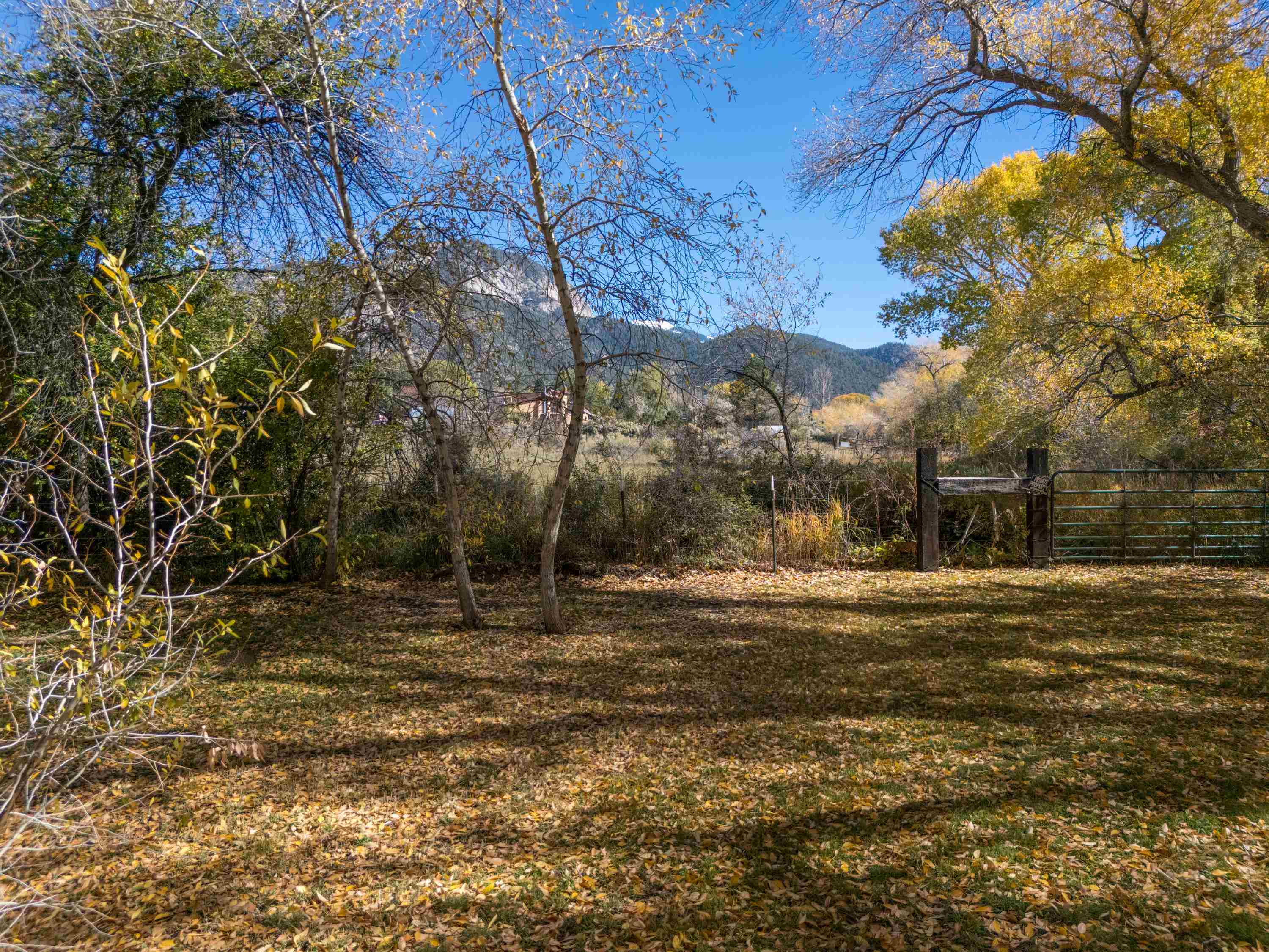 Location and privacy, beautiful land and live water, end of the road paradise with big trees and an irrigated pasture This home has large mountain views with a covered patio and a large upstairs deck The exterior doors are beautifully handcrafted and the large covered porch is an inviting entry into this El Salto abode. This sweet home has a spacious open floorplan and lots of windows in the living and dining areas. A large downstairs primary suite includes a small attached office/media area which could also be used as a sleeping nook. The big downstairs bathroom may also be accessed through the entry hallway. The very unique and beautifully crafted mahogany spiral staircase leads to another entry area upstairs which could be used for an office, library or media area. The two l bedrooms upstairs have amazing views of El Salto Mountain. A very large bathroom is shared by both bedrooms and includes a large tub perfect for after ski adventures. There is a walk in closet between the two rooms. The upstairs deck is a wonderful place to gather and enjoy the big westerly views and the gorgeous acreage which includes many aspen and cottonwood as well as fir, spruce, and pine trees. There are lovely flagstone paths on the property and the acreage has lots of frontage on the Acequia Madre. The property includes a very nice shed and a two car wooden carport. The land has split rail, wire and latilla fencing. This is a must see home in a private and spectacular setting.