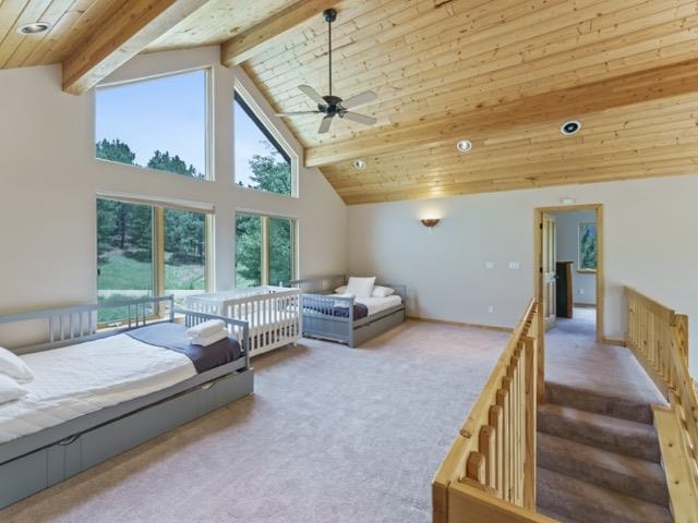 Nestled in the heart of Angel Fire, this stunning 4-Bedroom, 4.5-Bathroom home offers an unbeatable location and opportunities to host with almost 3,600 squarefeet. Entering the main floor, you're greeted by the grand living room with timeless stonework, an expansive wall of windows, and pellet stove to keep you cozy when the snow falls. With a spacious kitchen and two dining areas, you'll have ample room for cooking and hosting large gatherings, while the wraparound deck offers a perfect spot for outdoor dining while soaking in the tranquil views. A two-car garage provides convenient access to the home - with the added bonus of a half-bath located in the spacious laundry room. The main level also includes a bedroom with walk-in closet and en-suite bathroom, complete with a separate soaking tub and shower, offering views of the lush golf course and access to the deck. On the upper level, you’ll find two bedrooms, each designed for comfort and privacy. One of the bedrooms boasts a walk-in closet and its own en-suite bathroom, while the second shares a full bath with the loft. Both offer ample space and the trundle beds provide flexible sleeping arrangements. The lower level adds even more versatility with a set of bunk beds, two trundle beds, and a full bathroom. The space is perfect for guests and also features additional storage space in the closet and golf cart garage. Step out onto the first-floor deck or take the golf cart path to the #7 fairway. With room to comfortably park six vehicles, a prime location overlooking the PGA-Rated golf course, and space to sleep 23 including the sizeable loft and bonus room, this exceptional home offers the ideal mix of privacy and convenience, making it a must-see.