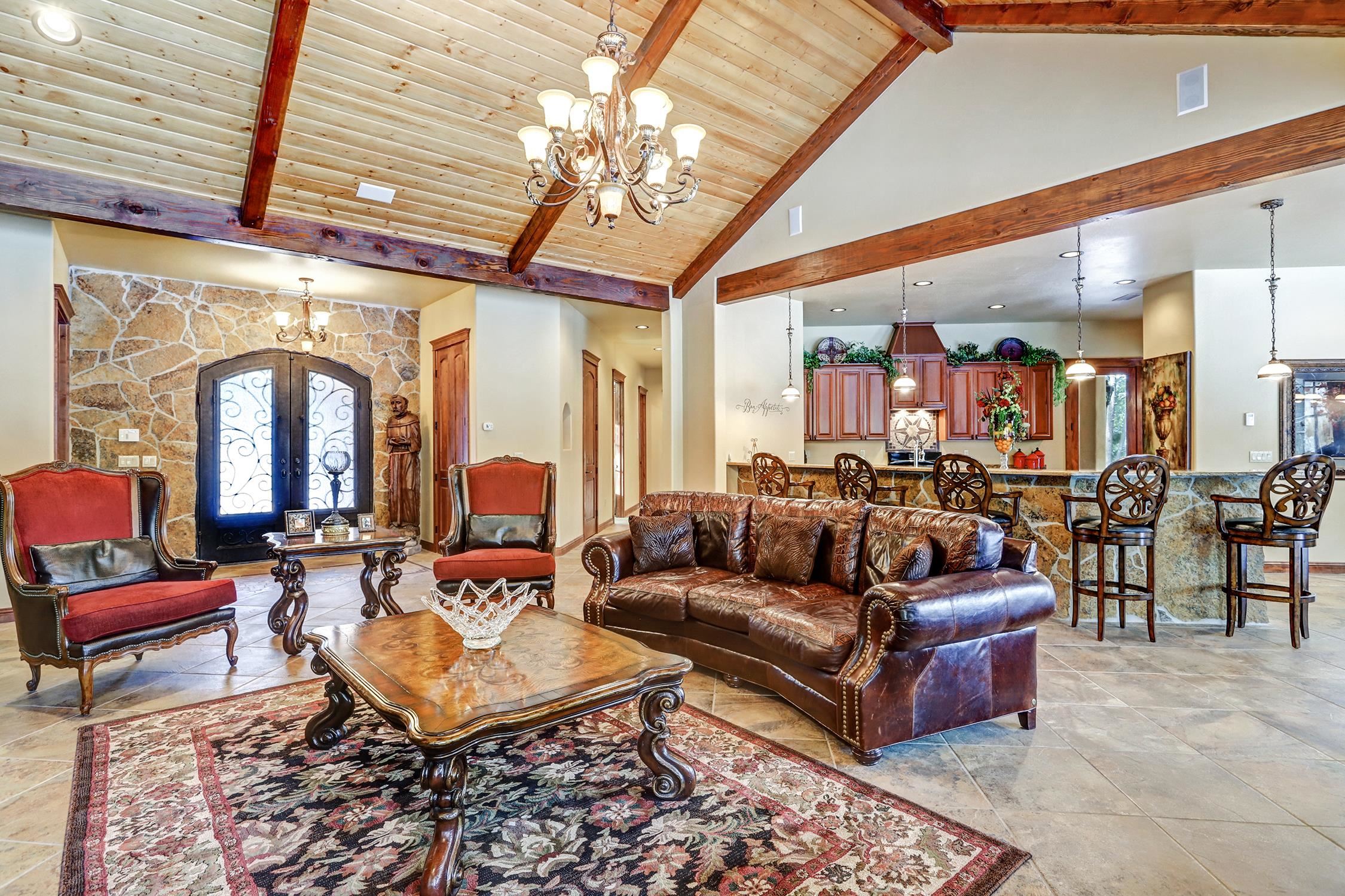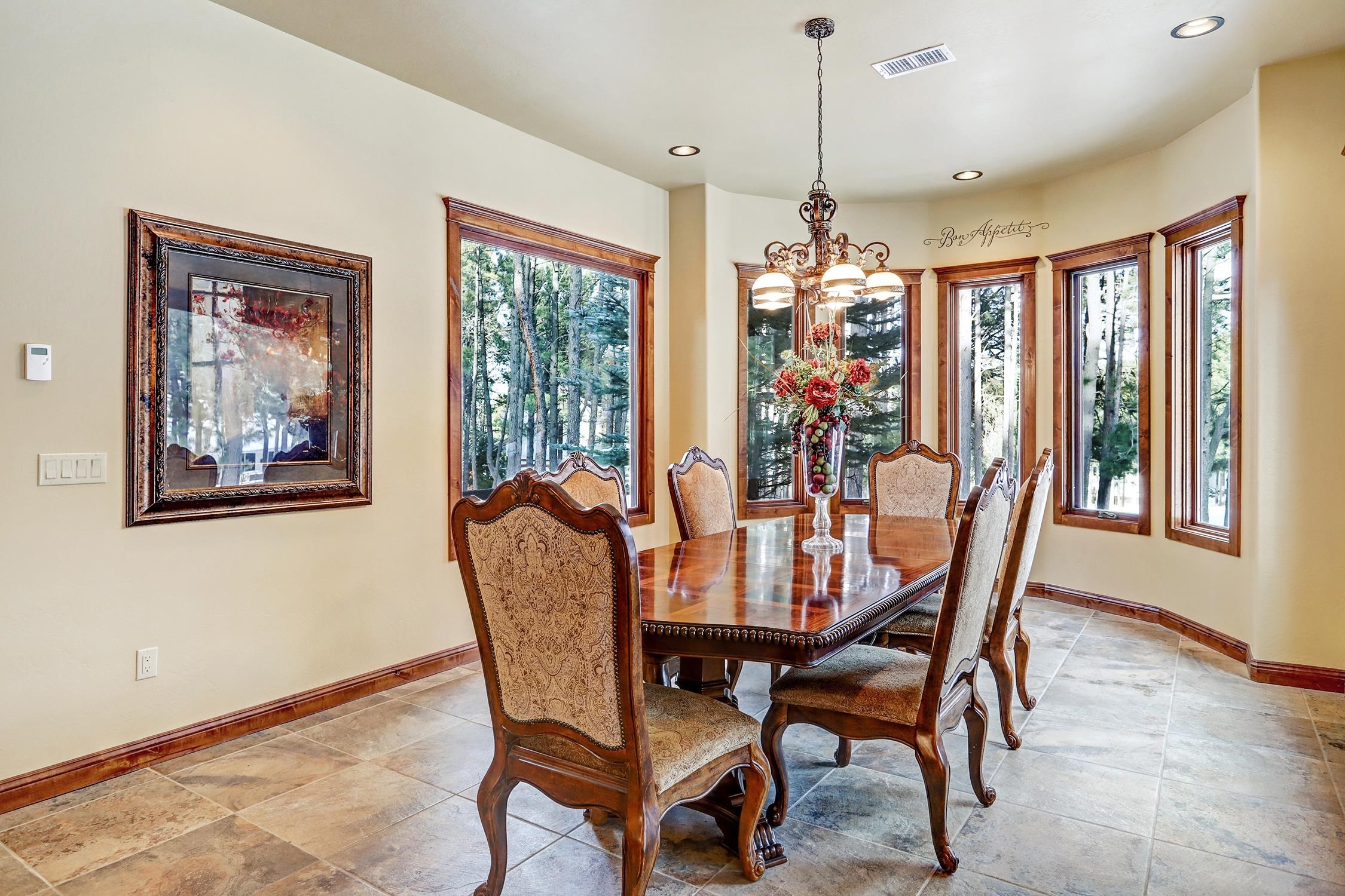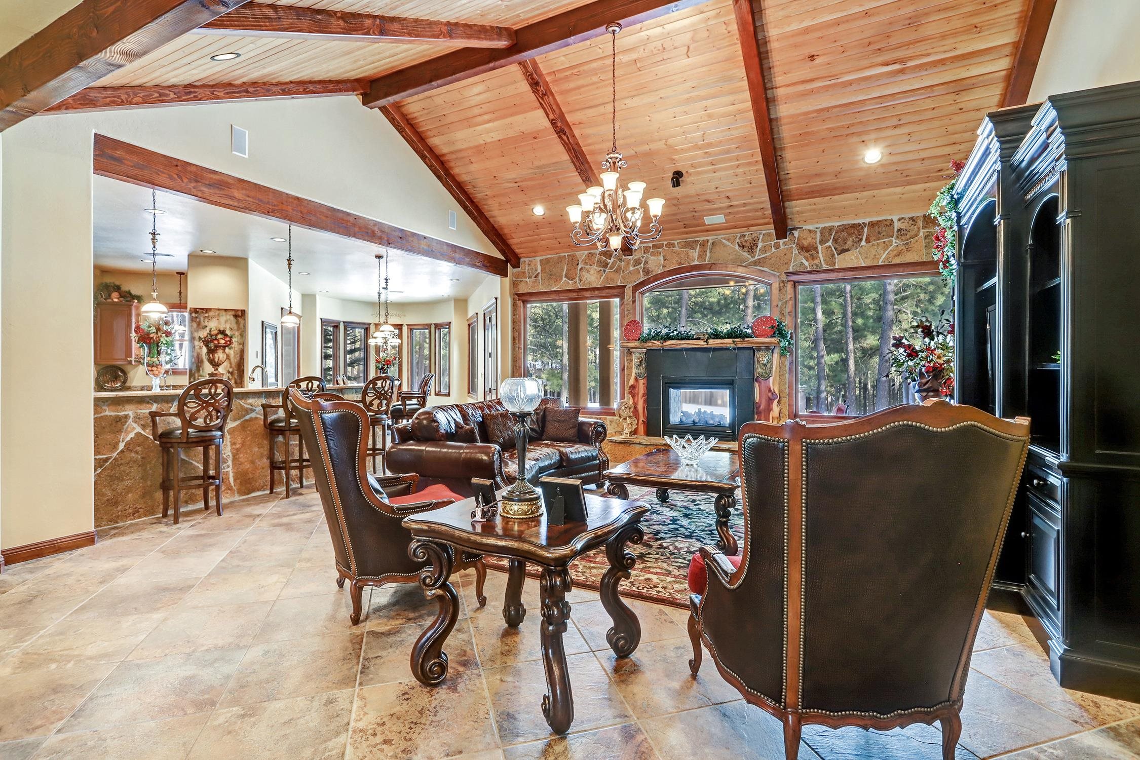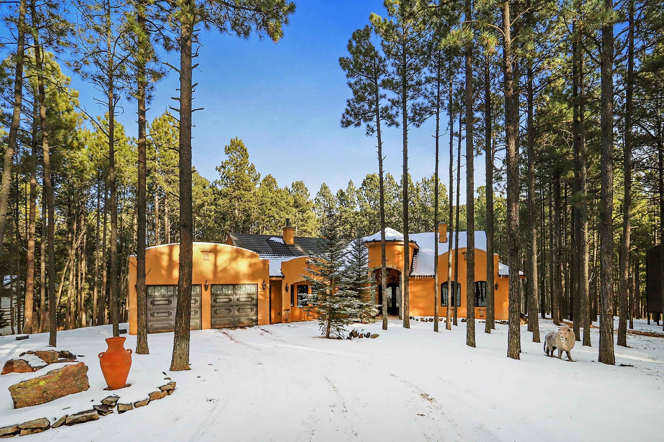 Perfectly positioned on the 10th green of the Angel Fire Resort Golf Course, this elegant single-level home offers refined mountain living with thoughtful design and exceptional craftsmanship. Built by Lindsey Custom Builders in 2010, the quality construction and exquisite attention to detail are evident throughout. The home features 3 bedrooms, 2.5 bathrooms, plus a private office that can easily function as an additional sleeping space. A desirable split floor plan provides privacy, with the primary suite located on one side of the home and two guest bedrooms on the other, connected by a Jack-and-Jill bathroom. The primary suite is a true retreat, complete with a propane fireplace that can be enjoyed from both the bed and a cozy lounging area—perfect for relaxing after a day on the course or the slopes. The living room’s indoor/outdoor fireplace seamlessly connects the interior living space to the patio, creating an inviting setting for year-round enjoyment. At the heart of the home, the open-concept living, kitchen, and dining area is ideal for entertaining. Expansive windows flood the space with natural light while framing beautiful golf course views and surrounding scenery. Additional highlights include an oversized two-car garage, a large mudroom, and a functional laundry room with built-in cabinetry. Ample closet space throughout the home provides excellent storage, enhancing both convenience and livability. With its one-level living, timeless design, and prime golf course location, this home offers an exceptional opportunity to enjoy the Angel Fire lifestyle in comfort and style.