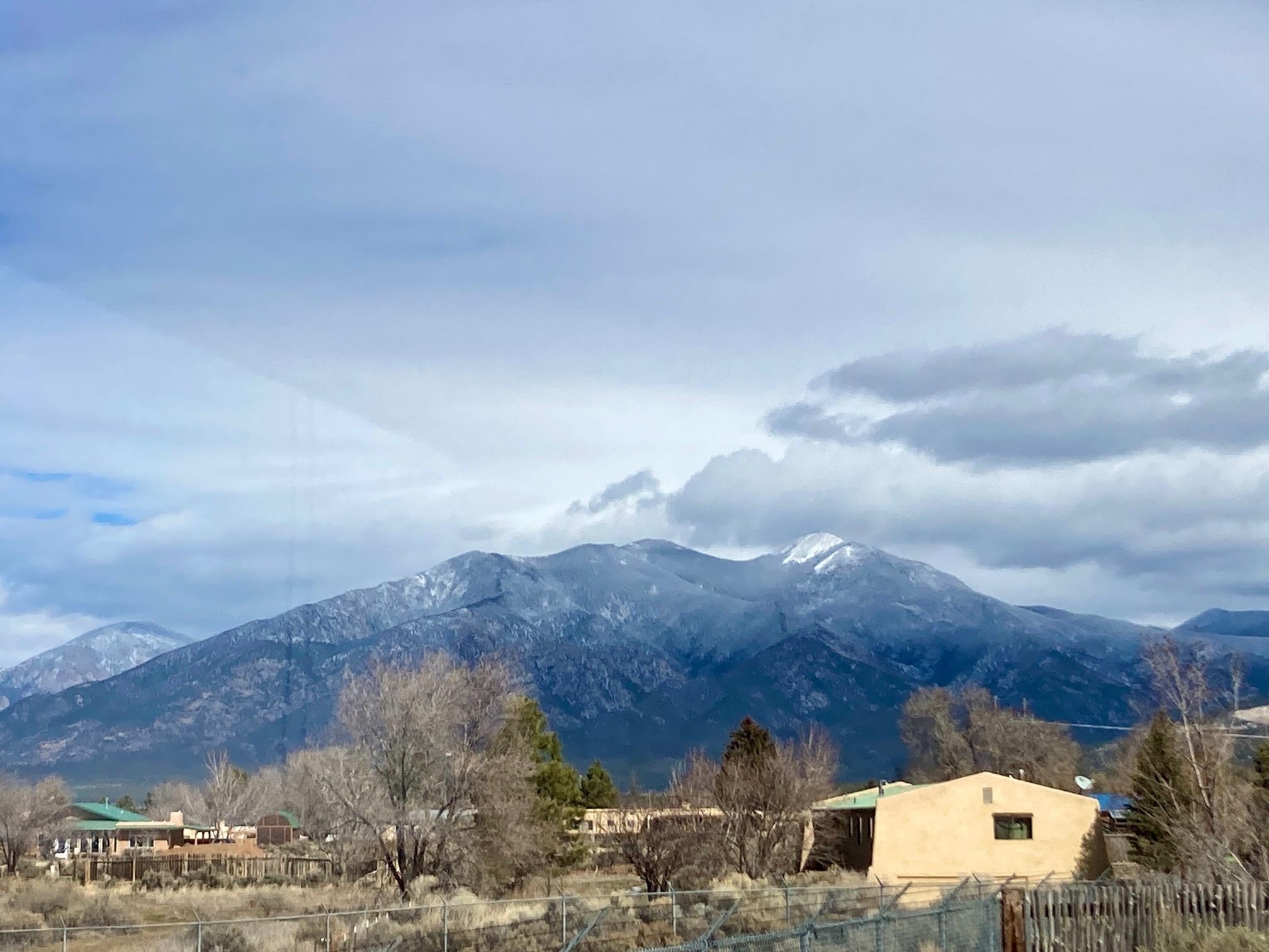 Beautiful 3 bedroom & 3 bathroom home, appx 1,490 sf, offering privacy & serenity at the end of a quiet cul-de-sac in convenient South Taos. Open, airy design features rough-sawn, corbelled pine beams, T&G ceilings, hardwood & Saltillo tile floors, and tiled baths. New roof installed 2025. Quiet hydronic boiler heating. Three sets of double doors connect to a spacious wrap-around covered porch with views. Light-filled kitchen and Living Room have views of the northern mountains & western mesa. The warm living room opens to the porch. Two bedrooms with private double door deck access, the third has southern views.. Close to shopping, dining, entertainment & medical care. Your perfect Taos escape—schedule a tour today!