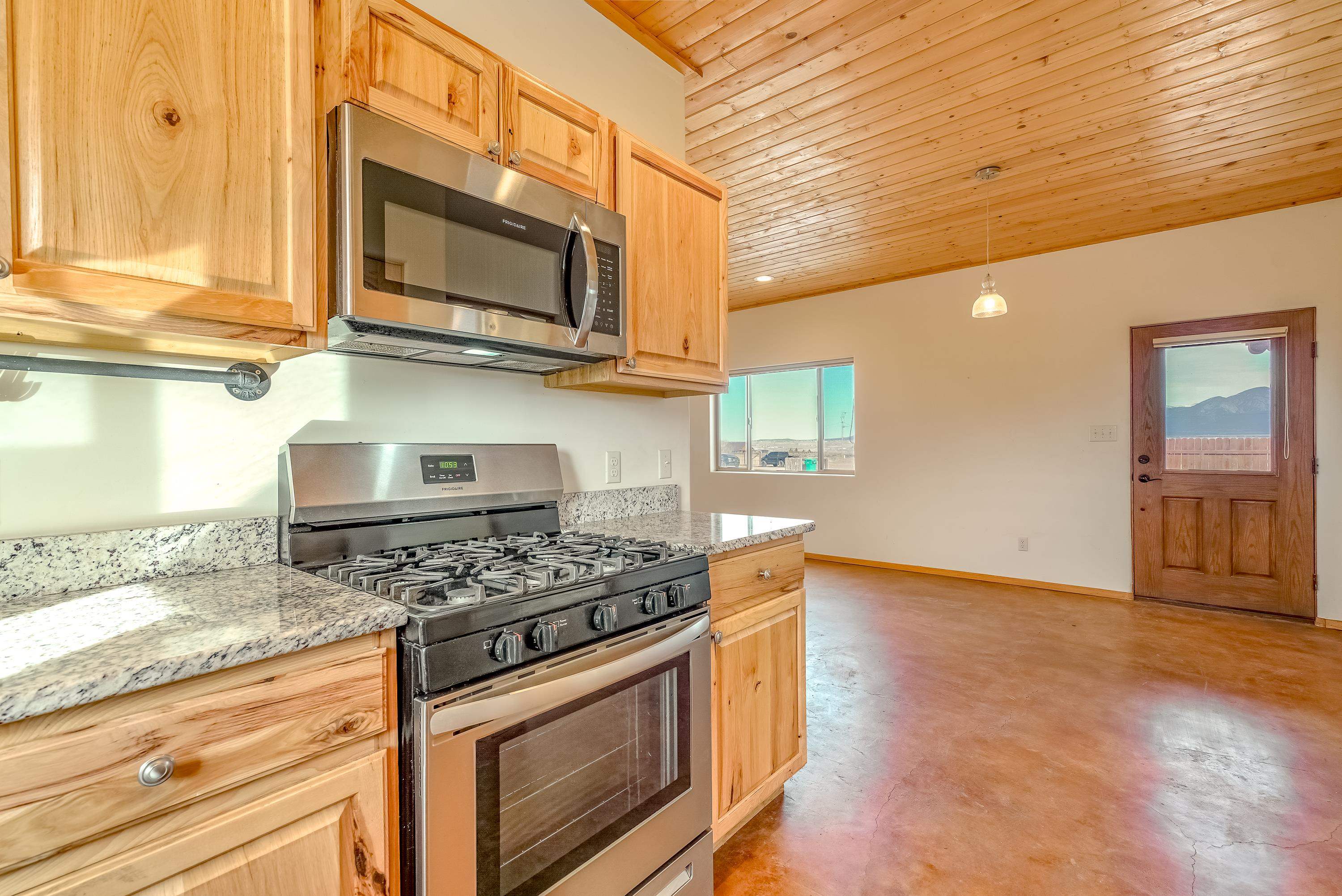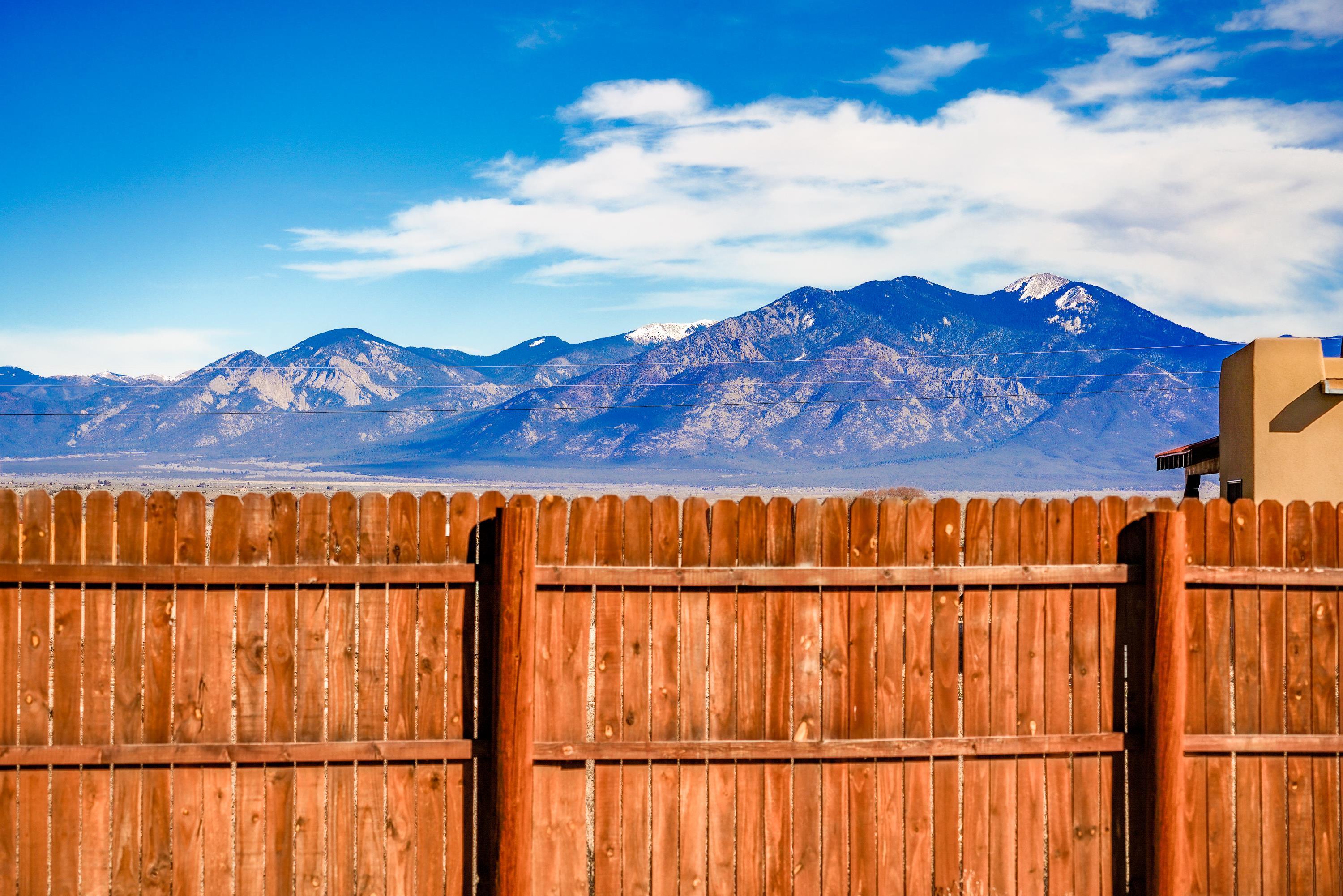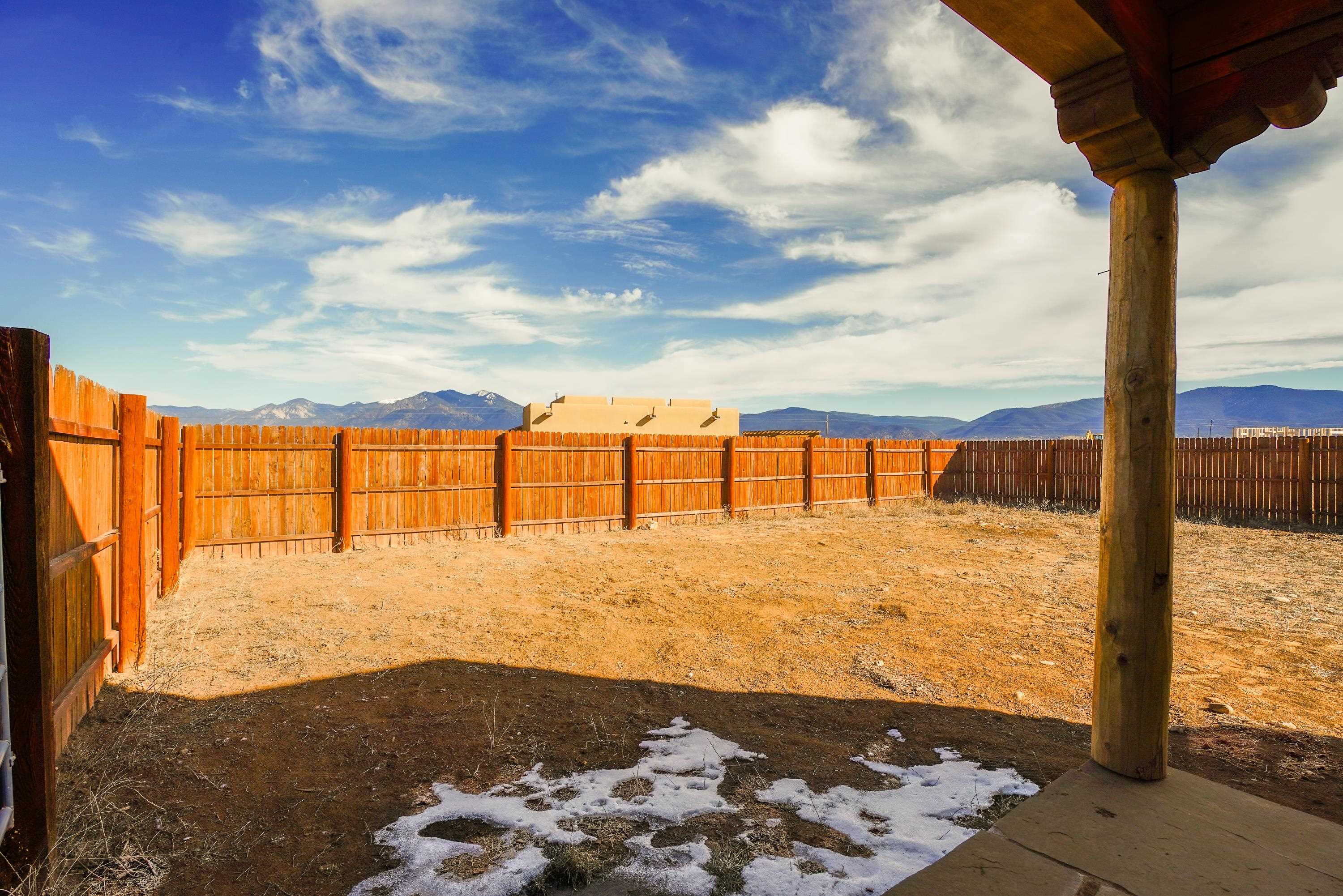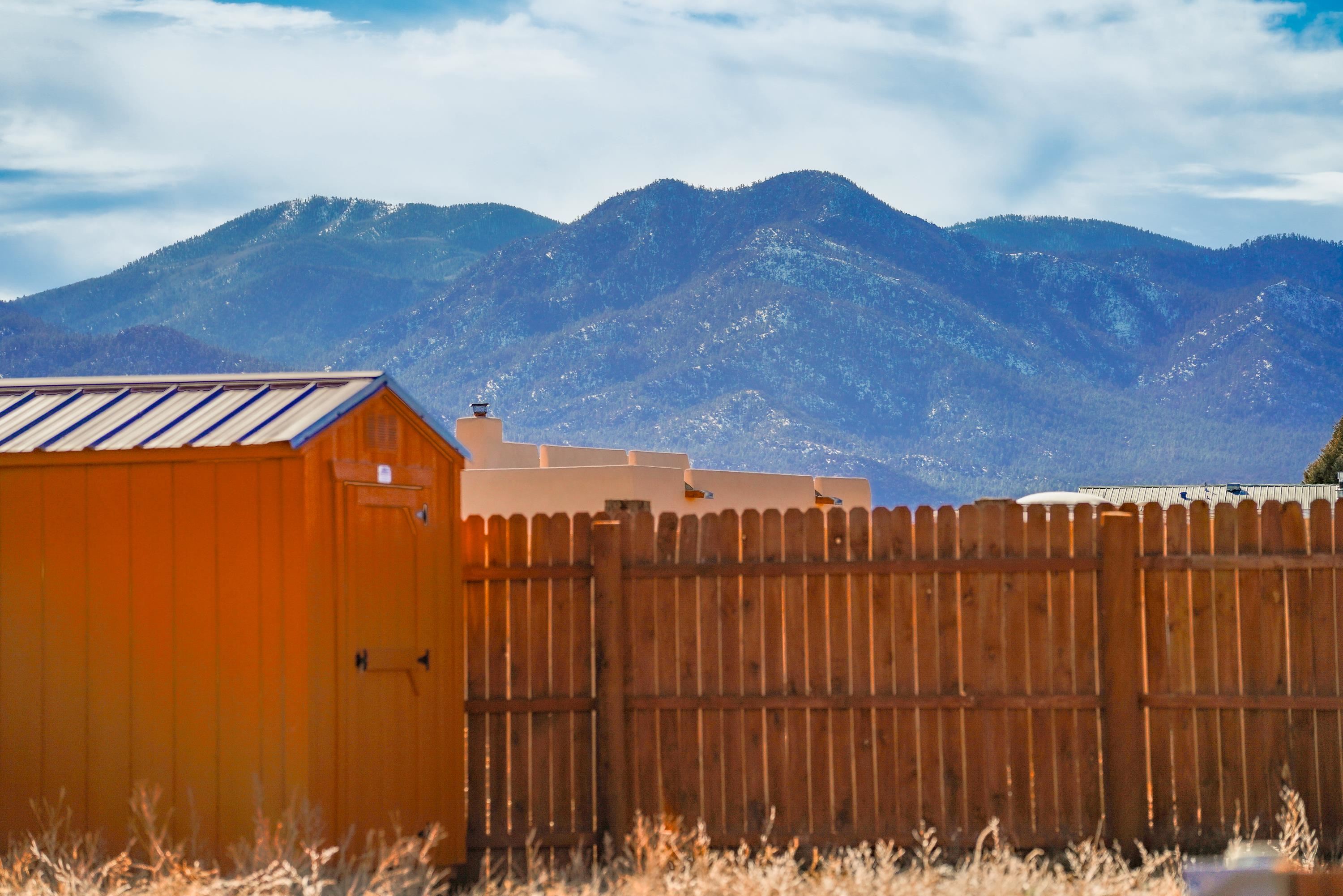 Discover classic Northern New Mexico charm in this beautiful 1,000-square-foot Pueblo-style home. This 2-bedroom, 2-bath residence blends authentic character with modern comfort. The home, built in 2022 offers hot water radiant heat, stained cement floors, and custom blinds on all windows, creating a warm and inviting interior year-round. Enjoy indoor-outdoor living with a covered porch and a fenced backyard—ideal for relaxing, entertaining, or pets. A two-car attached carport provides convenient covered parking. The property is well-equipped with fiber-optic internet, town water, Navien on-demand water heater and natural gas for easy, efficient living. The beautifully appointed kitchen has stainless steel appliances and gas oven/range. Take in breathtaking views of the Sangre de Cristo Mountains right from home, while being just minutes from hiking trails and only five minutes from local restaurants and shops. Located 15 minutes from Taos Plaza, you’ll have quick access to renowned art galleries, dining, shopping, and nightlife. Taos Ski Valley is just 35 minutes away. This charming Pueblo-style home offers the perfect balance of scenic beauty, comfort, and proximity to everything Taos has to offer.