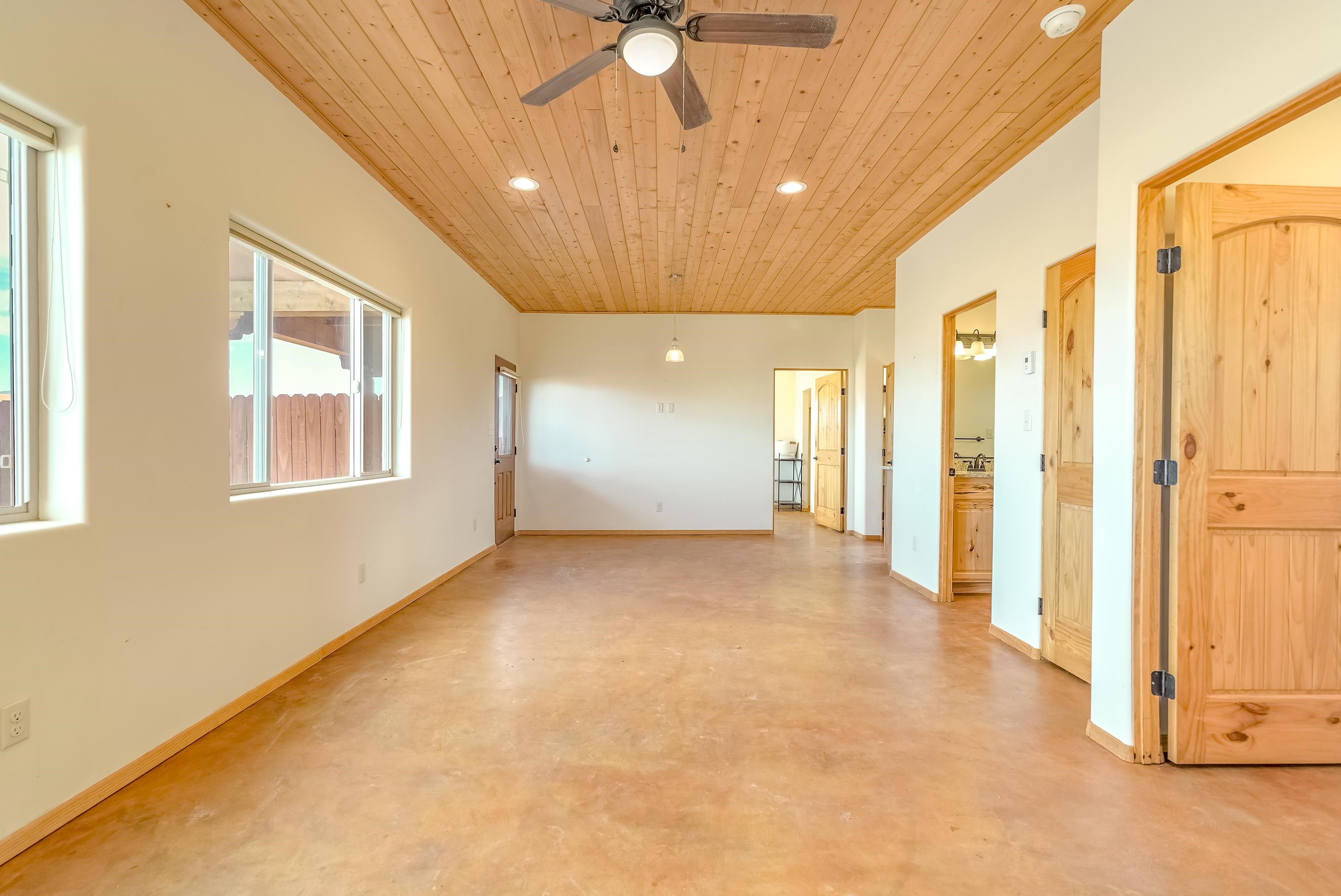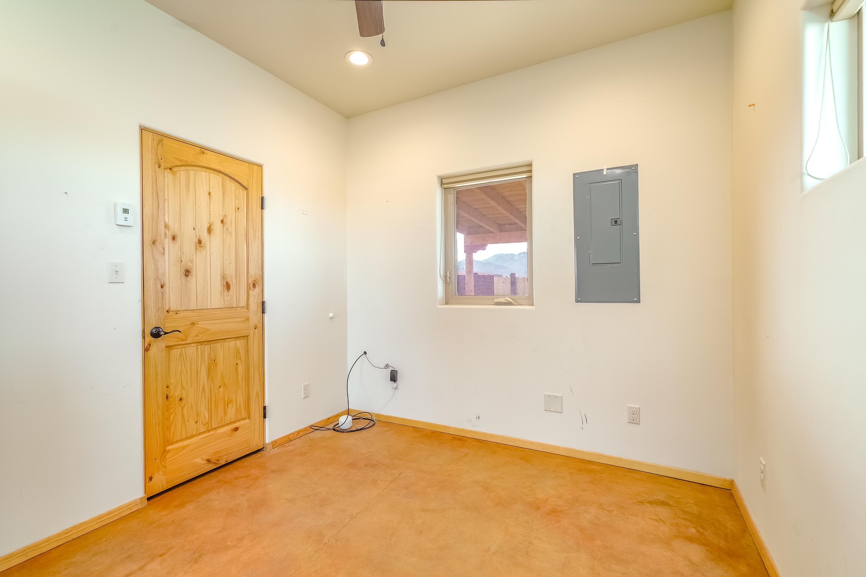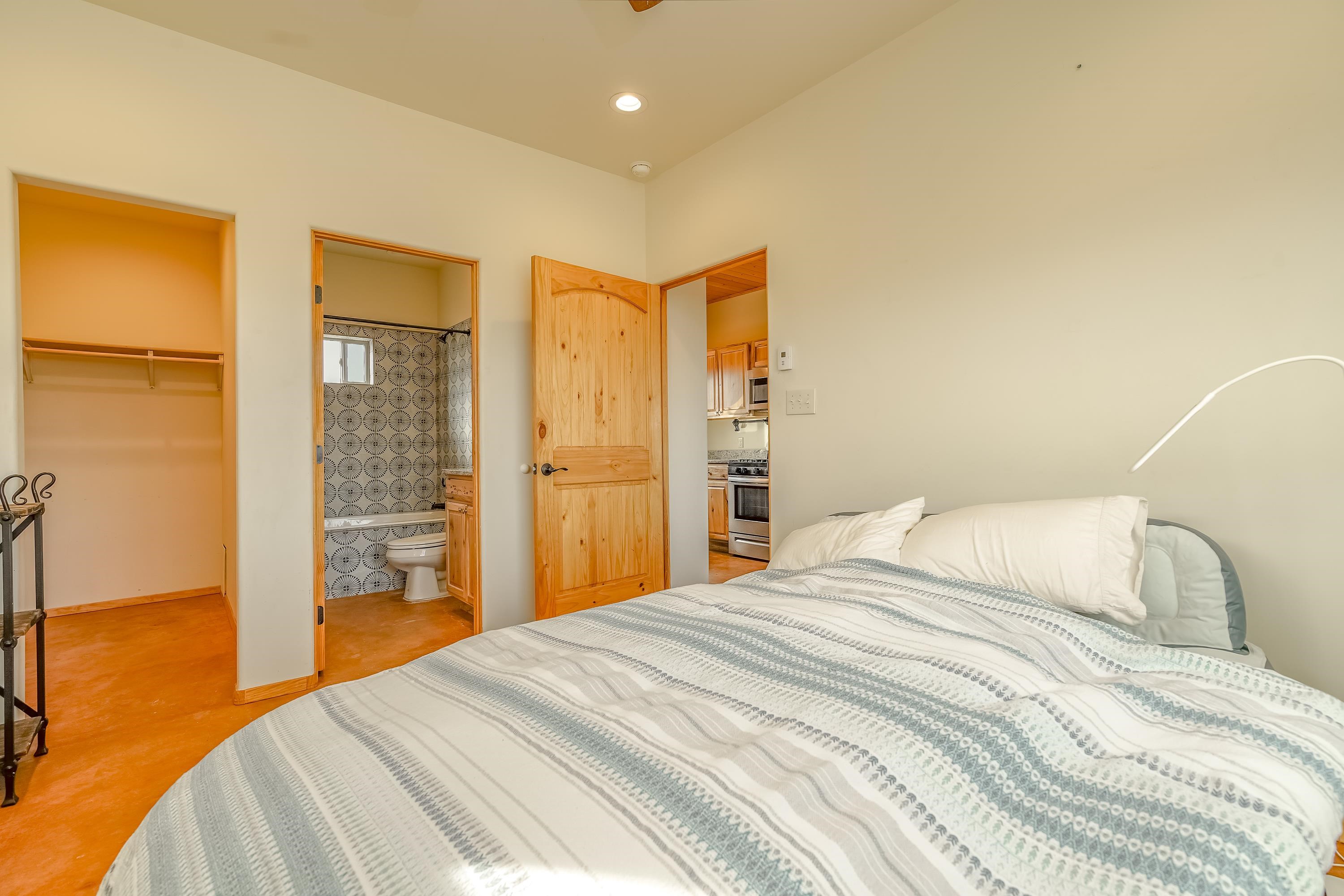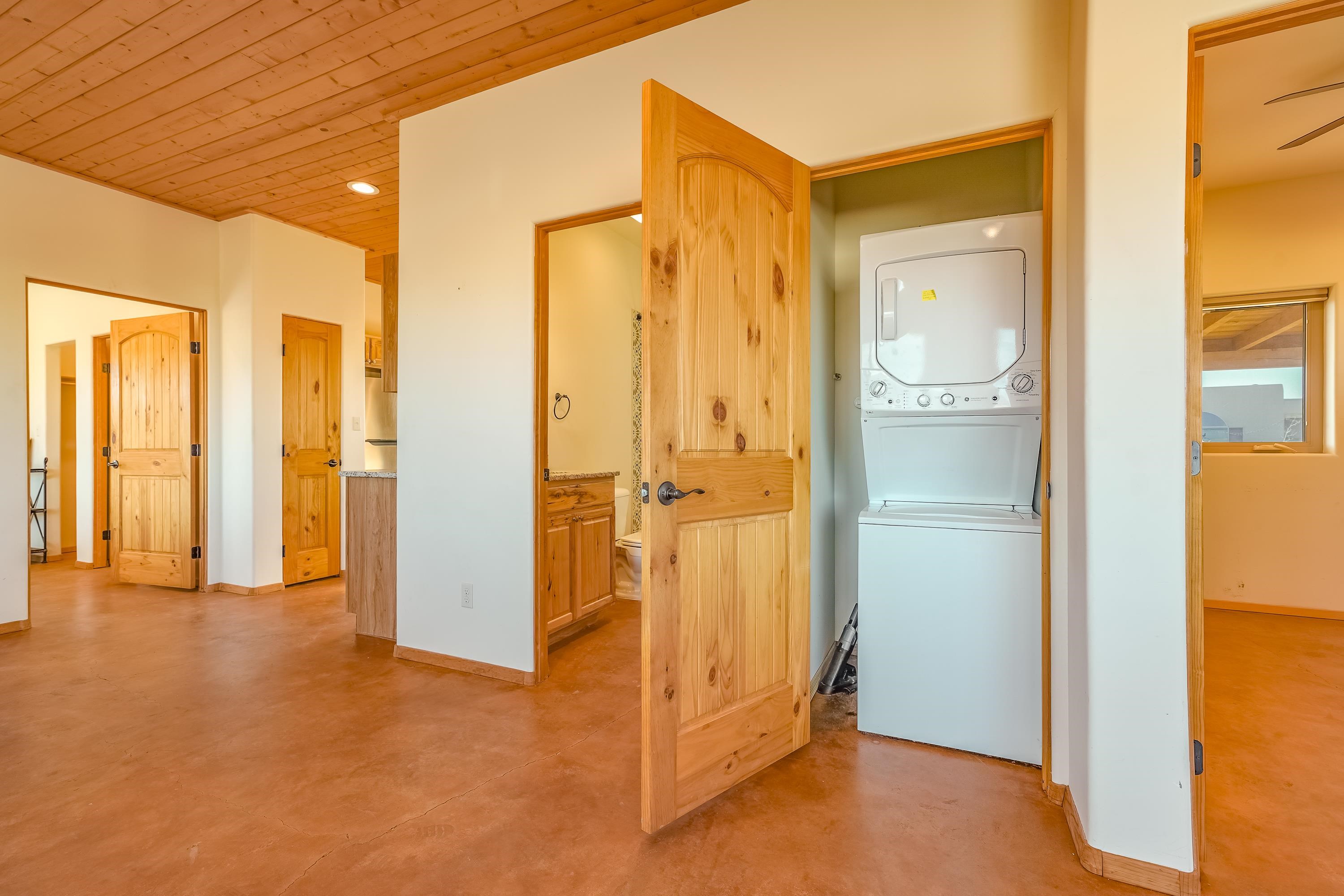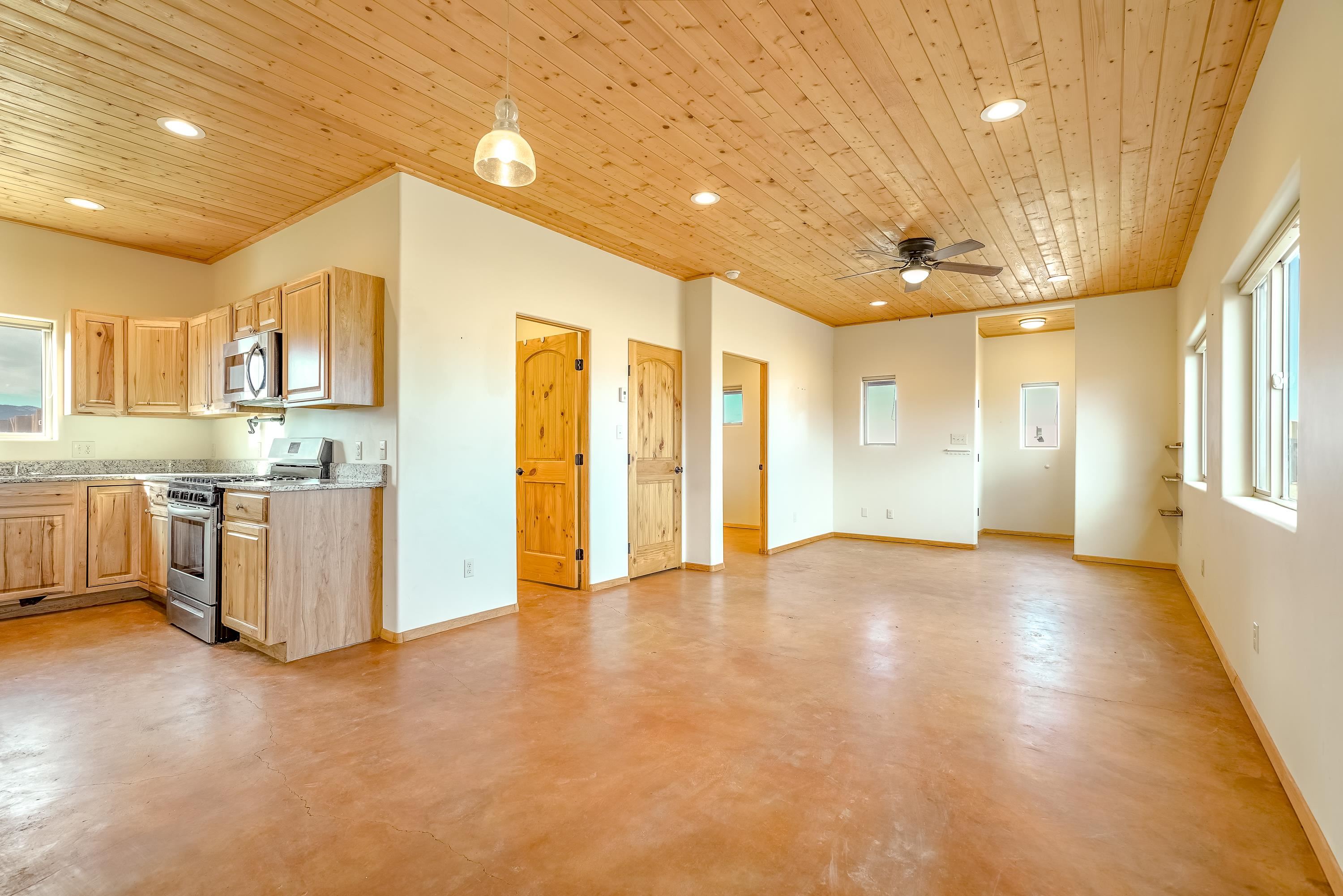 Discover classic Northern New Mexico charm in this beautiful 1,000-square-foot Pueblo-style home. This 2-bedroom, 2-bath residence blends authentic character with modern comfort. The home, built in 2022 offers hot water radiant heat, stained cement floors, and custom blinds on all windows, creating a warm and inviting interior year-round. Enjoy indoor-outdoor living with a covered porch and a fenced backyard—ideal for relaxing, entertaining, or pets. A two-car attached carport provides convenient covered parking. The property is well-equipped with fiber-optic internet, town water, Navien on-demand water heater and natural gas for easy, efficient living. The beautifully appointed kitchen has stainless steel appliances and gas oven/range. Take in breathtaking views of the Sangre de Cristo Mountains right from home, while being just minutes from hiking trails and only five minutes from local restaurants and shops. Located 15 minutes from Taos Plaza, you’ll have quick access to renowned art galleries, dining, shopping, and nightlife. Taos Ski Valley is just 35 minutes away. This charming Pueblo-style home offers the perfect balance of scenic beauty, comfort, and proximity to everything Taos has to offer.