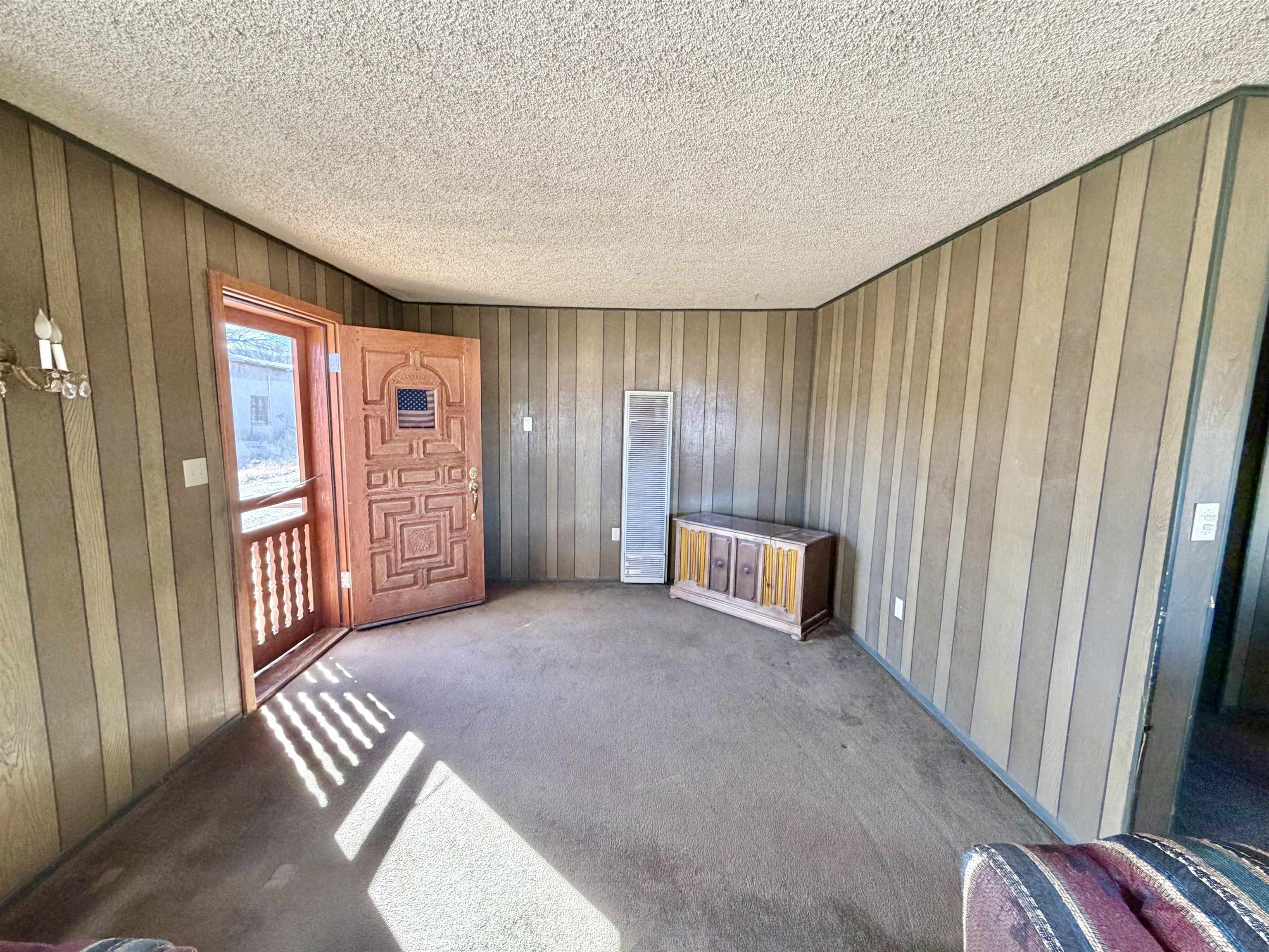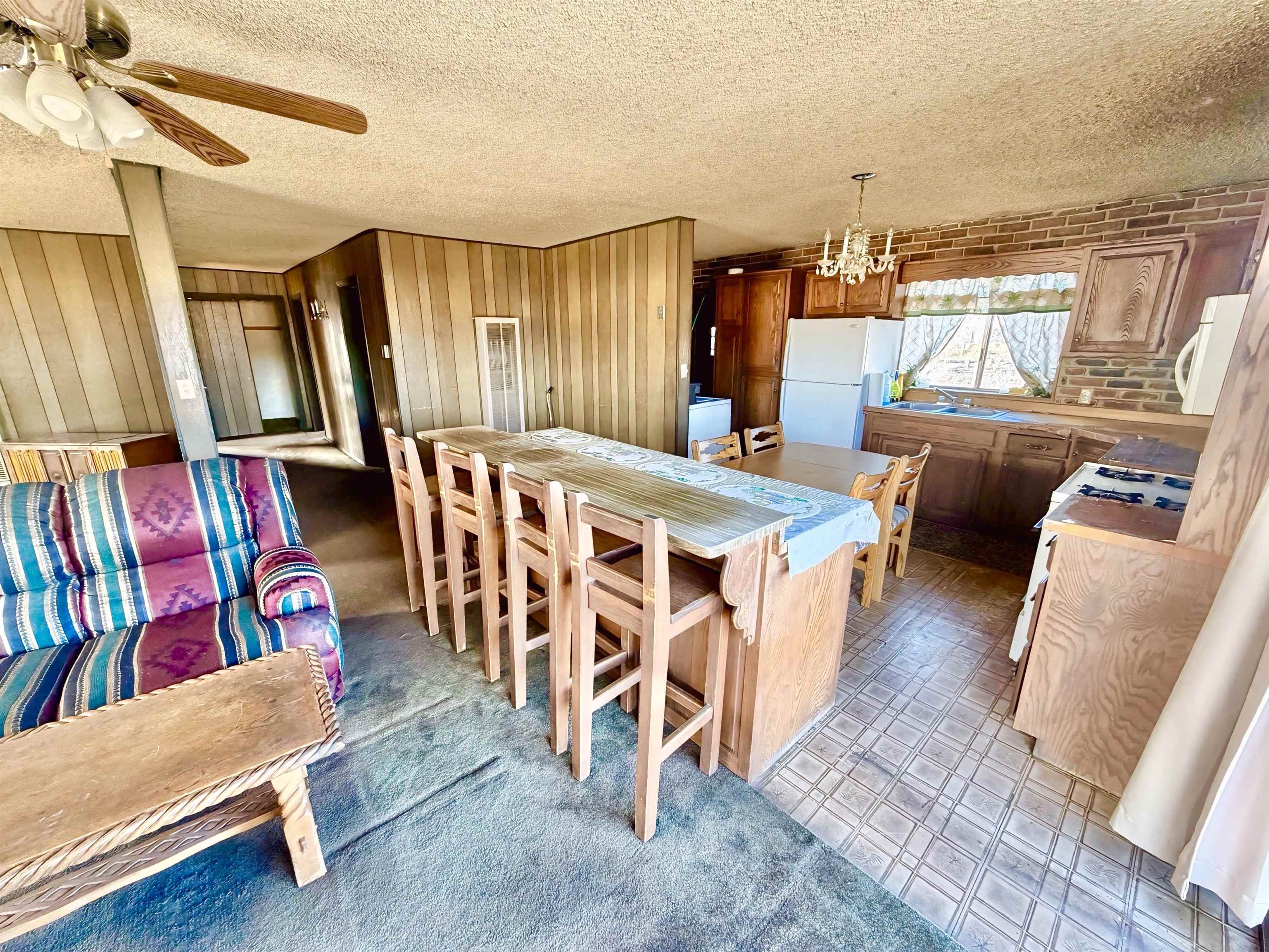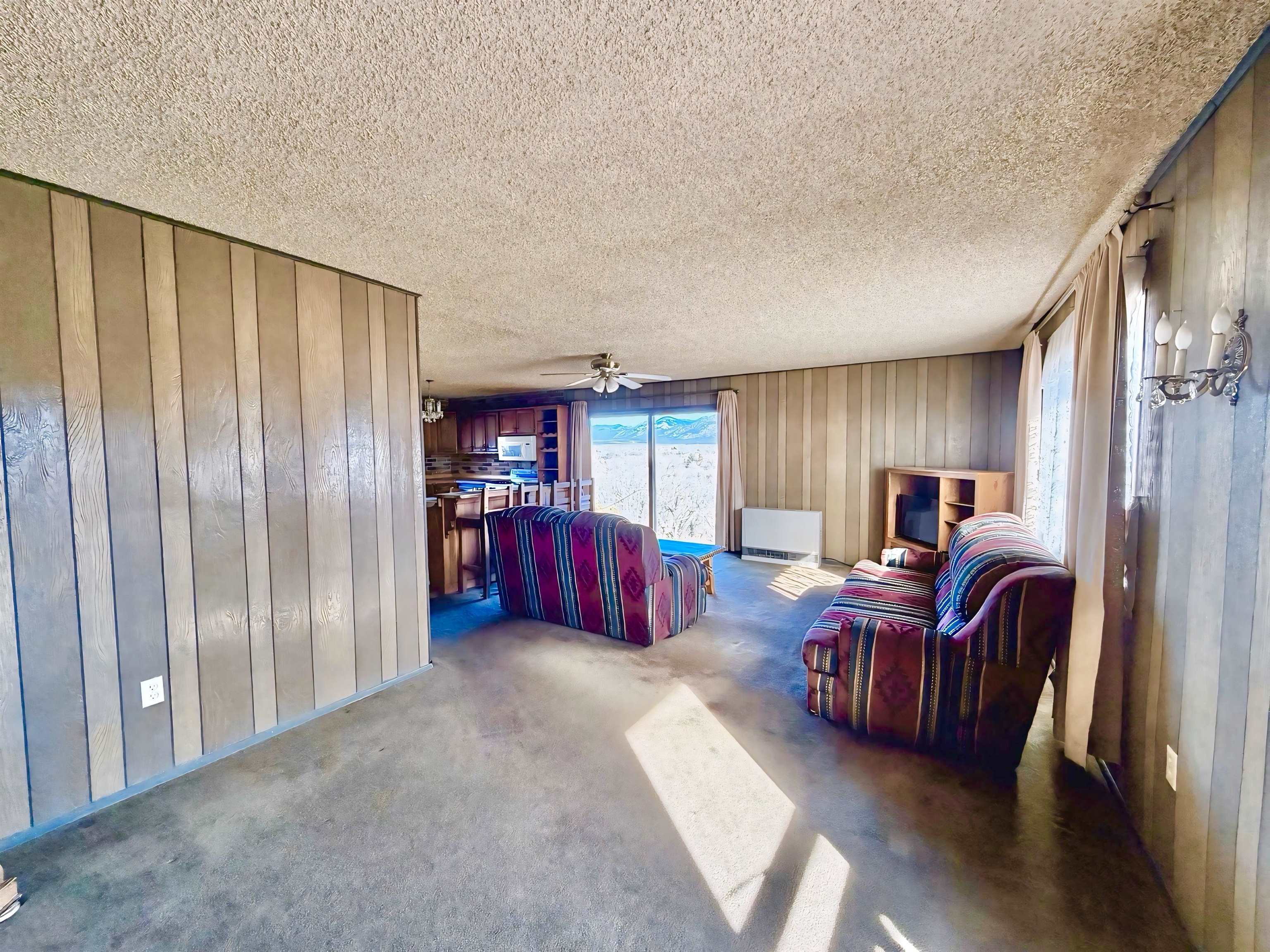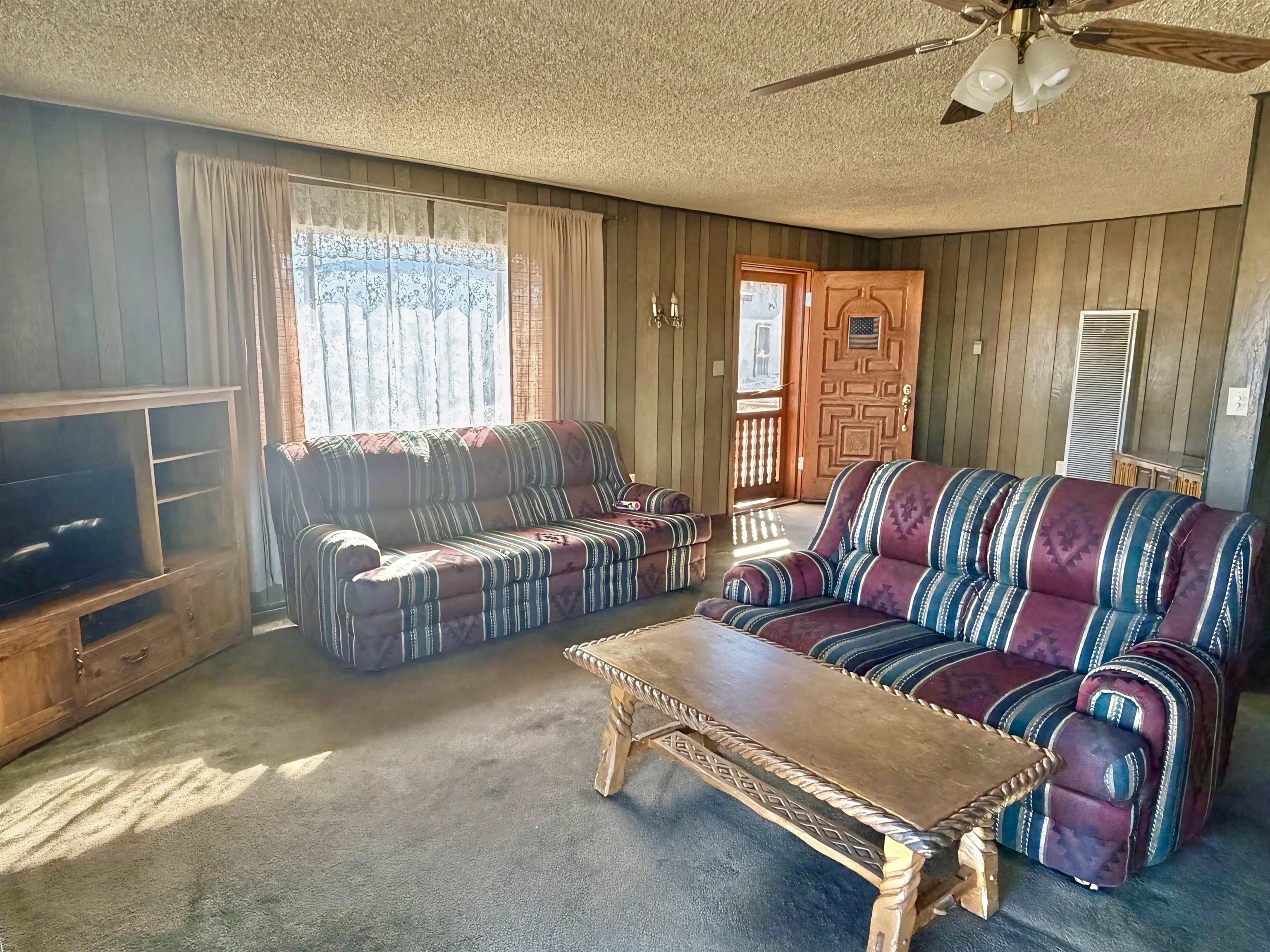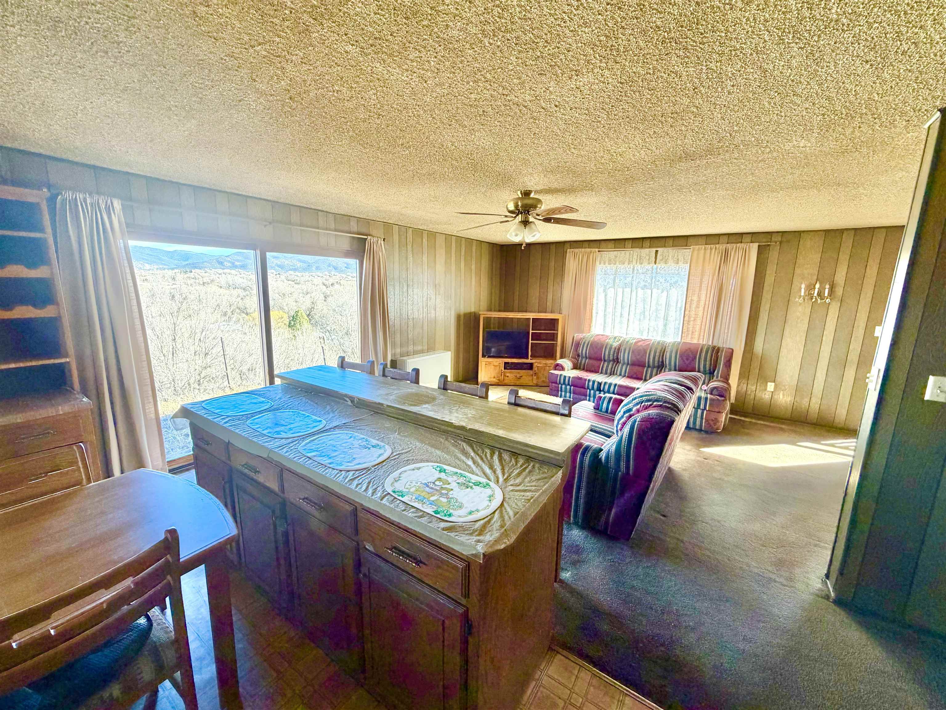 This residence offers unparalleled and exquisite views of the Ranchos de Taos Valley, with a panoramic overlook of the historic San Francisco de Asis Catholic Church, commonly referred to as the Ranchos Church. Its prime location provides effortless access to US Highway 68, facilitating northward travel to Taos or southward journeys to Santa Fe. As you step outside, embrace the invigorating Taos breeze while savoring the magnificent, unobstructed northerly vistas. This approximately 1200 square foot, two-bedroom, and one-bathroom home, constructed around 1973, exudes a cozy ambiance upon entry. The spacious north-east facing sliding glass door windows offer an exterior view of these awe-inspiring vistas, which can be enjoyed from the kitchen, dining, and living areas at any time. To enhance a more modern aesthetic, updates are feasible. Additionally, the property’s expansive size, encompassing a combined .568 acres with Lot B at .258 acres and Lot A at .310 acres, provides ample room for expansion. The main house is constructed using frame construction, featuring a pitched Pro-panel roof and stucco exterior walls. The interior boasts wood panel walls, carpeted and laminate flooring, plaster ceilings, and functional wood cabinetry in the kitchen, complemented by well kept appliances. Furthermore, the property includes an old adobe home situated in the eastern section of Lot A. This old time structure can be salvaged by skilled hands, as it retains substantial structural integrity, but will require substantial renovation. We invite you to explore this exceptional property and its amenities, ensuring that they align with your requirements at this prime location.