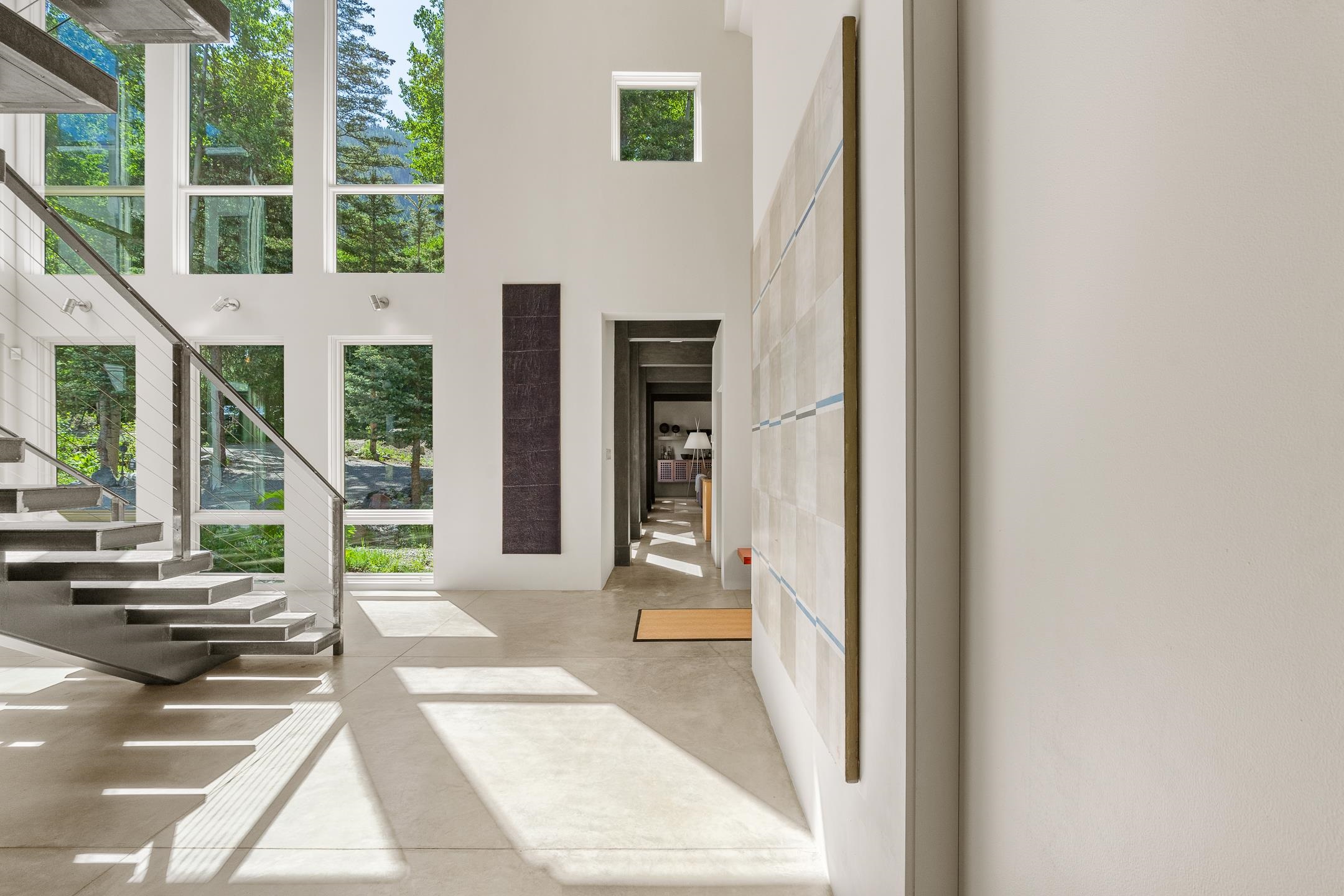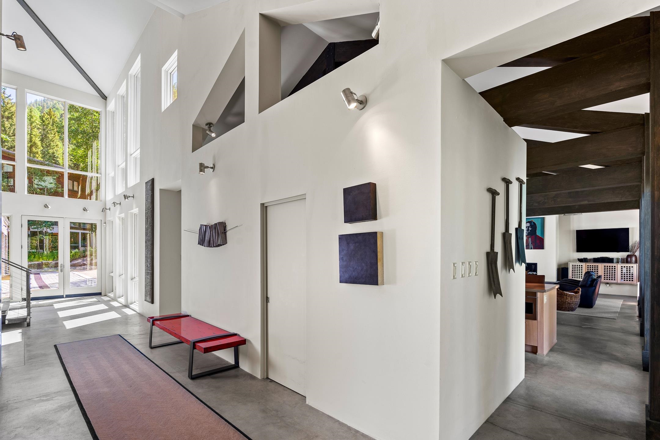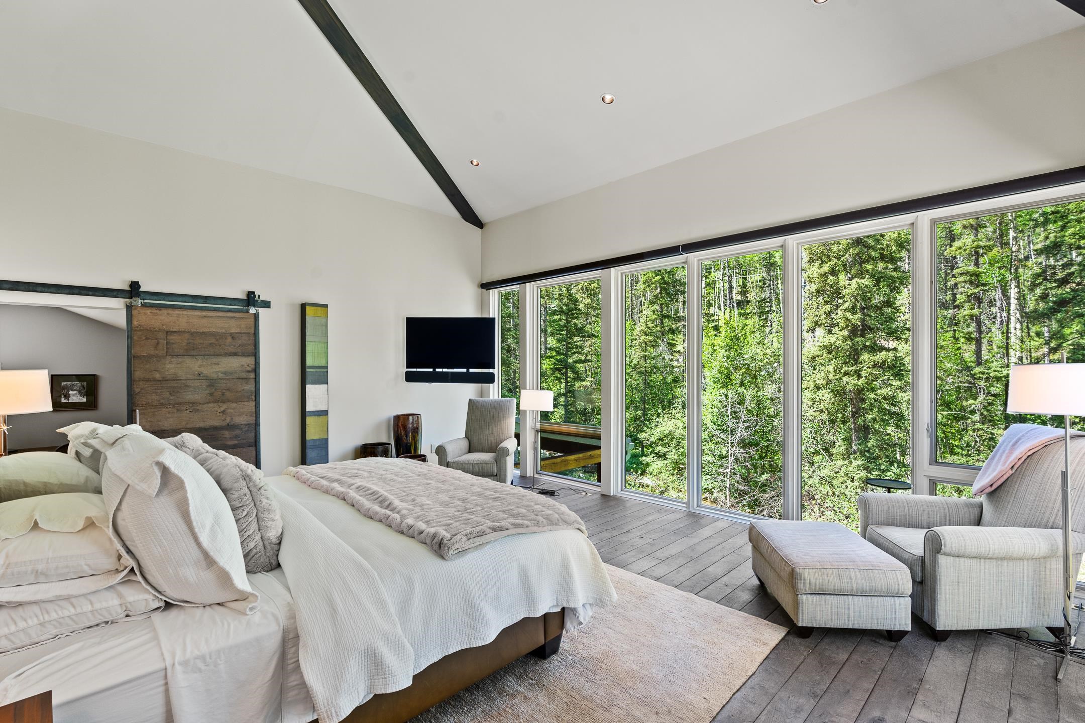 Situated in the heart of Taos Ski Valley, this one-of-a-kind Contemporary Modern Mountain Home redefines alpine luxury. Set on a rare corner lot spanning over one-third of an acre, the property is graced with more than 150 feet of the Rio Hondo River, flowing beneath two custom-built bridges that provide direct ski-in/ski-out access. Just a short walk to the base area's two main lifts, the location is simply unmatched. Every detail of this stunning home exudes sophistication and modern elegance. Designed for both comfort and performance, it features high-end finishes throughout, including automated sun shades, radiant in-floor heating, a chef’s kitchen with premium appliances, and a luxurious steam shower in the primary suite. A dramatic zinc standing seam roof—engineered to last 80 to 100 years—crowns the home, while a natural gas standby generator ensures seamless year-round living. Step outside to the elevated hot tub perched above the river and enjoy serene mountain ambiance like no other. The heated driveway and stone paver walkways offer effortless winter access, while the oversized 3-car garage—with one bay currently transformed into a game room—adds versatility and comfort. A dedicated ski storage room with private locker space and a separate entrance completes the alpine lifestyle experience. Equipped with a natural gas generator, the property ensures uninterrupted power during winter storms and outages. The home’s thoughtful floor plan offers exceptional privacy and flow. The primary suite features a private office, steam shower, and complete separation from the guest quarters, which are adjacent to a spacious family lounge. A guest suite on the lower level provides additional convenience and flexibility. From its unparalleled riverfront setting to its extraordinary finishes and amenities, there is simply no other home of this caliber in Taos Ski Valley. This is more than a residence—it's an elevated mountain sanctuary. Home is being sold fully furnished including most artwork.