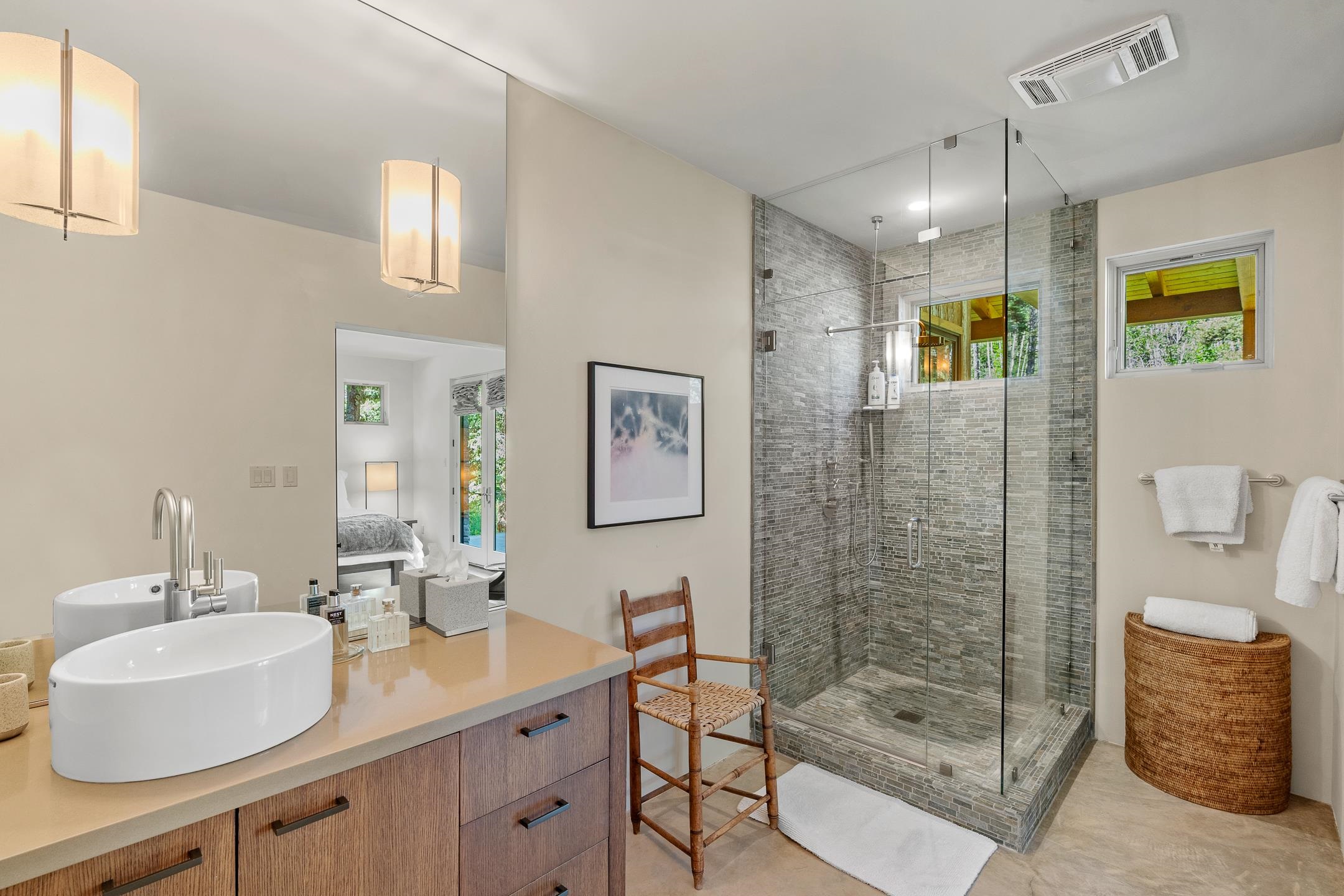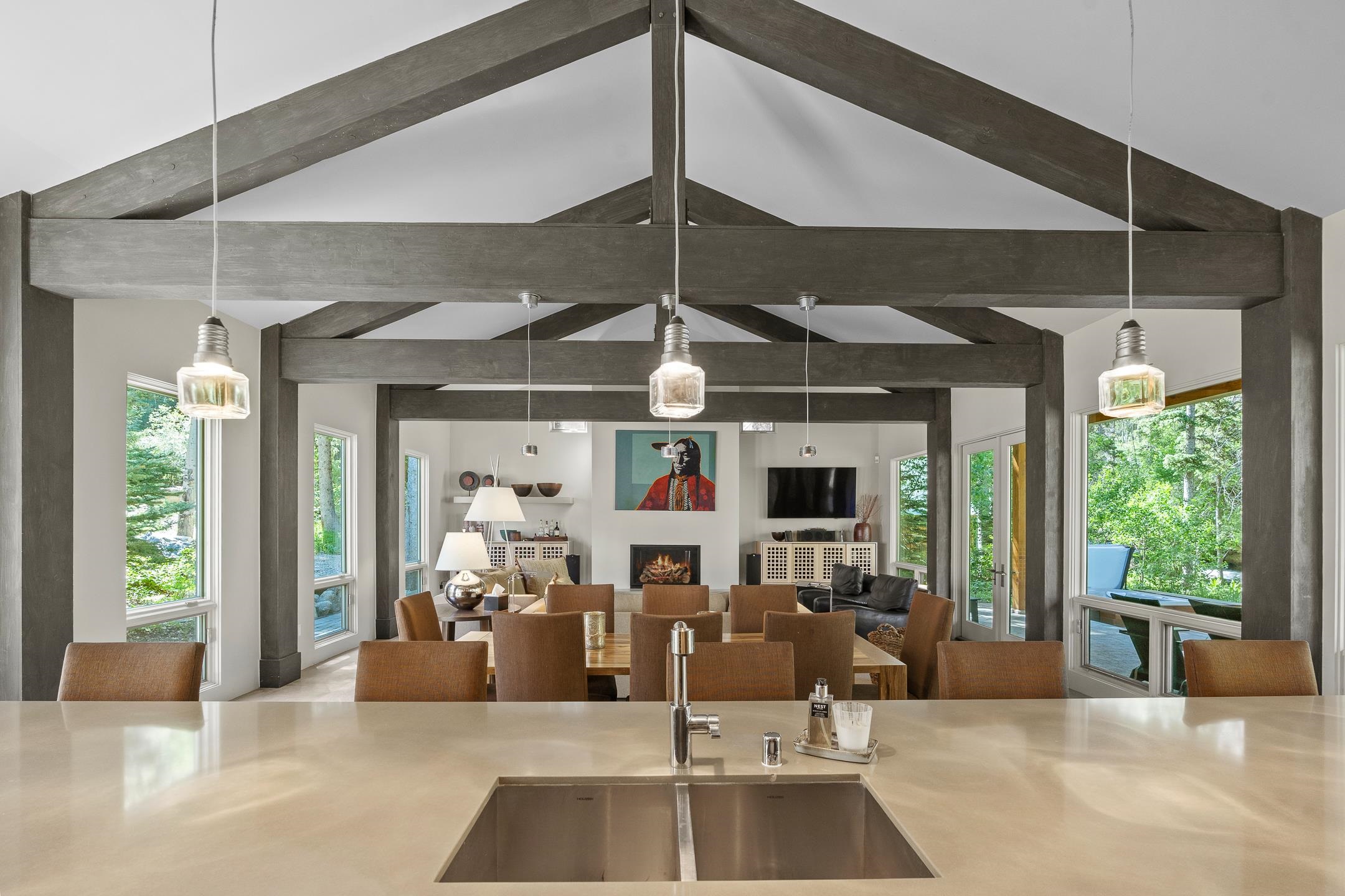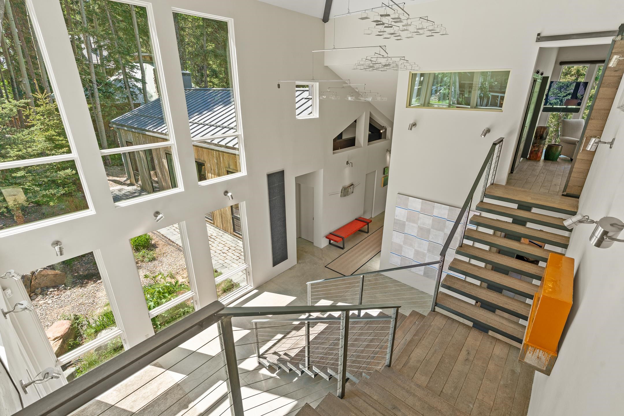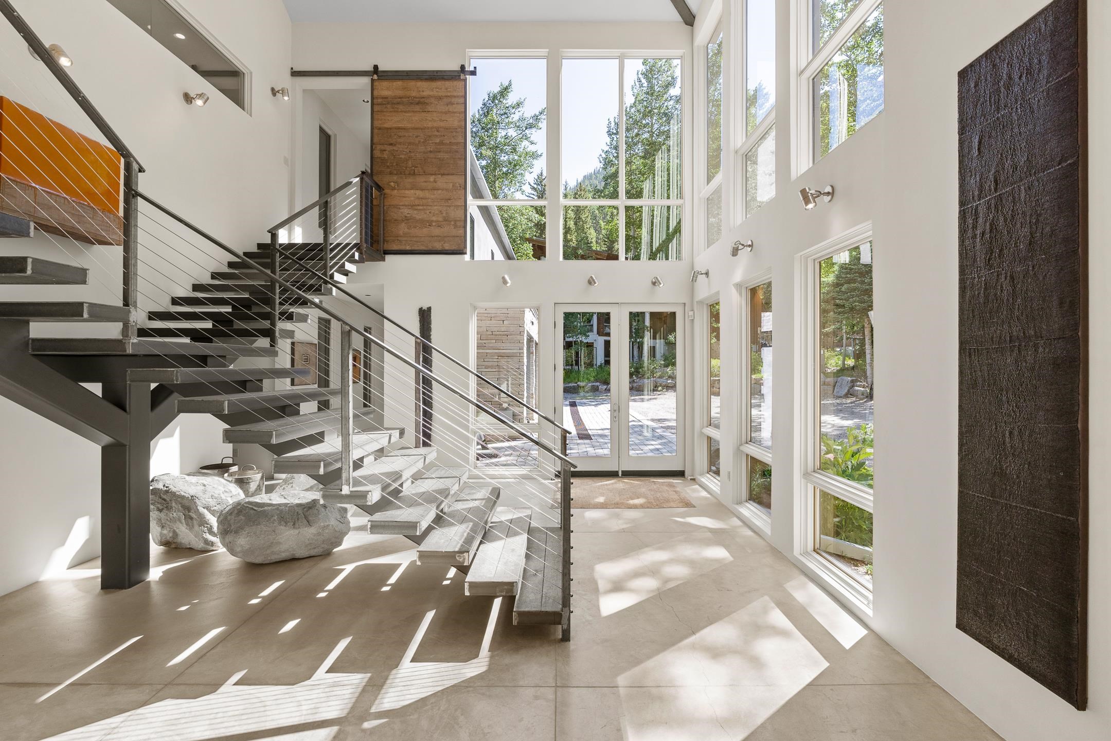 Situated in the heart of Taos Ski Valley, this one-of-a-kind Contemporary Modern Mountain Home redefines alpine luxury. Set on a rare corner lot spanning over one-third of an acre, the property is graced with more than 150 feet of the Rio Hondo River, flowing beneath two custom-built bridges that provide direct ski-in/ski-out access. Just a short walk to the base area's two main lifts, the location is simply unmatched. Every detail of this stunning home exudes sophistication and modern elegance. Designed for both comfort and performance, it features high-end finishes throughout, including automated sun shades, radiant in-floor heating, a chef’s kitchen with premium appliances, and a luxurious steam shower in the primary suite. A dramatic zinc standing seam roof—engineered to last 80 to 100 years—crowns the home, while a natural gas standby generator ensures seamless year-round living. Step outside to the elevated hot tub perched above the river and enjoy serene mountain ambiance like no other. The heated driveway and stone paver walkways offer effortless winter access, while the oversized 3-car garage—with one bay currently transformed into a game room—adds versatility and comfort. A dedicated ski storage room with private locker space and a separate entrance completes the alpine lifestyle experience. Equipped with a natural gas generator, the property ensures uninterrupted power during winter storms and outages. The home’s thoughtful floor plan offers exceptional privacy and flow. The primary suite features a private office, steam shower, and complete separation from the guest quarters, which are adjacent to a spacious family lounge. A guest suite on the lower level provides additional convenience and flexibility. From its unparalleled riverfront setting to its extraordinary finishes and amenities, there is simply no other home of this caliber in Taos Ski Valley. This is more than a residence—it's an elevated mountain sanctuary. Home is being sold fully furnished including most artwork.