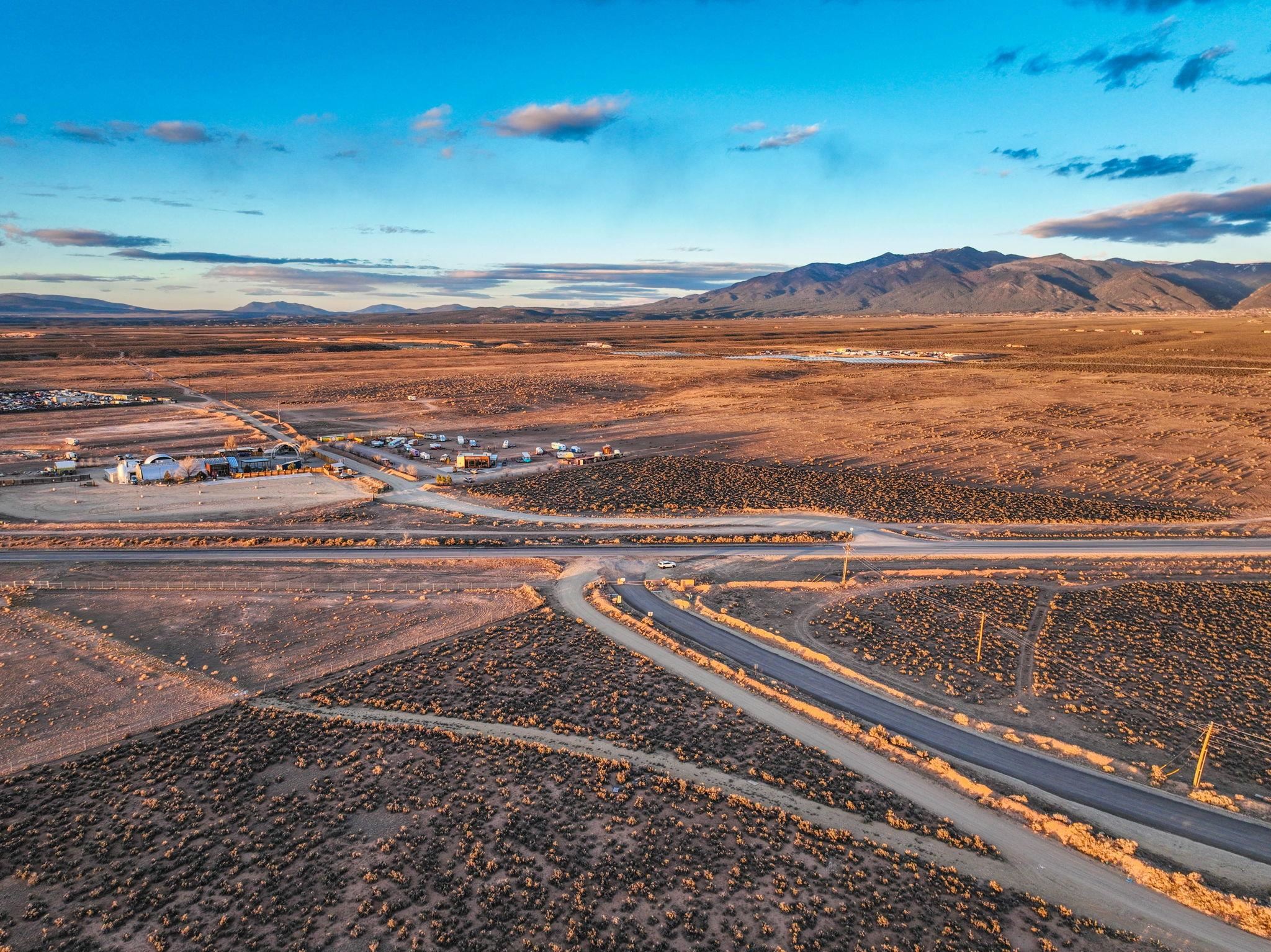 Opportunity Right On the Highway in Growing El Prado ~ Less than a half-mile away from Taos Regional Airport, right next to the the popular Hotel Luna Mystica & vibrant Taos Mesa Brewing Company, you will find this rare parcel of flat land right off US 64 West. You or your Company can go many many ways with this lot; perhaps you play off the airport and build a small plaza to host a car rental business, a small grocery store to serve this rapidly growing region, or maybe even a restaurant/bar to compliment the many concerts & events taking place right next door at the two booming establishments. A space for entertaining the many residents of El Prado, Colonias, "The Mesa," and the greater Taos Community will go a long long way here... Something like put-put golf, a yoga/pilates gym, or even a mult-housing or mixed use space studio would be a hit for all people visiting, living, or moving to Northern New Mexico. Traffic in this part of town is almost constant with cars and trucks heading West to the Ojo Caliente Hot Springs, the remarkable Rio Grand Gorge Bridge, the wondrous Earthship Community, Southern Colorado, or the easy way to Santa Fe and beyond. A plethora of activities are right down the road-- skiing at the world-class Taos Ski Valley, rafting and fishing the Rio Grande Gorge, Mountain biking the high-desert trails, horseback riding, hiking, hunting, star gazing, all right there or nearby. El Prado Water recently installed water lines on both sides of the highway with the plan to eventually allow connections. Opportunities like this don't arise often, you'll want to jump at one!