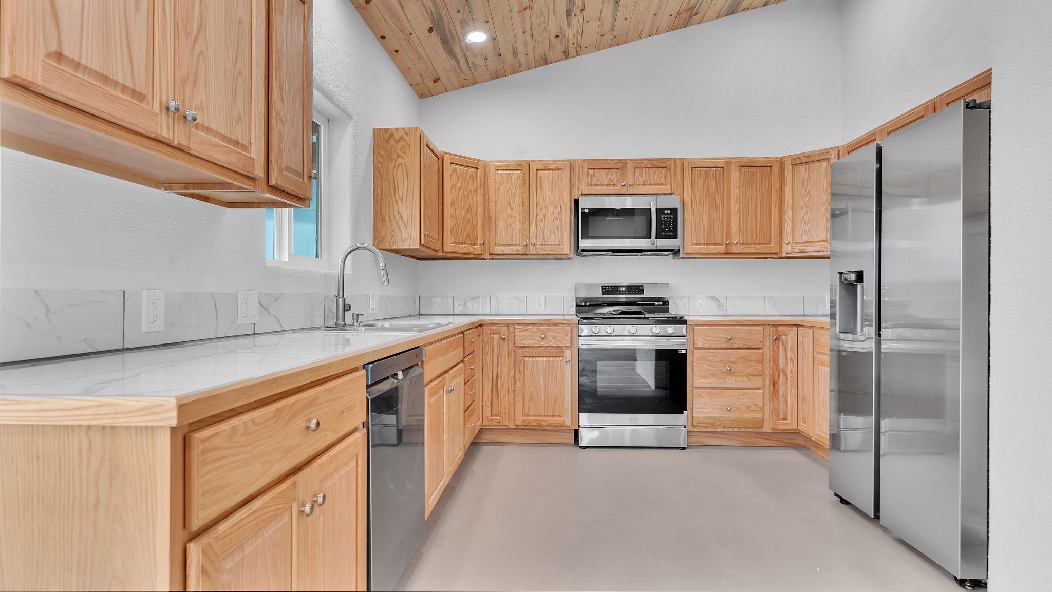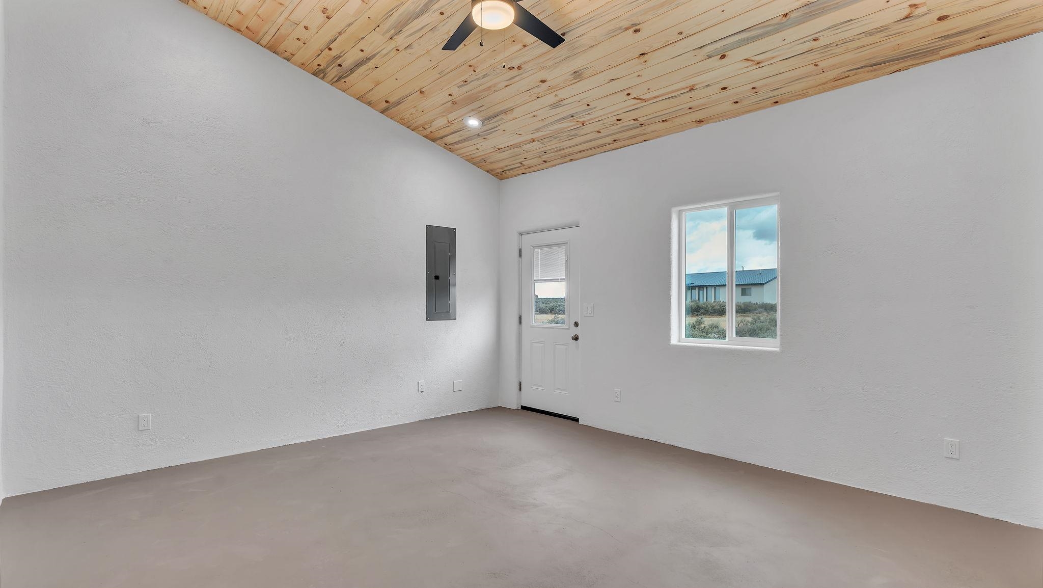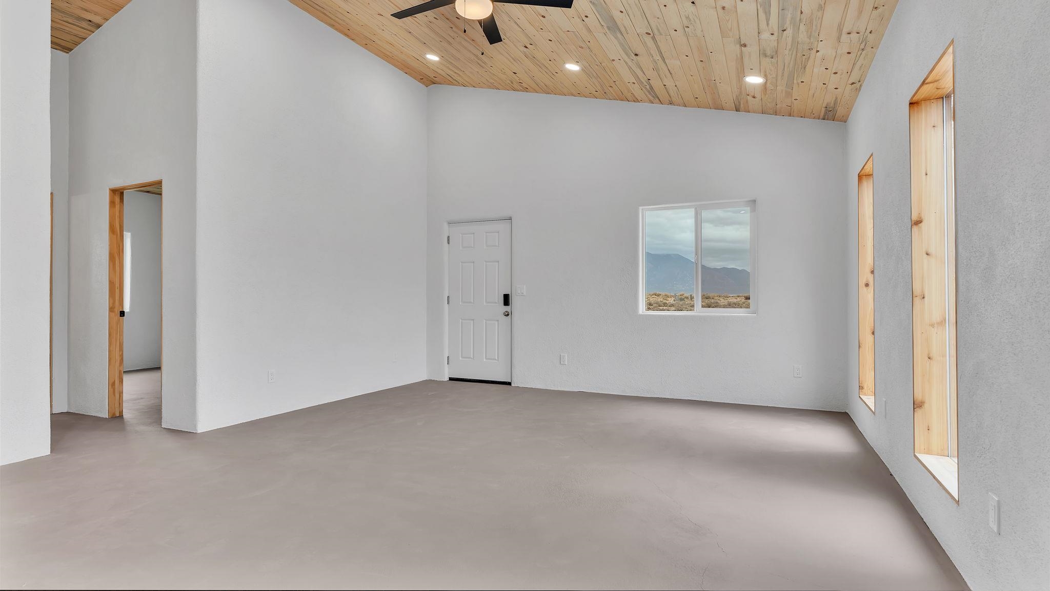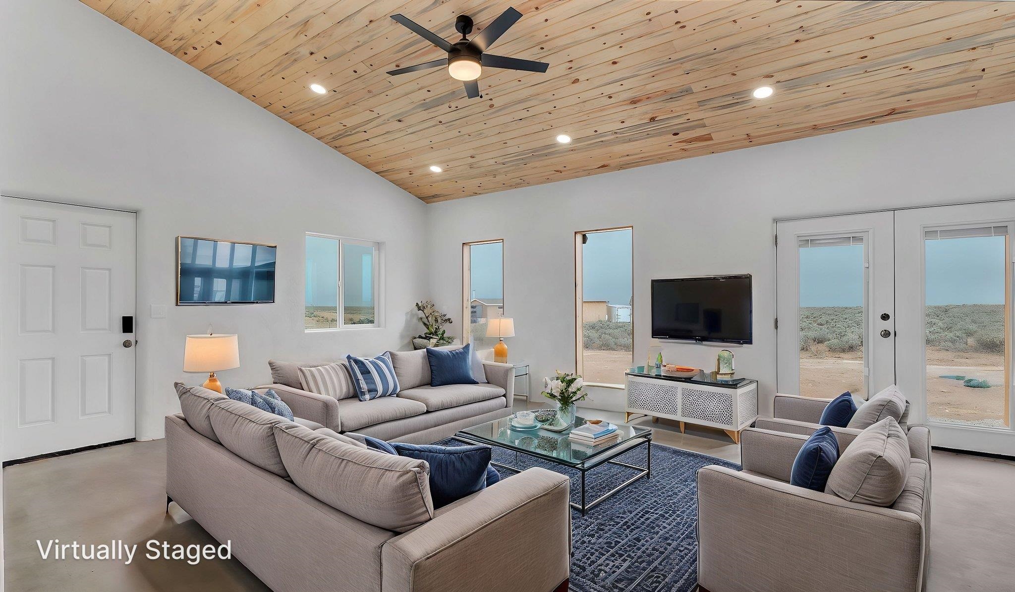 Magical Sunsets & Mountain Views Daily ~ Welcome to the third, extra special, and sustainable residence within the newly developed Taeo Loop Neighborhood of El Prado, Taos, New Mexico. This freshly finished 2 bed 2 bath 1,088 sqft home on 1 acre is a rare find in this sought after growing region of town. The construction is top-tier, and the home is ahead of the rest when it comes to the possibilities for saving on energy, and saving the planet being that infrastructure is in place for converting to solar if one desires. In the meantime, the solar room could be used as extra storage. The open floor plan is highly functional, and it's as if the home is double the size with the high vaulted ceiling in the living area and spacious shiny kitchen equipped with upgraded stainless steel kitchen appliances. Each of the bedrooms are large enough for big beds, the bathrooms are comfortable and sleek, and the laundry room with a full-size washer & dryer and extra storage ideal for keeping things organized. Some of the home's special features include tongue & groove ceilings, South facing floor-to-ceiling windows bring in solar passive energy throughout the day, keep the home well lit, and will be a popular place for growing tomatoes inside. The stained concrete floors make the on-demand hot water radiant heated floors extra efficient, and a steady breeze enhanced by the overhead ceiling fans promotes even greater climate control. The attached carport will make for a short trip indoors during the snowy season, and the pitched metal roof will require very little maintenance over time..As for the views, these simply cannot be beat, especially at sunset, sunrise, or a lunar/solar eclipse in the High Desert. Close proximity and outlet to Taos Ski Valley, the Rio Grande River, and all the trails for outdoor fun. Some photos have been virtually staged. Don't wait, and get in early on this newly built home, in the lovely Taeo Loop Neighborhood!