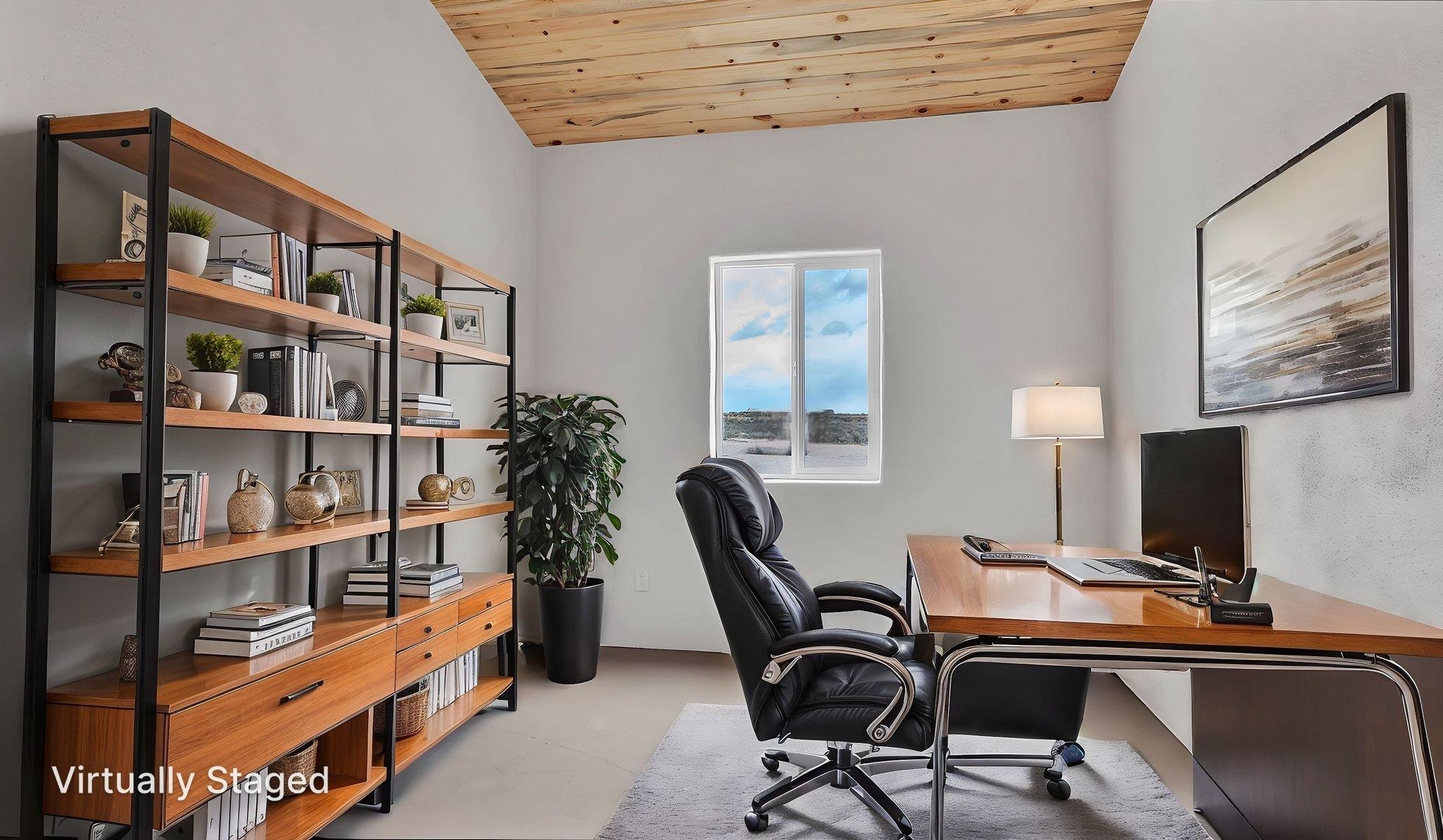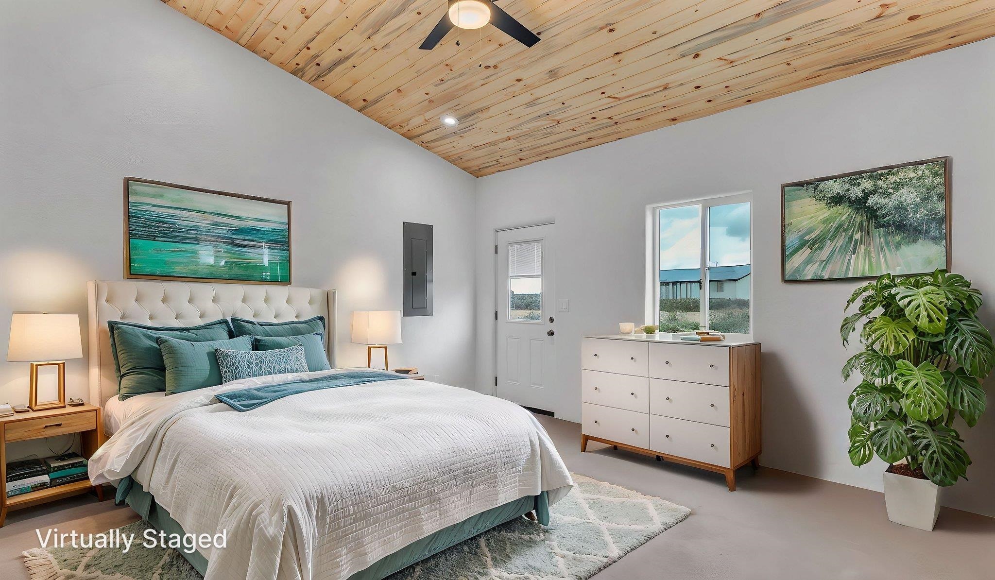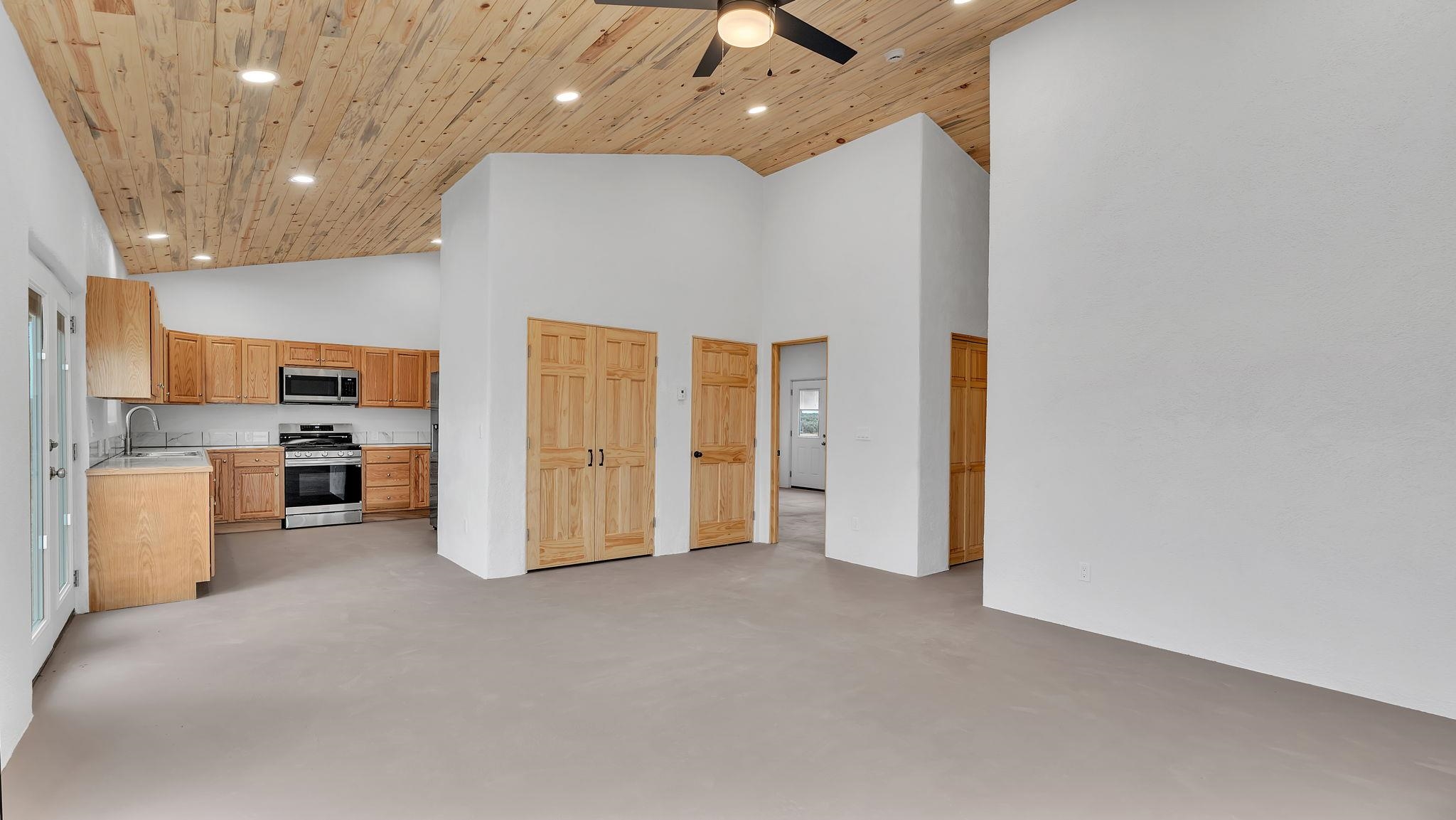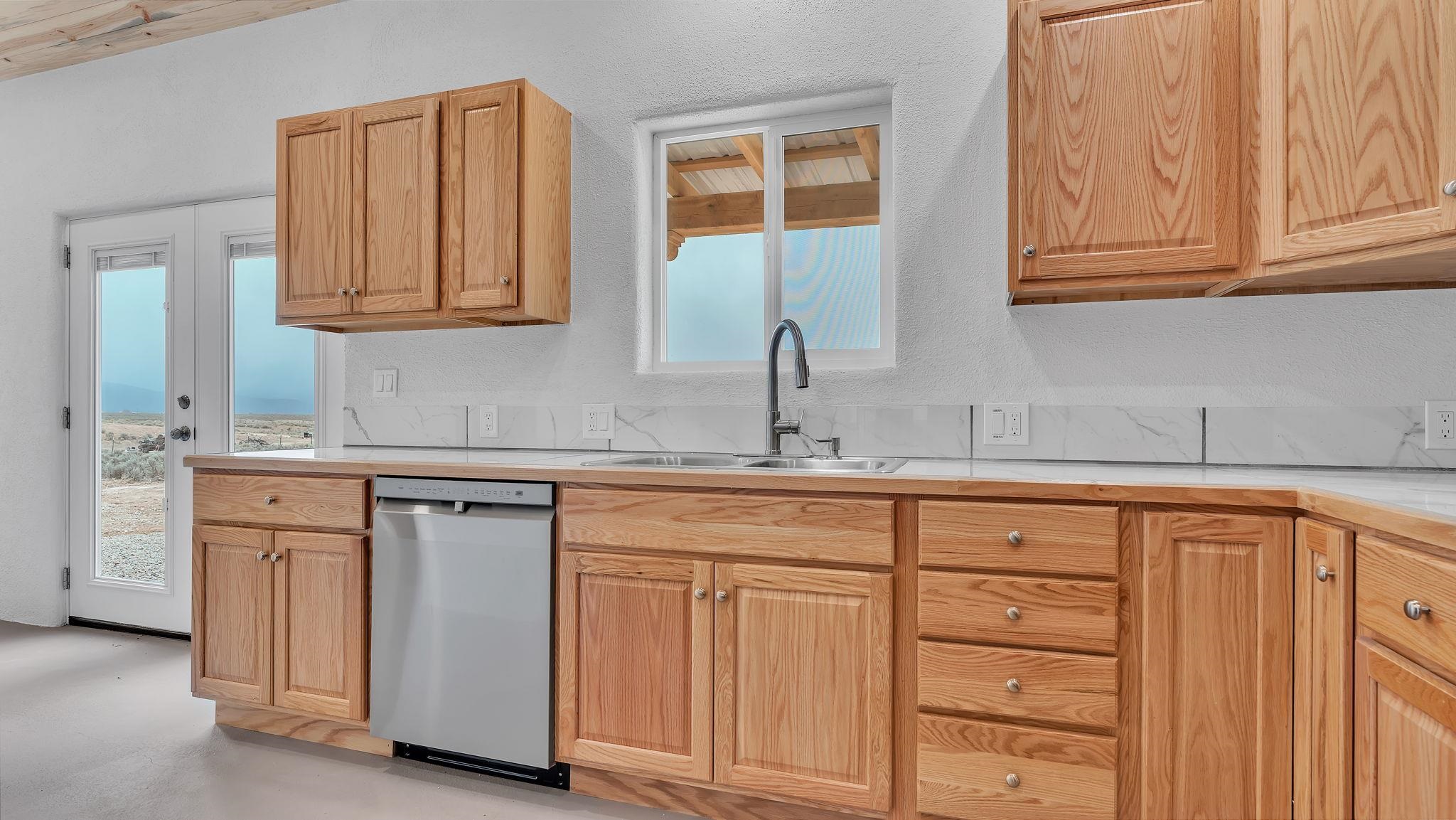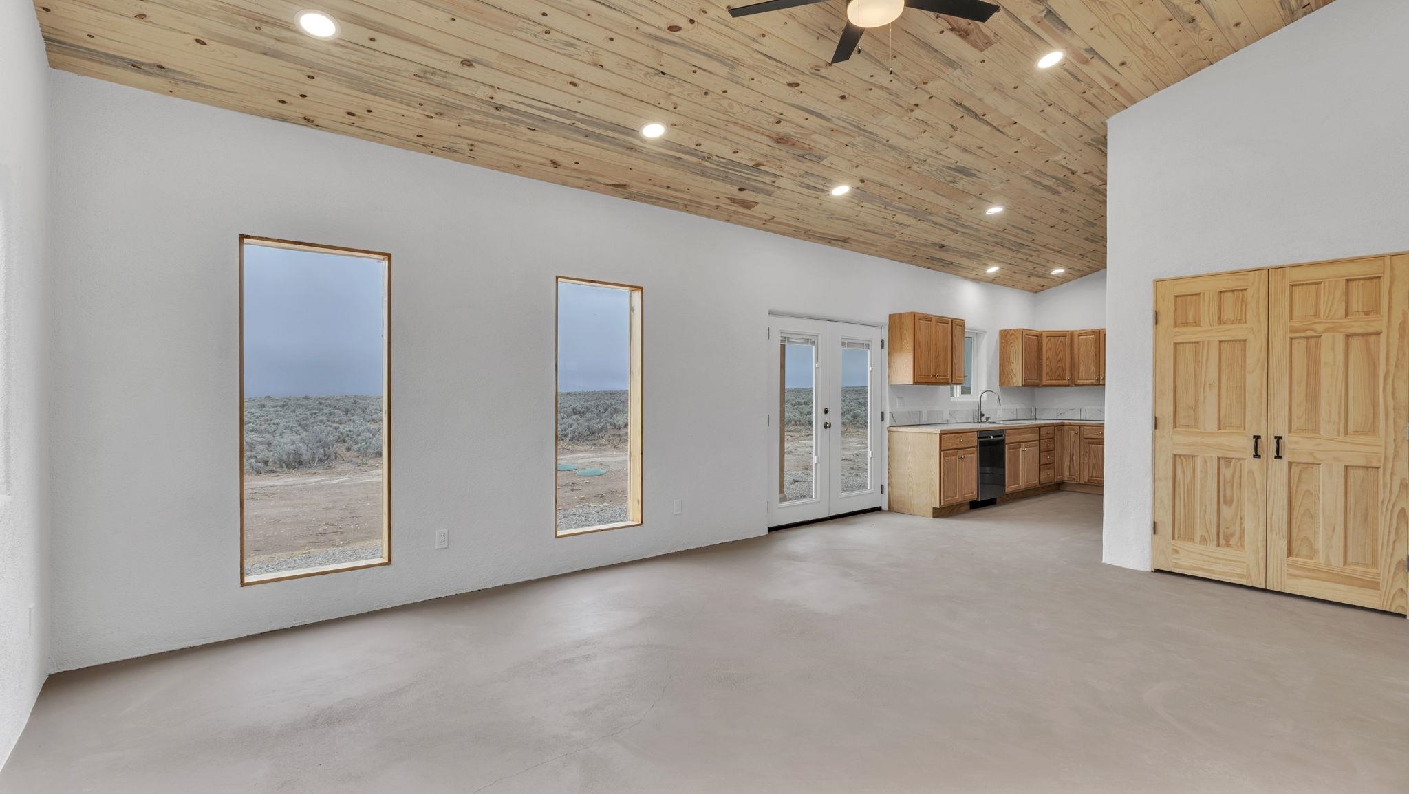 BRAND NEW CUSTOM HOME in Lower Colonias ~ Welcome to the third, extra special, and sustainable residence within the newly developed Taeo Loop Neighborhood of El Prado, Taos, New Mexico. This freshly finished 2 bed 2 bath 1,088 sqft home on 1 acre is a rare find in this sought after growing region of town. The construction is top-tier, and the home is ahead of the rest when it comes to the possibilities for saving on energy, and saving the planet being that infrastructure is in place for converting to solar if one desires. In the meantime, the solar room could be used as extra storage. The open floor plan is highly functional, and it's as if the home is double the size with the high vaulted ceiling in the living area and spacious shiny kitchen equipped with upgraded stainless steel kitchen appliances. Each of the bedrooms are large enough for big beds, the bathrooms are comfortable and sleek, and the laundry room with a full-size washer & dryer and extra storage ideal for keeping things organized. Some of the home's special features include tongue & groove ceilings, South facing floor-to-ceiling windows bring in solar passive energy throughout the day, keep the home well lit, and will be a popular place for growing tomatoes inside. The stained concrete floors make the on-demand hot water radiant heated floors extra efficient, and a steady breeze enhanced by the overhead ceiling fans promotes even greater climate control. The attached carport will make for a short trip indoors during the snowy season, and the pitched metal roof will require very little maintenance over time..As for the views, these simply cannot be beat, especially at sunset, sunrise, or a lunar/solar eclipse in the High Desert. Close proximity and outlet to Taos Ski Valley, the Rio Grande River, and all the trails for outdoor fun. Some photos have been virtually staged. Don't wait, and get in early on this newly built home, in the lovely Taeo Loop Neighborhood!