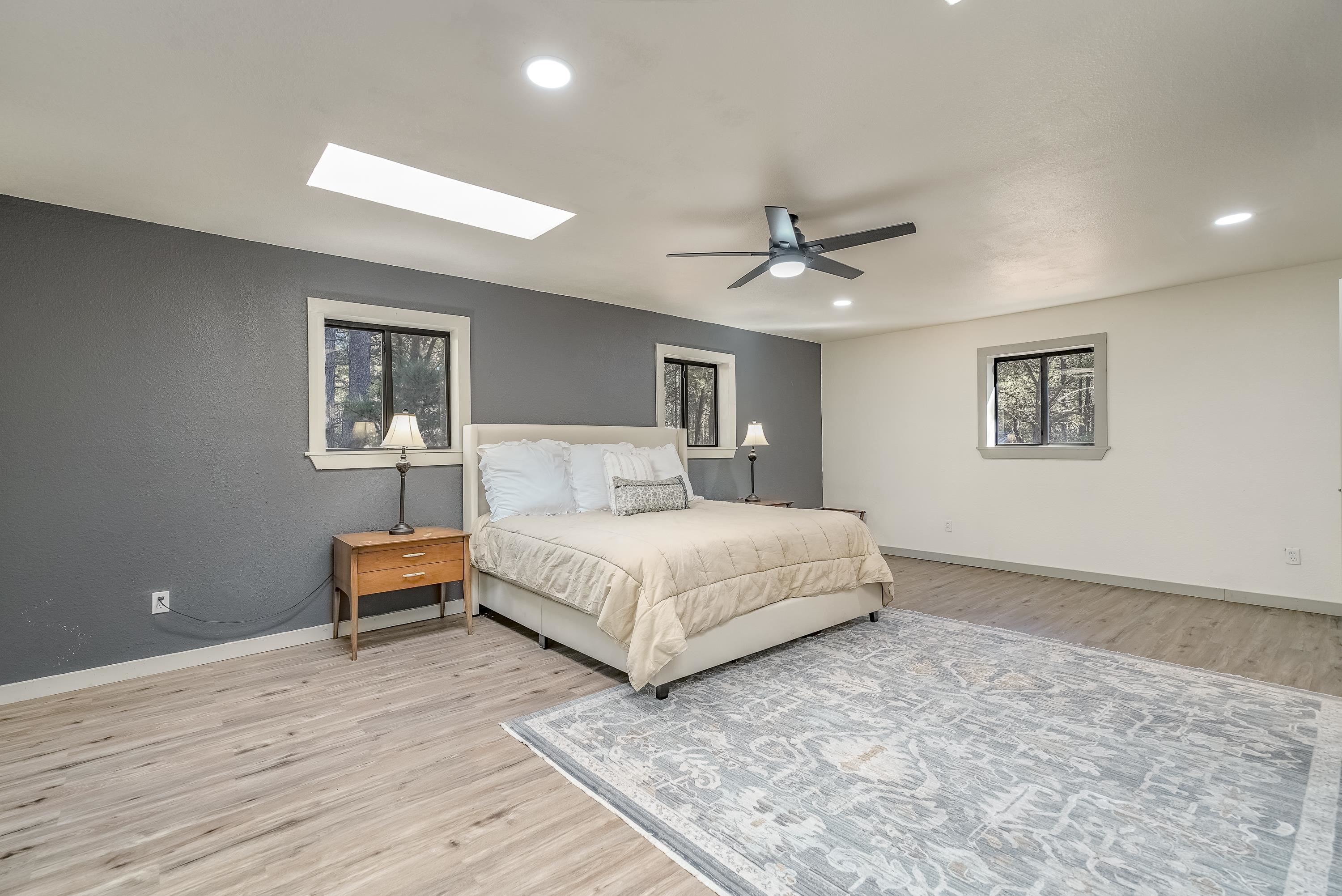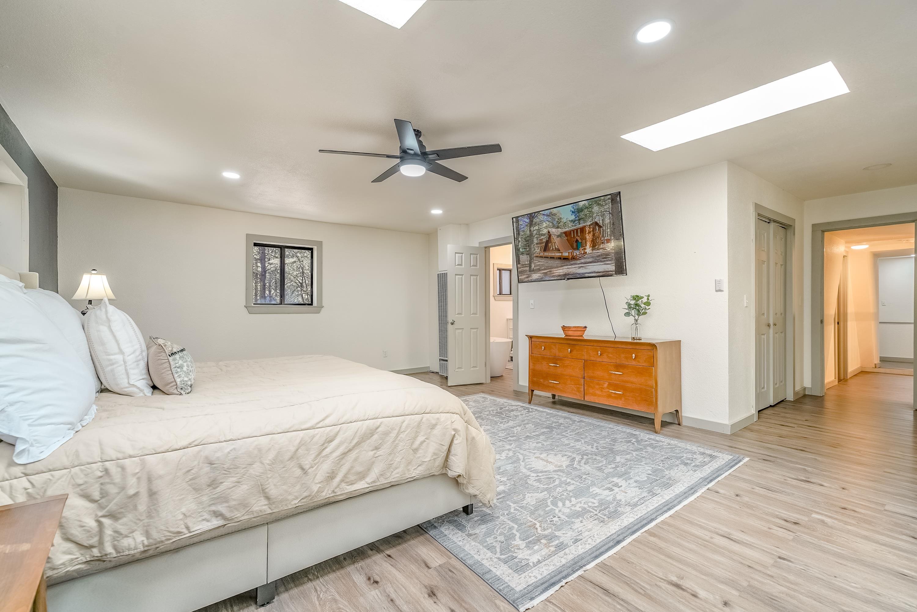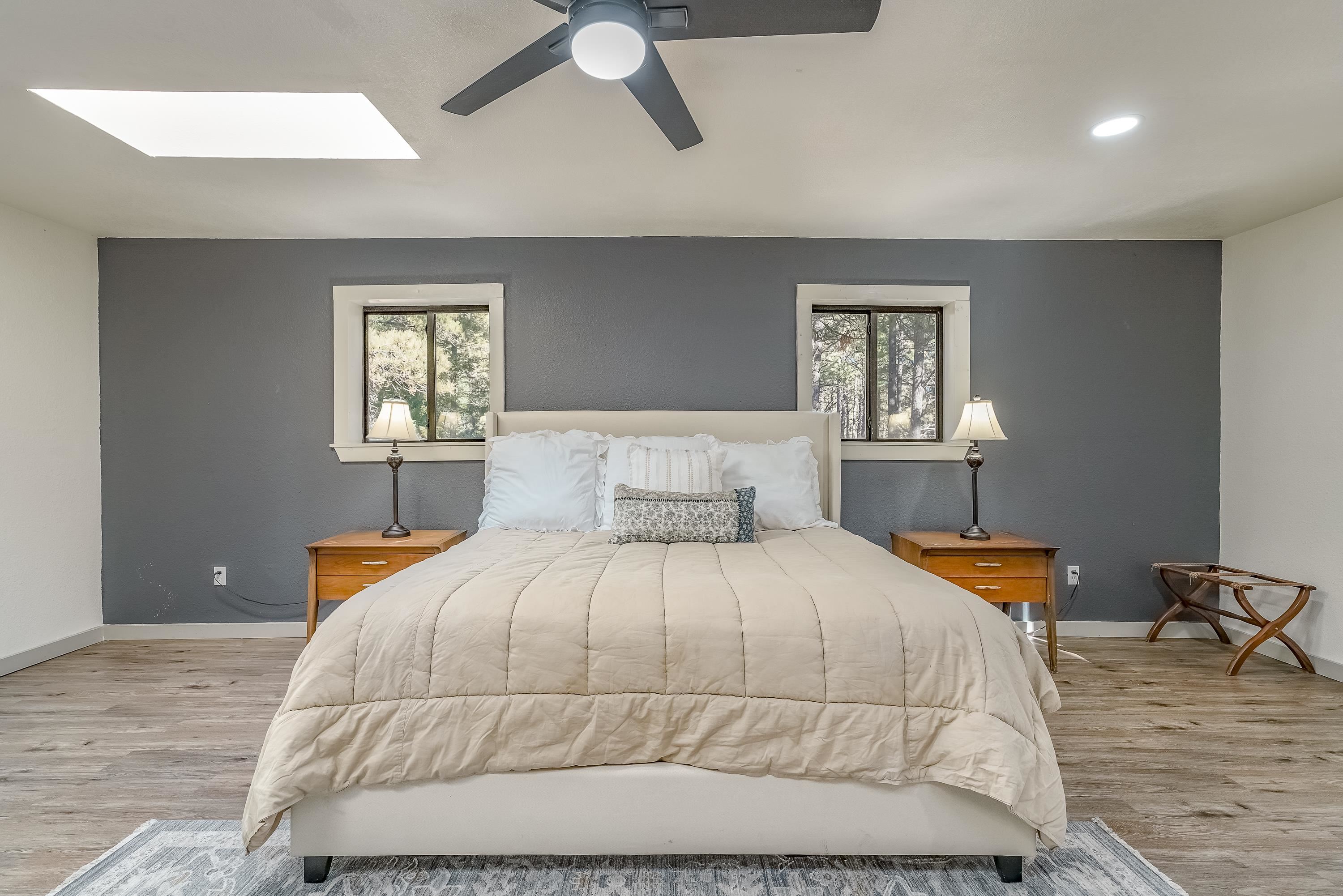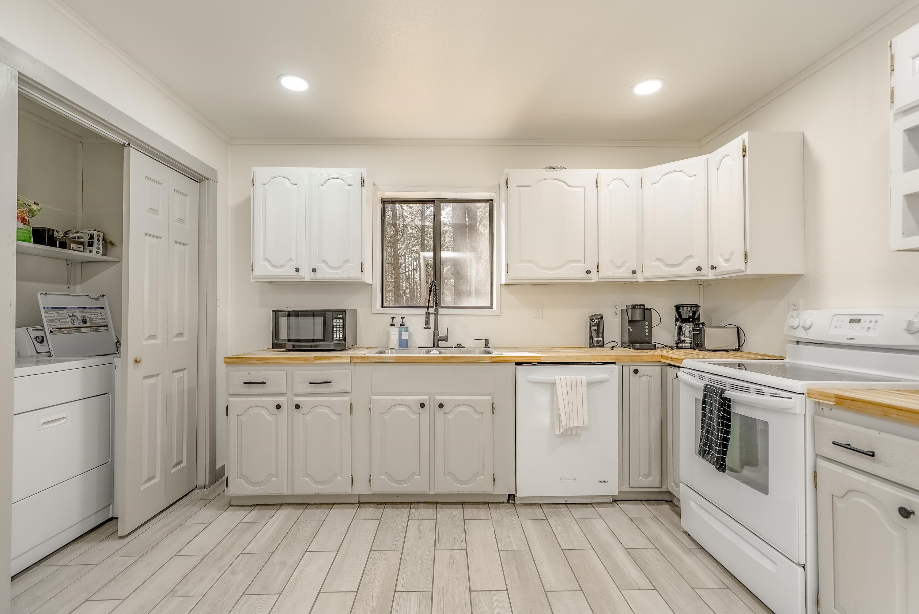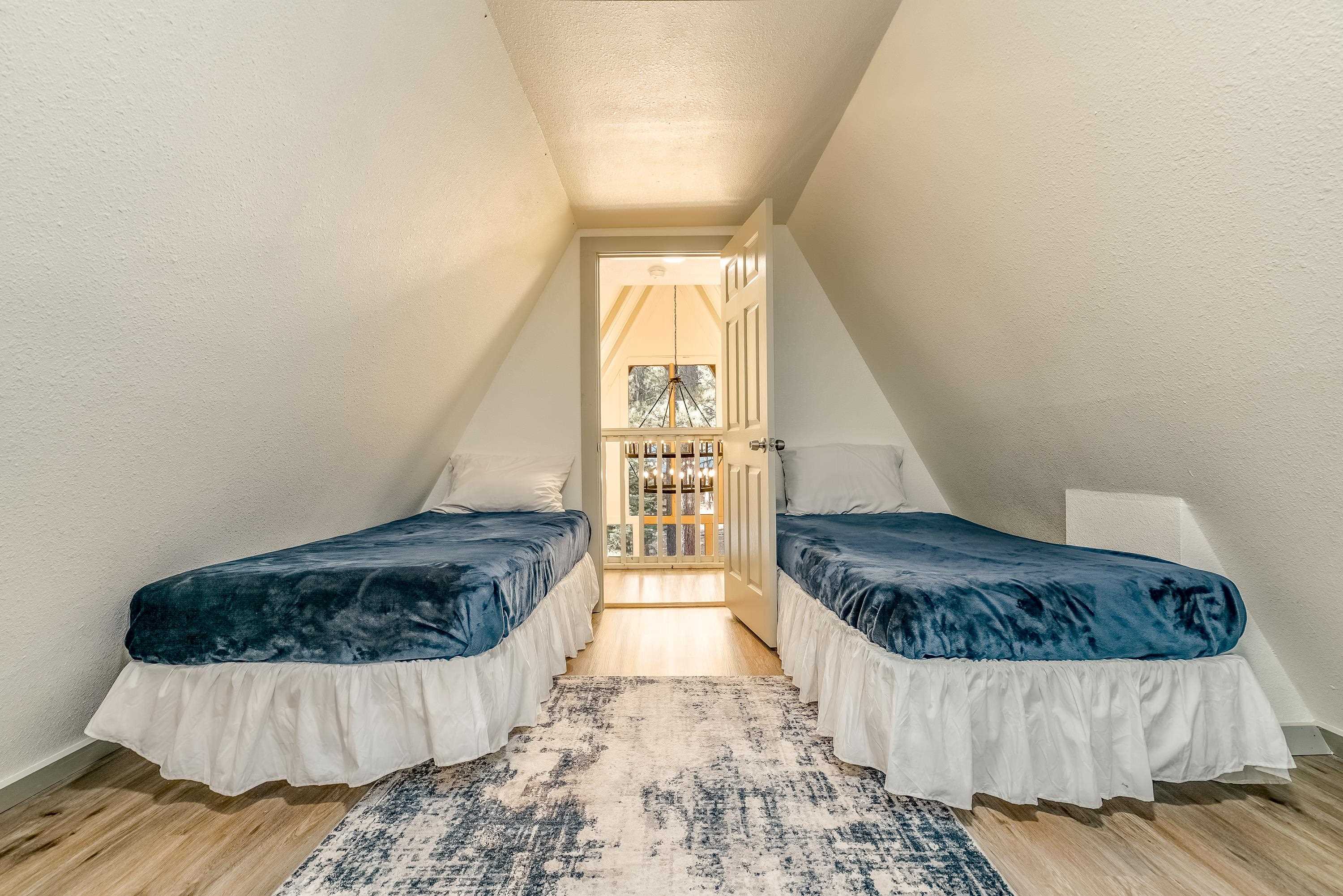 Welcome to 50 Knollwood Way, a quintessential A-frame chalet tucked into the trees with easy year-round access. Set on a peaceful, wooded half-acre, this refreshed mountain home blends timeless alpine character with thoughtful modern updates—ideal as a family retreat or rental opportunity. Inside, soaring vaulted ceilings and a dramatic window wall flood the main living area with natural light. The open living space is anchored by a freestanding wood stove, creating a cozy gathering space for après-ski evenings and mountain getaways. With five bedrooms and four full baths across nearly 3,000 square feet, there is ample room for large groups, multi-generational living, or flexible sleeping arrangements. Recent 2024 updates include refreshed flooring and paint, kitchen and bathroom improvements, a new wood stove, and a new advanced septic system designed to support the full bedroom count. Multiple decks extend the living space outdoors, perfect for relaxing among the pines and enjoying the crisp mountain air. Located just minutes from skiing, golf, hiking, and all that Angel Fire has to offer, this classic A-frame offers a rare combination of charm, space, and accessibility.